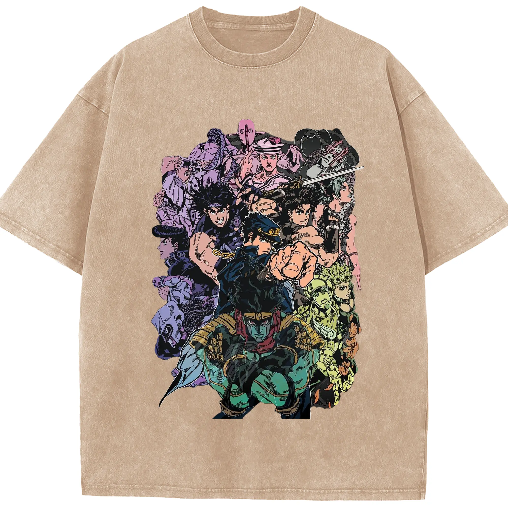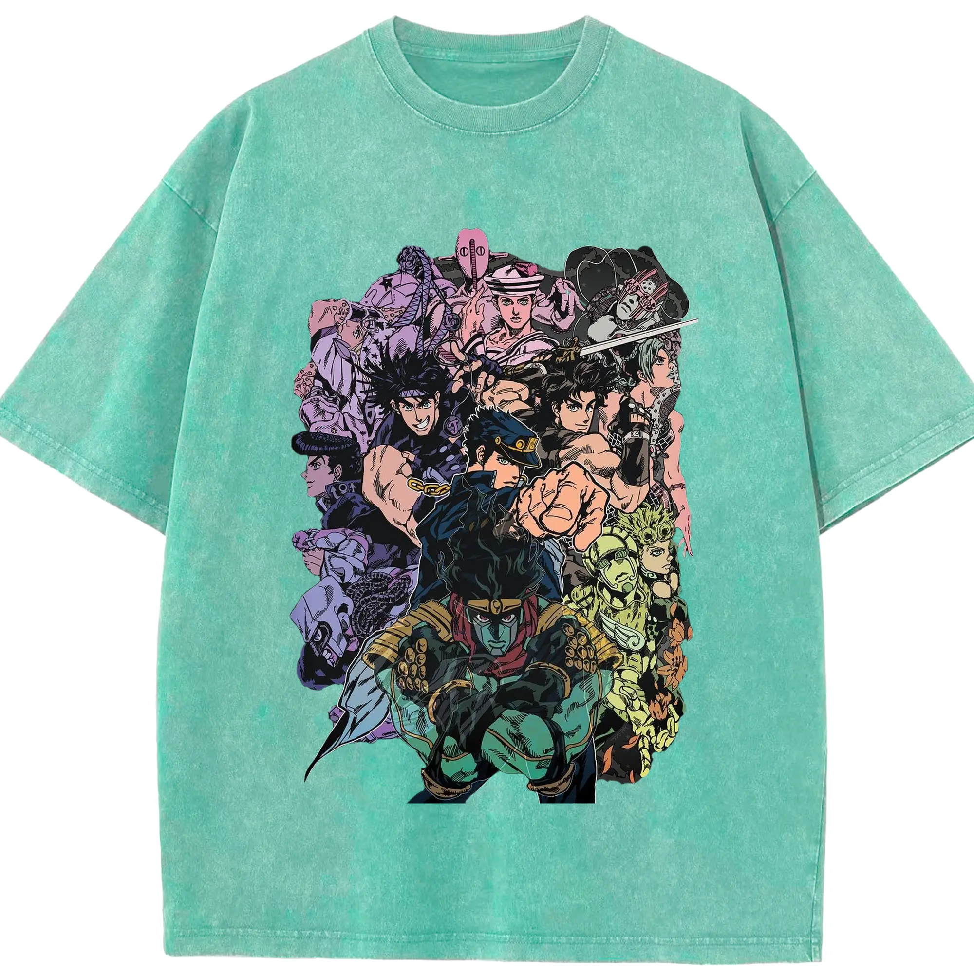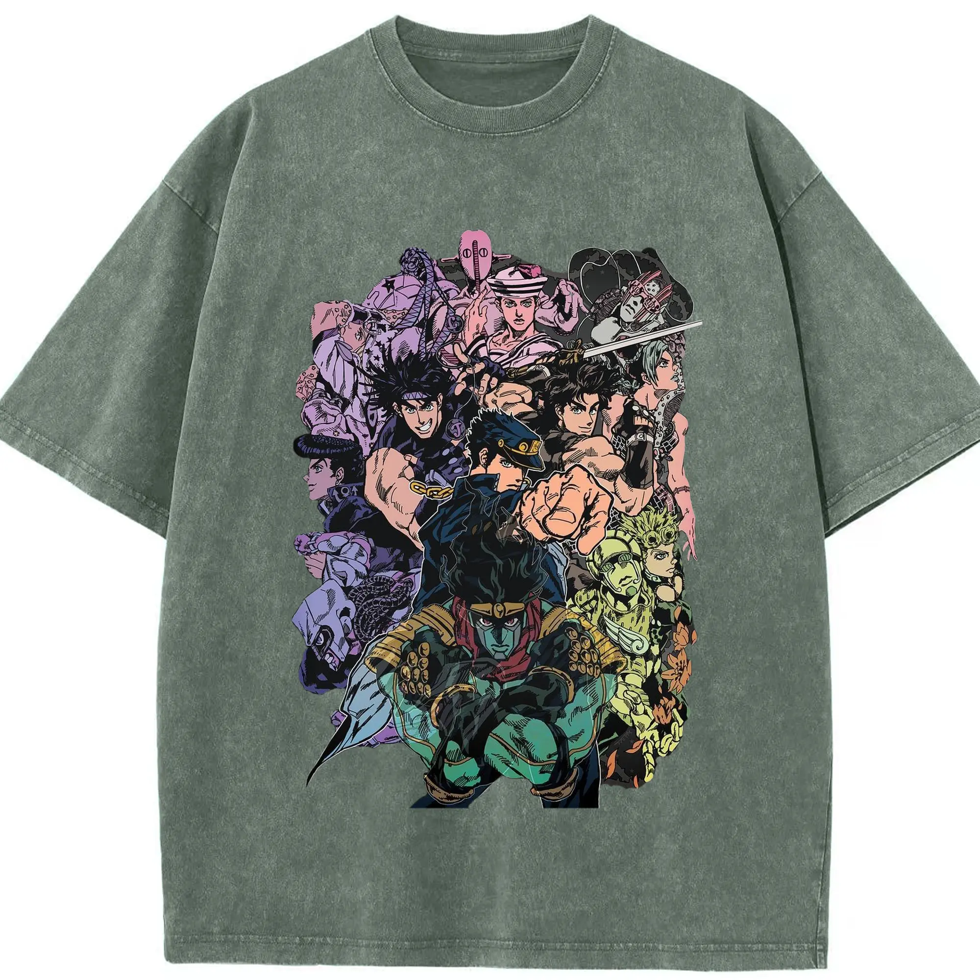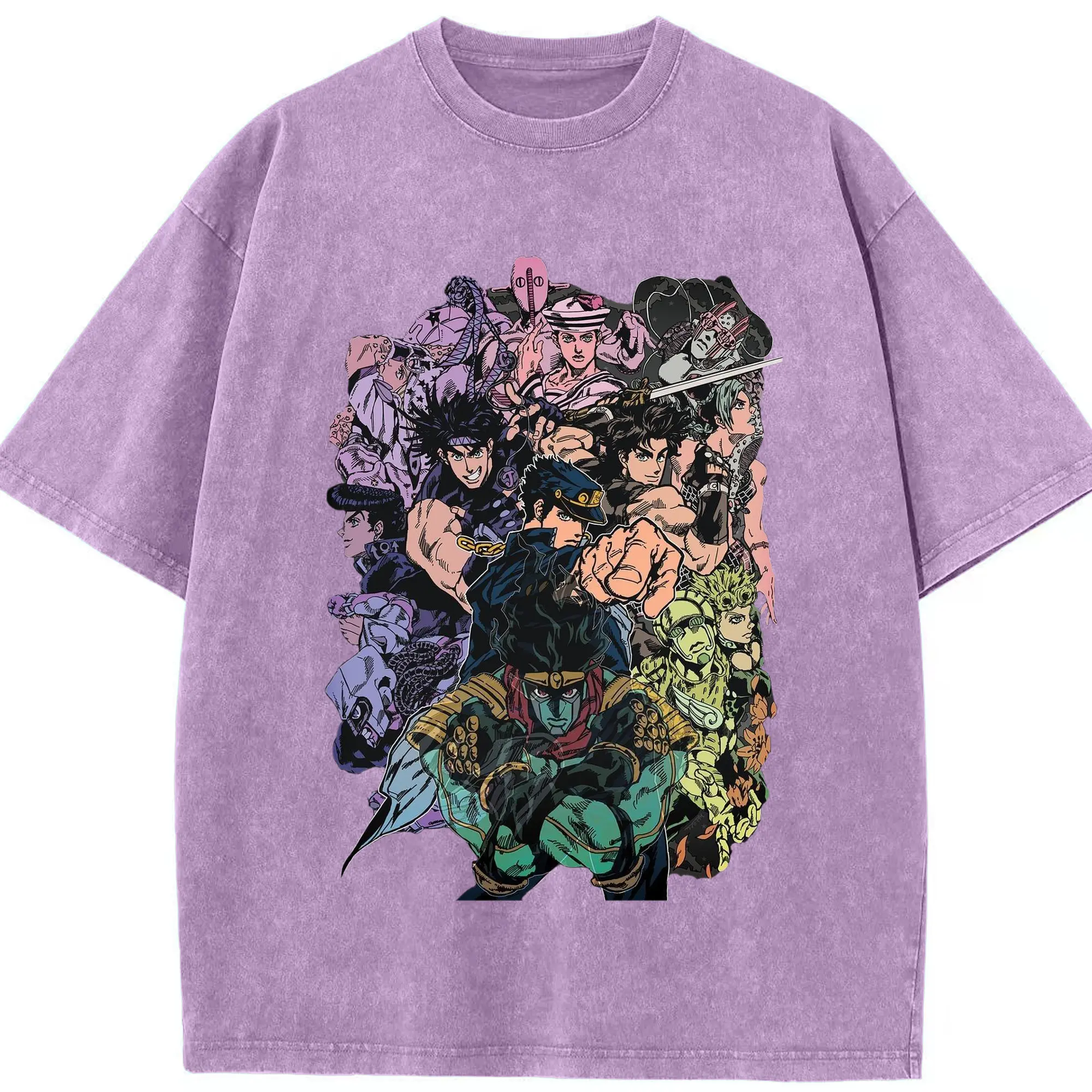 JoJo's Bizarre Adventure Crazy Diamond Graffiti DIY - Washed Vintage Look 230g Cotton Oversized T-Shirt With Front Heat Transfer Print – Soft, Lightweight, Stylish Fit – Comfortable Casual Wear For Sports & Everyday Use
