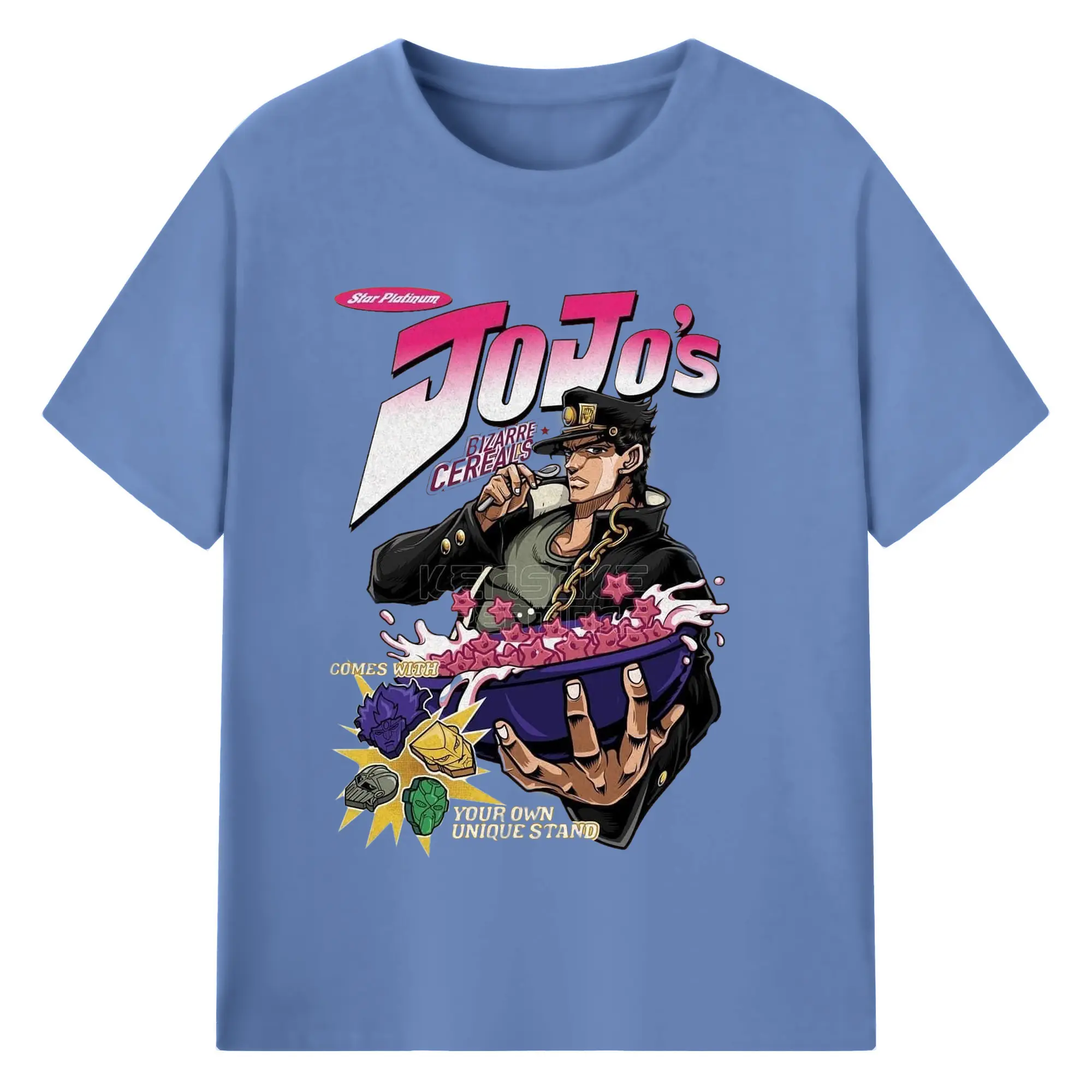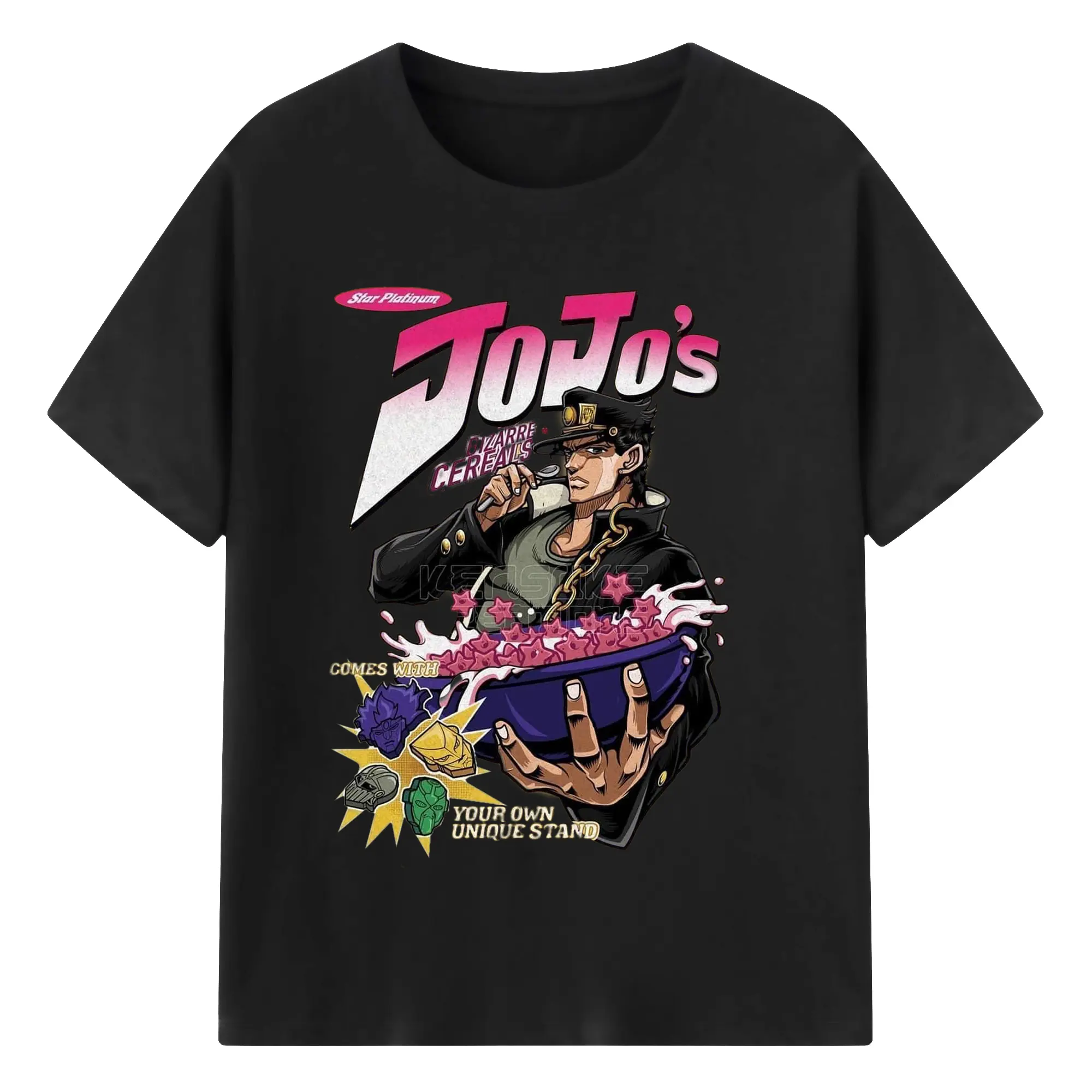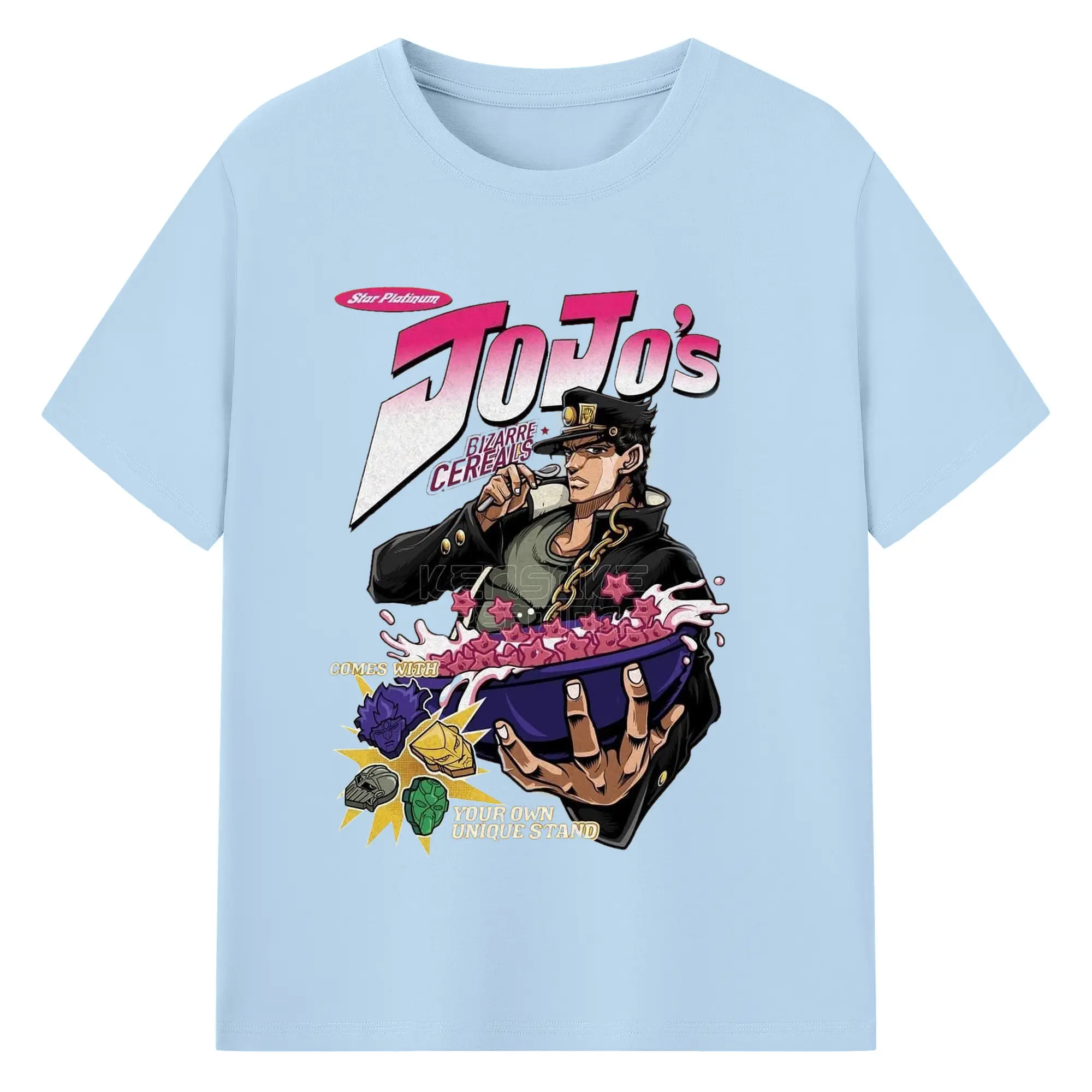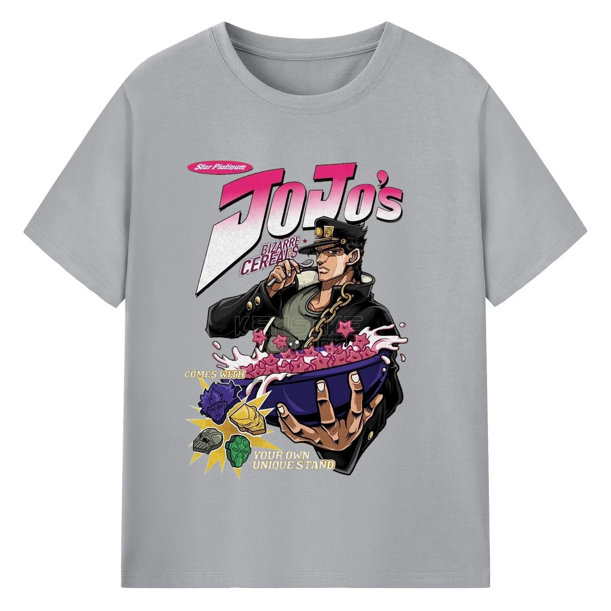 JoJo's Bizarre Adventure Star Platinum Cereal DIY - 180g Cotton T-Shirt With Front Heat Transfer Print – Soft, Lightweight, Fitted Design – Comfortable Casual Wear For Sports & Everyday Use