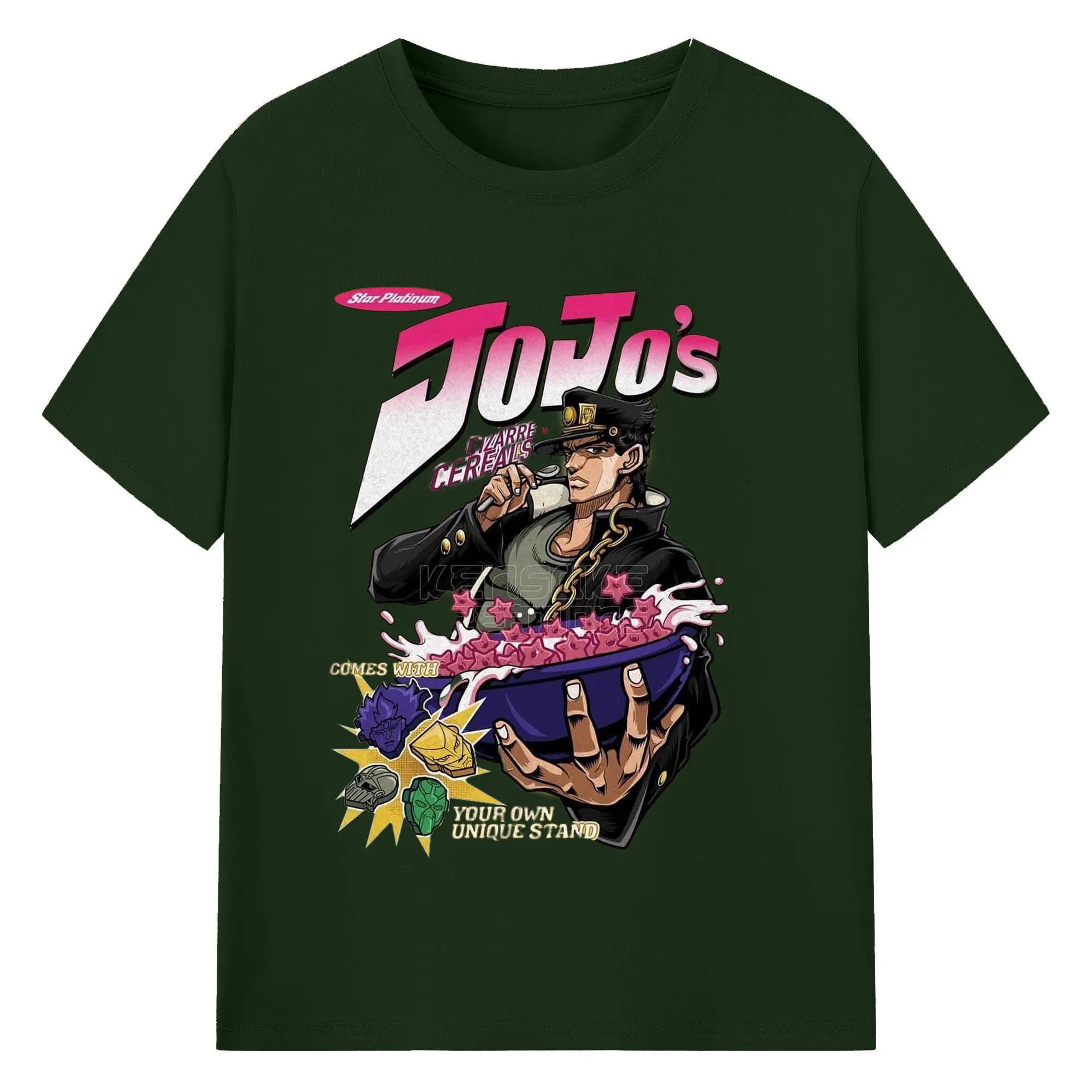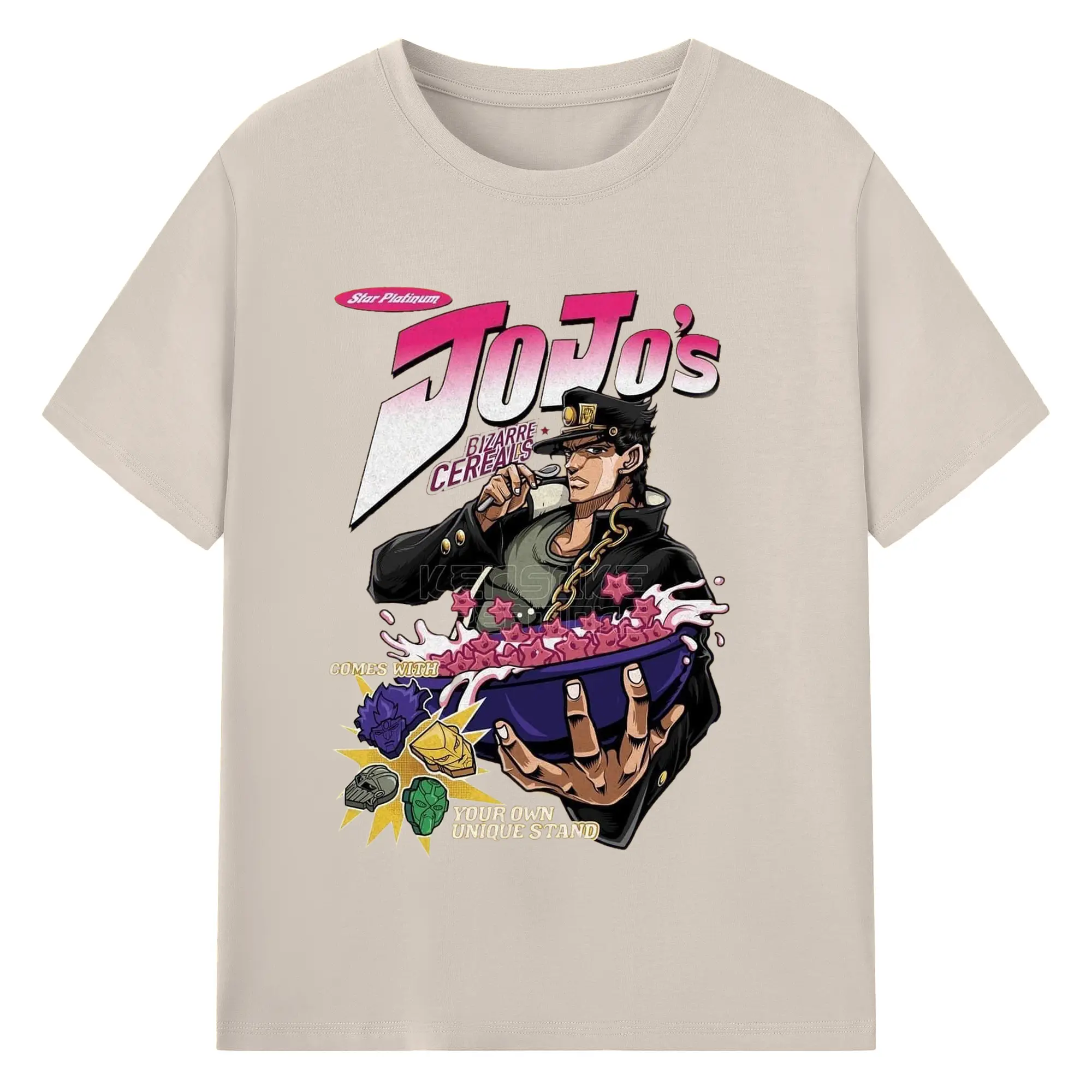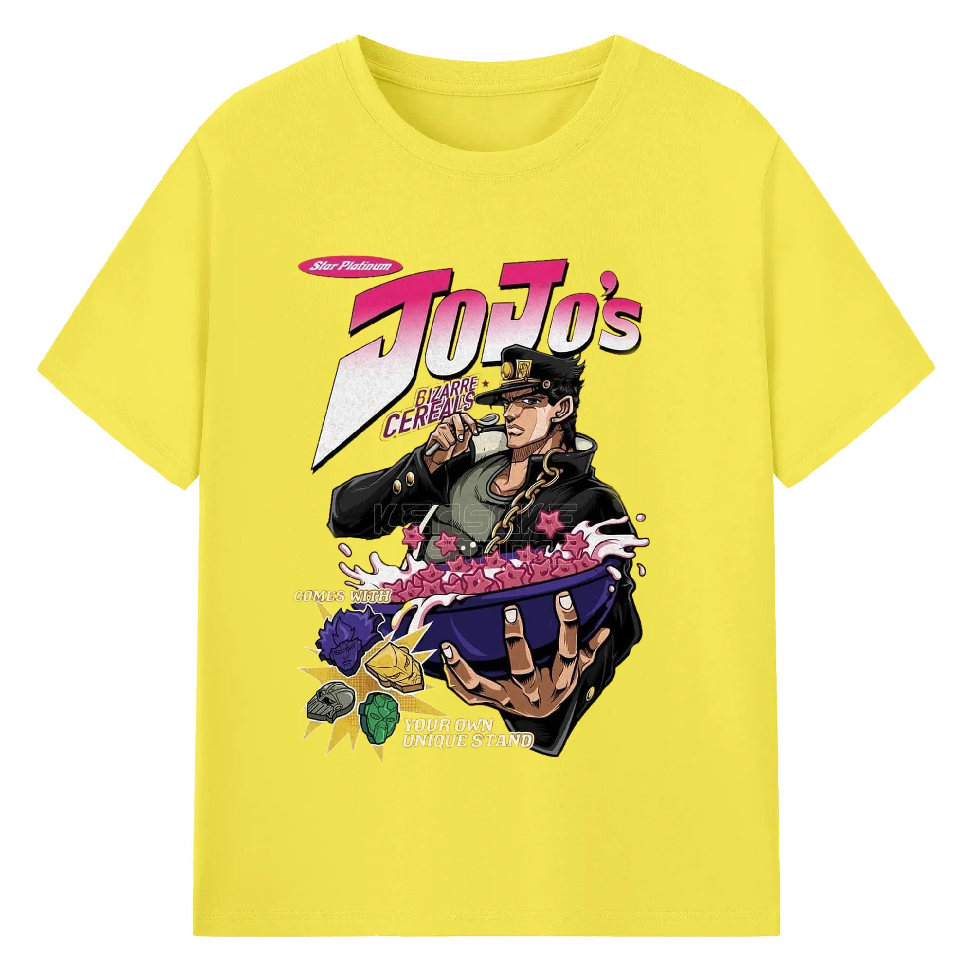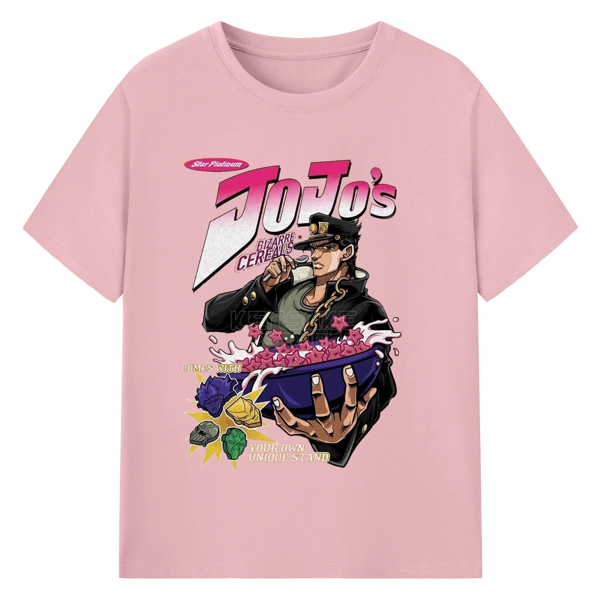 JoJo's Bizarre Adventure Star Platinum Cereal DIY - 180g Cotton T-Shirt With Front Heat Transfer Print – Soft, Lightweight, Fitted Design – Comfortable Casual Wear For Sports & Everyday Use
