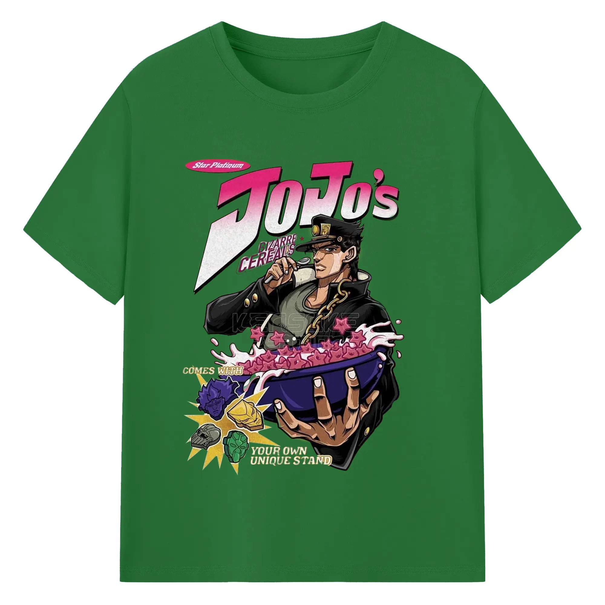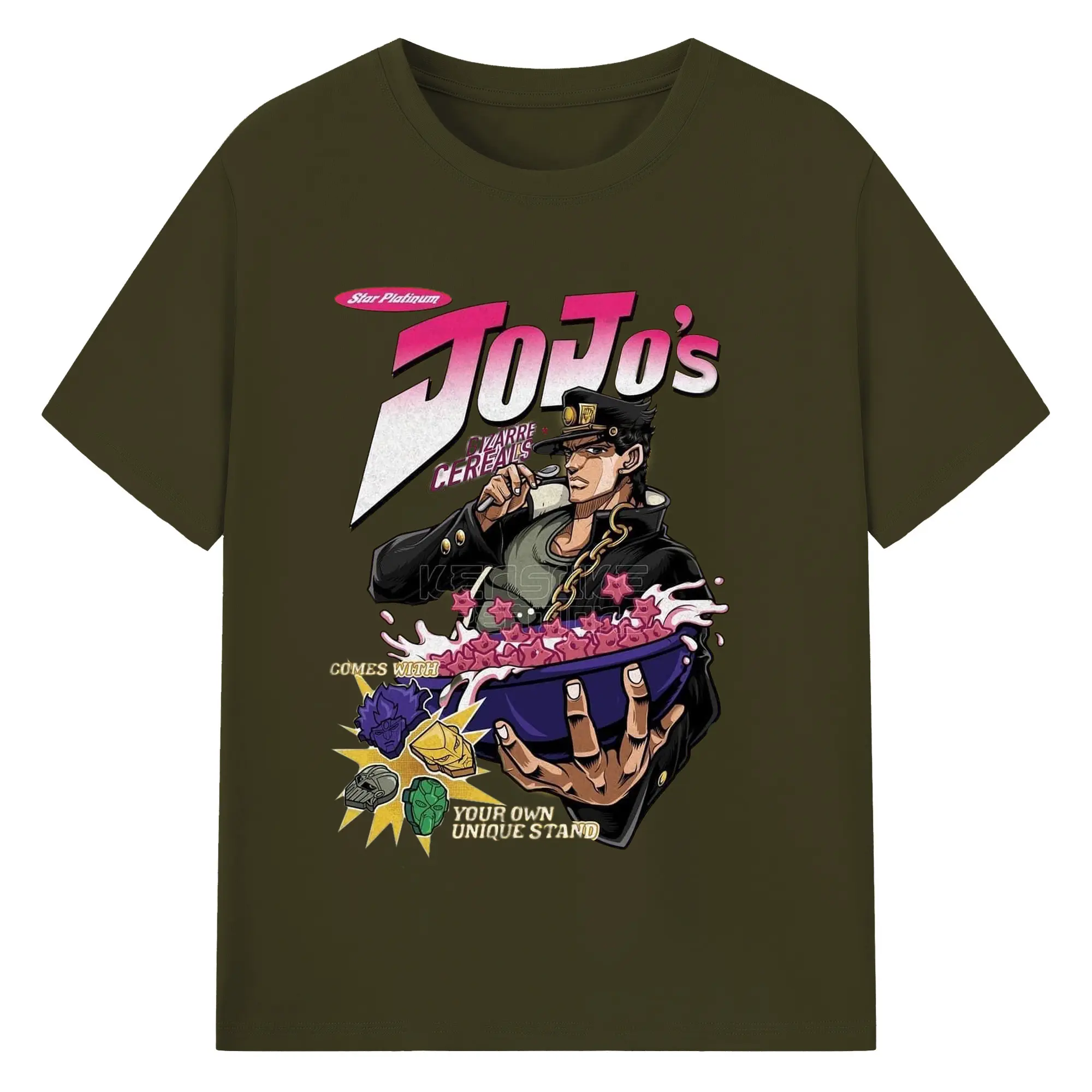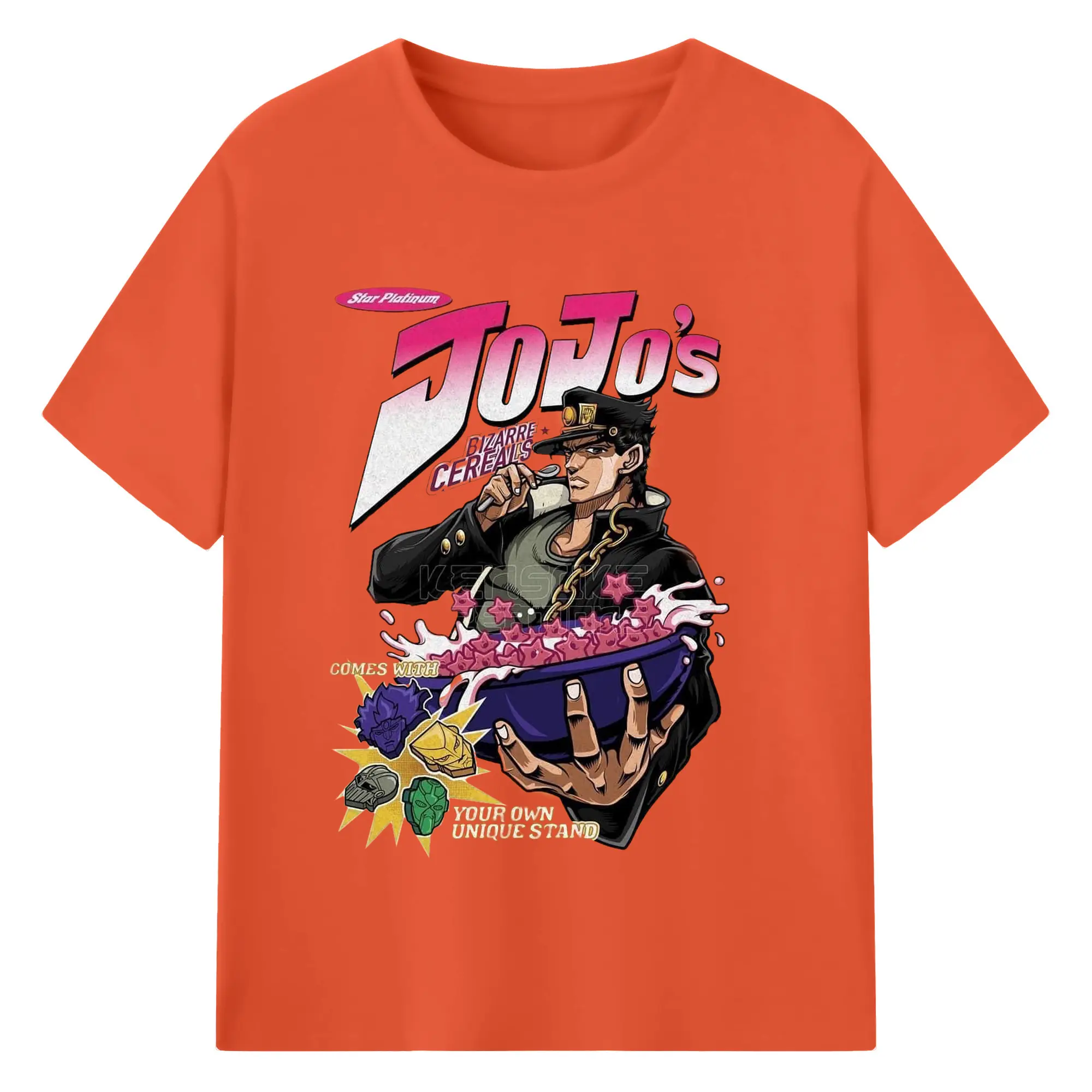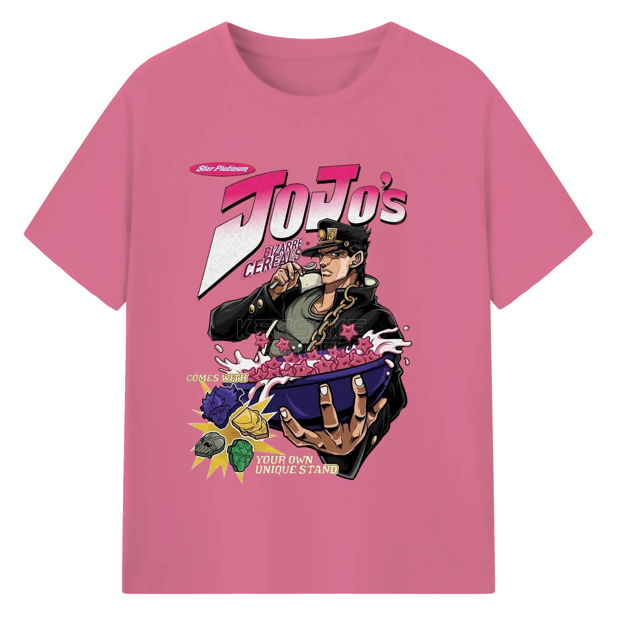 JoJo's Bizarre Adventure Star Platinum Cereal DIY - 180g Cotton T-Shirt With Front Heat Transfer Print – Soft, Lightweight, Fitted Design – Comfortable Casual Wear For Sports & Everyday Use
