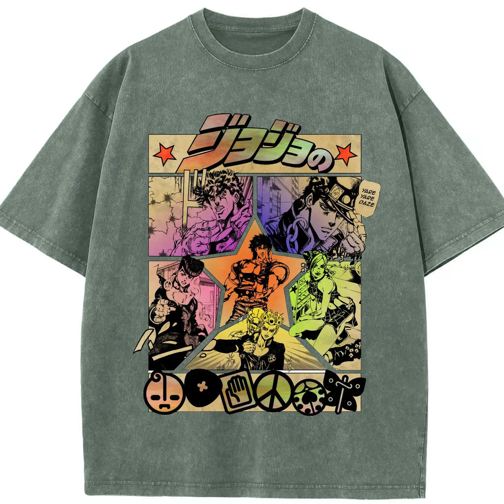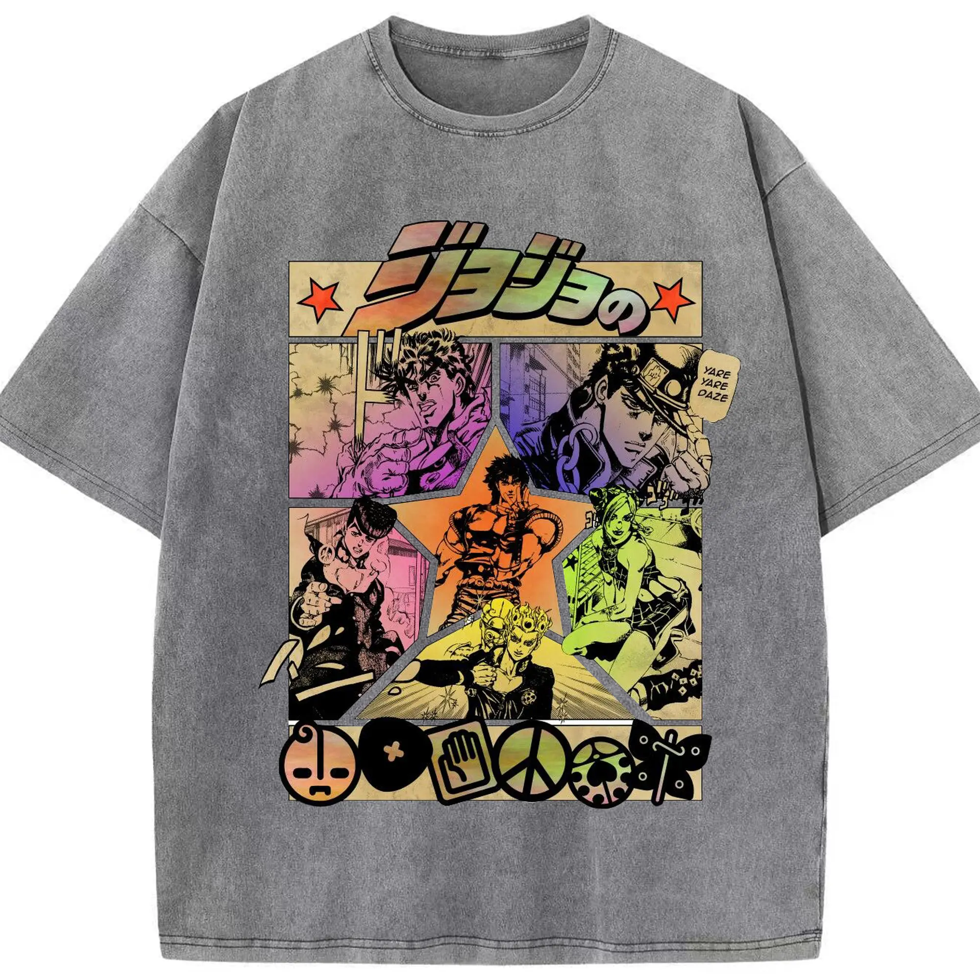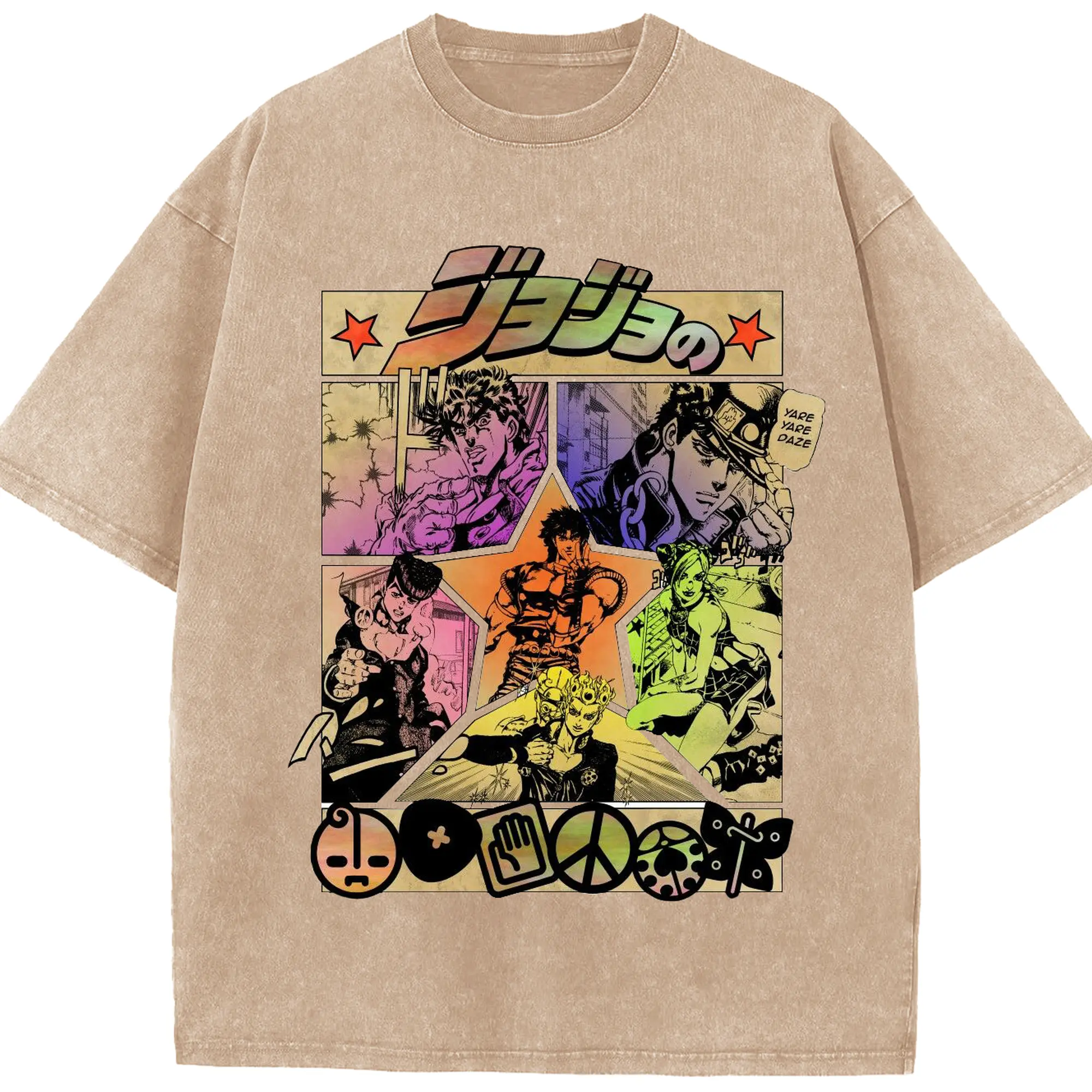 JoJo's Bizarre Adventure Vintage Manga Collage DIY - Washed Vintage Look 230g Cotton Oversized T-Shirt With Front Heat Transfer Print – Soft, Lightweight, Stylish Fit – Comfortable Casual Wear For Sports & Everyday Use