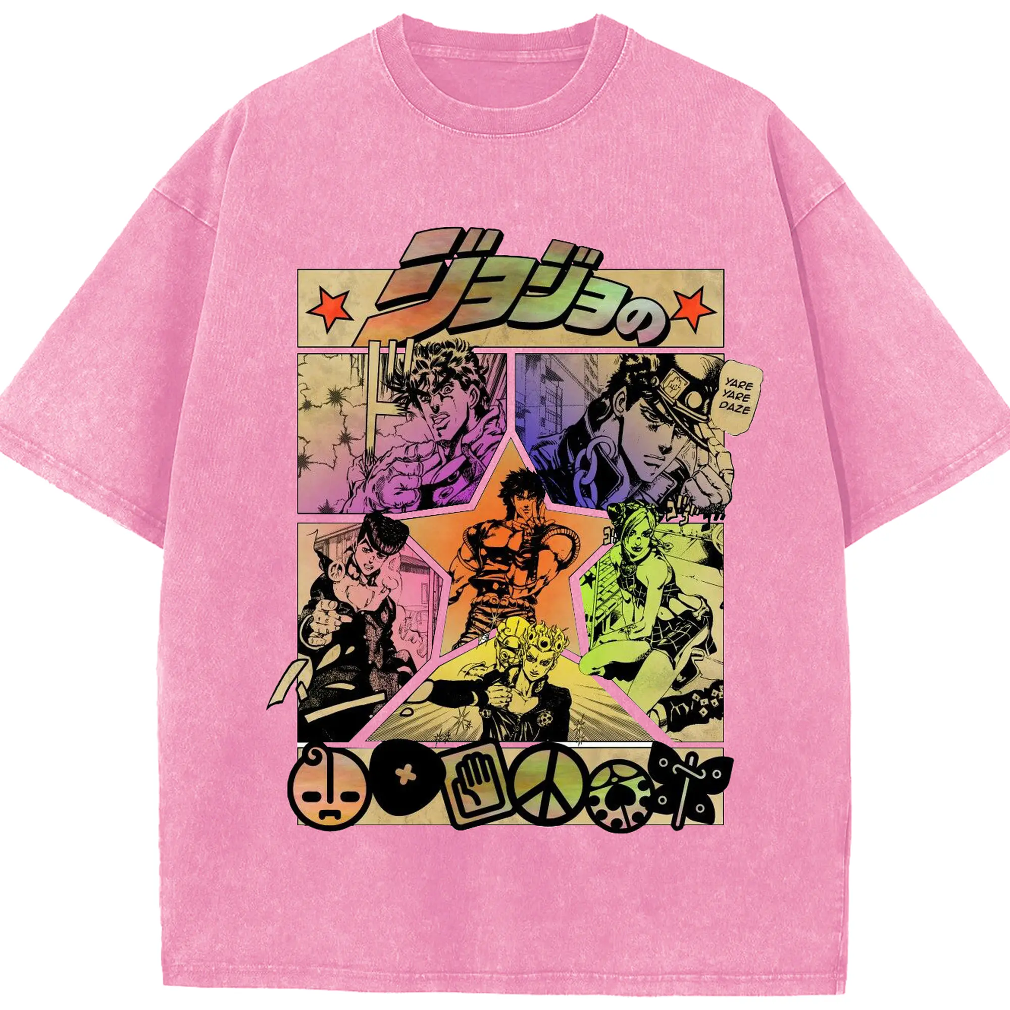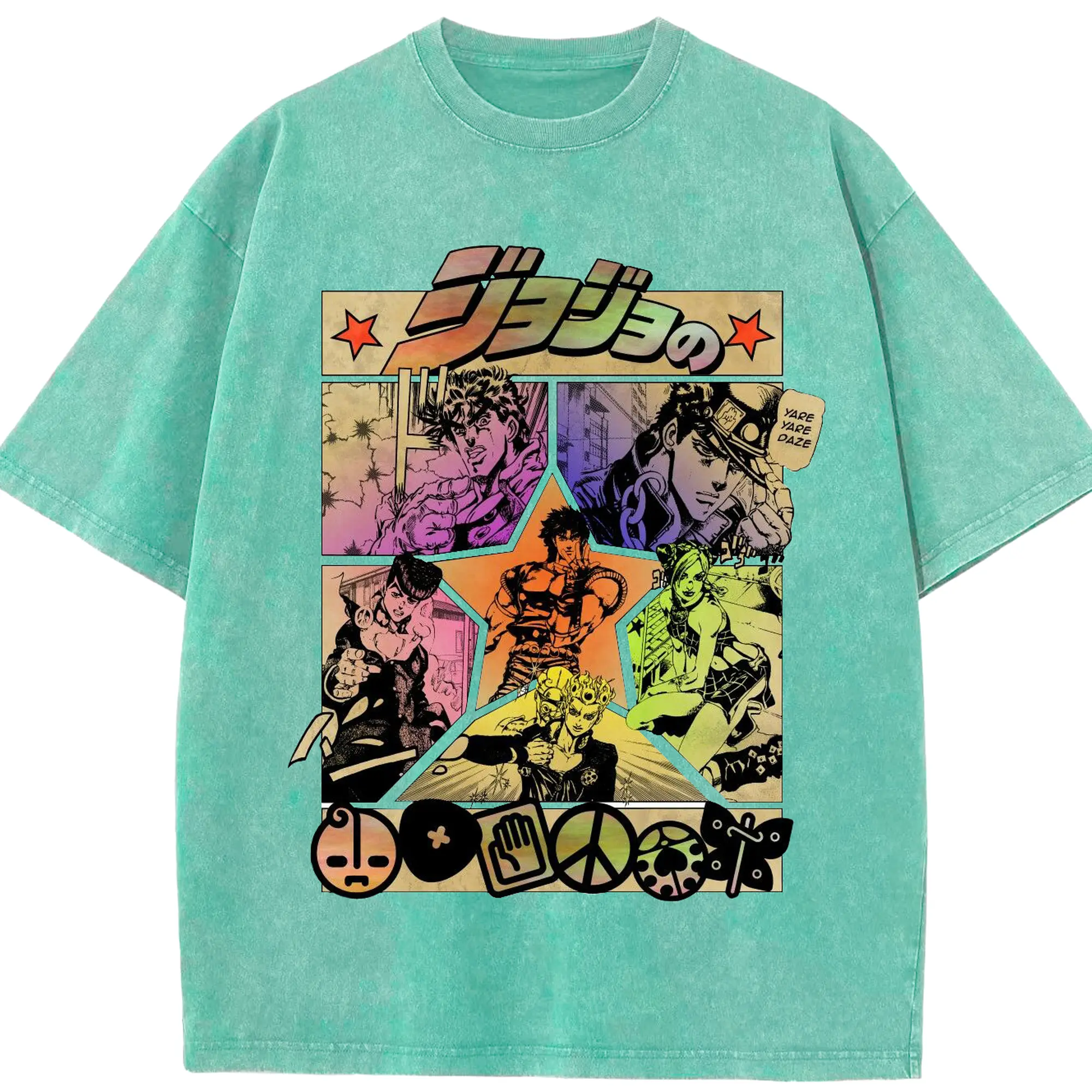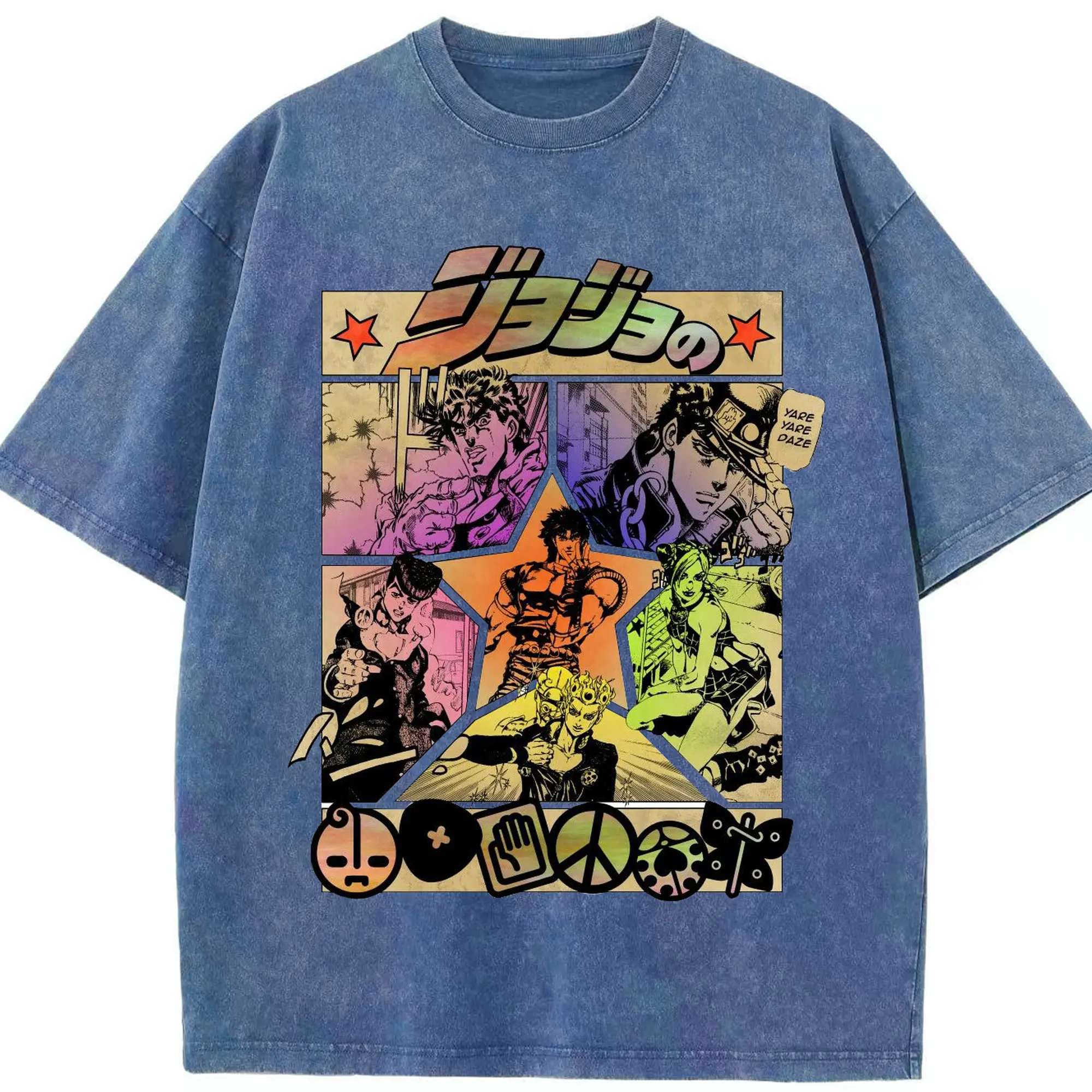 JoJo's Bizarre Adventure Vintage Manga Collage DIY - Washed Vintage Look 230g Cotton Oversized T-Shirt With Front Heat Transfer Print – Soft, Lightweight, Stylish Fit – Comfortable Casual Wear For Sports & Everyday Use