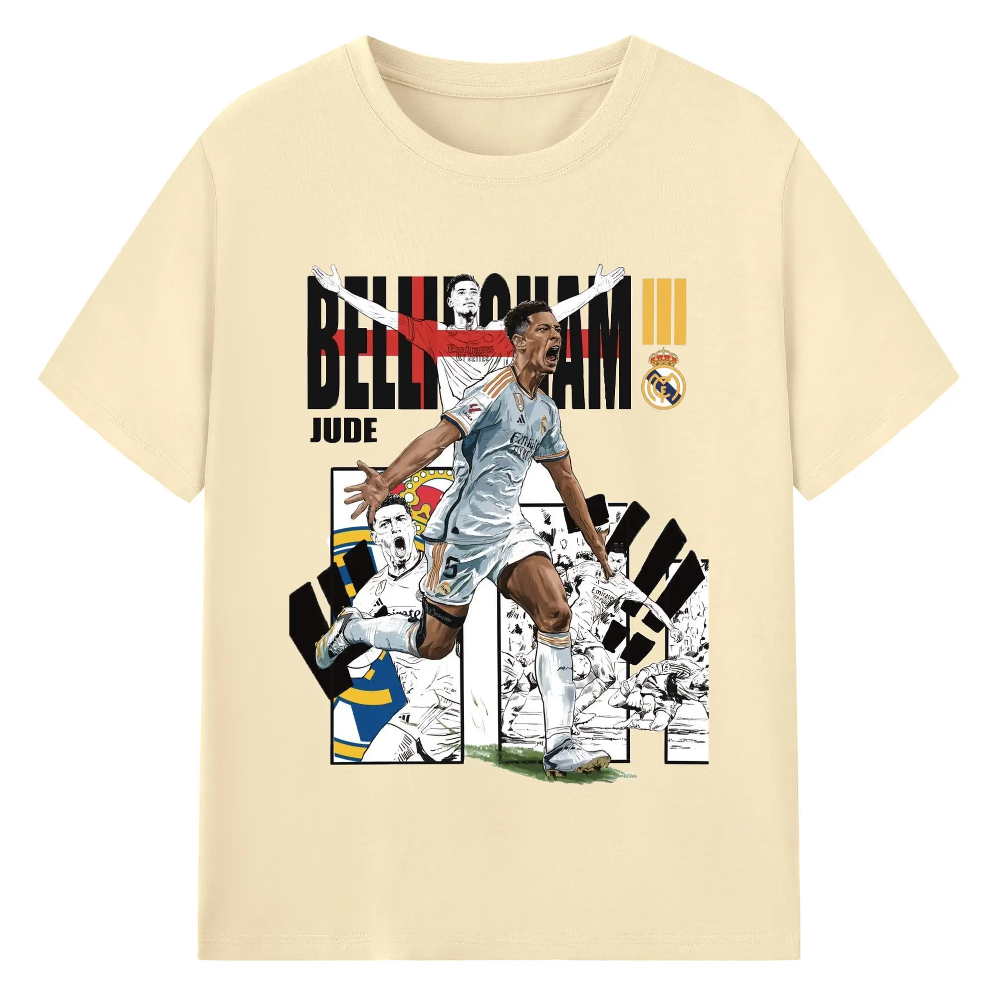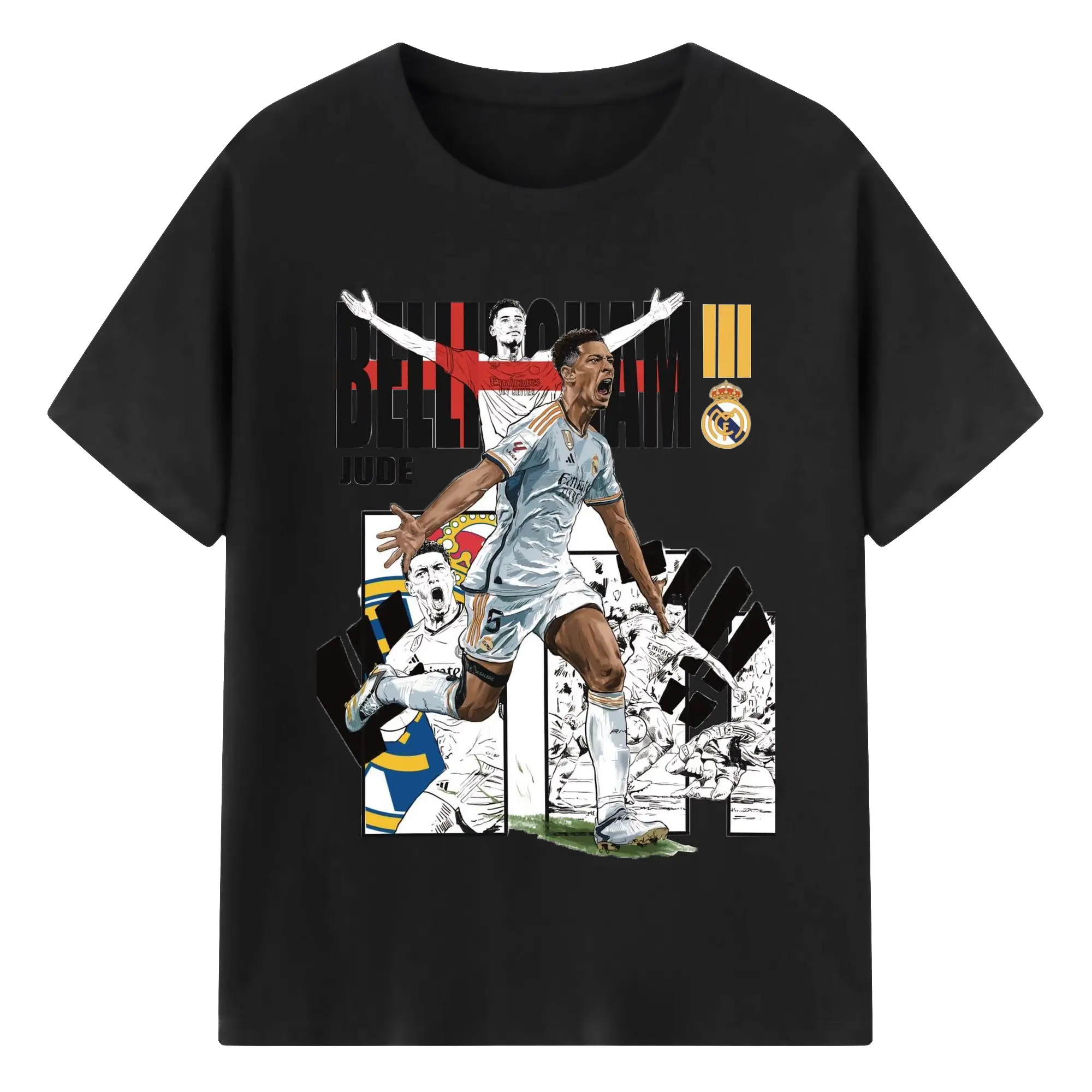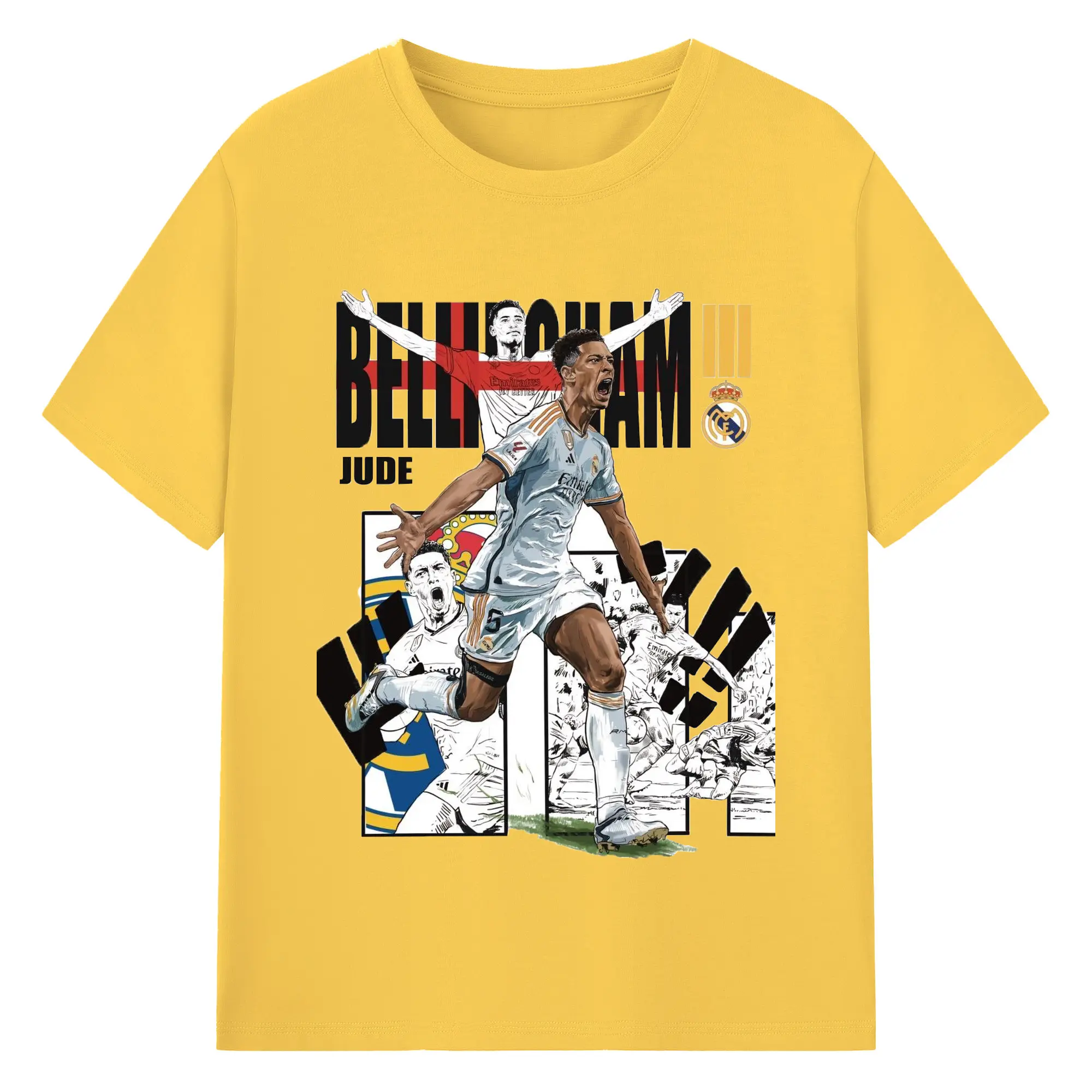 Jude Bellingham Real Madrid Anime Style DIY Shirt - 180g Cotton T-Shirt With Front Heat Transfer Print – Soft, Lightweight, Fitted Design – Comfortable Casual Wear For Sports & Everyday Use