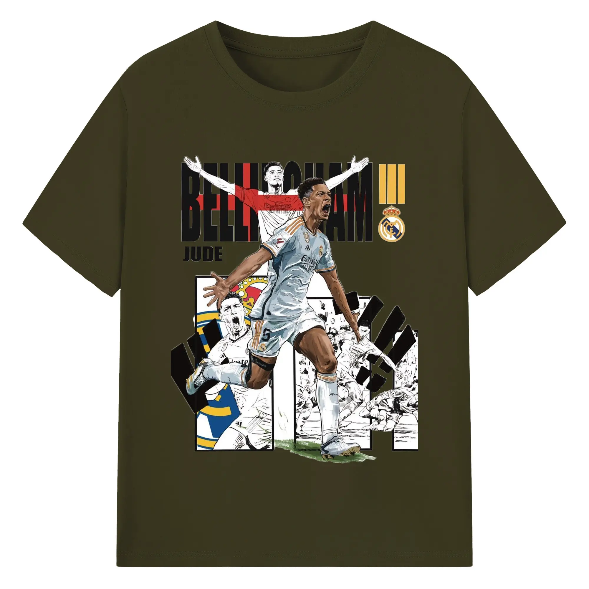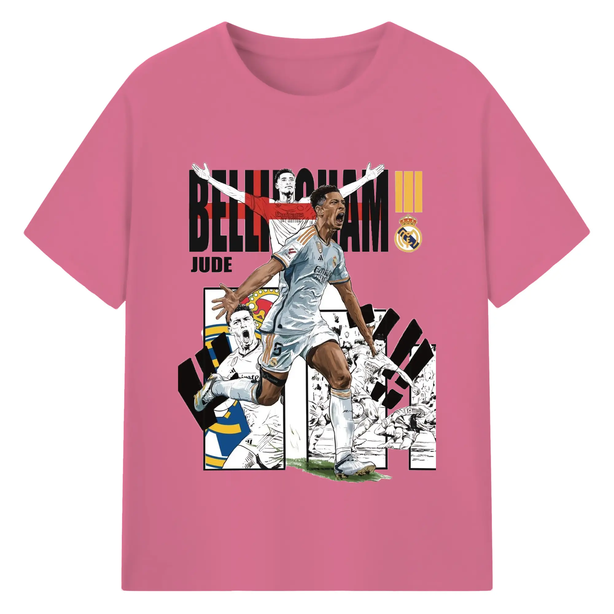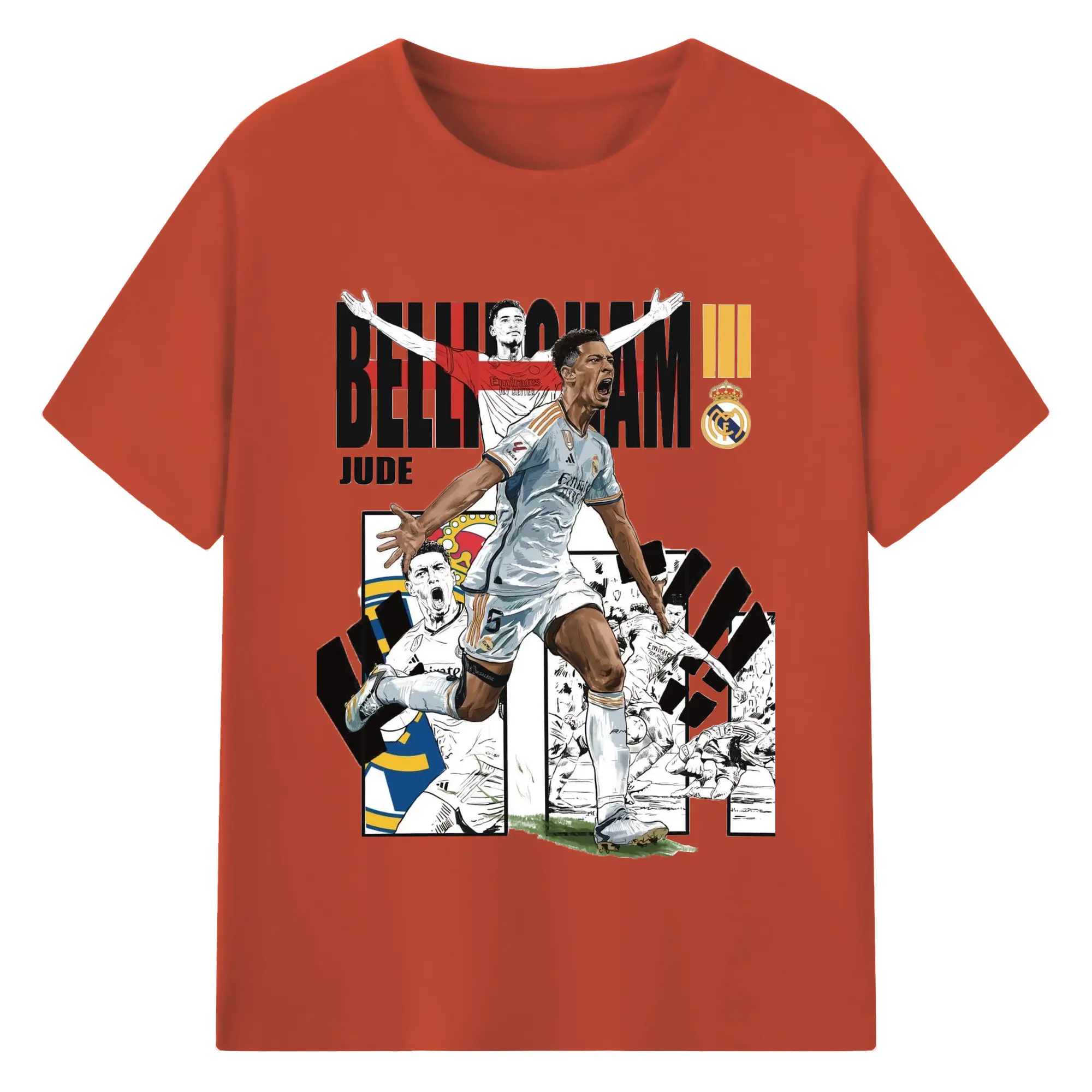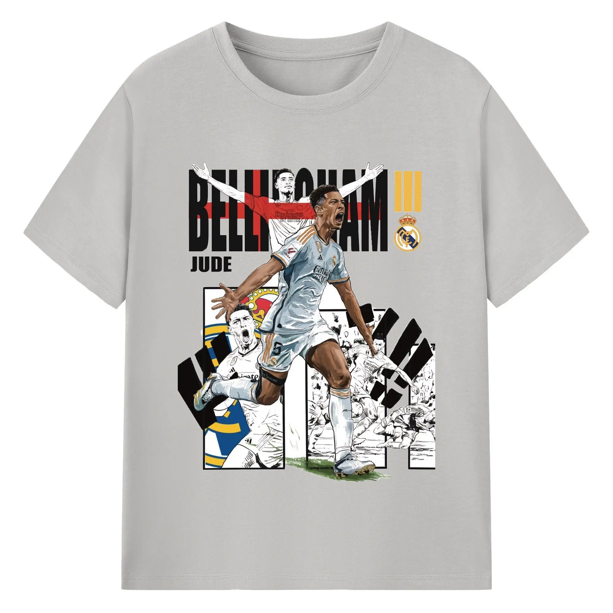 Jude Bellingham Real Madrid Anime Style DIY Shirt - 180g Cotton T-Shirt With Front Heat Transfer Print – Soft, Lightweight, Fitted Design – Comfortable Casual Wear For Sports & Everyday Use