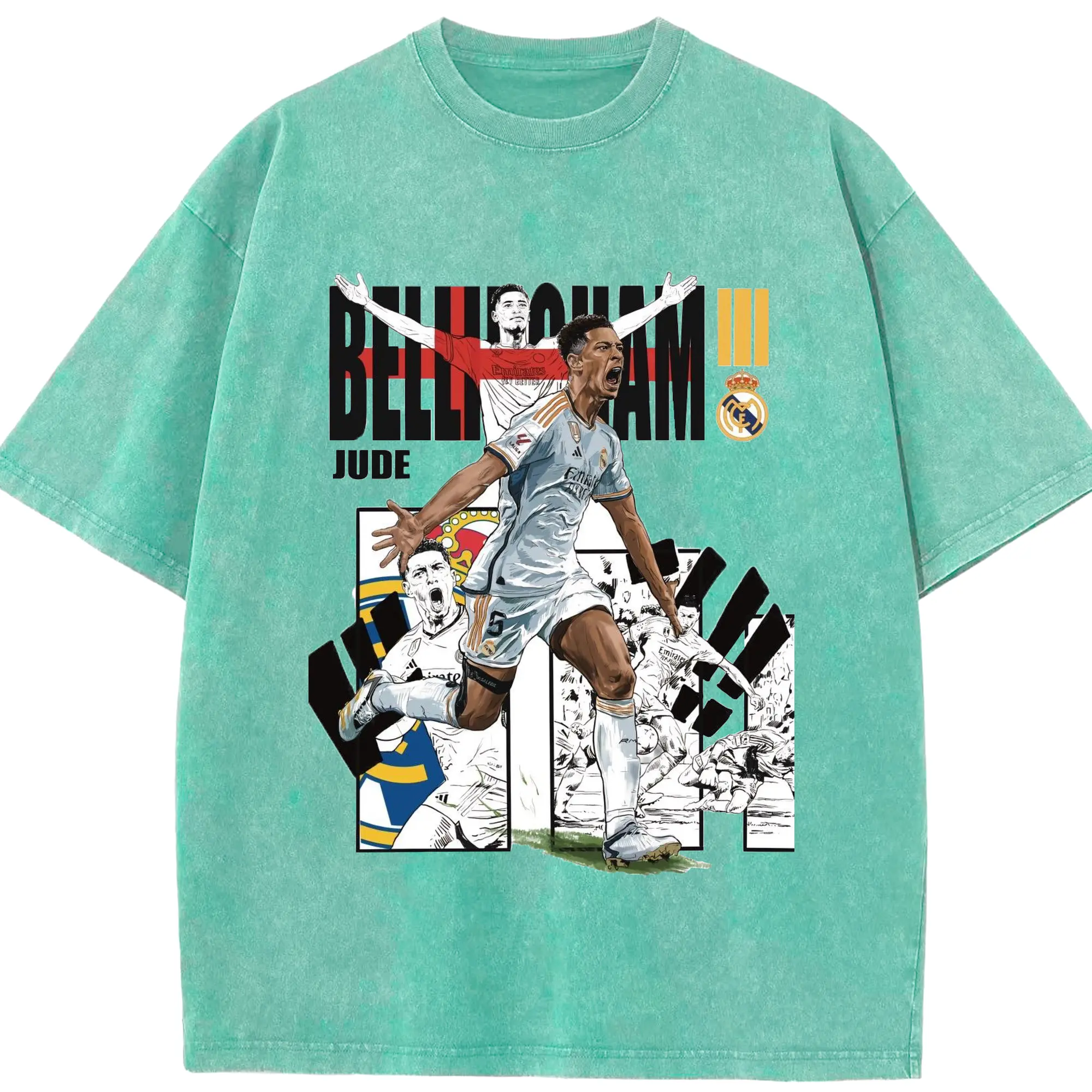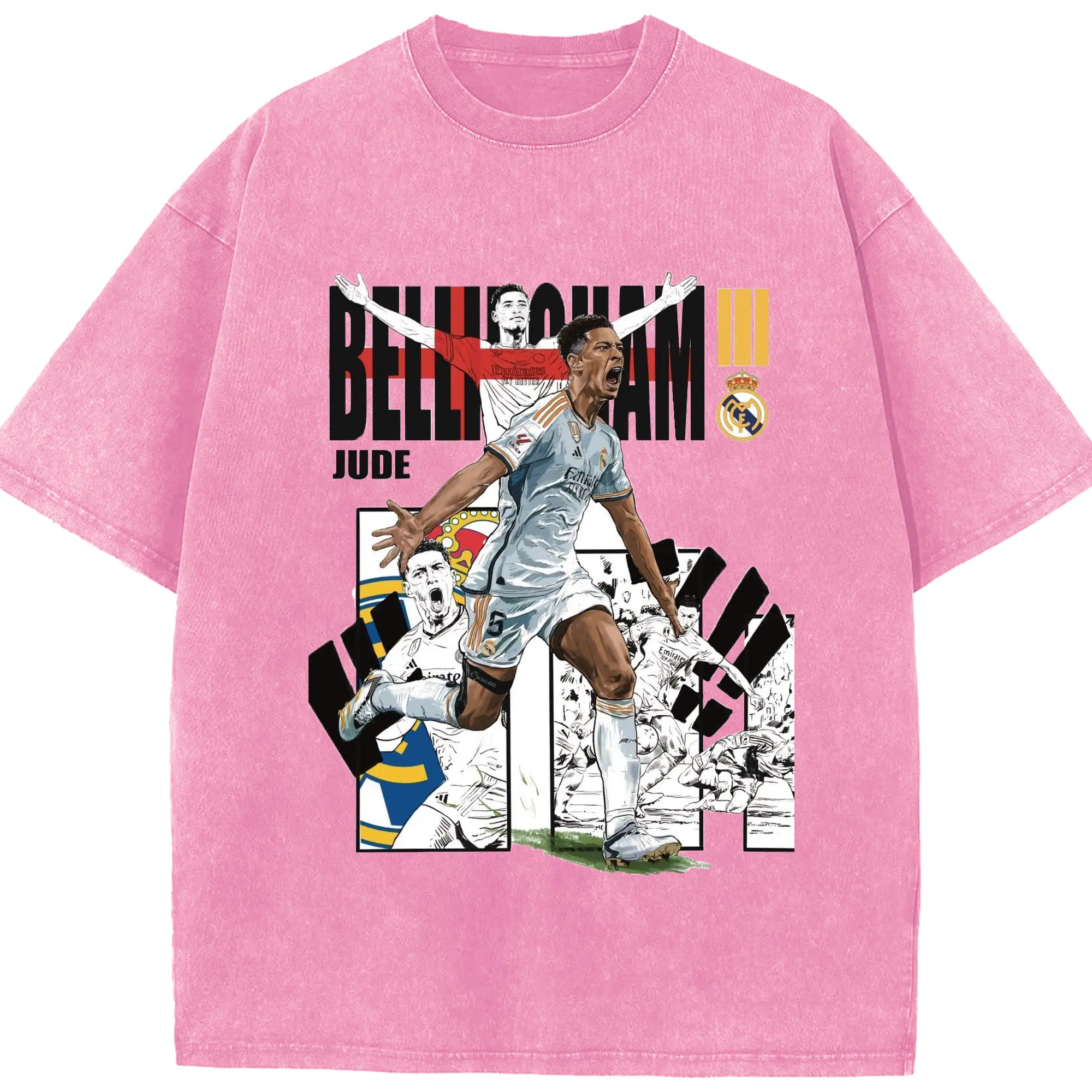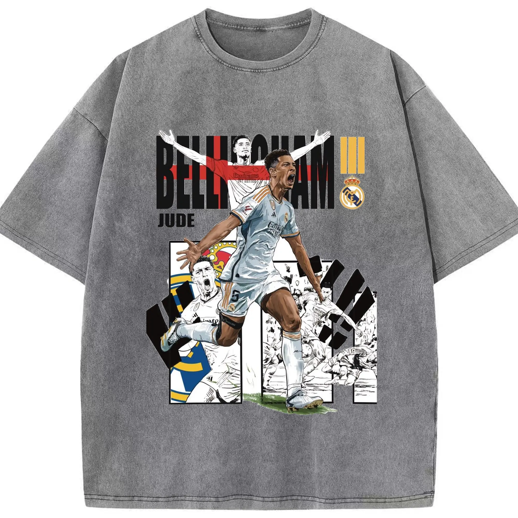 Jude Bellingham Real Madrid Anime Style DIY Shirt - Washed Vintage Look 230g Cotton Oversized T-Shirt With Front Heat Transfer Print – Soft, Lightweight, Stylish Fit – Comfortable Casual Wear For Sports & Everyday Use