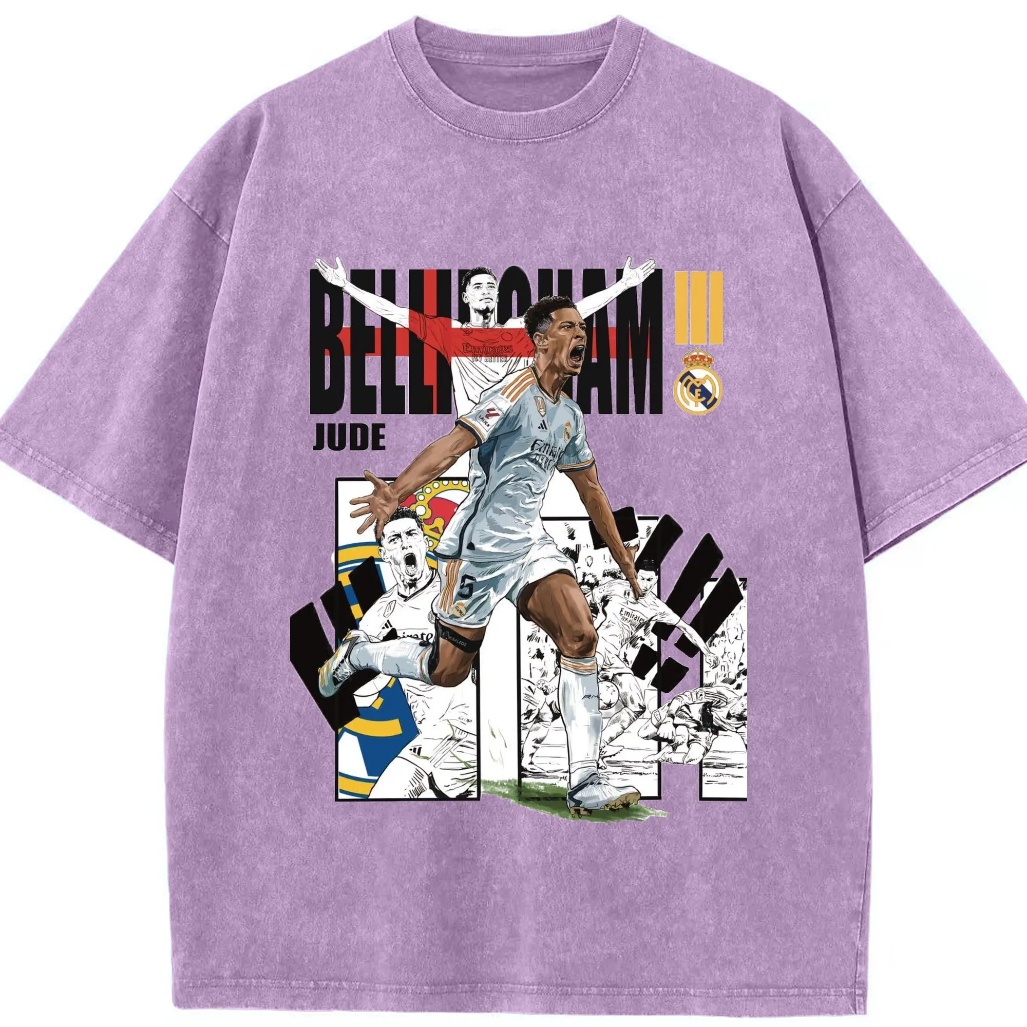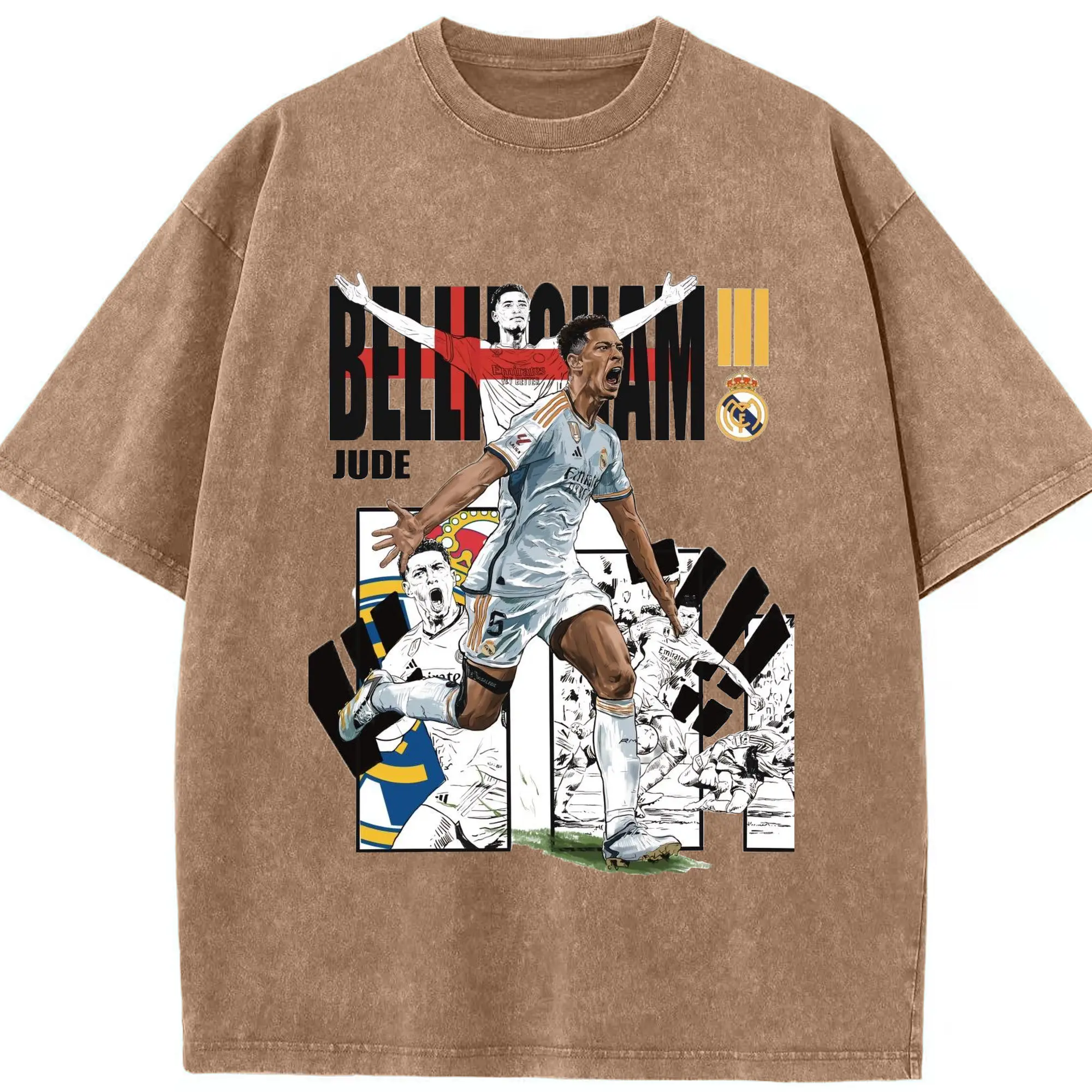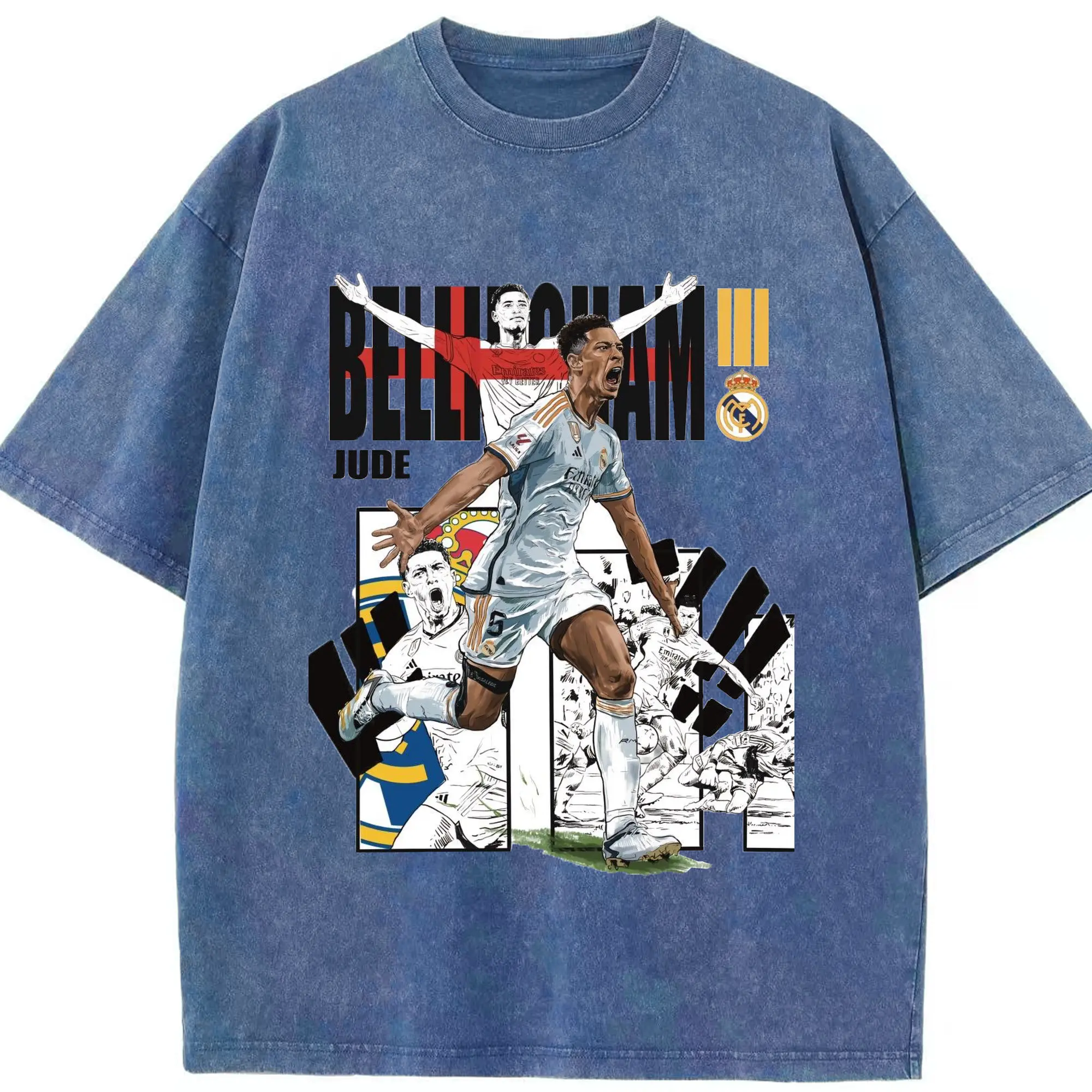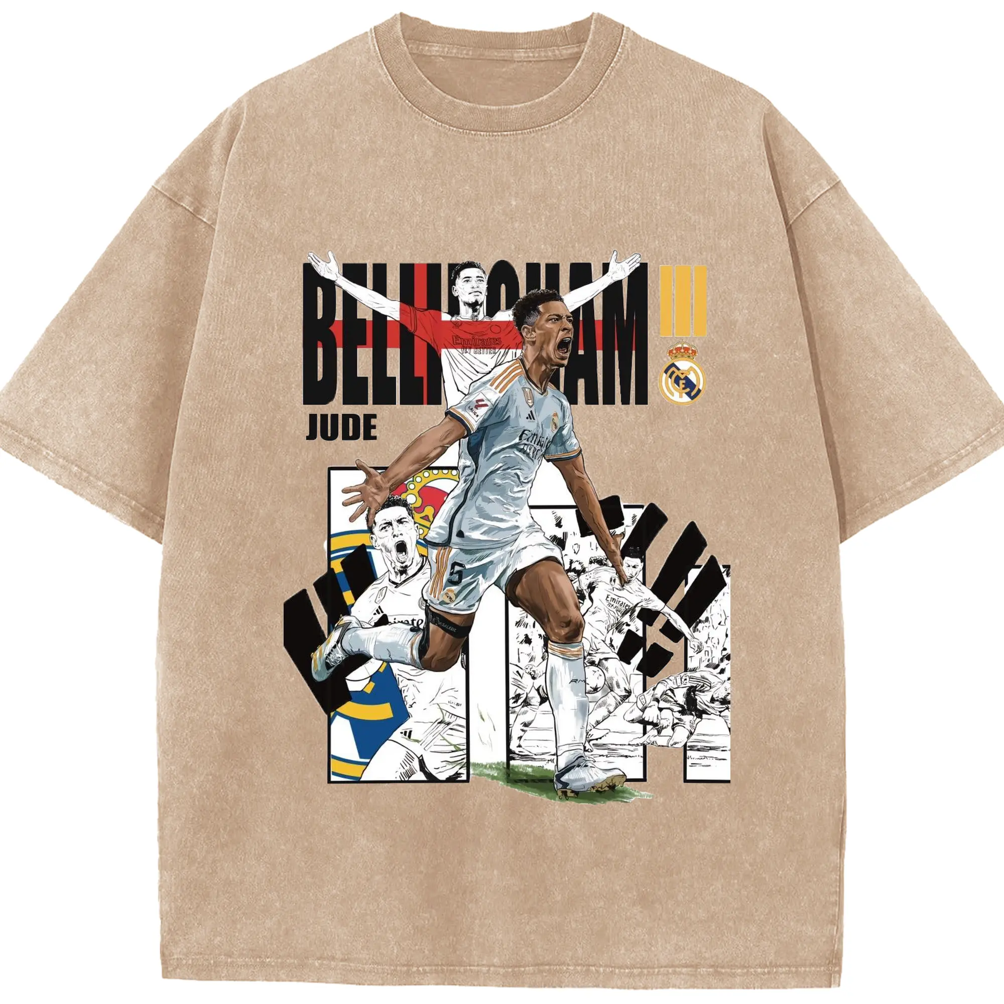 Jude Bellingham Real Madrid Anime Style DIY Shirt - Washed Vintage Look 230g Cotton Oversized T-Shirt With Front Heat Transfer Print – Soft, Lightweight, Stylish Fit – Comfortable Casual Wear For Sports & Everyday Use