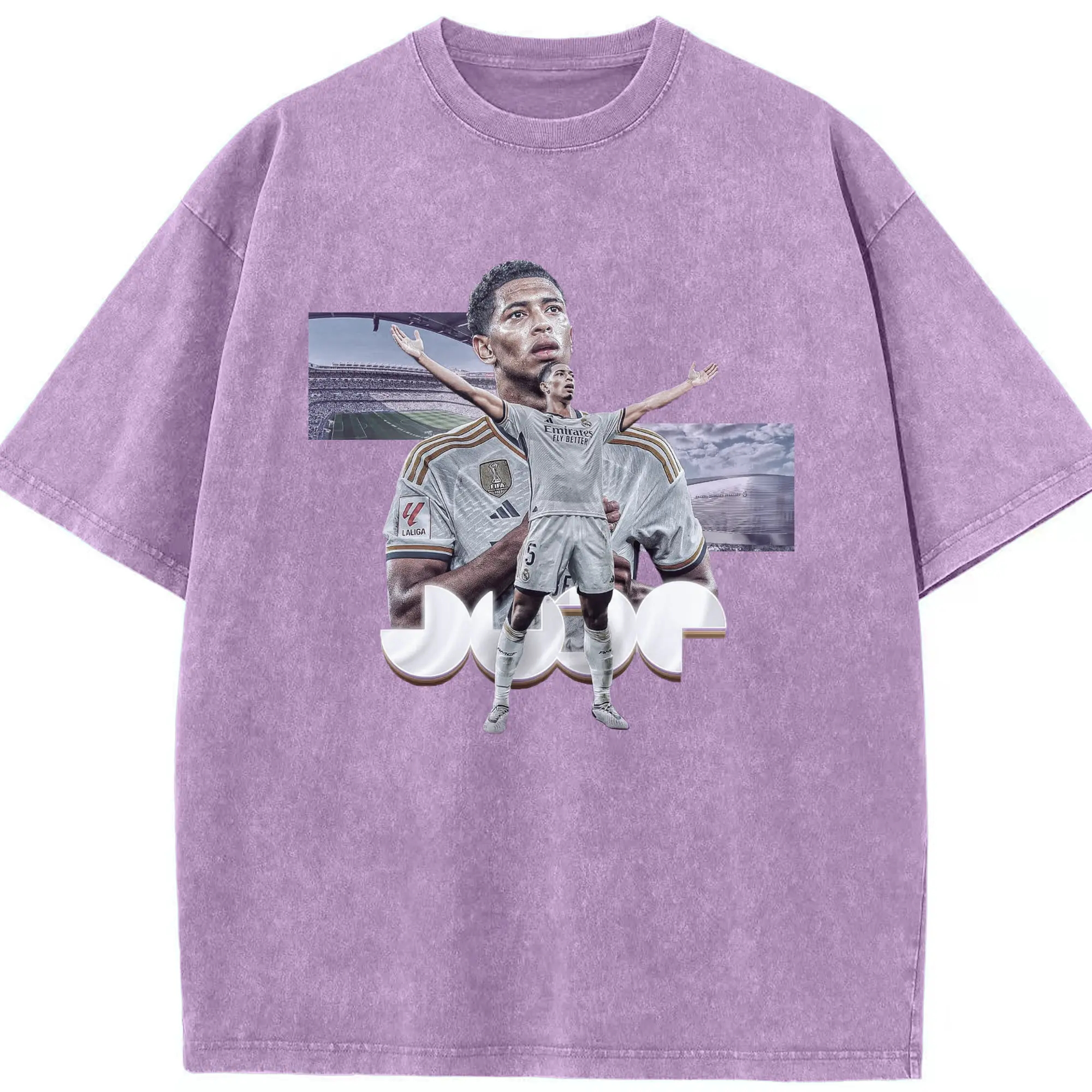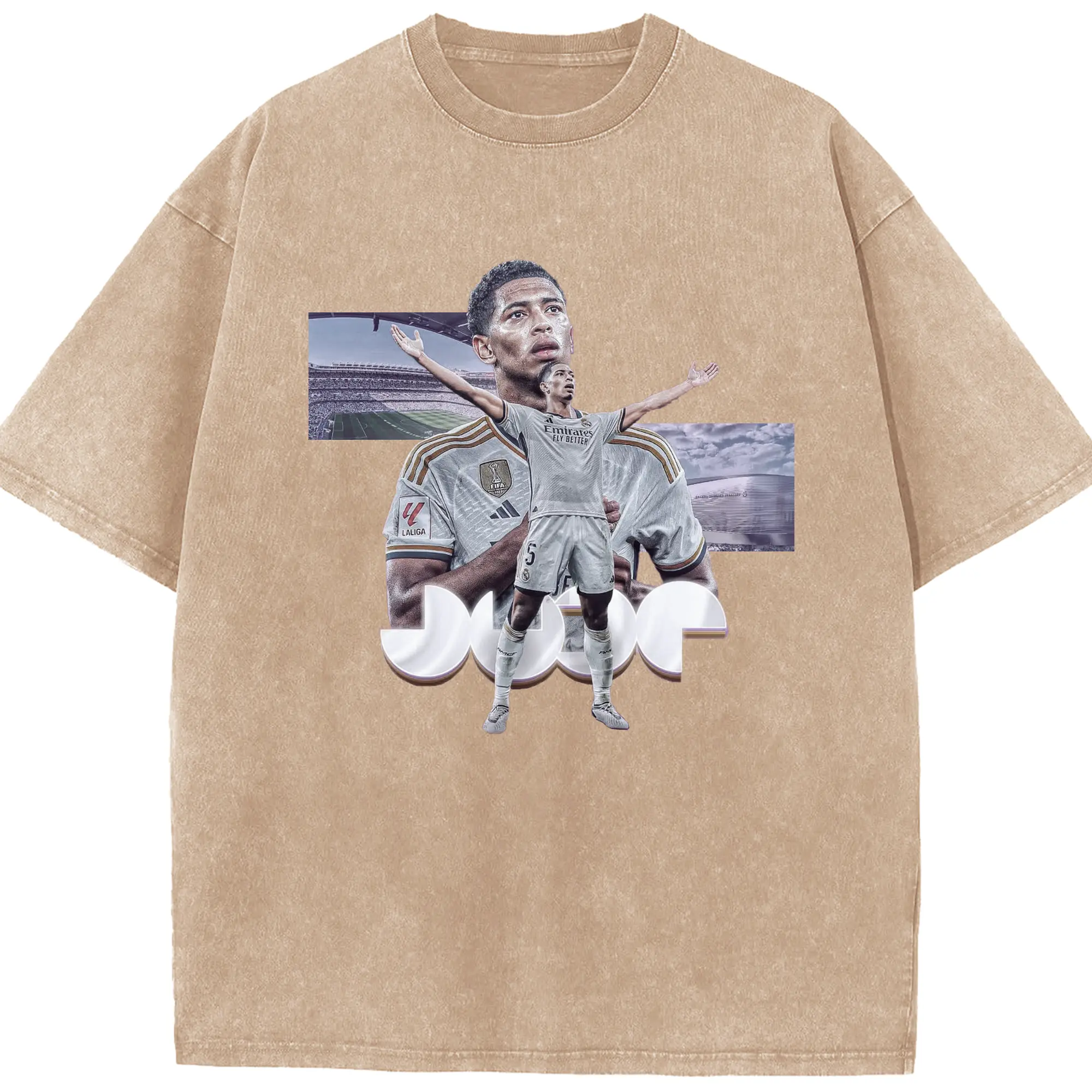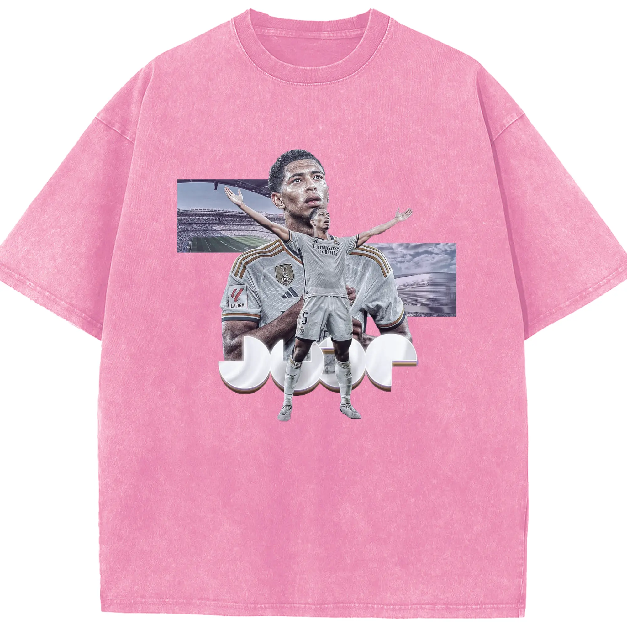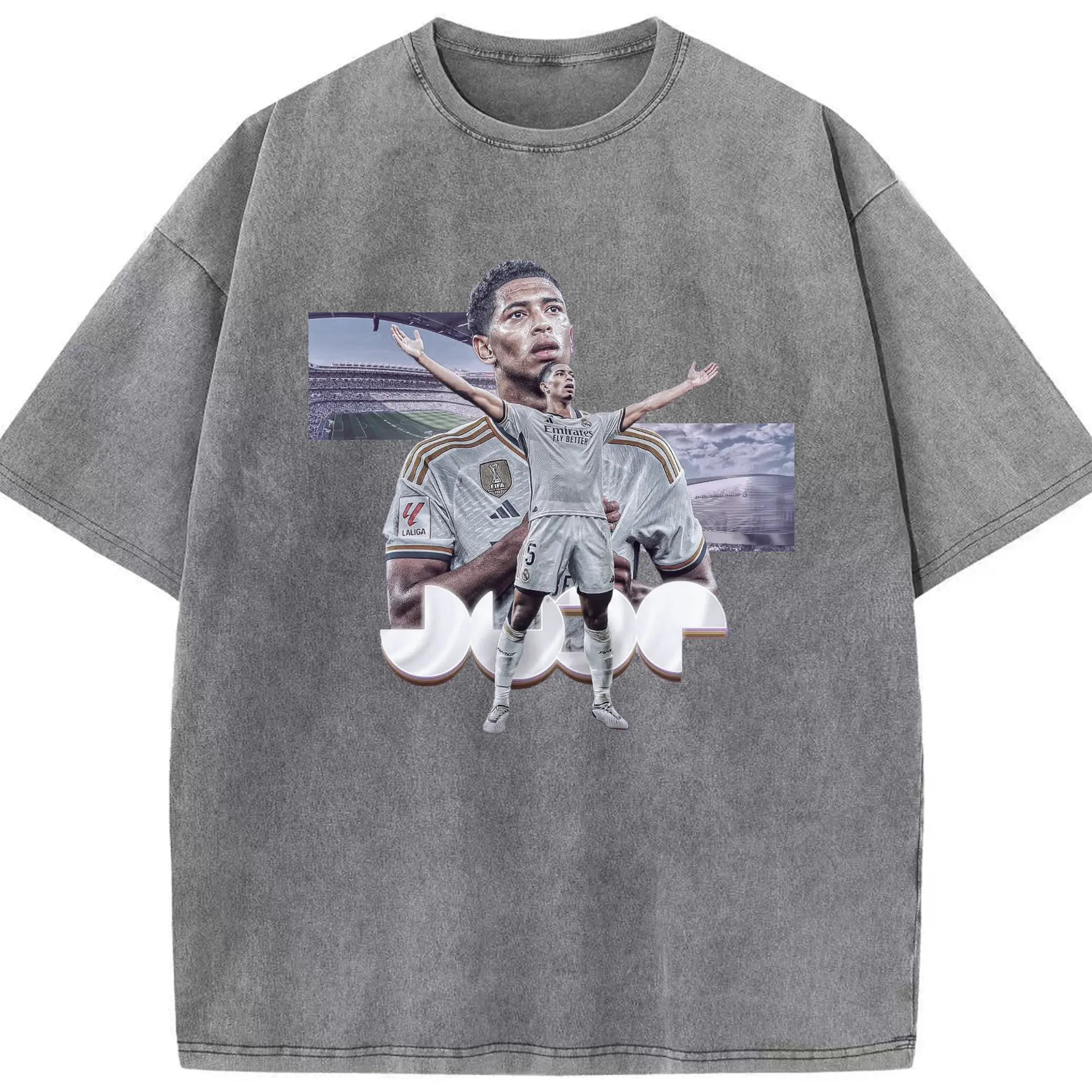 Jude Bellingham Real Madrid Celebration Art DIY - Washed Vintage Look 230g Cotton Oversized T-Shirt With Front Heat Transfer Print – Soft, Lightweight, Stylish Fit – Comfortable Casual Wear For Sports & Everyday Use