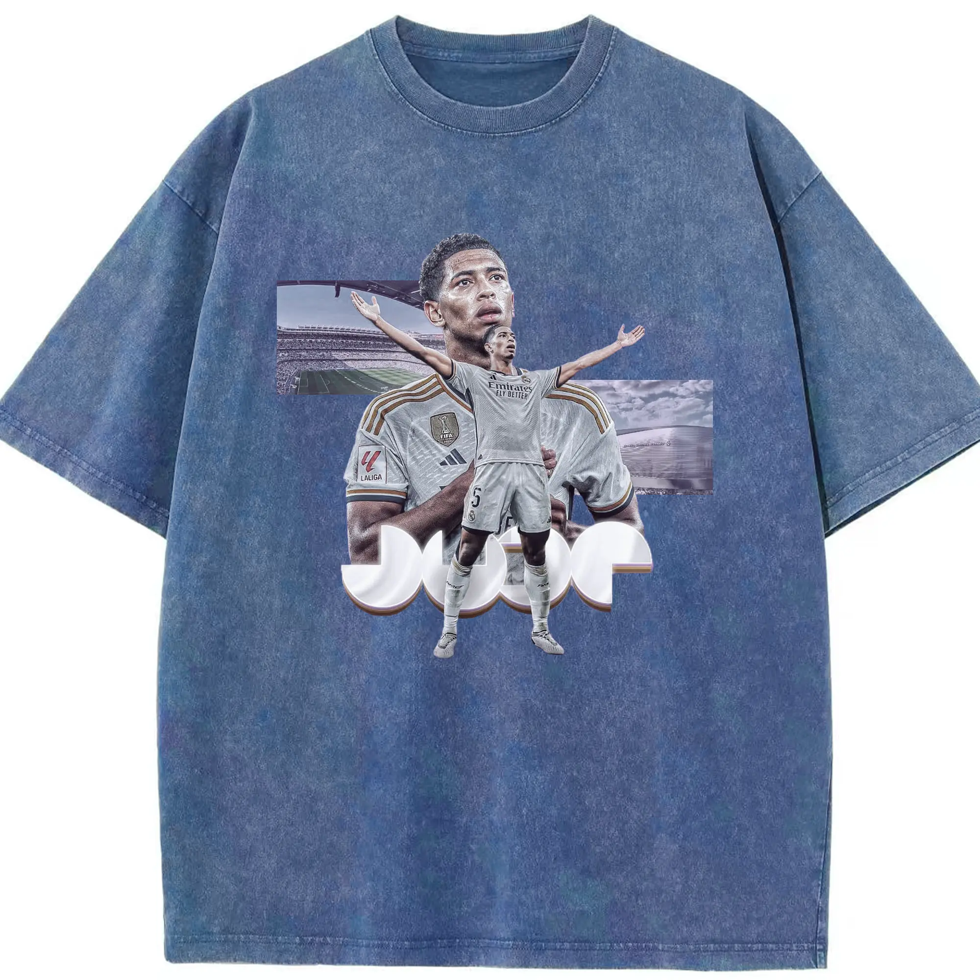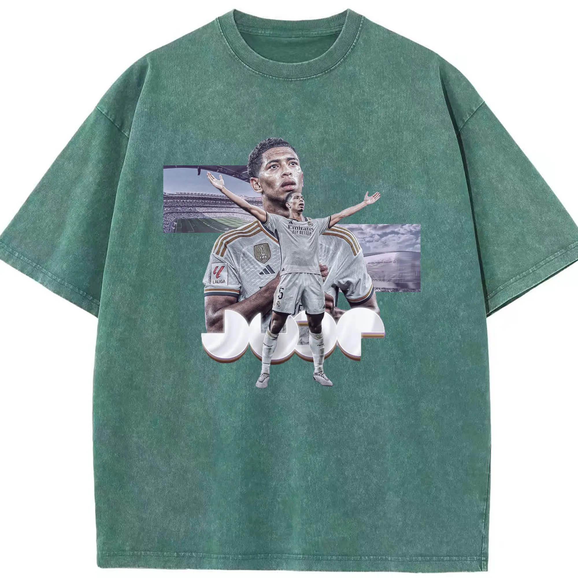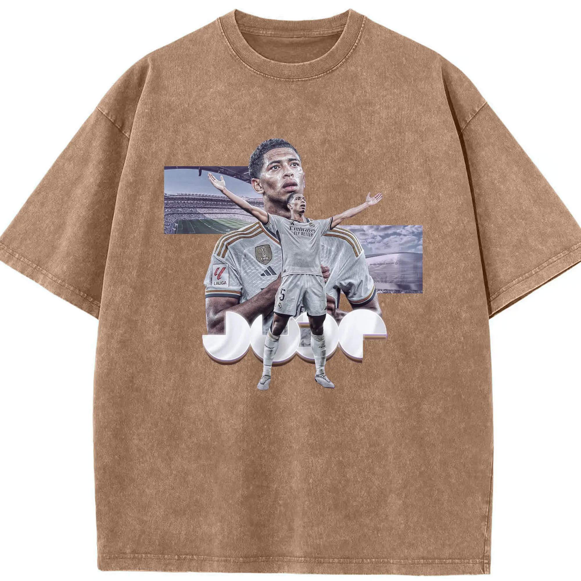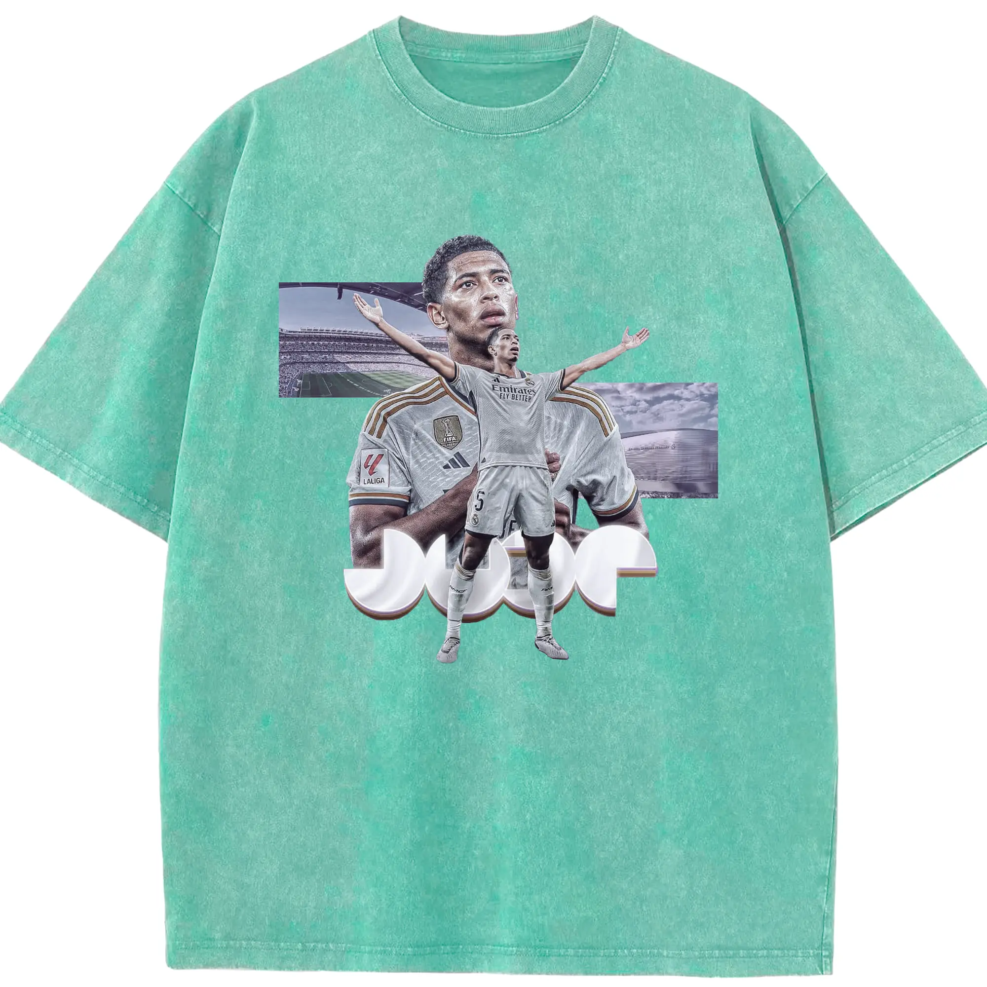 Jude Bellingham Real Madrid Celebration Art DIY - Washed Vintage Look 230g Cotton Oversized T-Shirt With Front Heat Transfer Print – Soft, Lightweight, Stylish Fit – Comfortable Casual Wear For Sports & Everyday Use