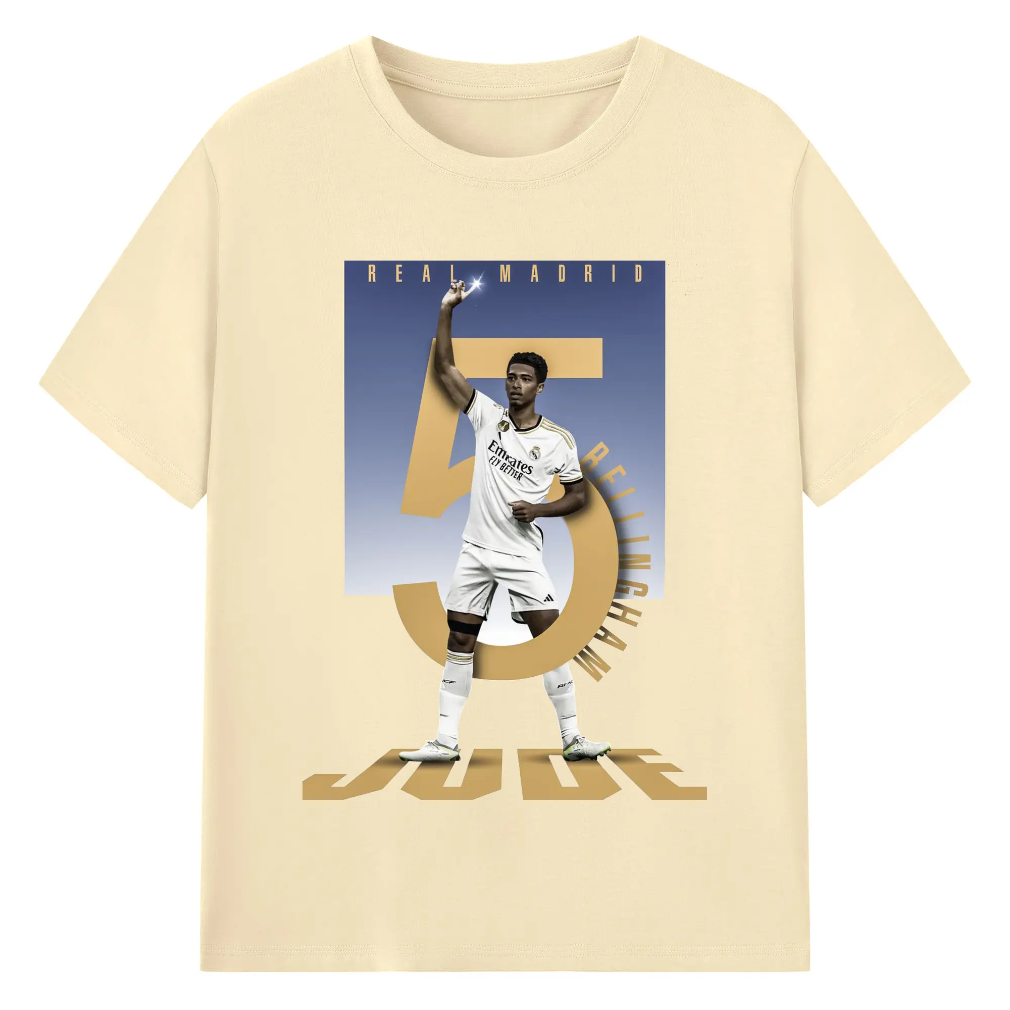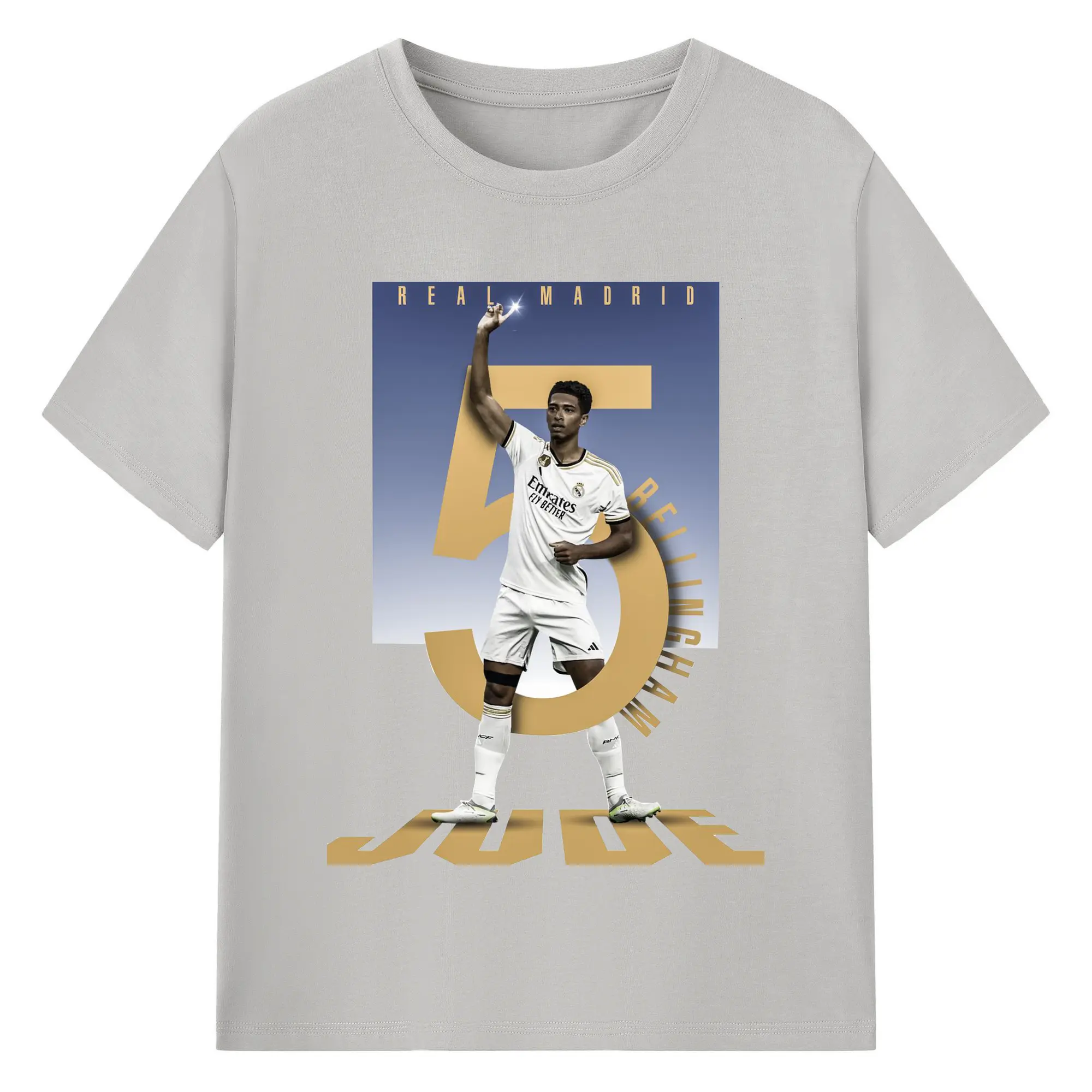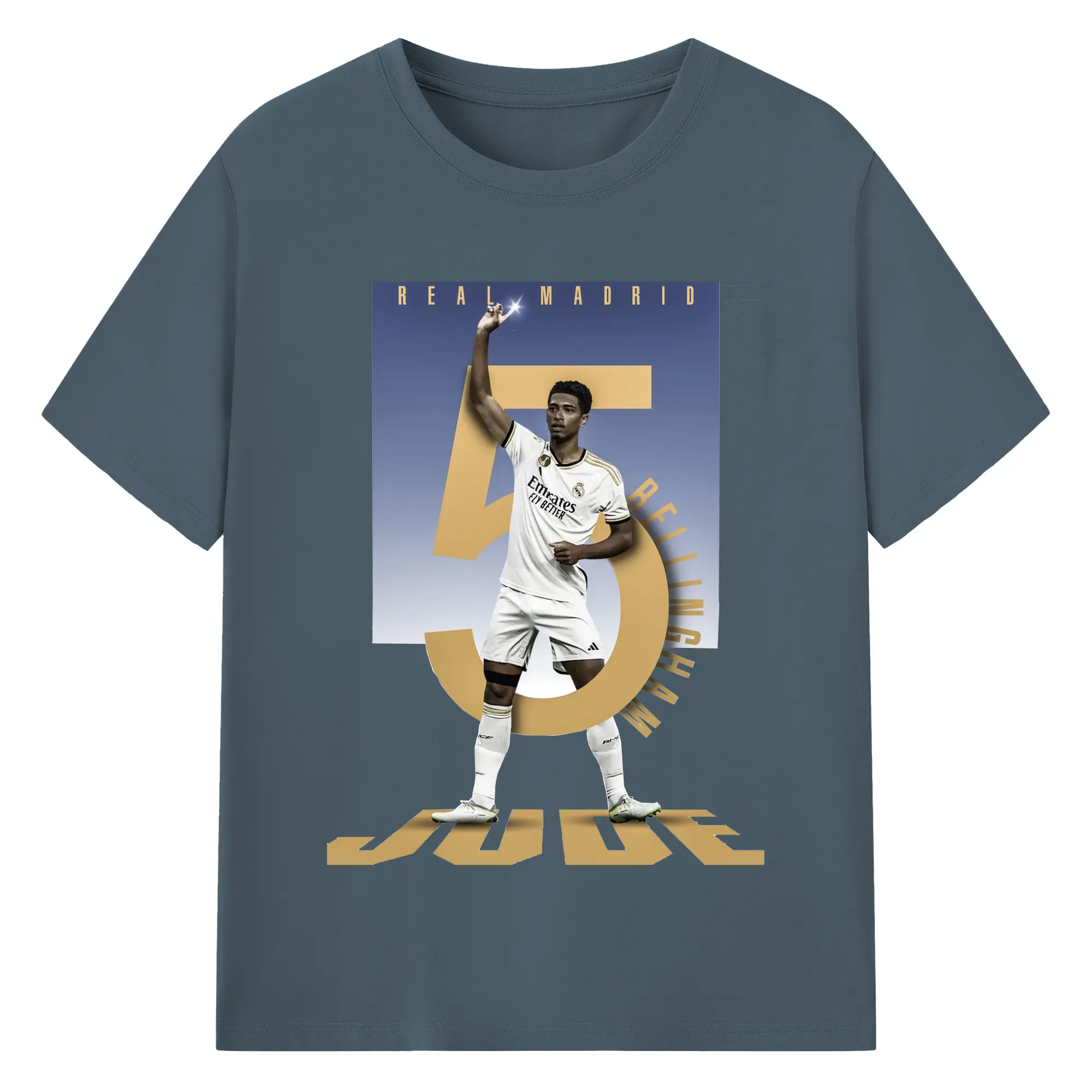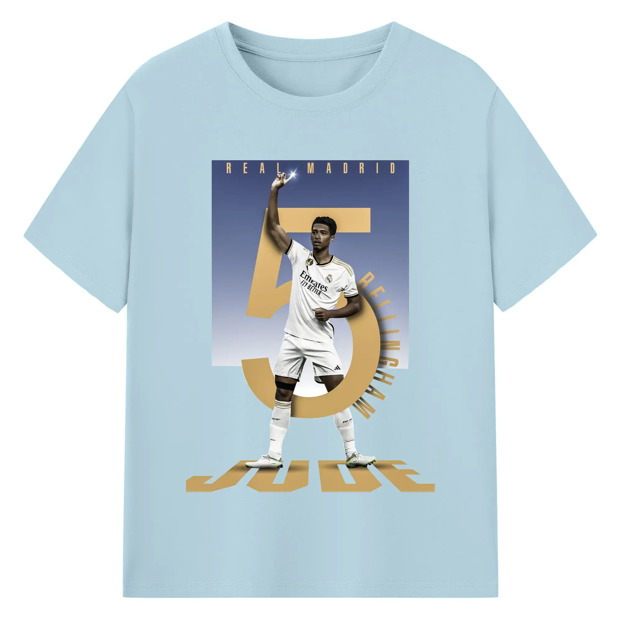 Jude Bellingham Real Madrid Number 5 DIY Shirt - 180g Cotton T-Shirt With Front Heat Transfer Print – Soft, Lightweight, Fitted Design – Comfortable Casual Wear For Sports & Everyday Use