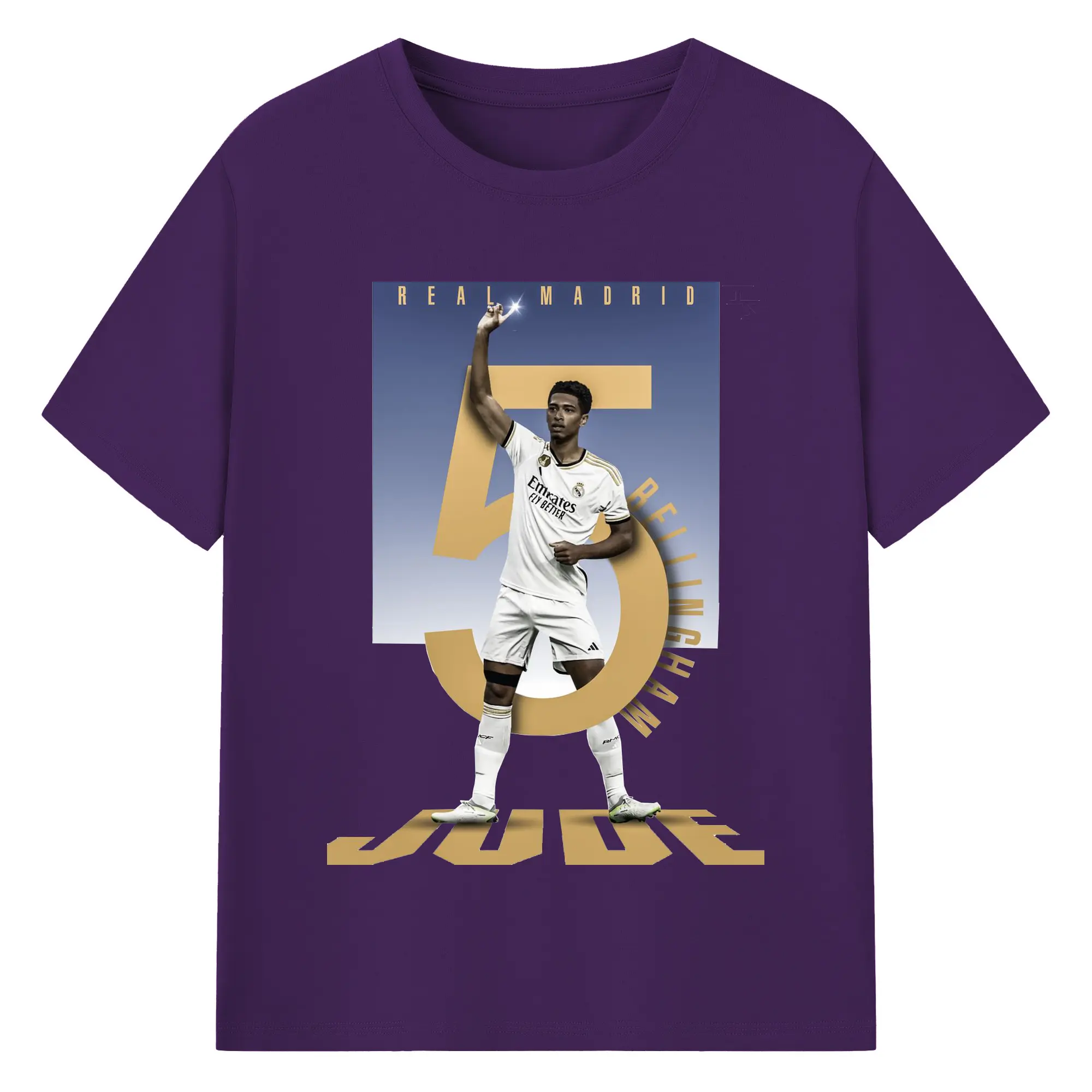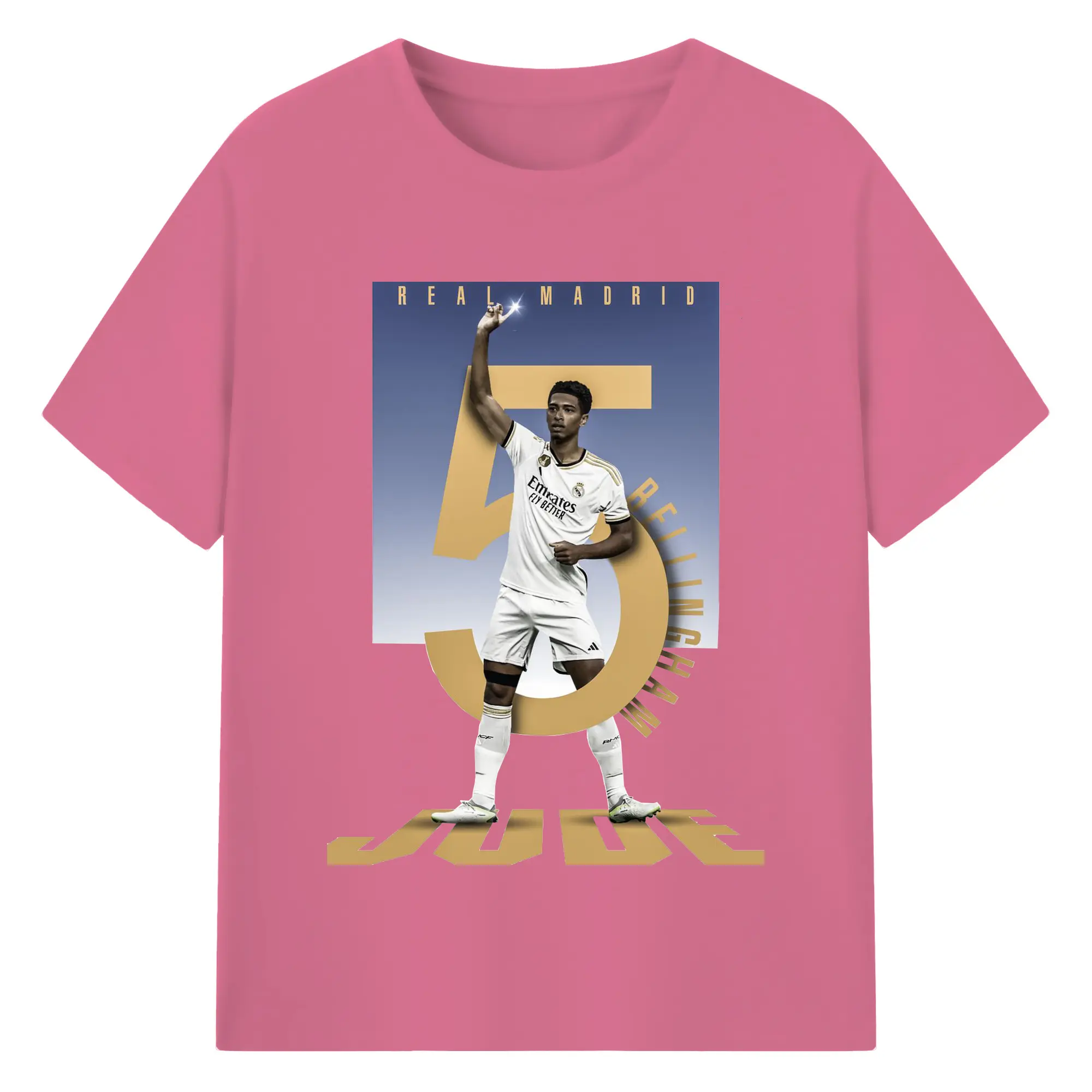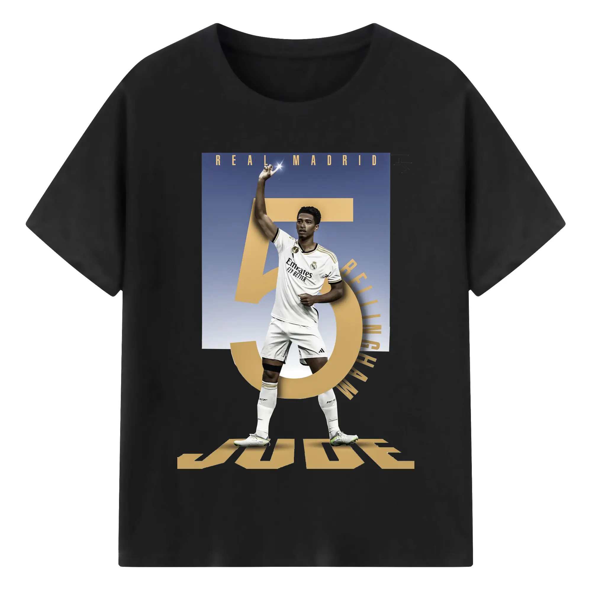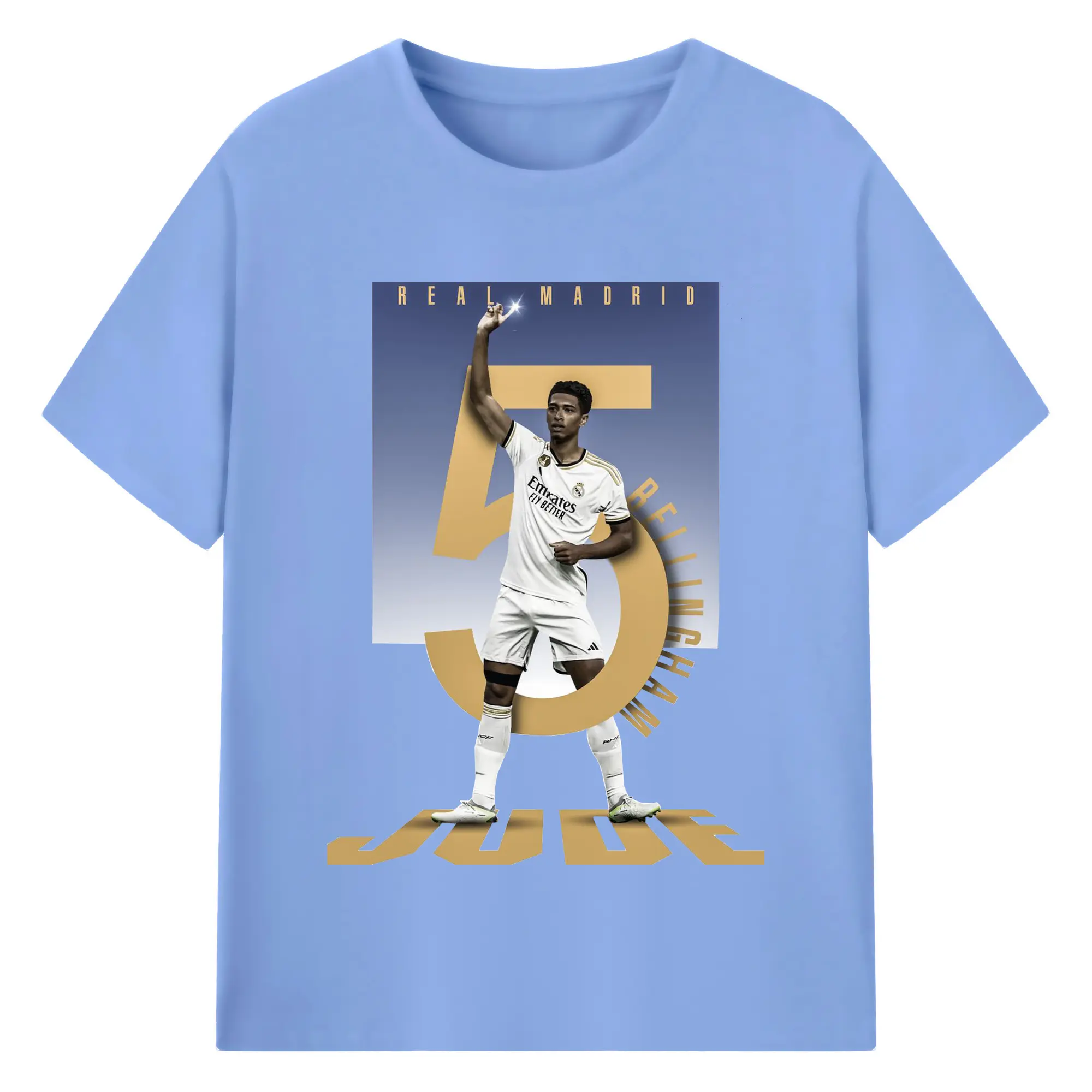 Jude Bellingham Real Madrid Number 5 DIY Shirt - 180g Cotton T-Shirt With Front Heat Transfer Print – Soft, Lightweight, Fitted Design – Comfortable Casual Wear For Sports & Everyday Use