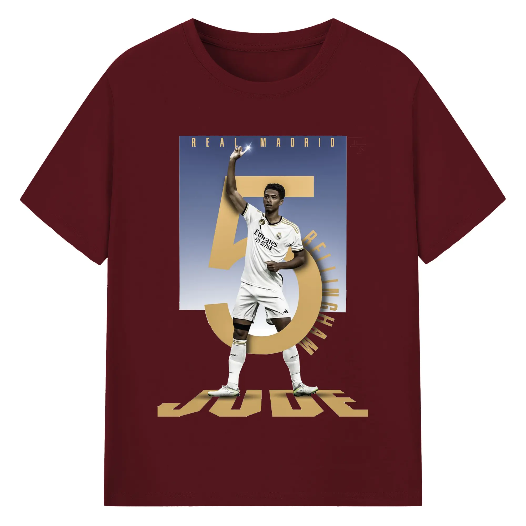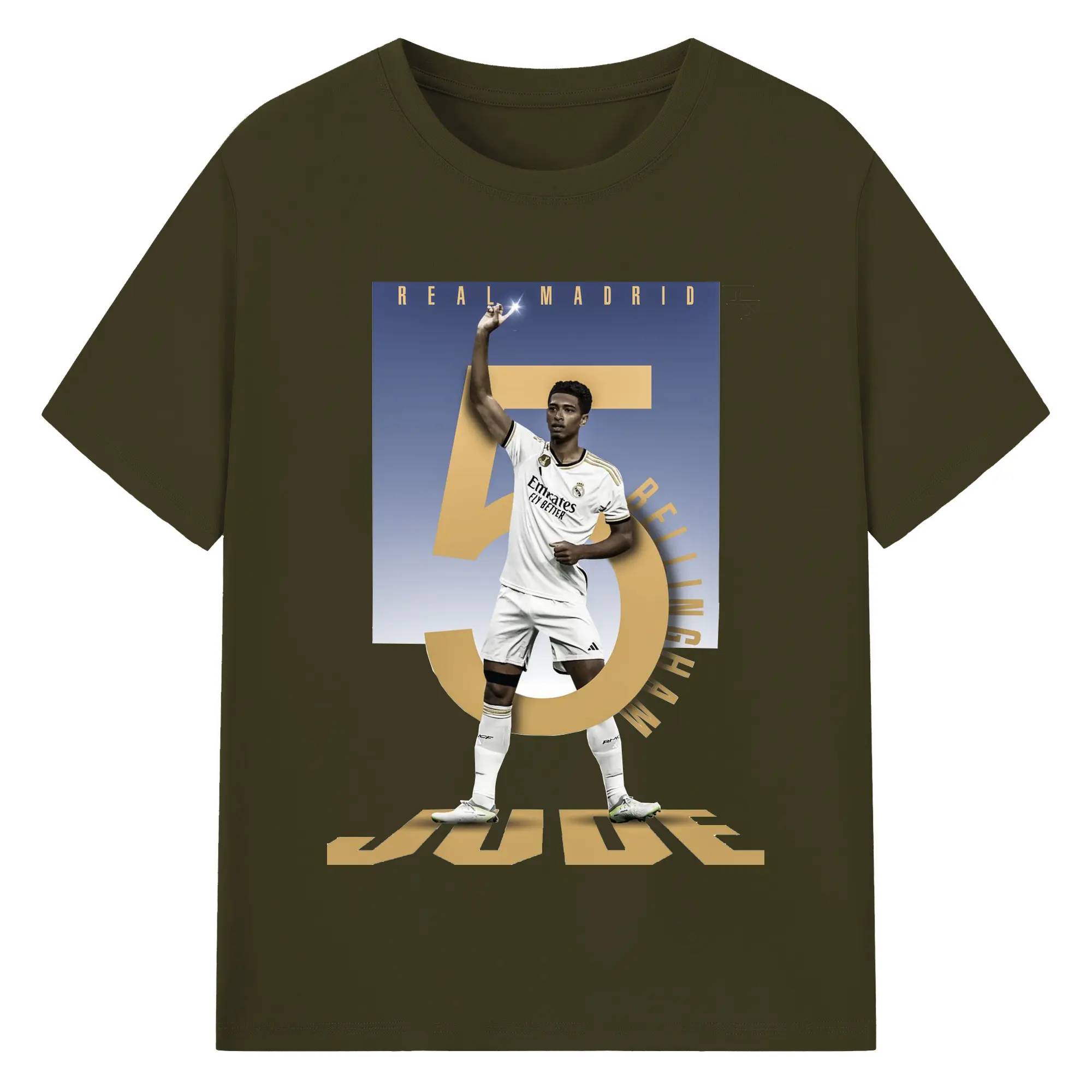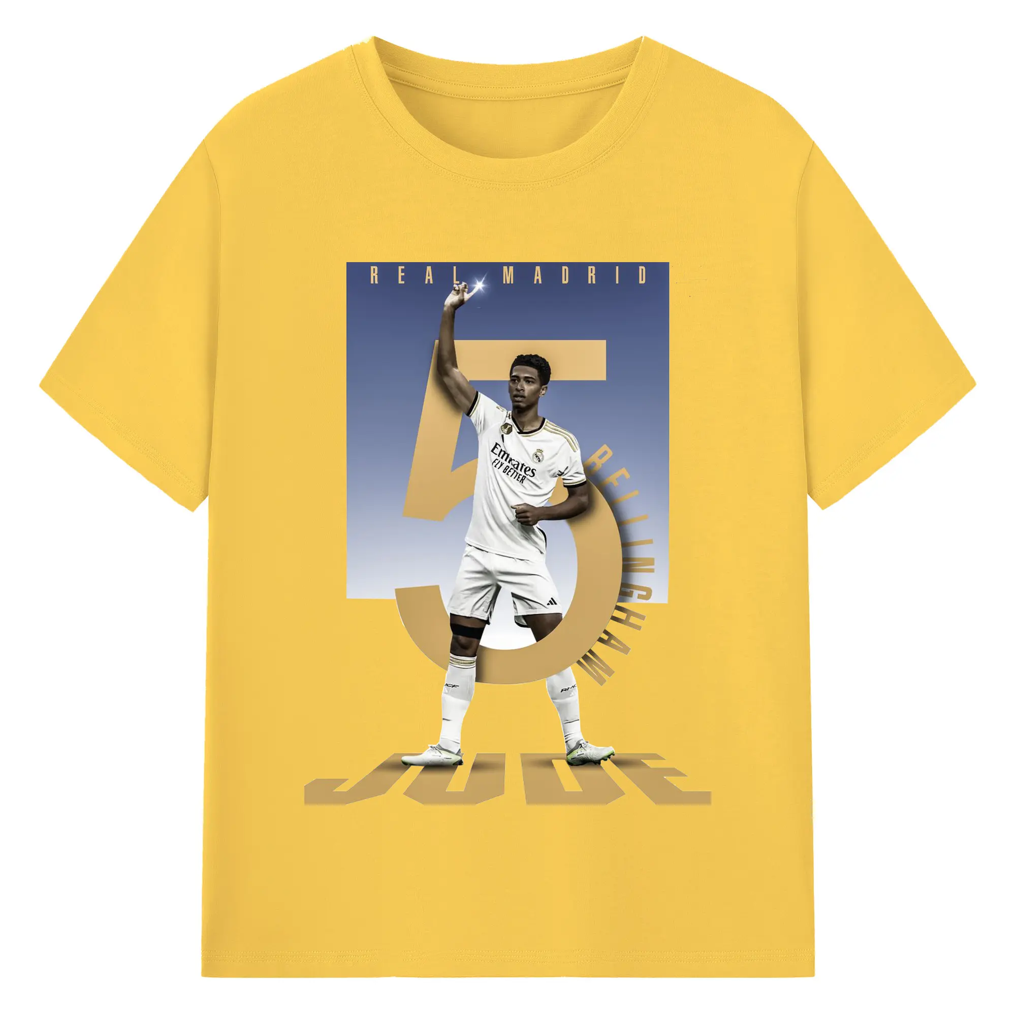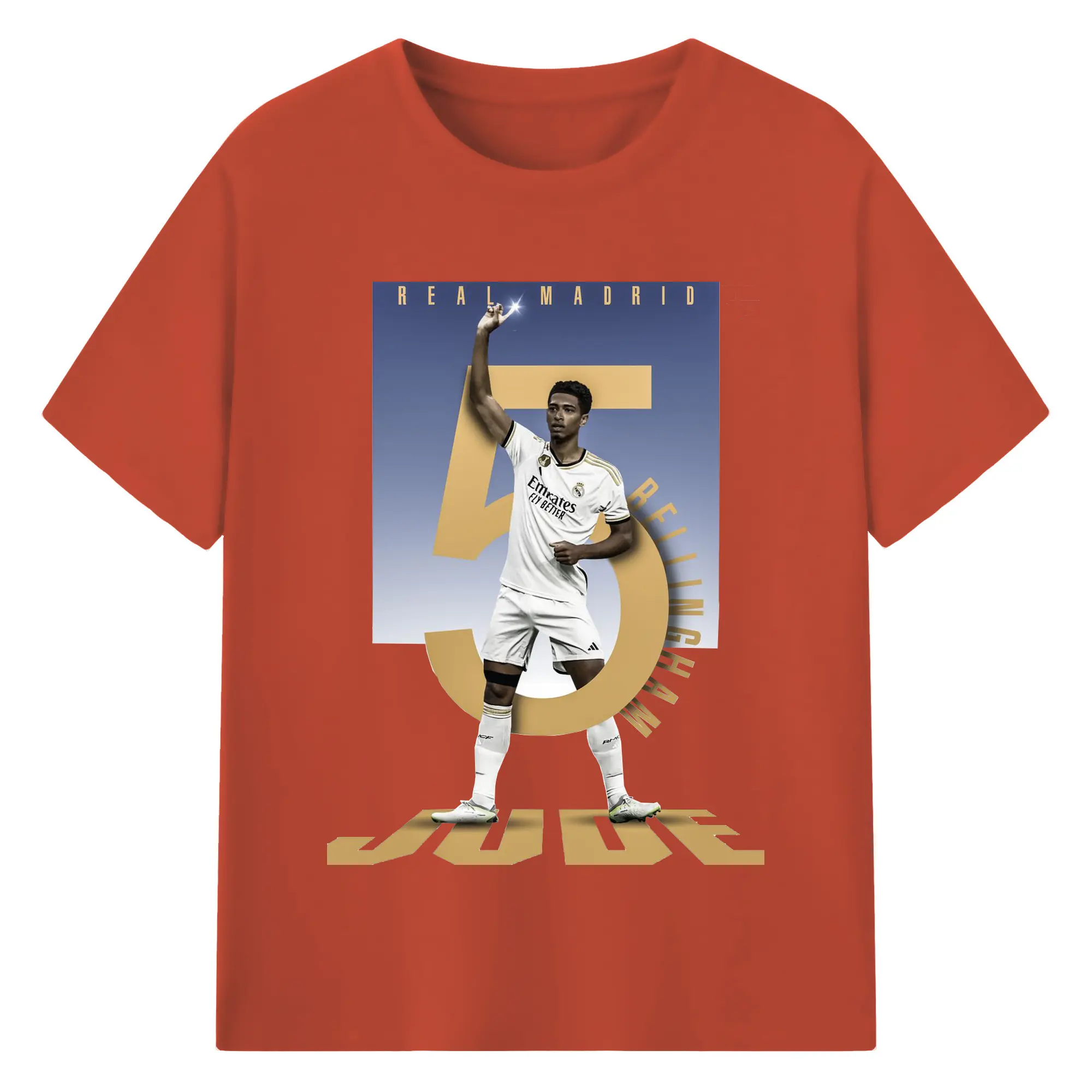 Jude Bellingham Real Madrid Number 5 DIY Shirt - 180g Cotton T-Shirt With Front Heat Transfer Print – Soft, Lightweight, Fitted Design – Comfortable Casual Wear For Sports & Everyday Use
