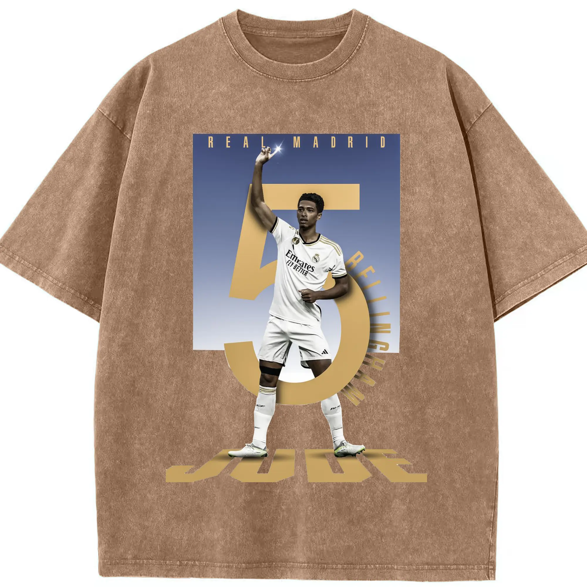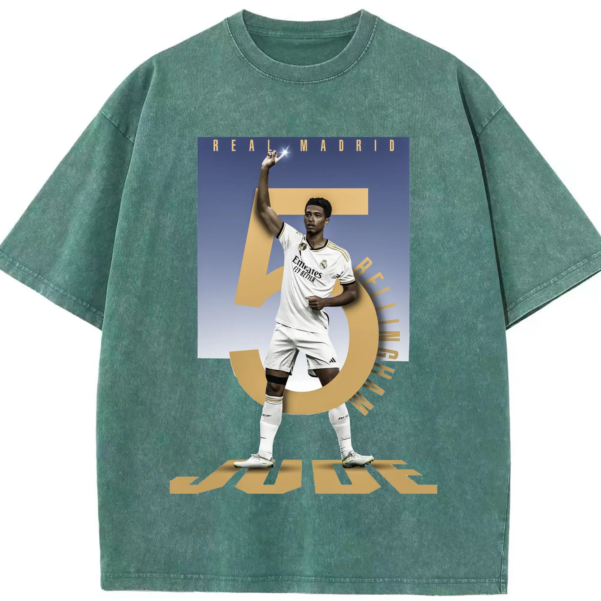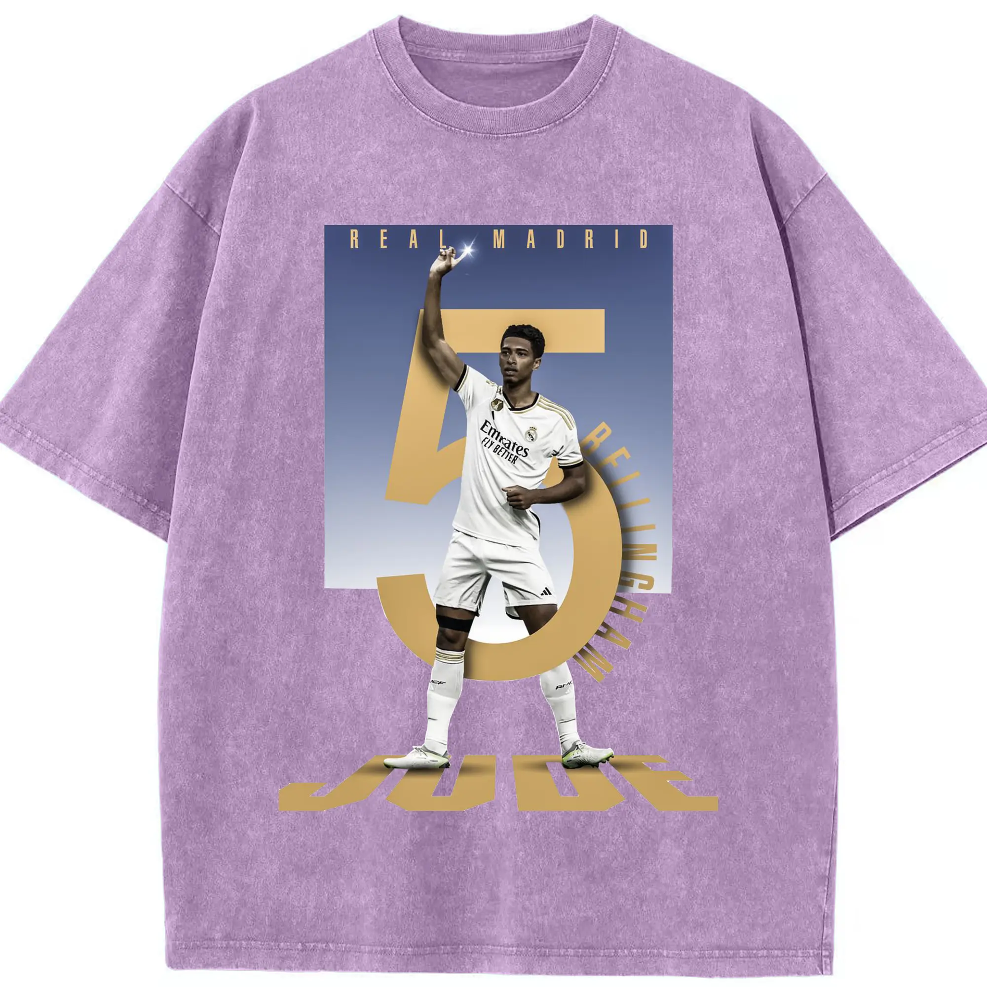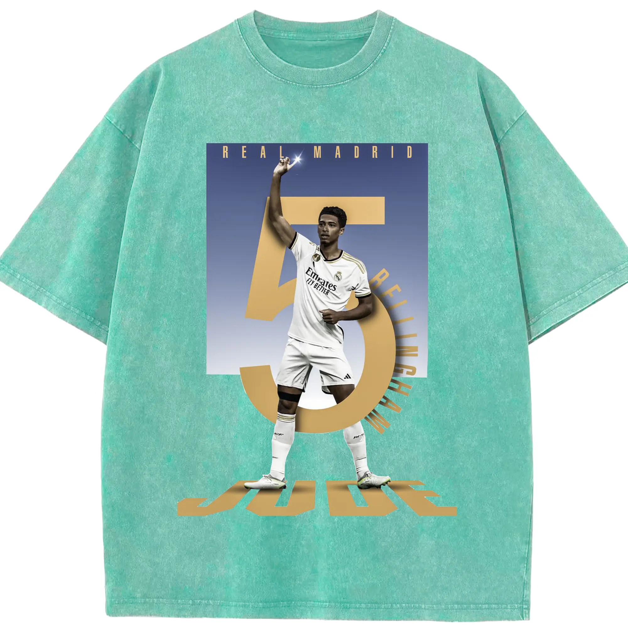 Jude Bellingham Real Madrid Number 5 DIY Shirt - Washed Vintage Look 230g Cotton Oversized T-Shirt With Front Heat Transfer Print – Soft, Lightweight, Stylish Fit – Comfortable Casual Wear For Sports & Everyday Use