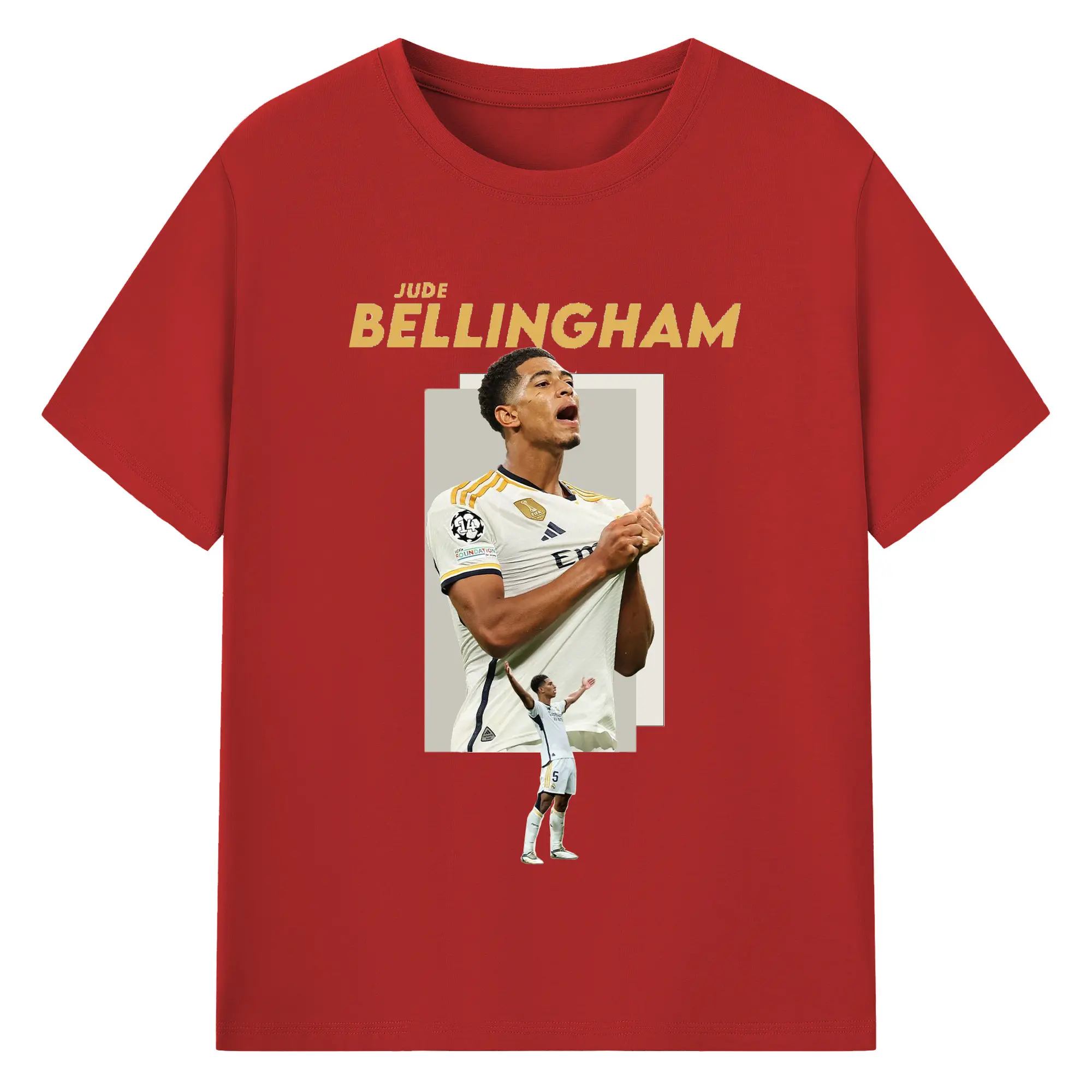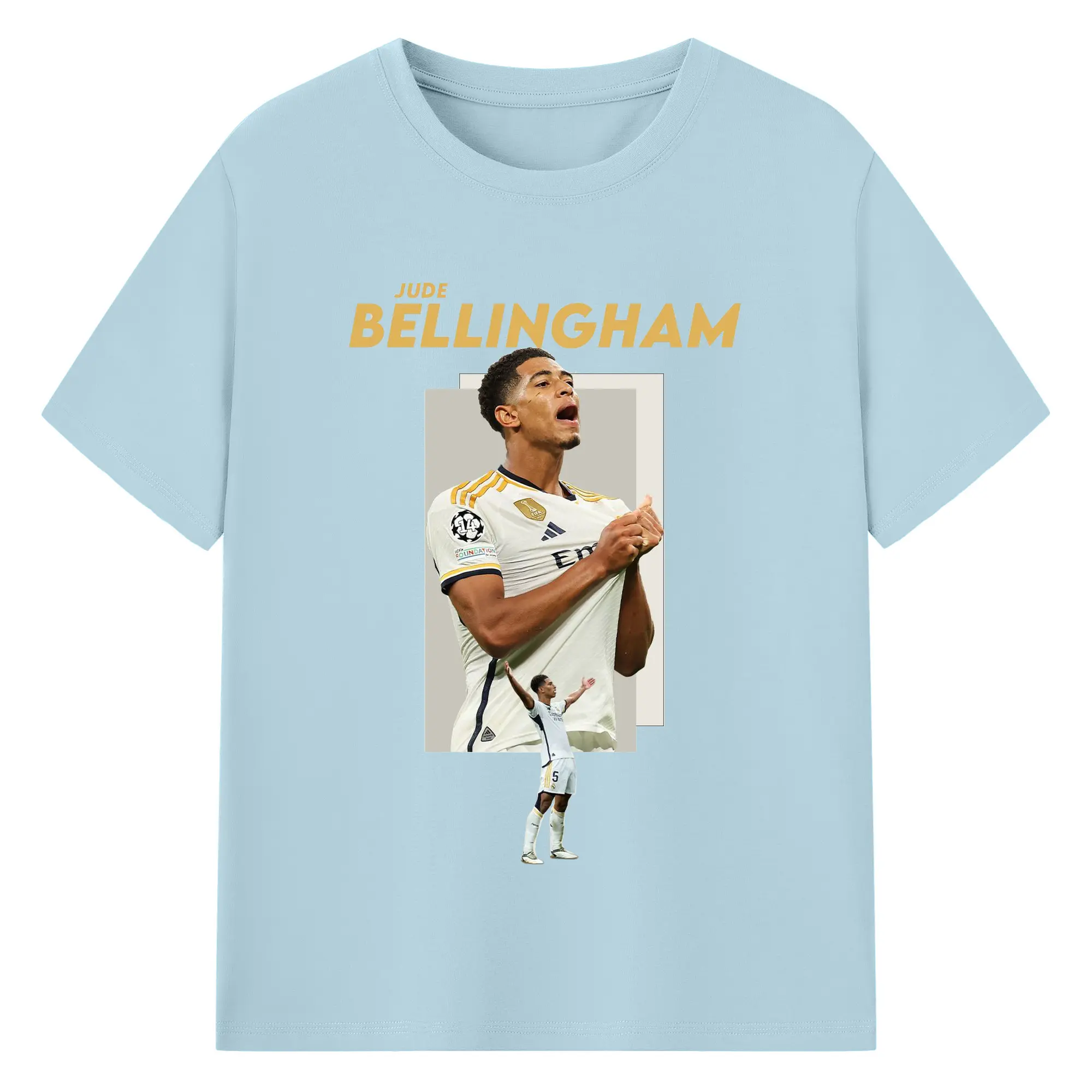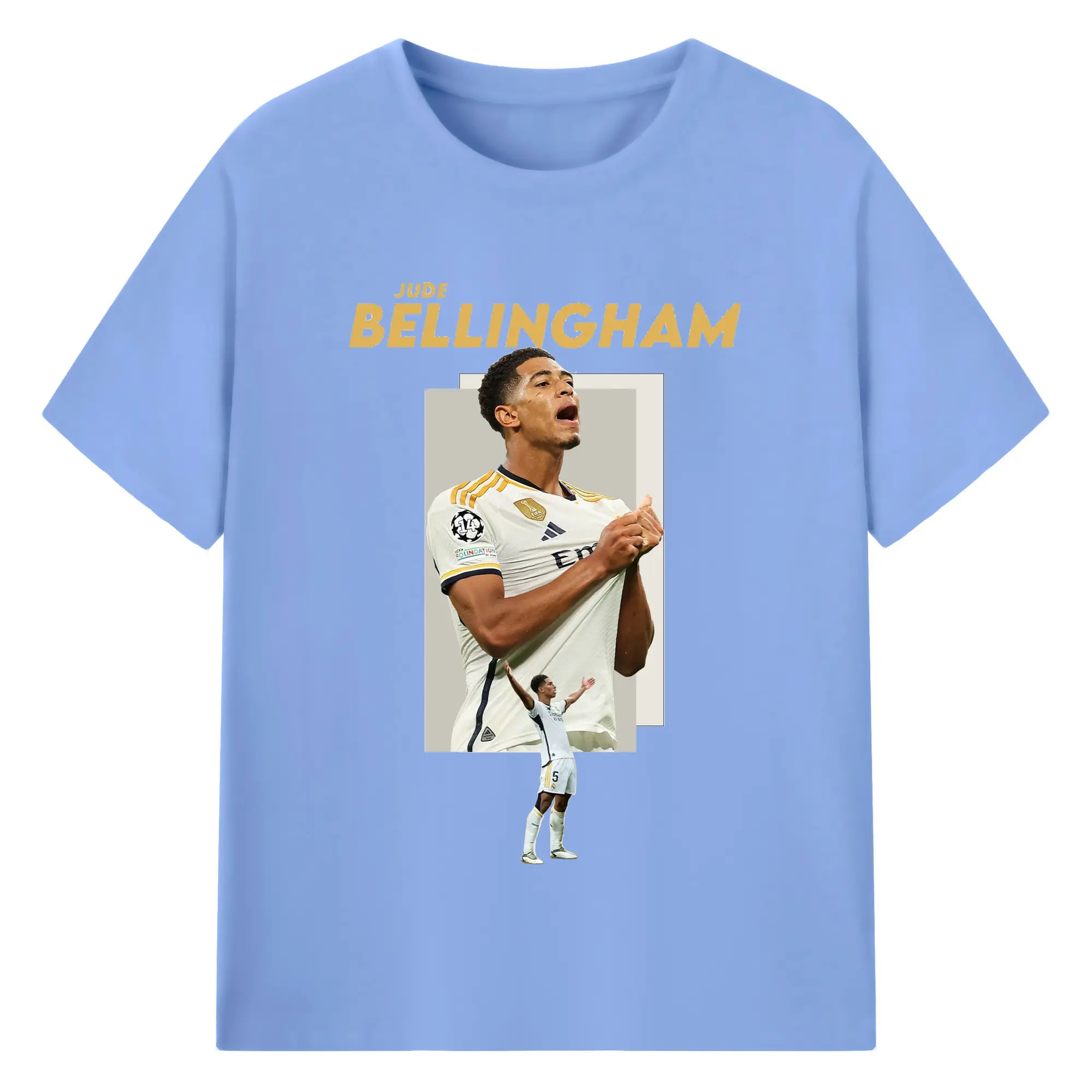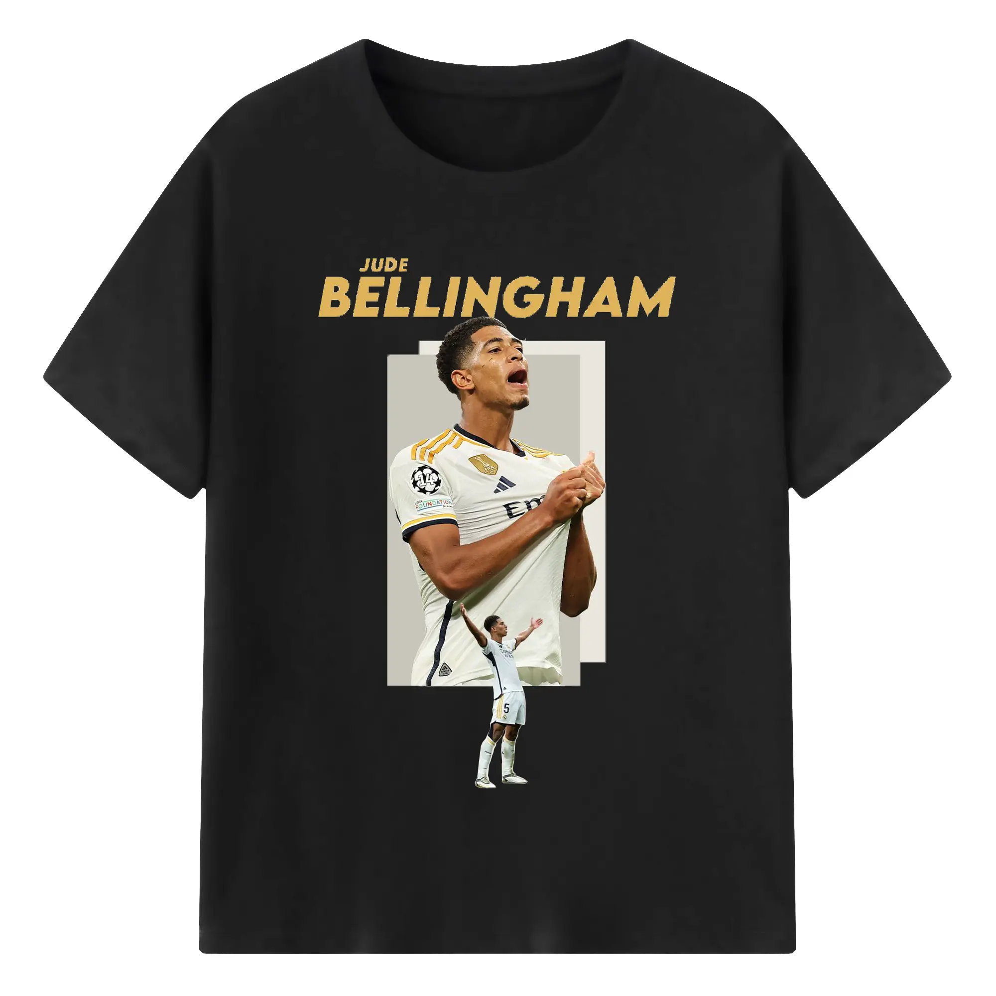 Jude Bellingham Real Madrid Soccer Celebration DIY Shirt - 180g Cotton T-Shirt With Front Heat Transfer Print – Soft, Lightweight, Fitted Design – Comfortable Casual Wear For Sports & Everyday Use
