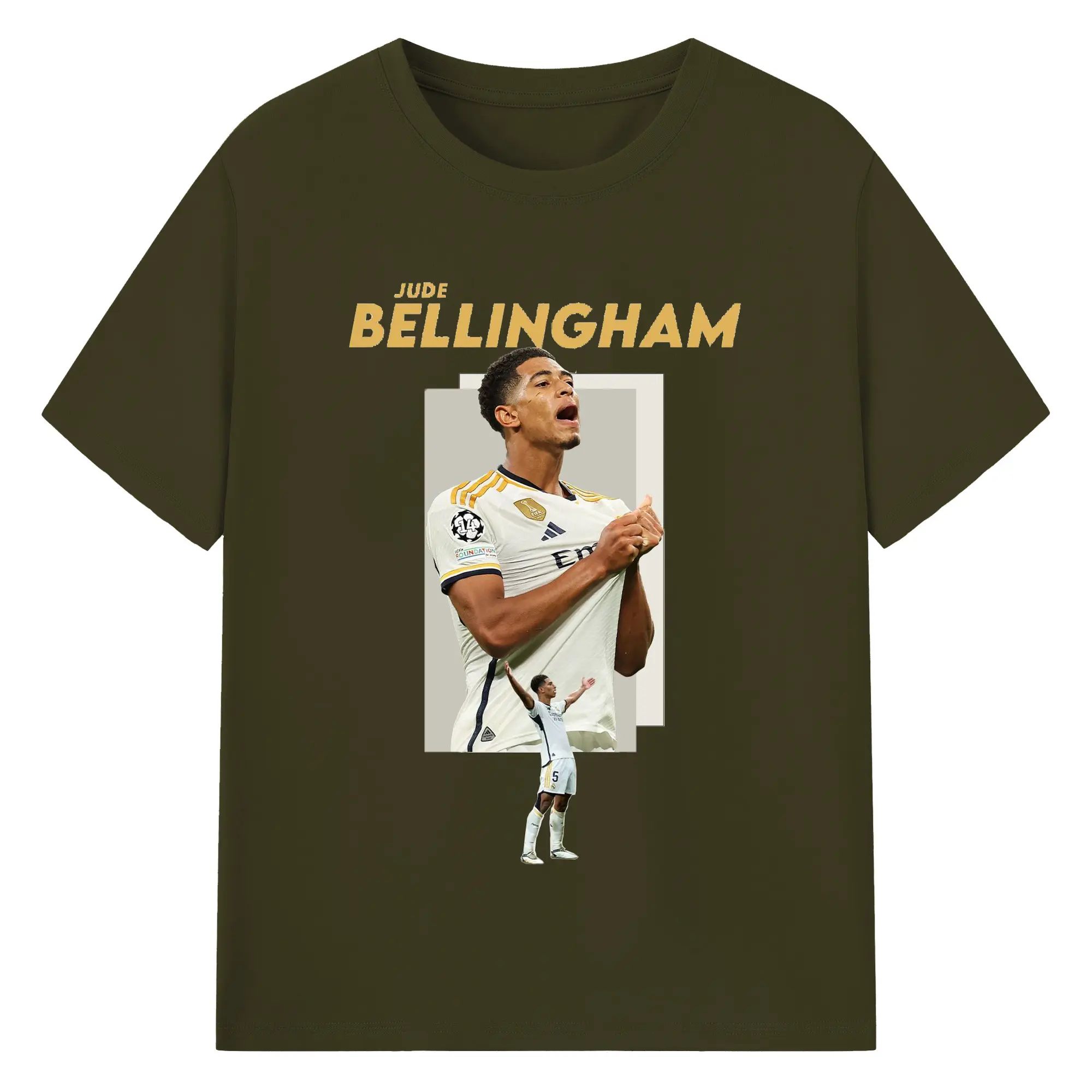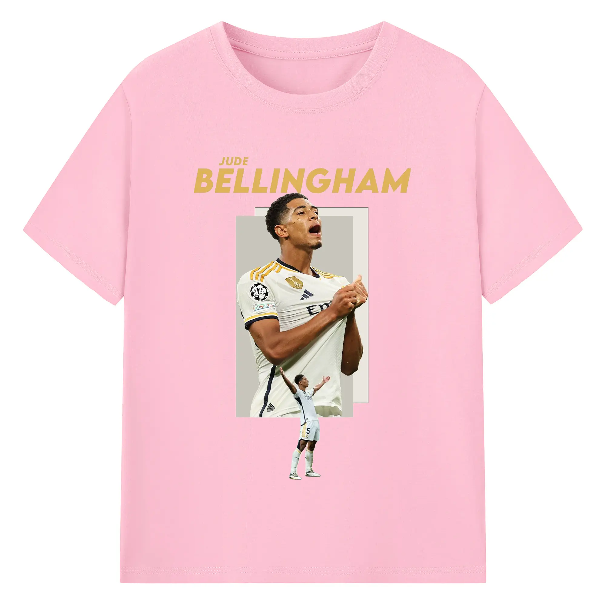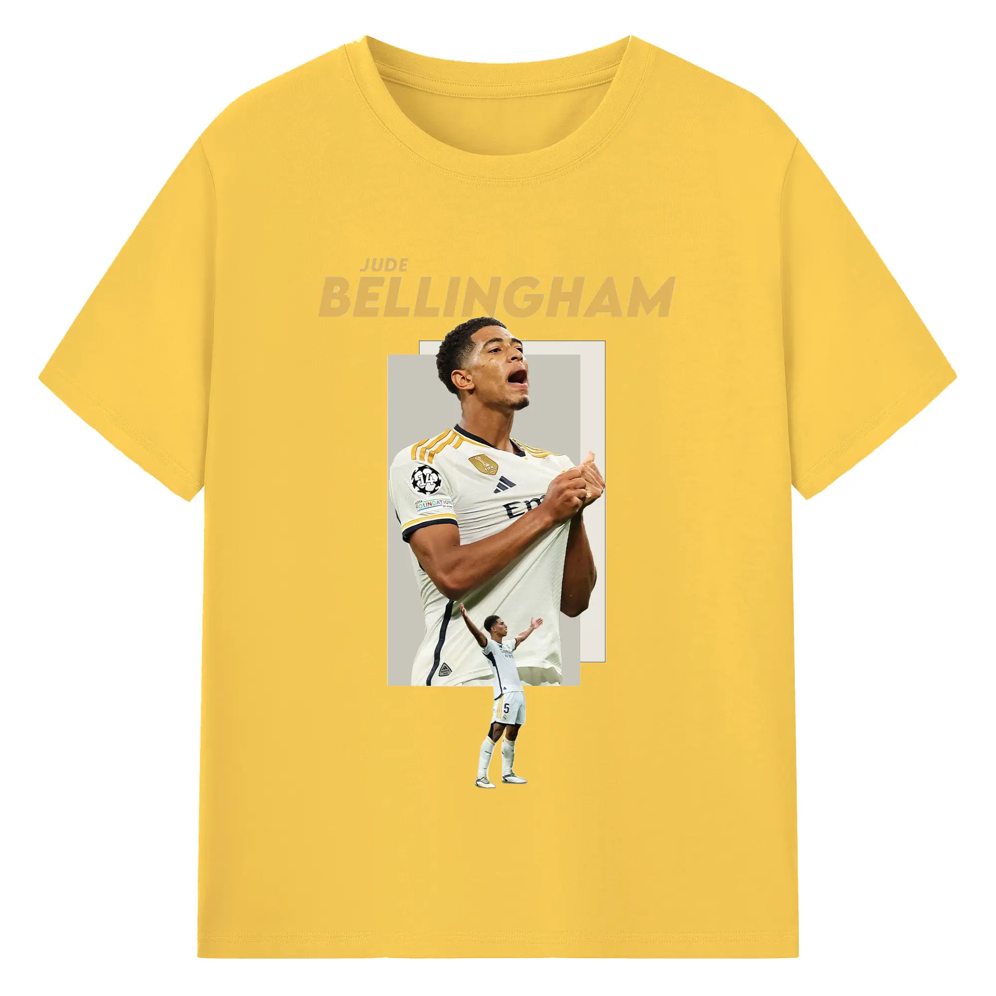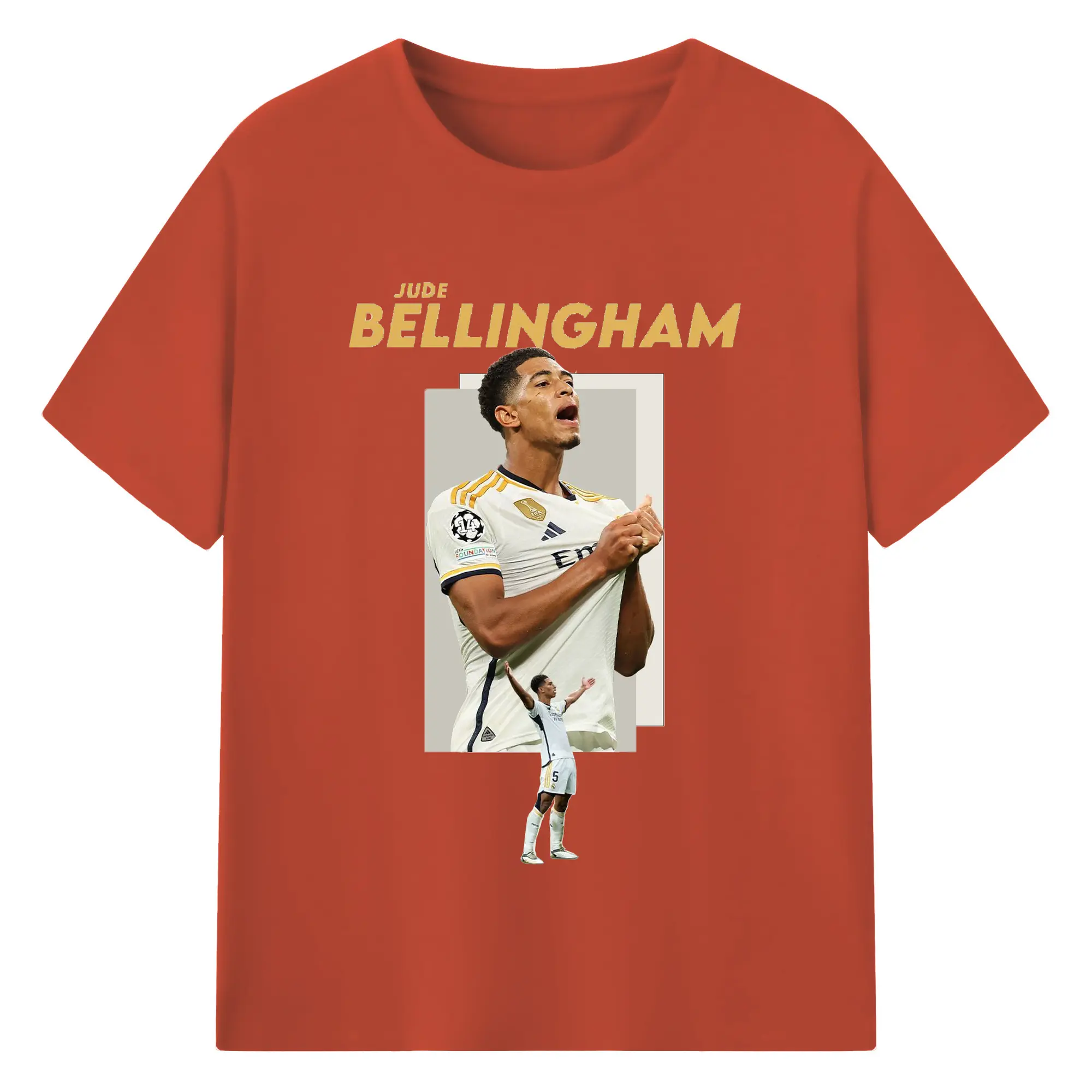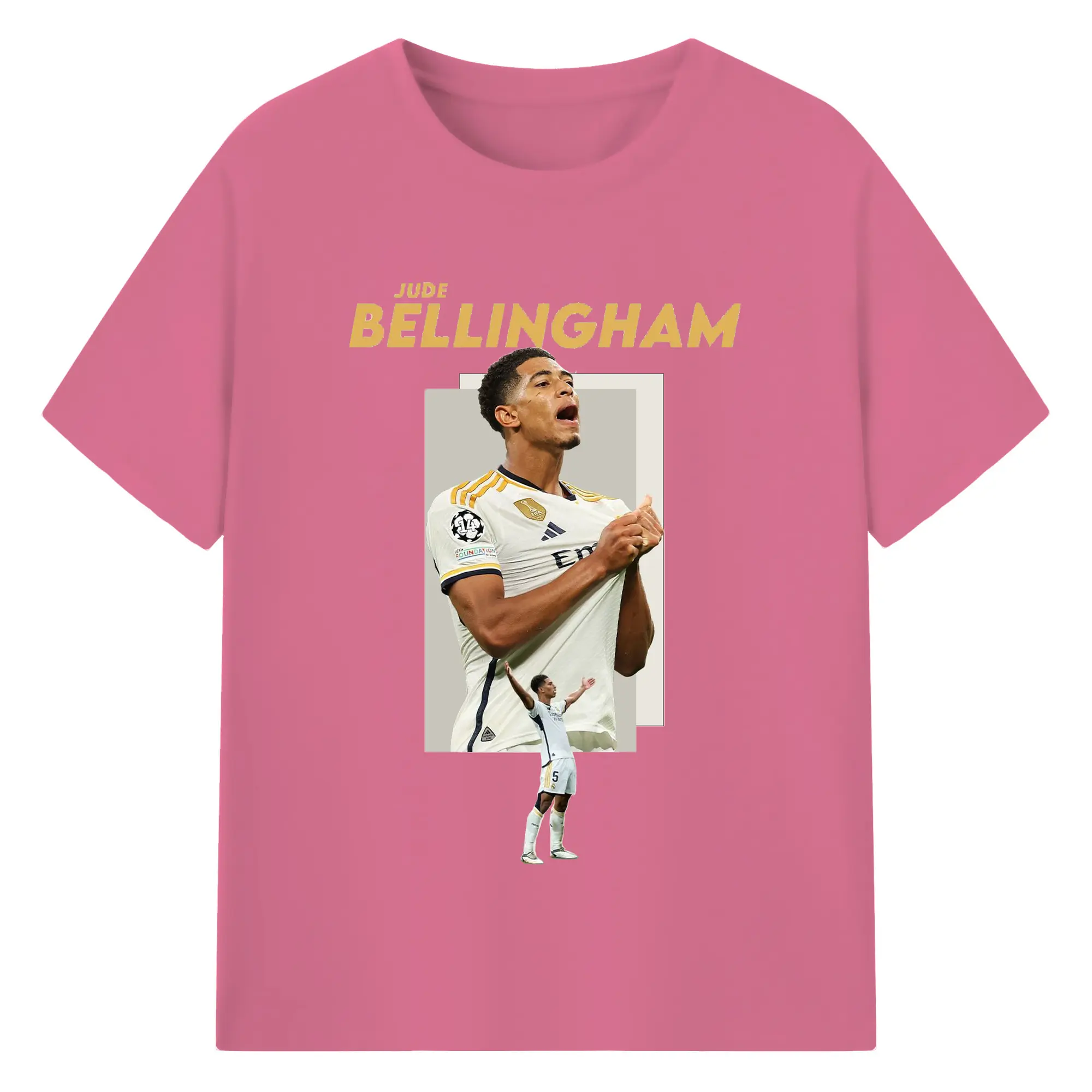 Jude Bellingham Real Madrid Soccer Celebration DIY Shirt - 180g Cotton T-Shirt With Front Heat Transfer Print – Soft, Lightweight, Fitted Design – Comfortable Casual Wear For Sports & Everyday Use