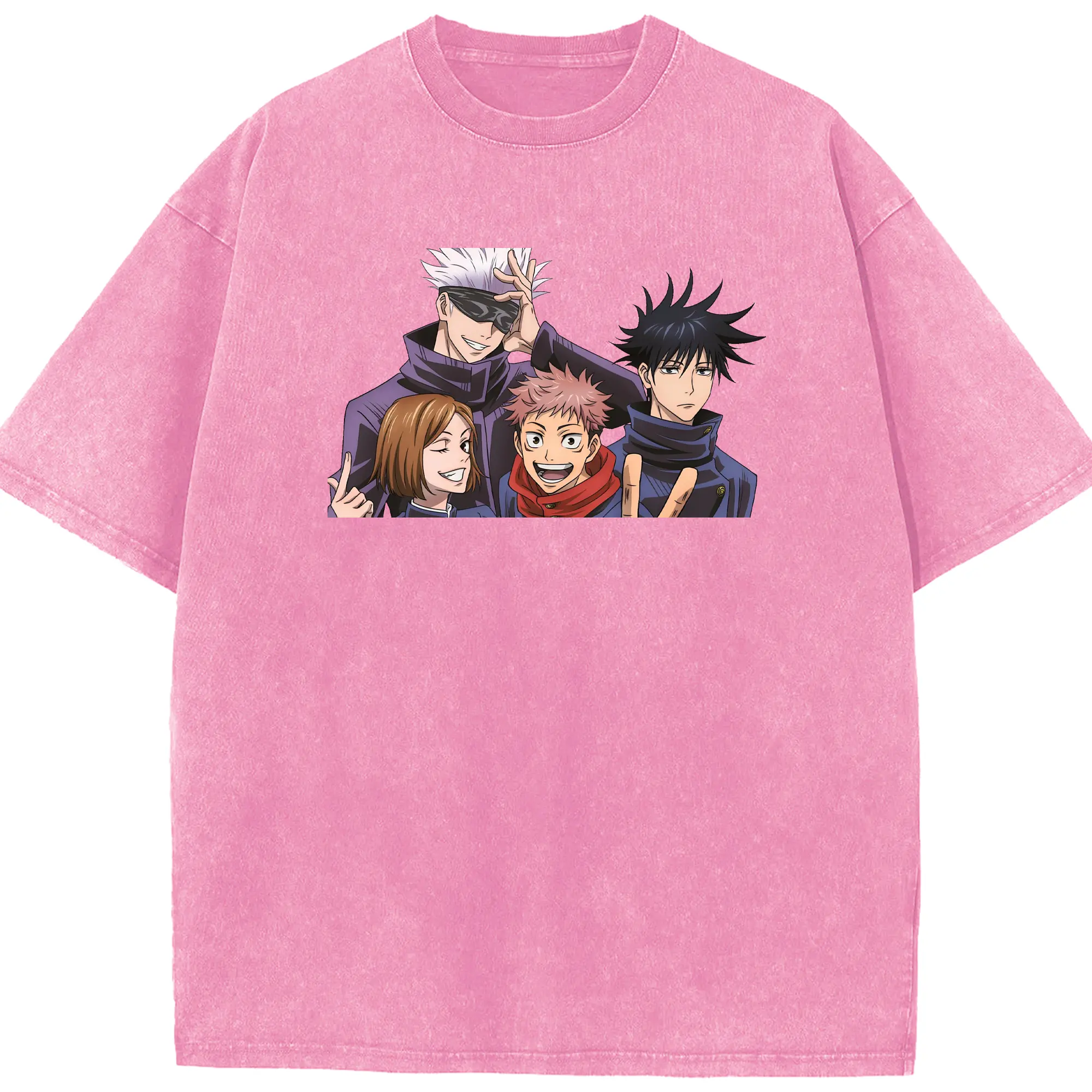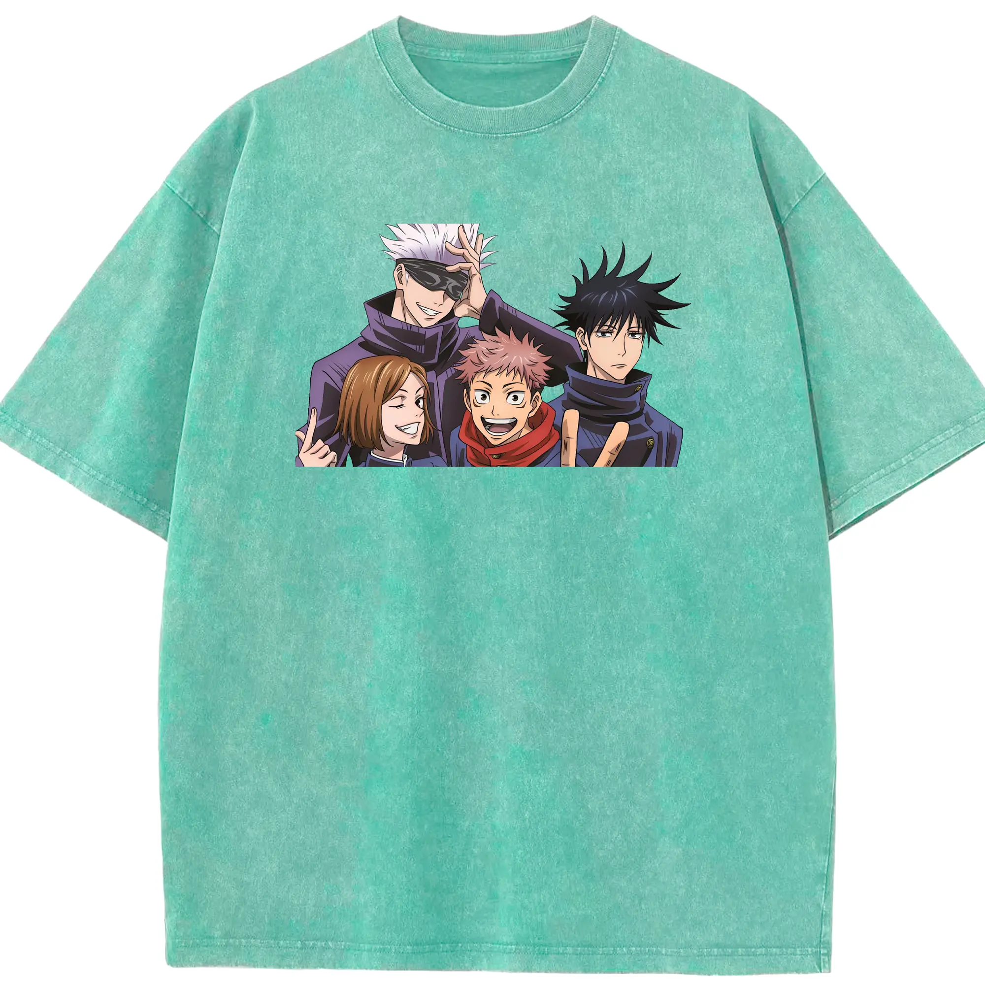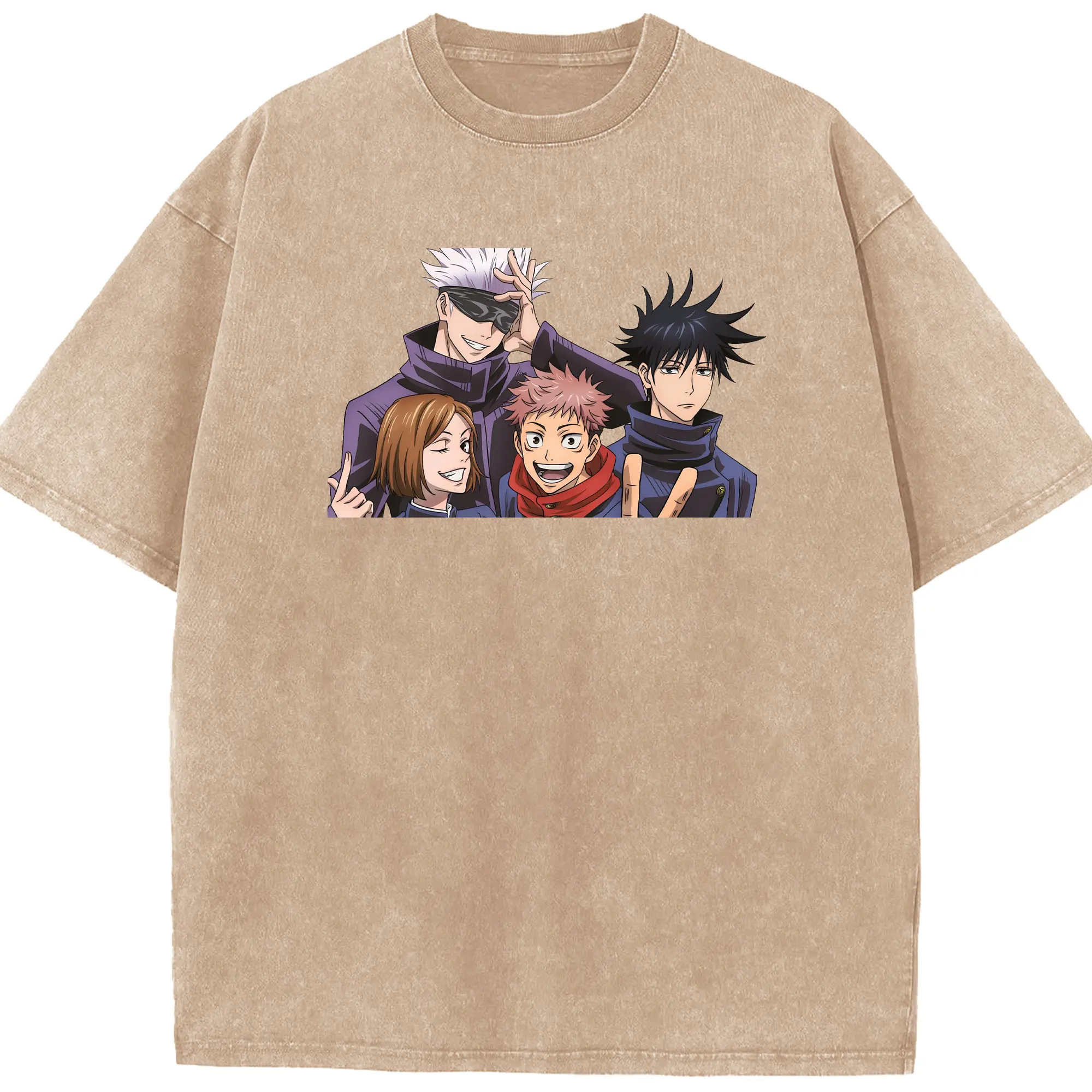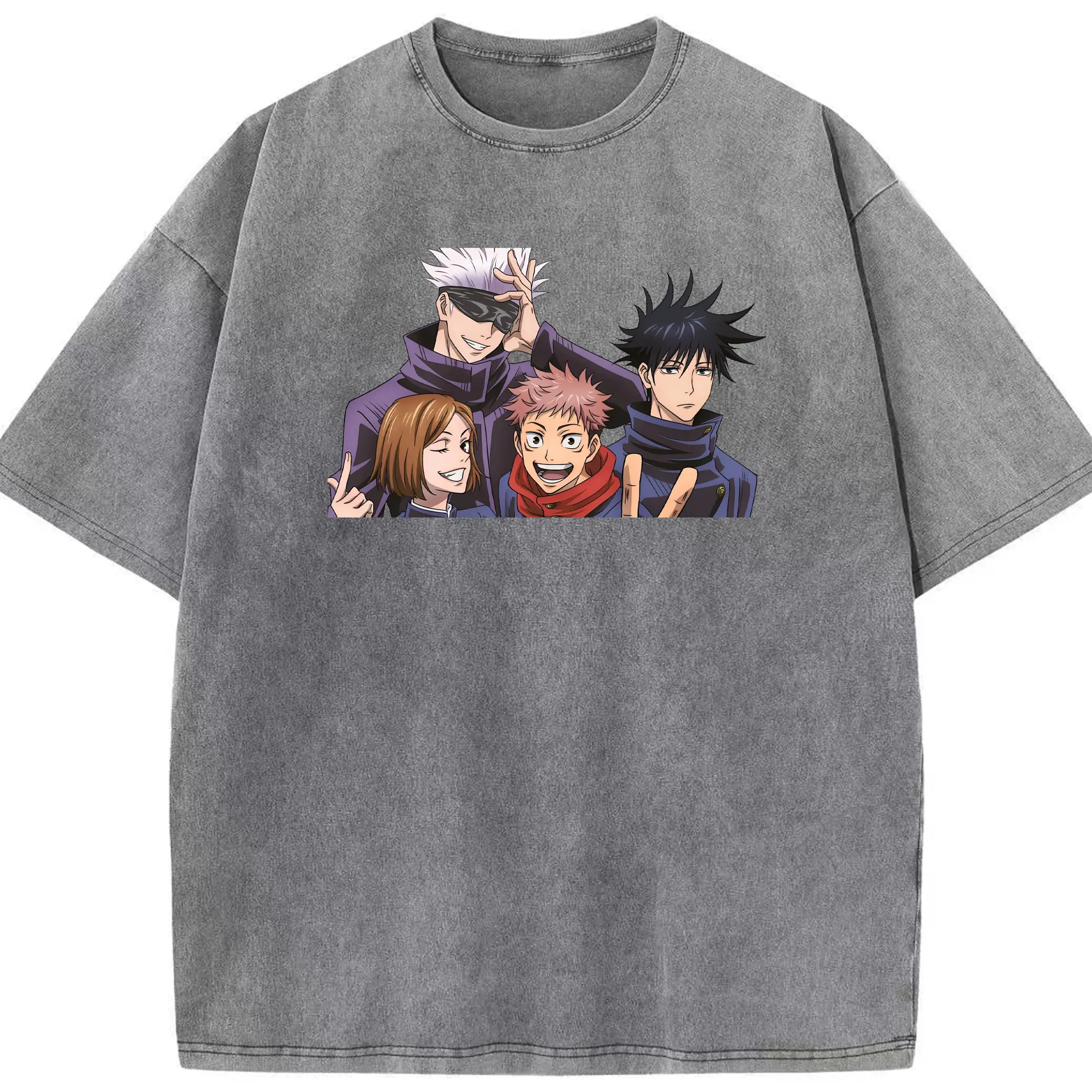 Jujutsu Kaisen Main Characters DIY - Washed Vintage Look 230g Cotton Oversized T-Shirt With Front Heat Transfer Print – Soft, Lightweight, Stylish Fit – Comfortable Casual Wear For Sports & Everyday Use