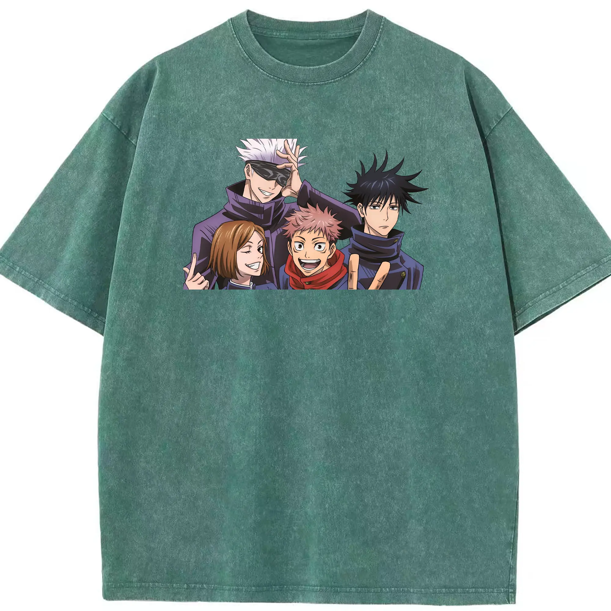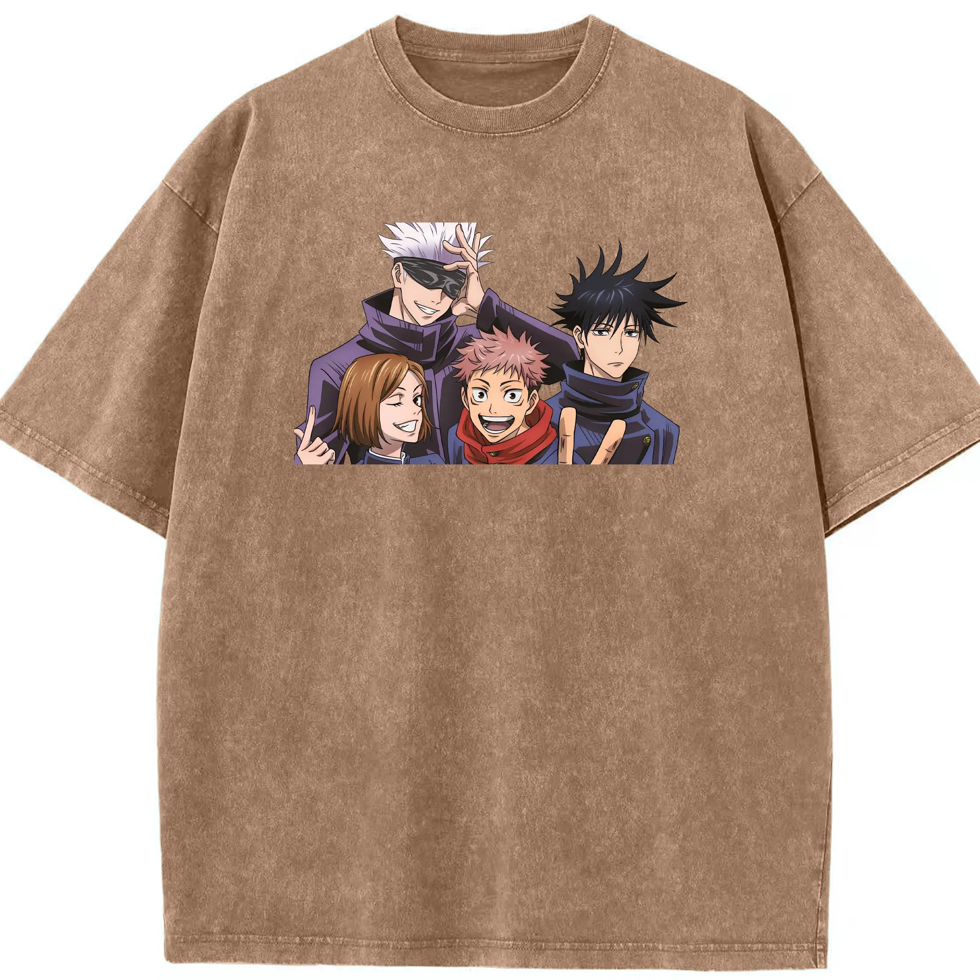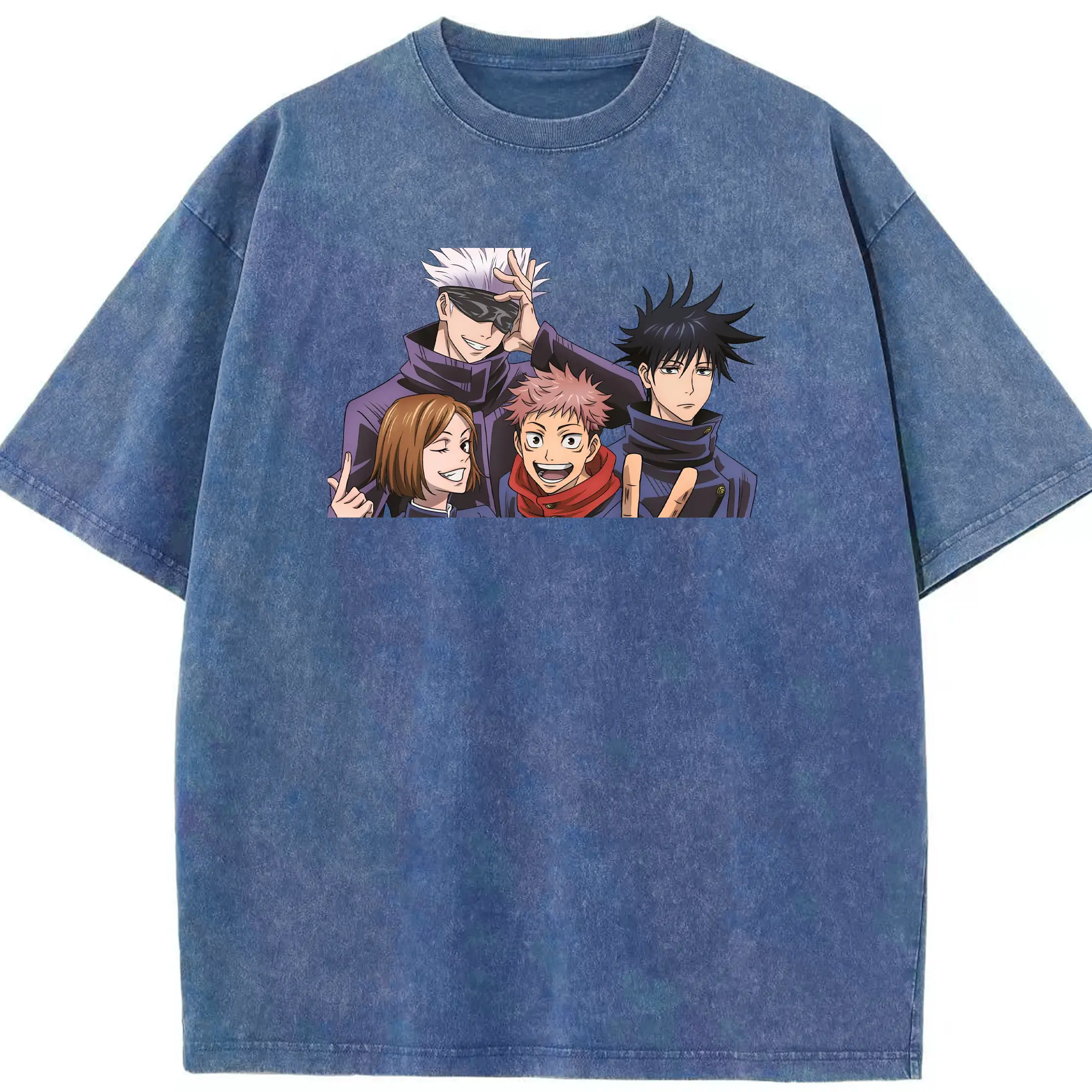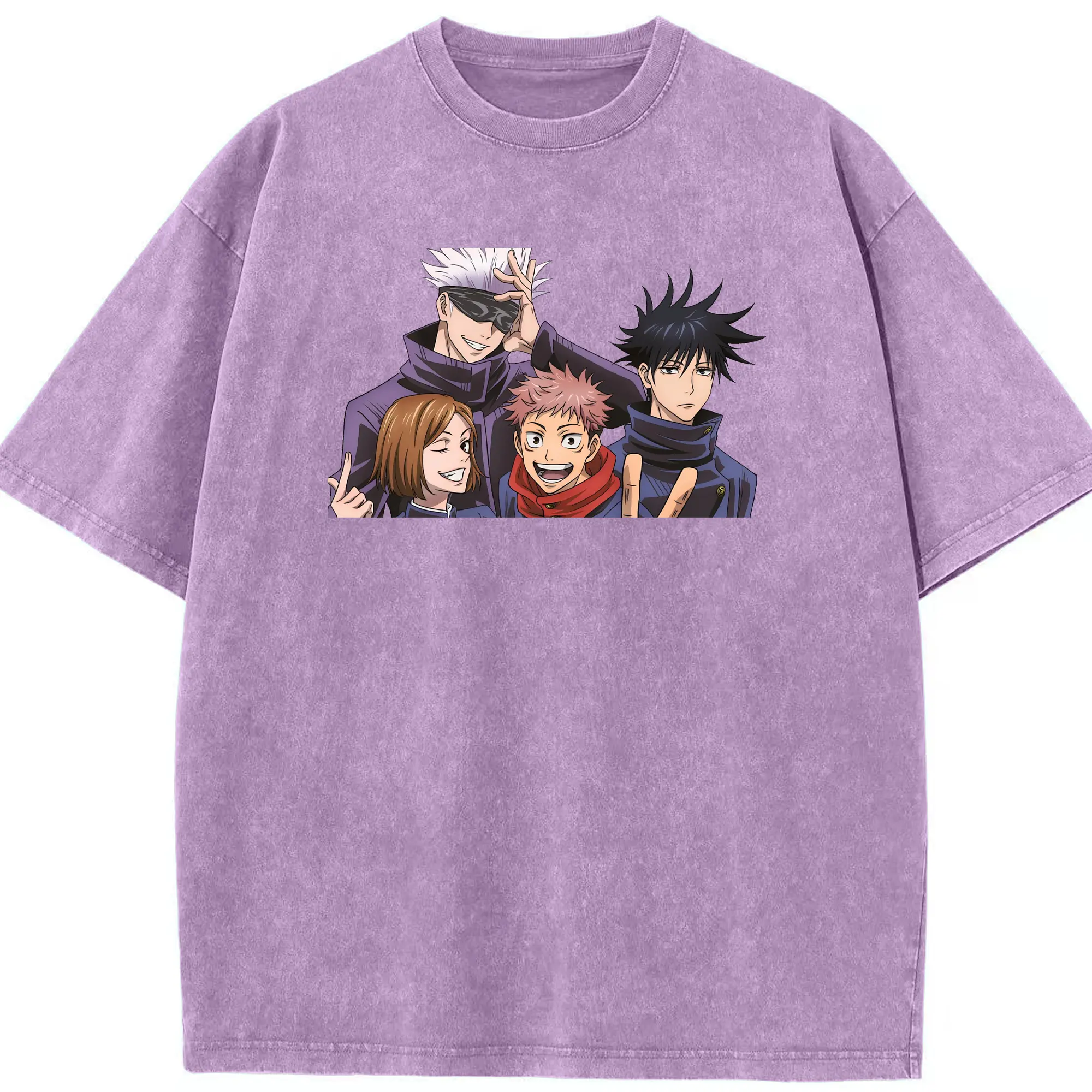 Jujutsu Kaisen Main Characters DIY - Washed Vintage Look 230g Cotton Oversized T-Shirt With Front Heat Transfer Print – Soft, Lightweight, Stylish Fit – Comfortable Casual Wear For Sports & Everyday Use