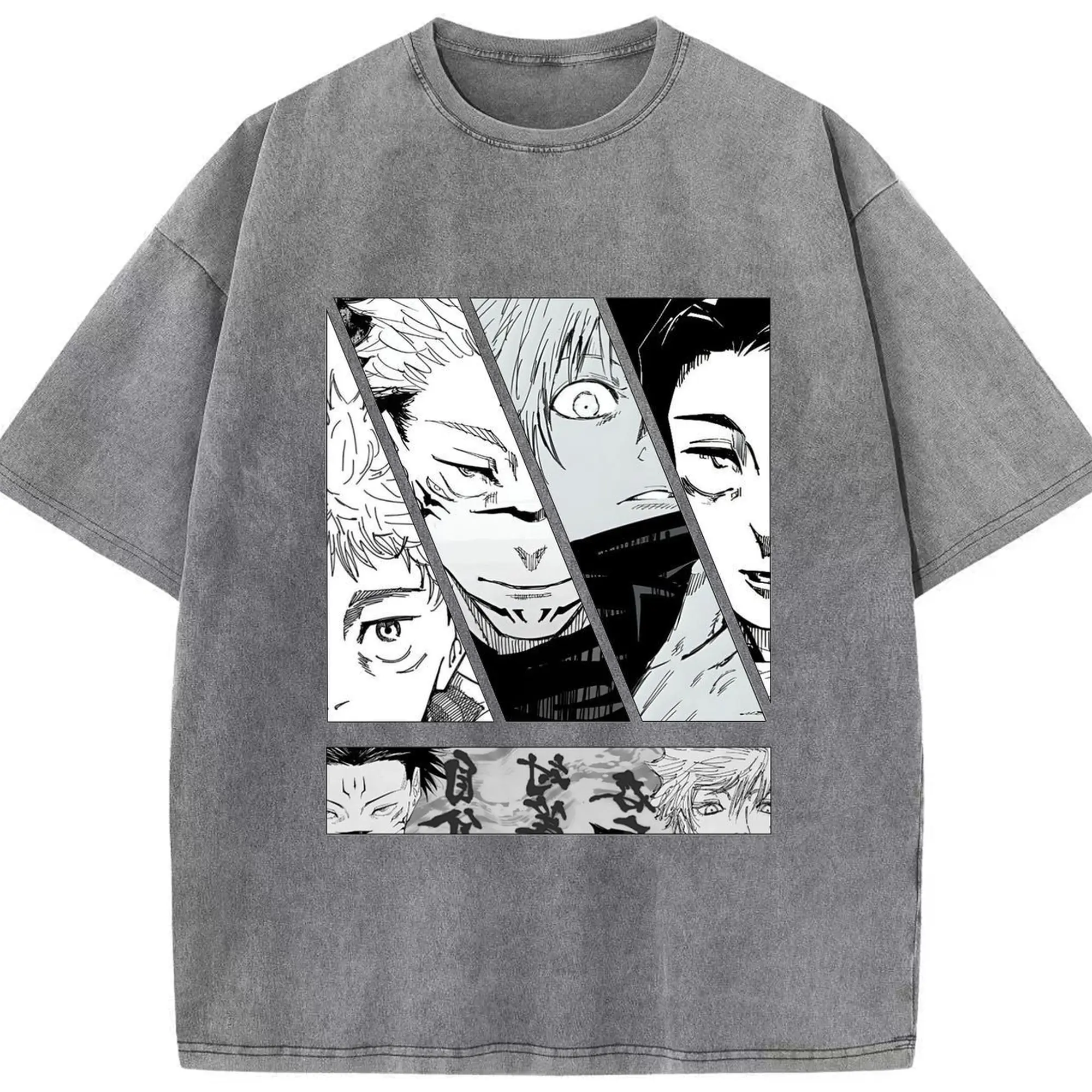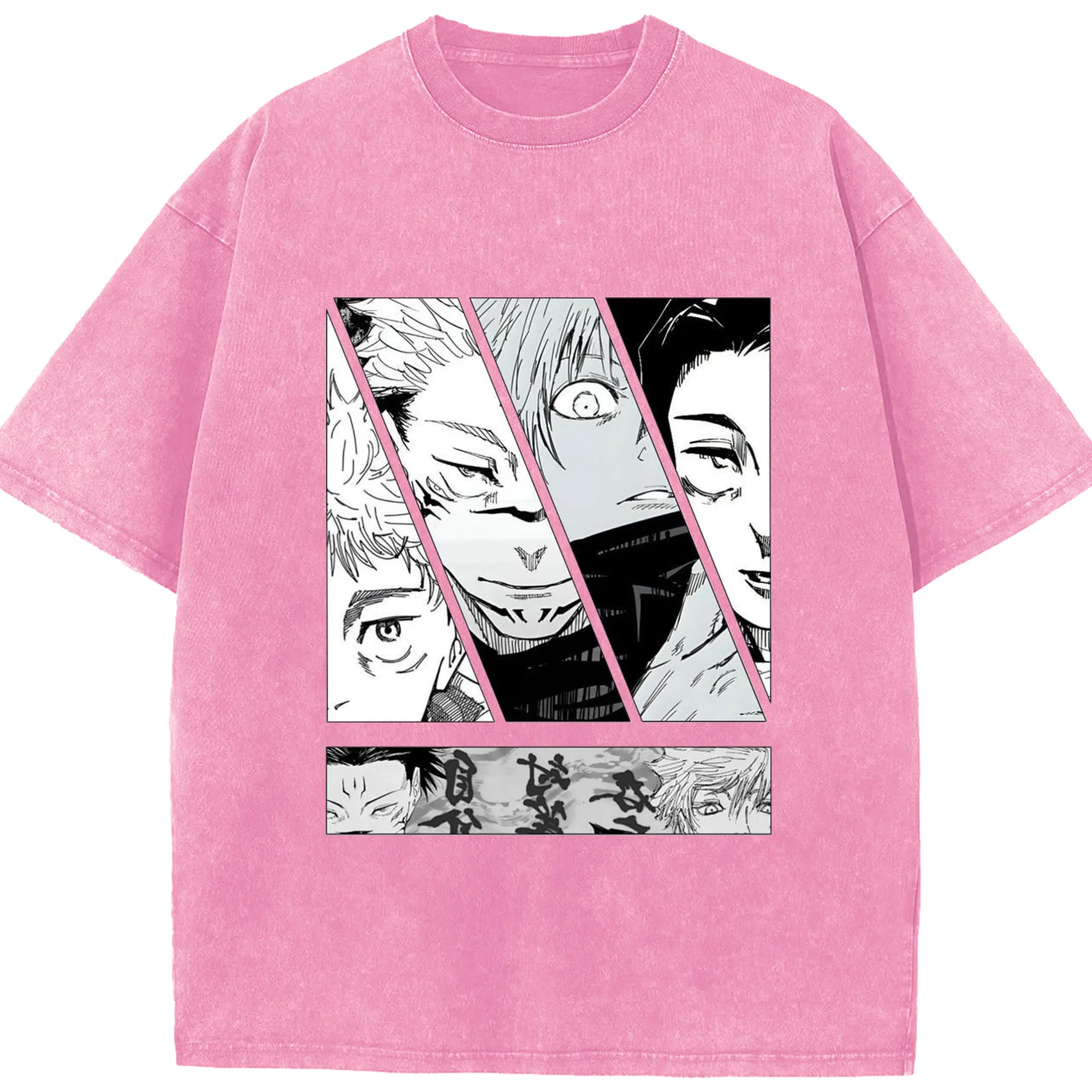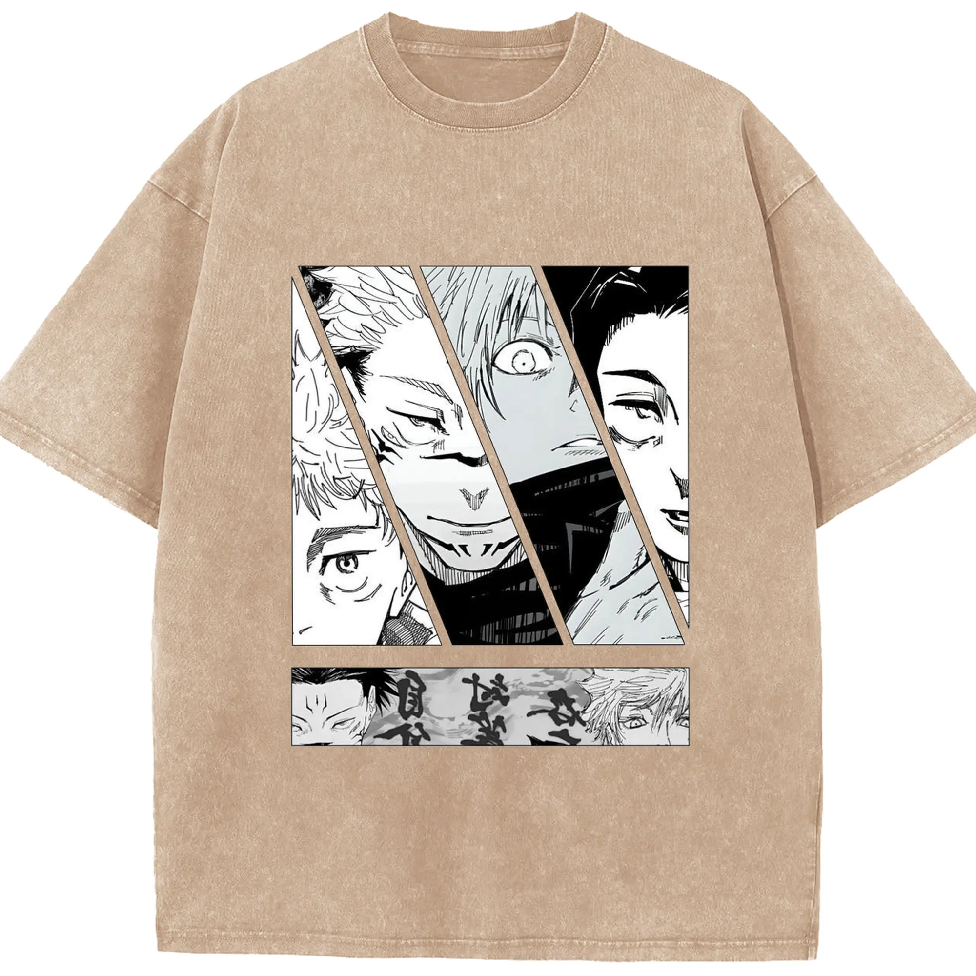 Jujutsu Kaisen Manga Panel DIY - Washed Vintage Look 230g Cotton Oversized T-Shirt With Front Heat Transfer Print – Soft, Lightweight, Stylish Fit – Comfortable Casual Wear For Sports & Everyday Use
