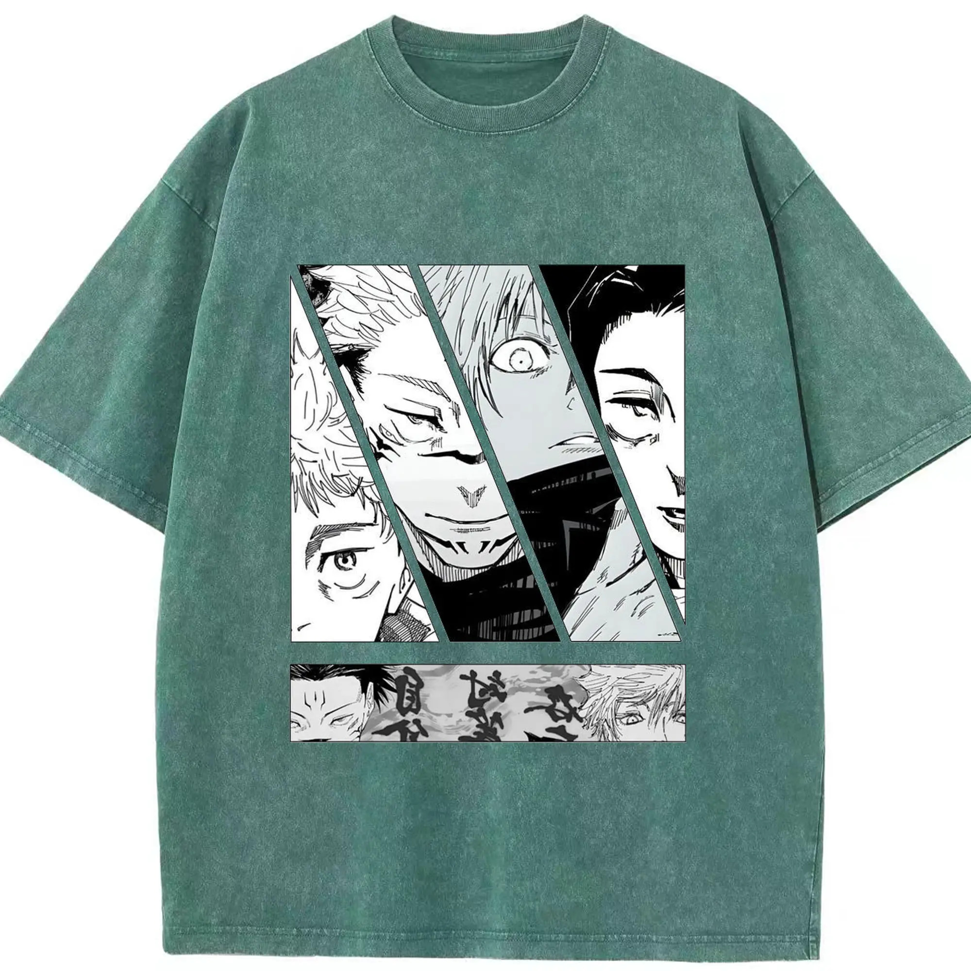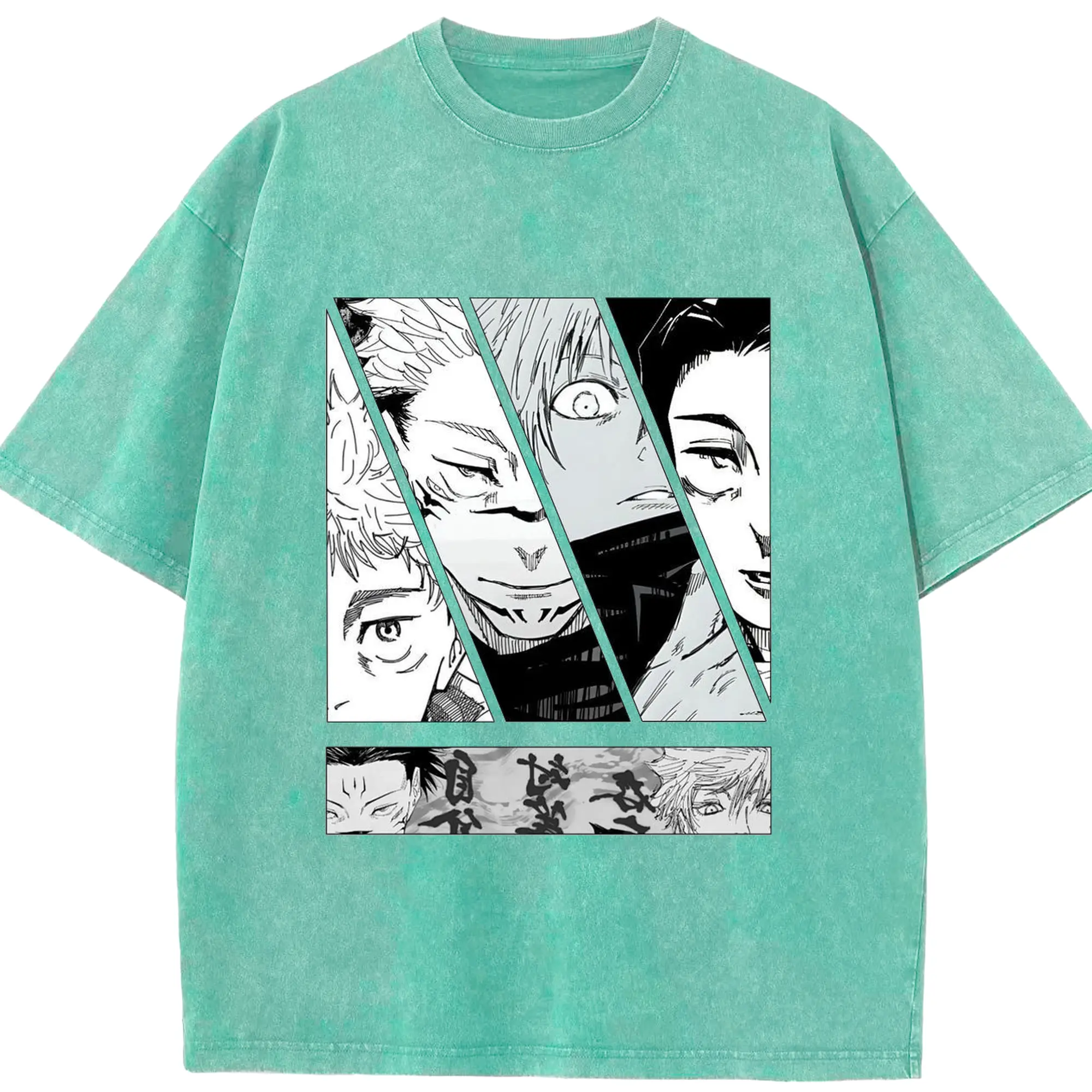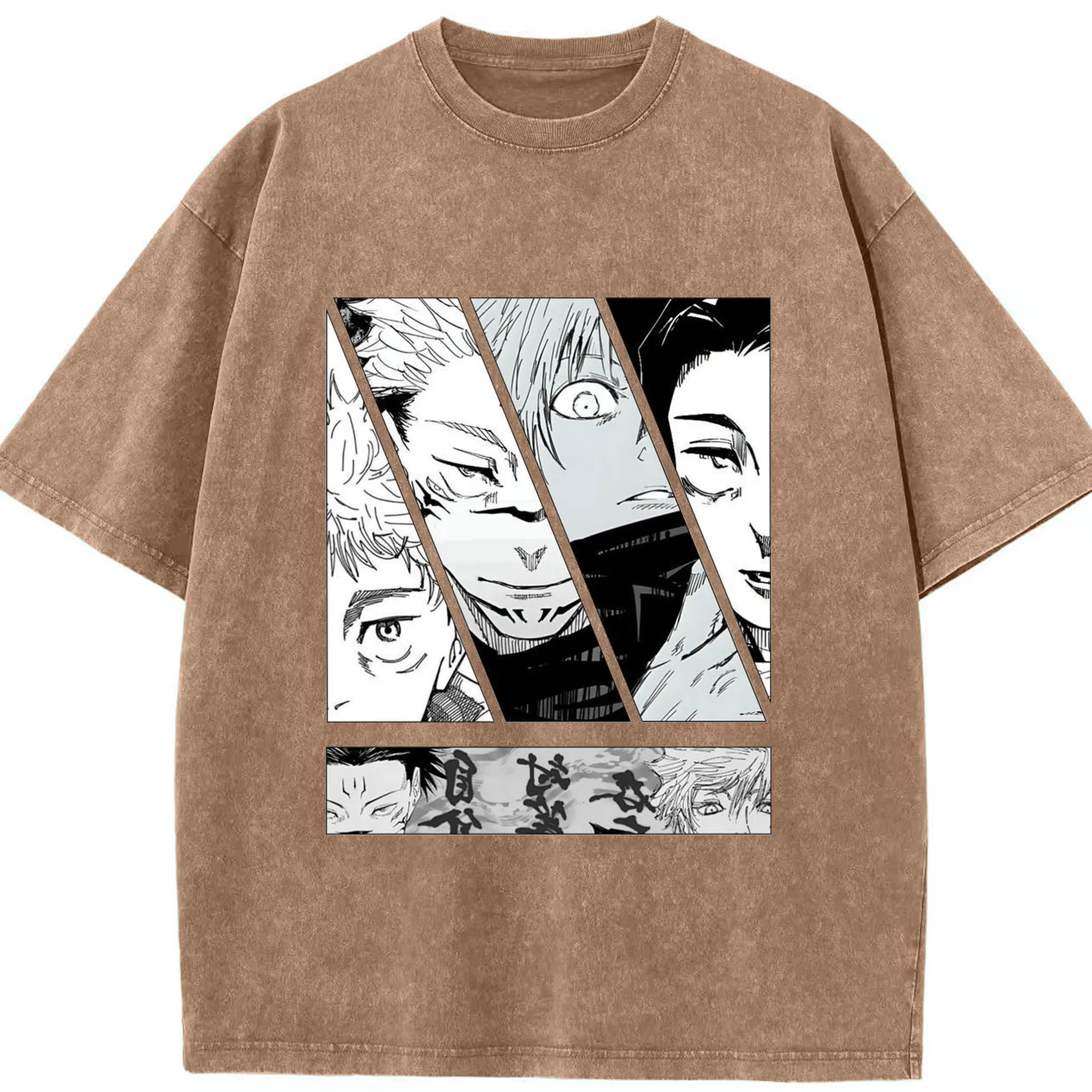 Jujutsu Kaisen Manga Panel DIY - Washed Vintage Look 230g Cotton Oversized T-Shirt With Front Heat Transfer Print – Soft, Lightweight, Stylish Fit – Comfortable Casual Wear For Sports & Everyday Use