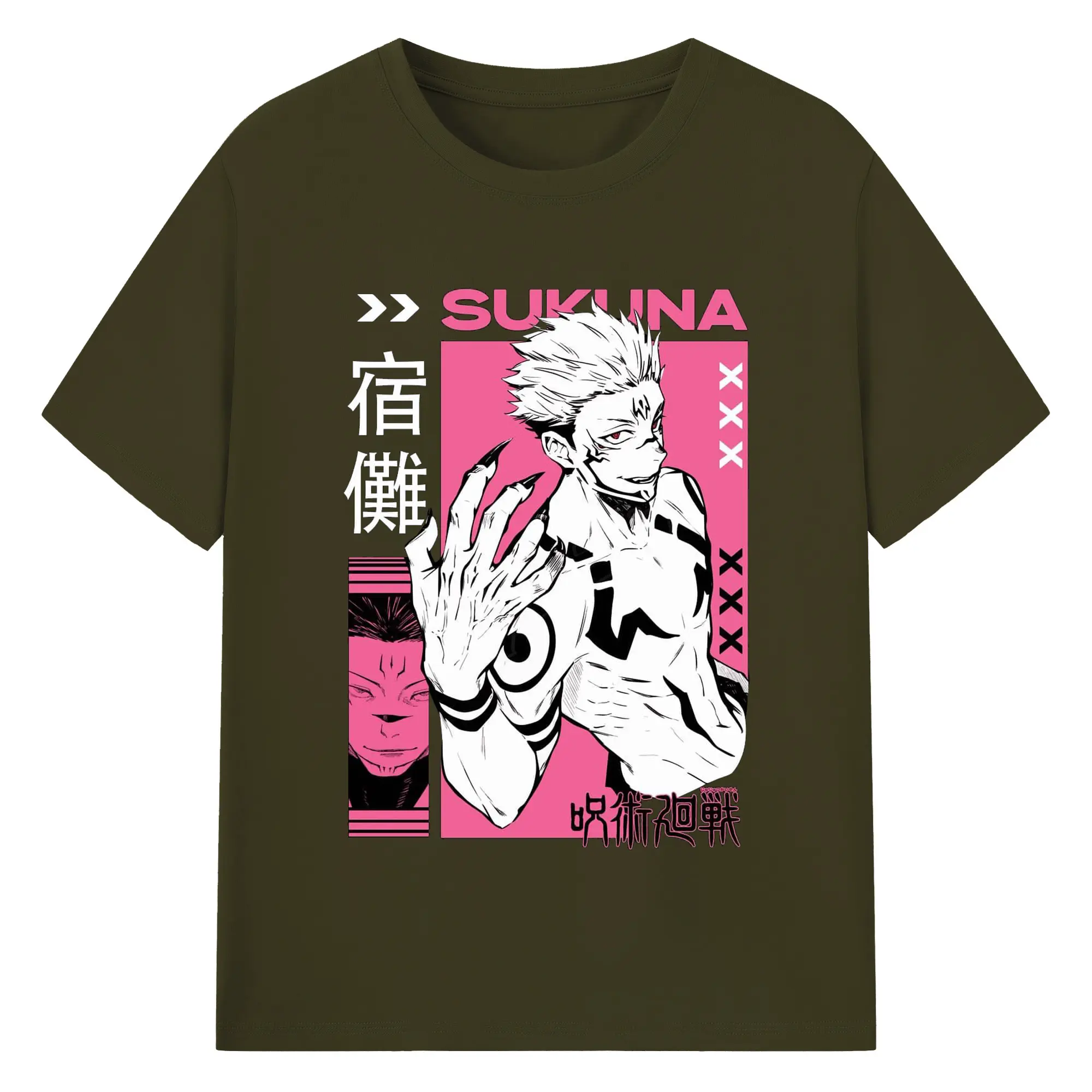 Jujutsu Kaisen Sukuna Trendy DIY - 180g Cotton T-Shirt With Front Heat Transfer Print – Soft, Lightweight, Fitted Design – Comfortable Casual Wear For Sports & Everyday Use