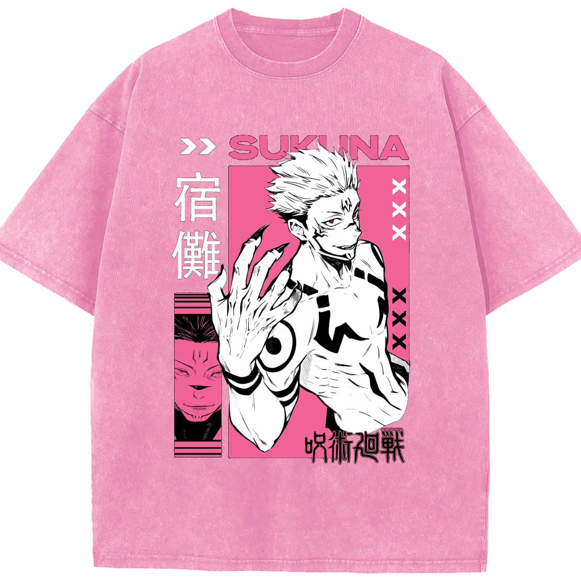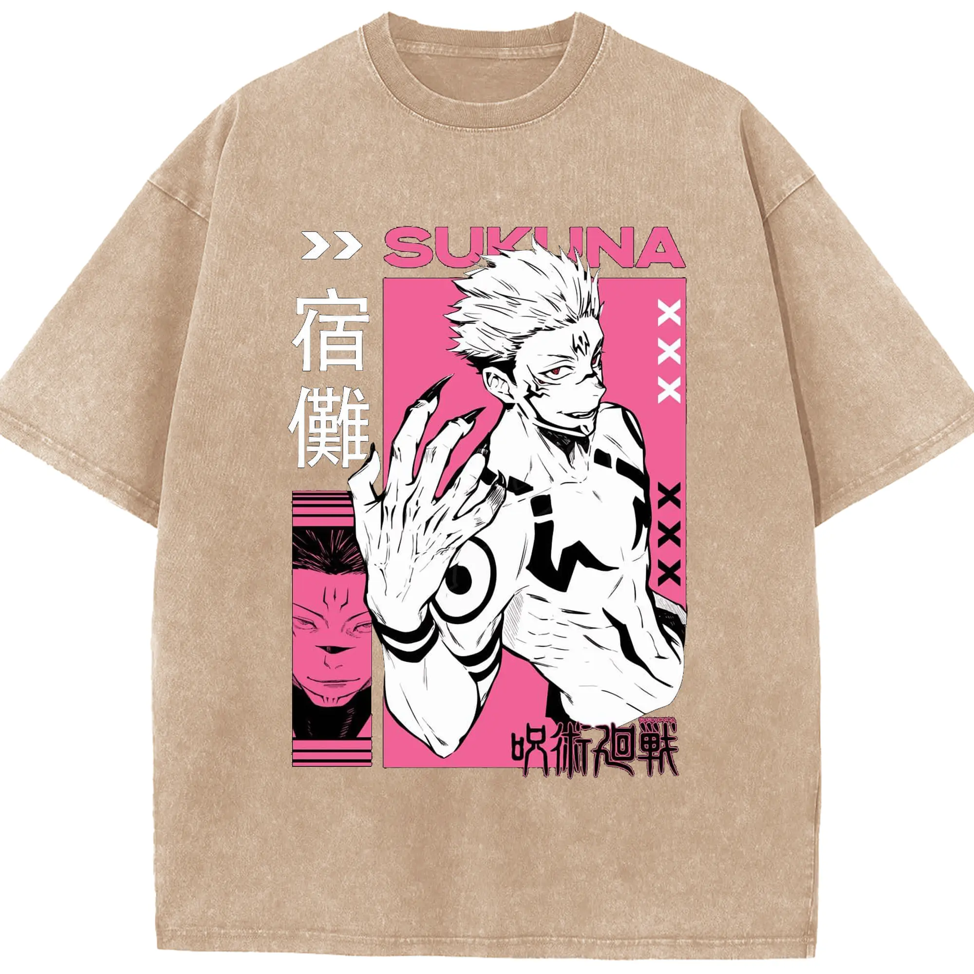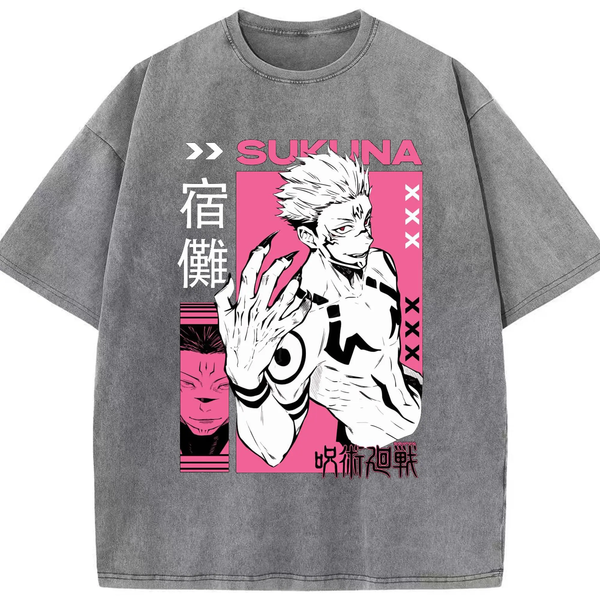 Jujutsu Kaisen Sukuna Trendy DIY - Washed Vintage Look 230g Cotton Oversized T-Shirt With Front Heat Transfer Print – Soft, Lightweight, Stylish Fit – Comfortable Casual Wear For Sports & Everyday Use
