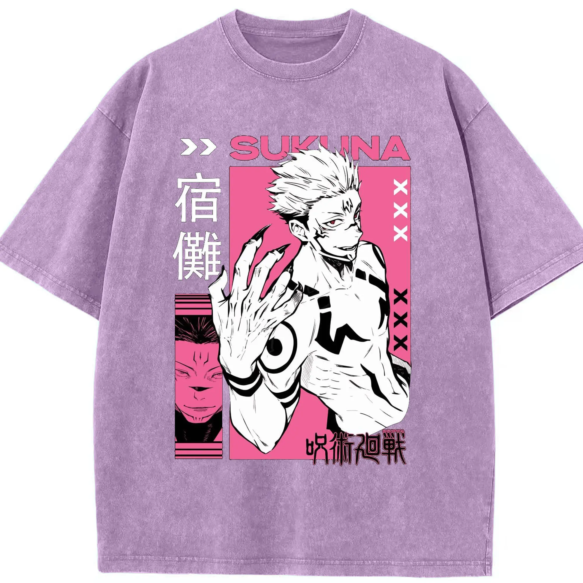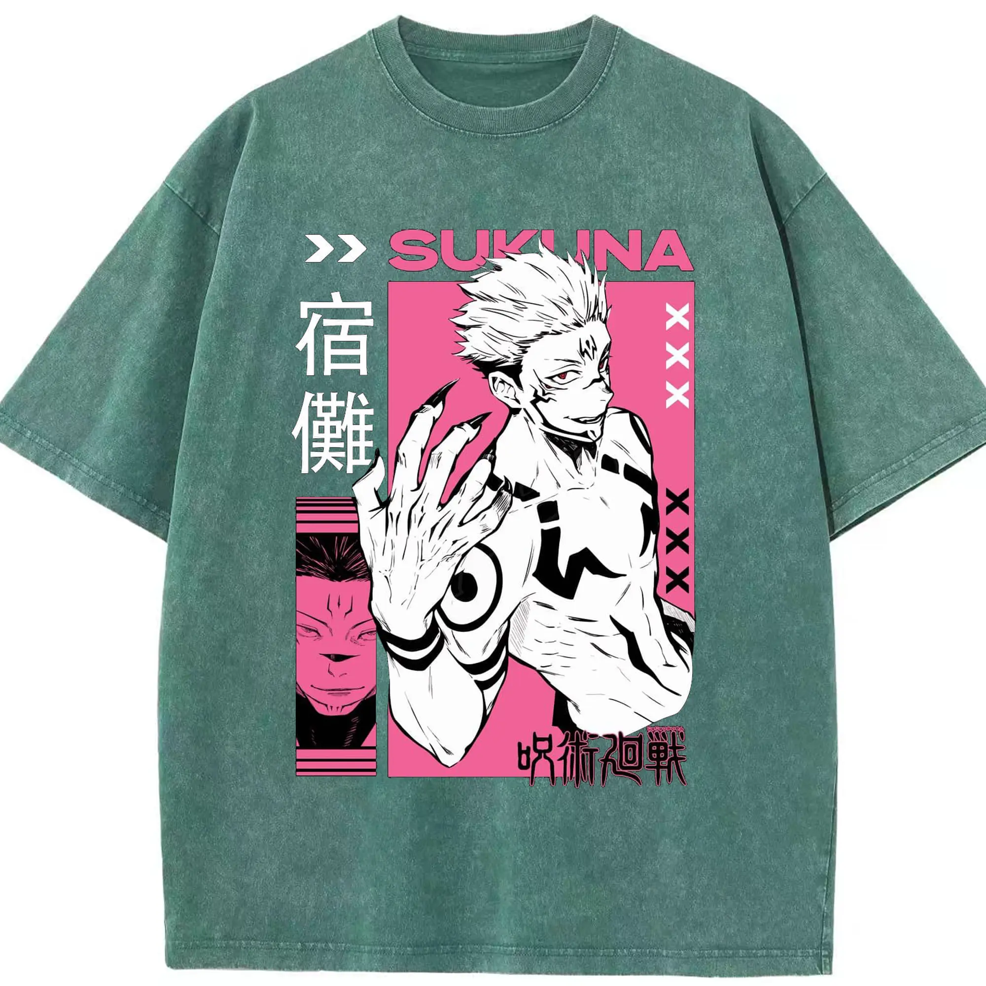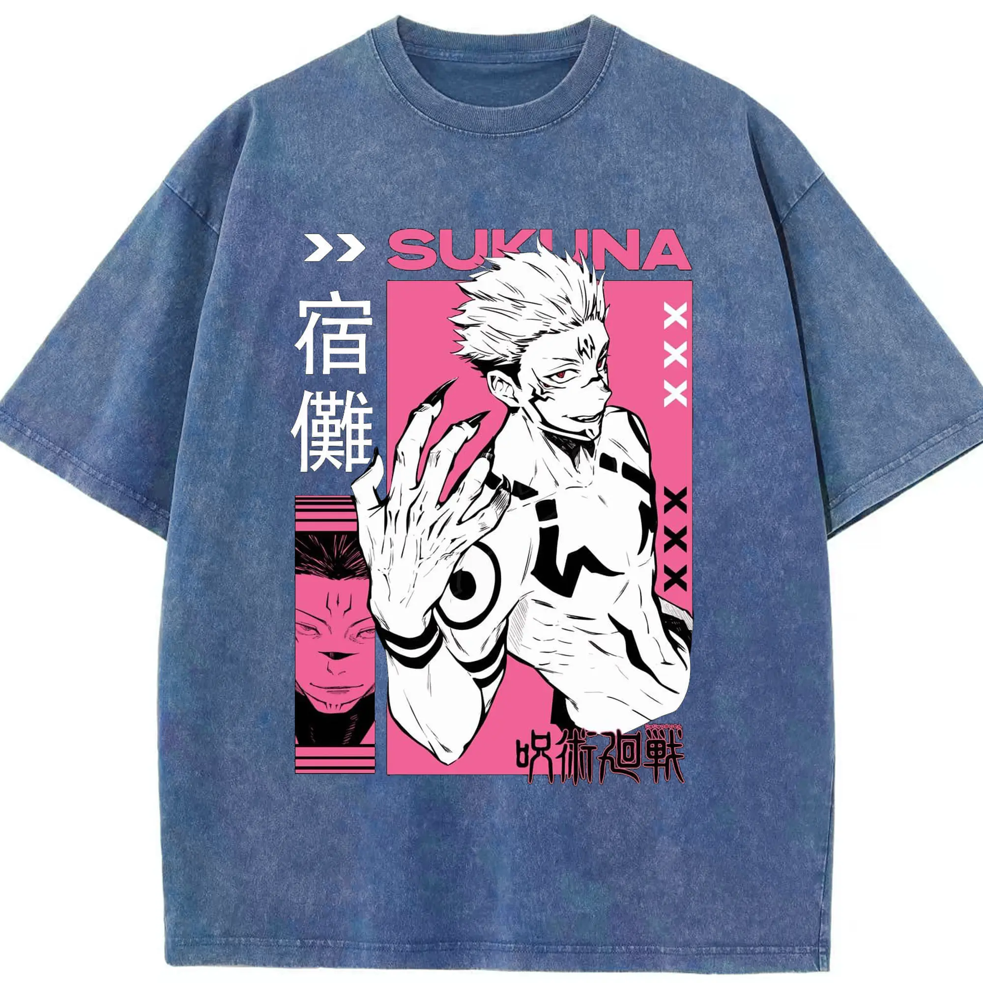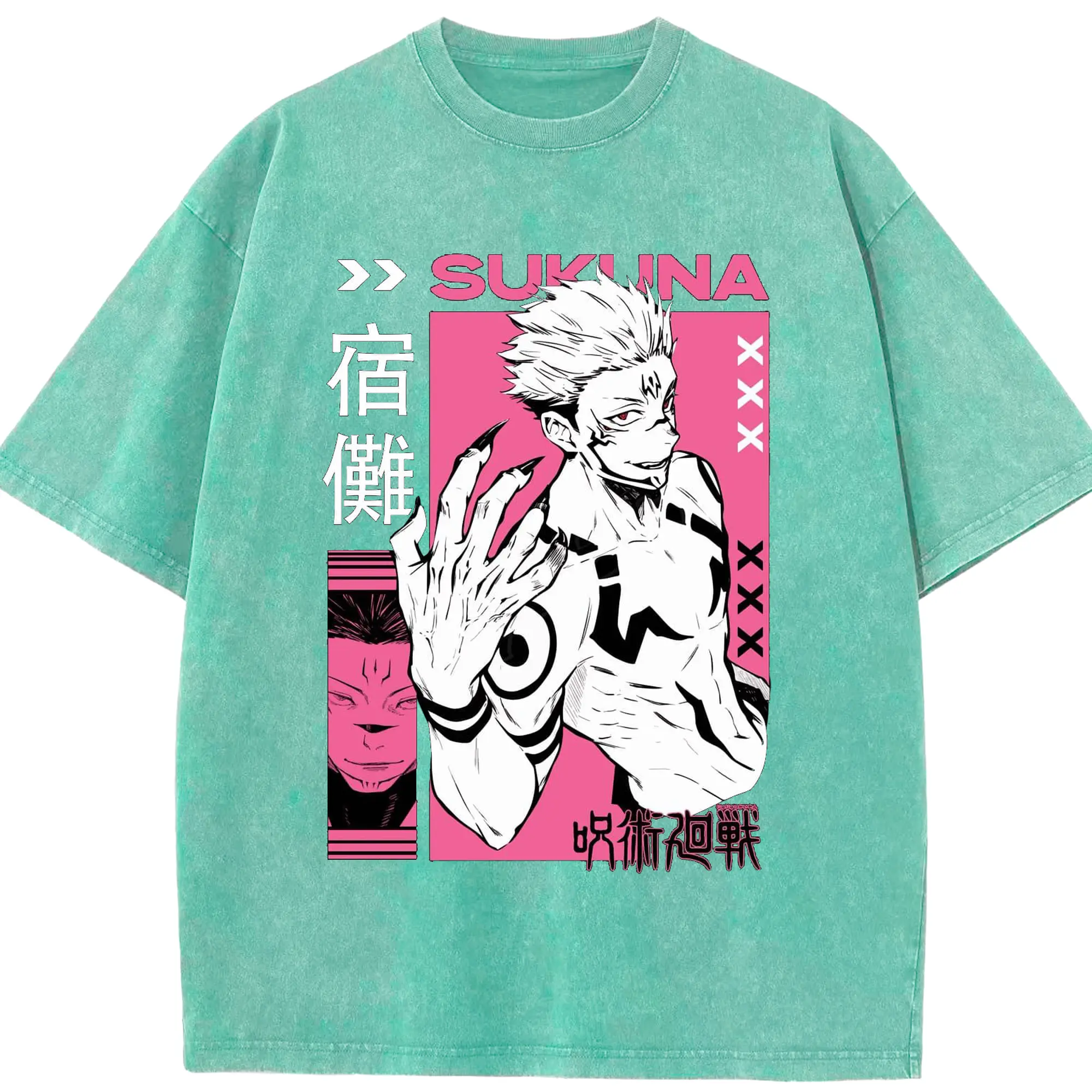Jujutsu Kaisen Sukuna Trendy DIY - Washed Vintage Look 230g Cotton Oversized T-Shirt With Front Heat Transfer Print – Soft, Lightweight, Stylish Fit – Comfortable Casual Wear For Sports & Everyday Use