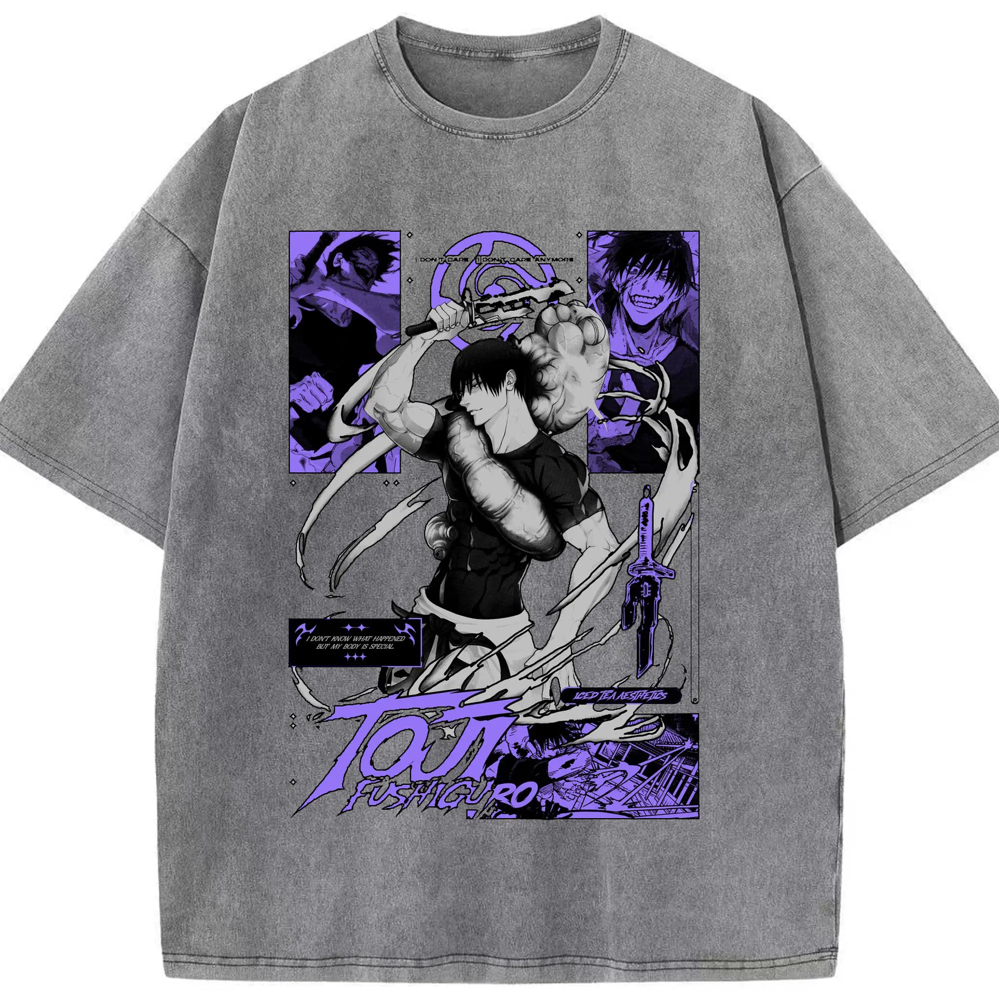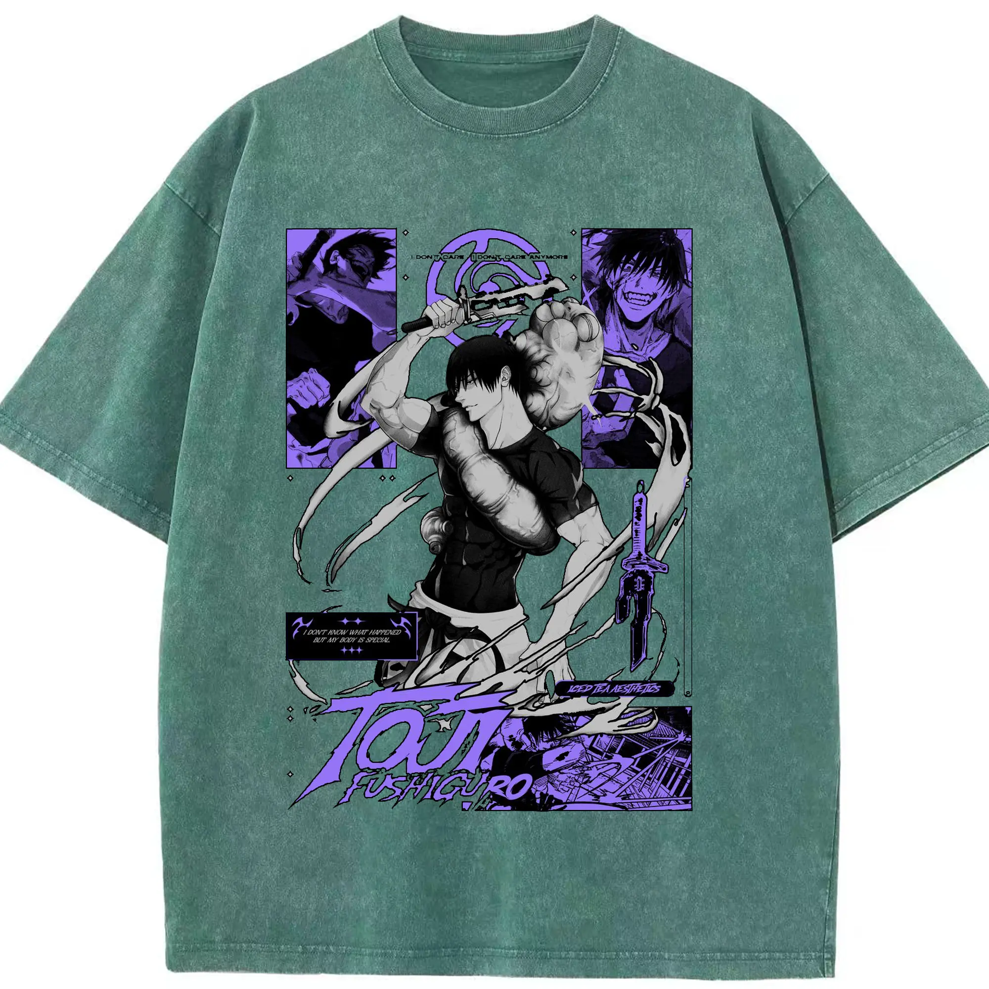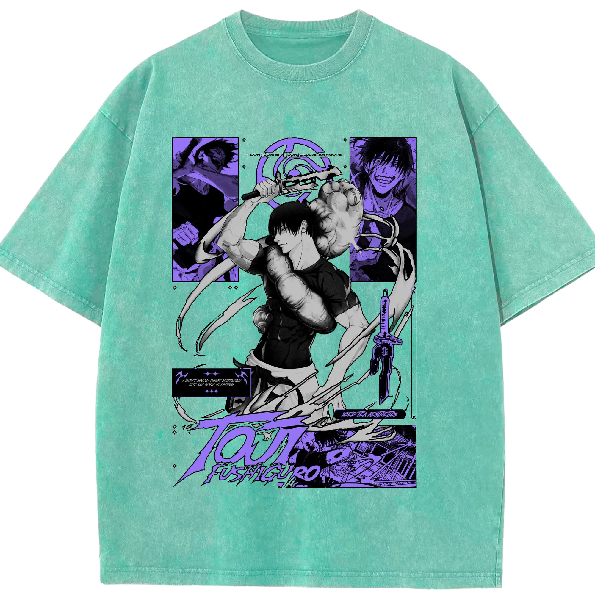 Jujutsu Kaisen Toji Fushiguro Dark Manga DIY - Washed Vintage Look 230g Cotton Oversized T-Shirt With Front Heat Transfer Print – Soft, Lightweight, Stylish Fit – Comfortable Casual Wear For Sports & Everyday Use