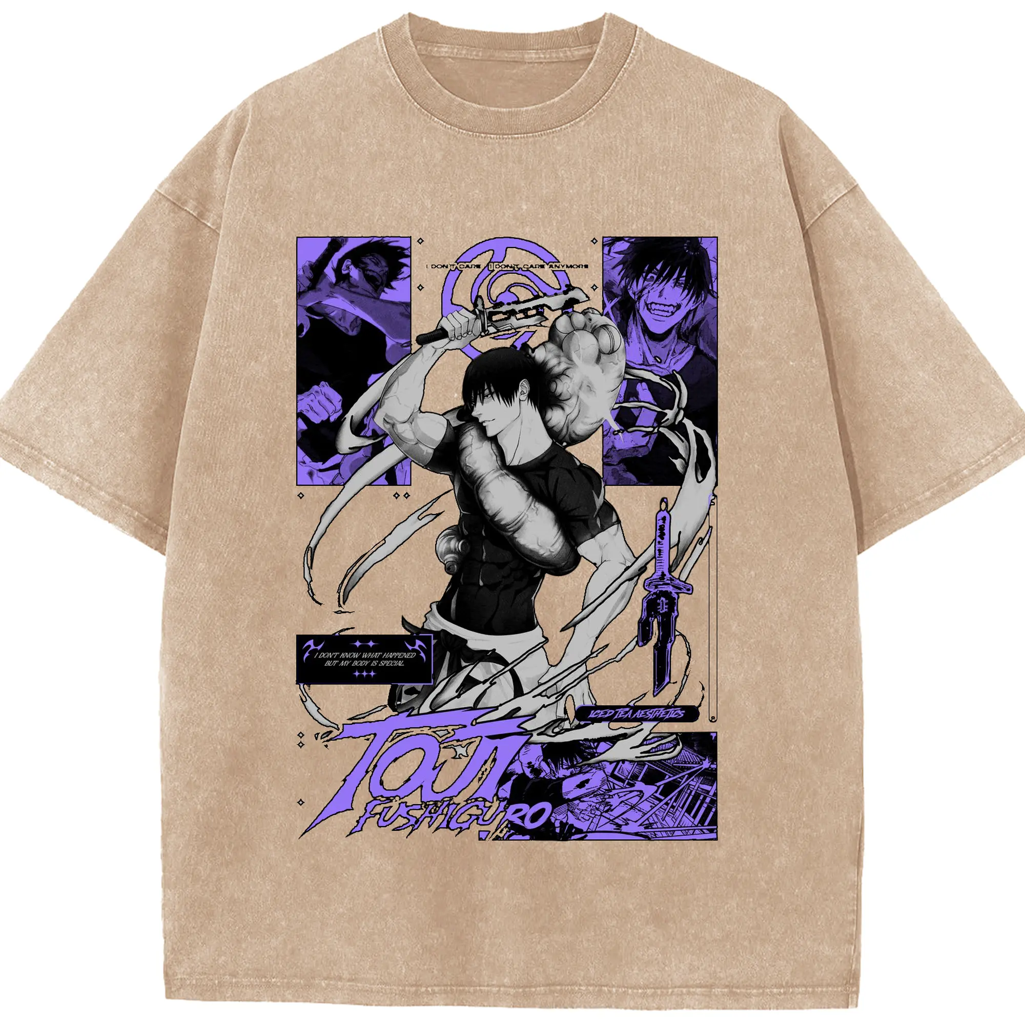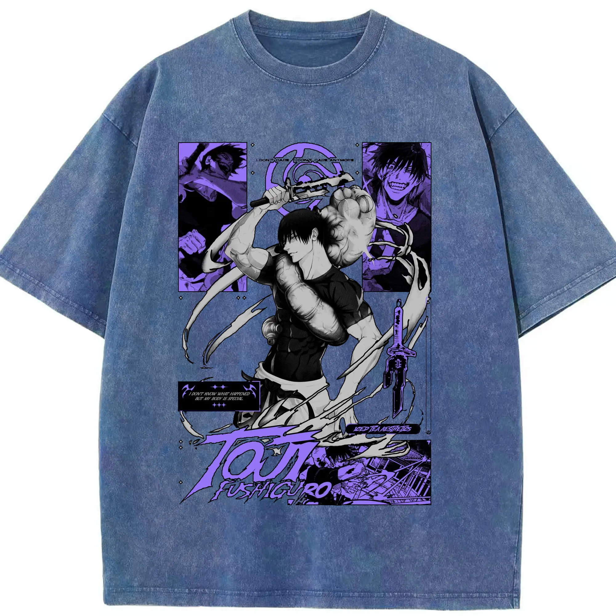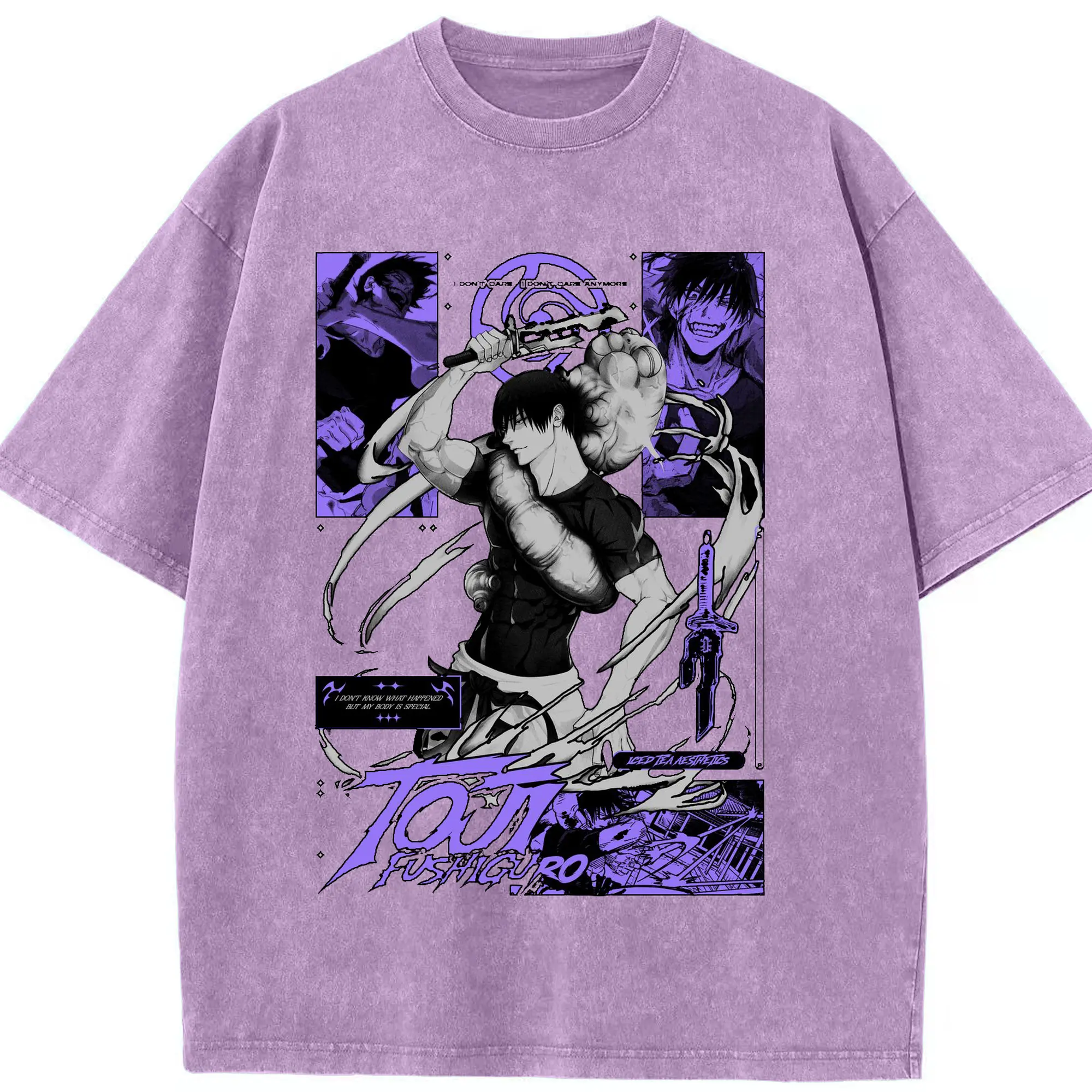 Jujutsu Kaisen Toji Fushiguro Dark Manga DIY - Washed Vintage Look 230g Cotton Oversized T-Shirt With Front Heat Transfer Print – Soft, Lightweight, Stylish Fit – Comfortable Casual Wear For Sports & Everyday Use