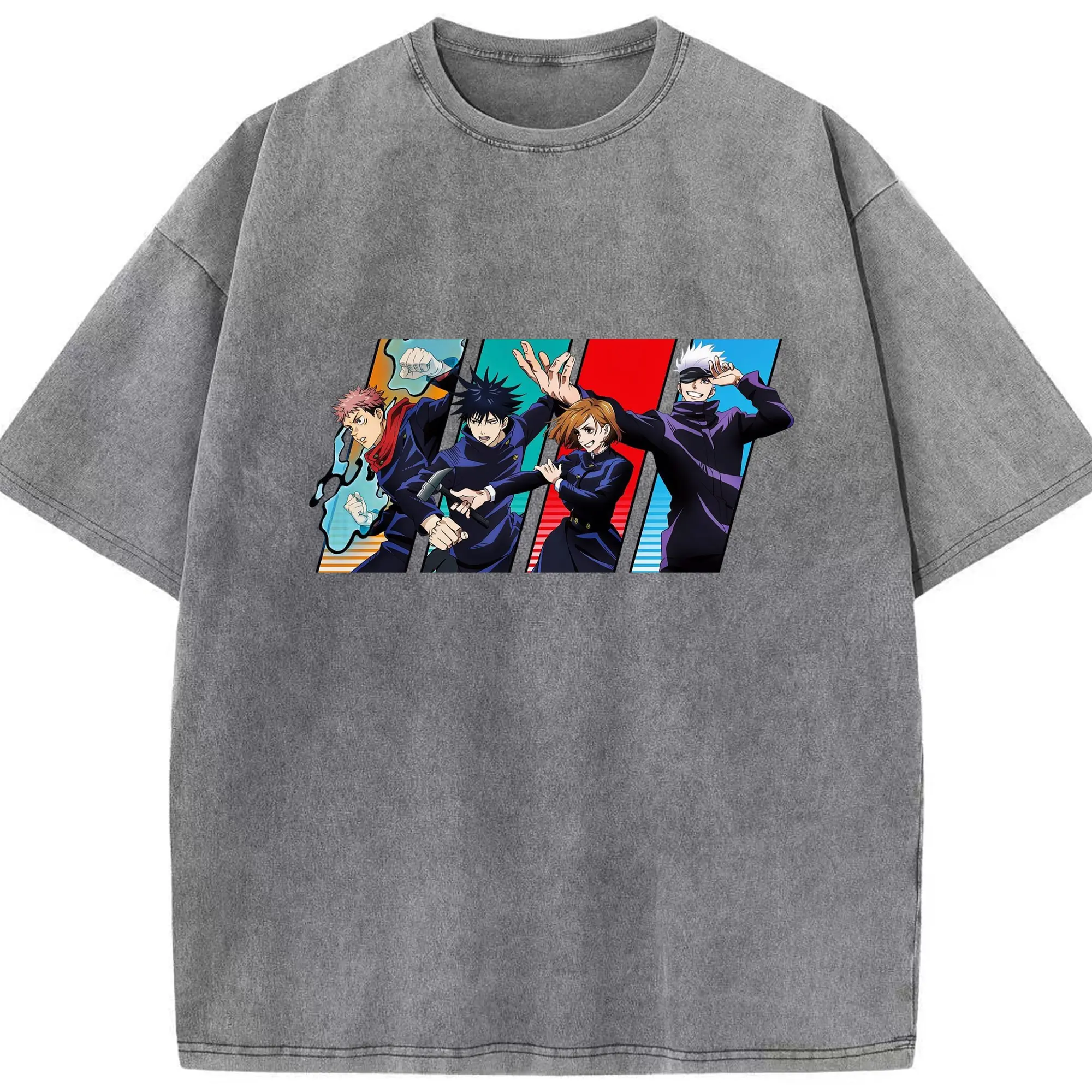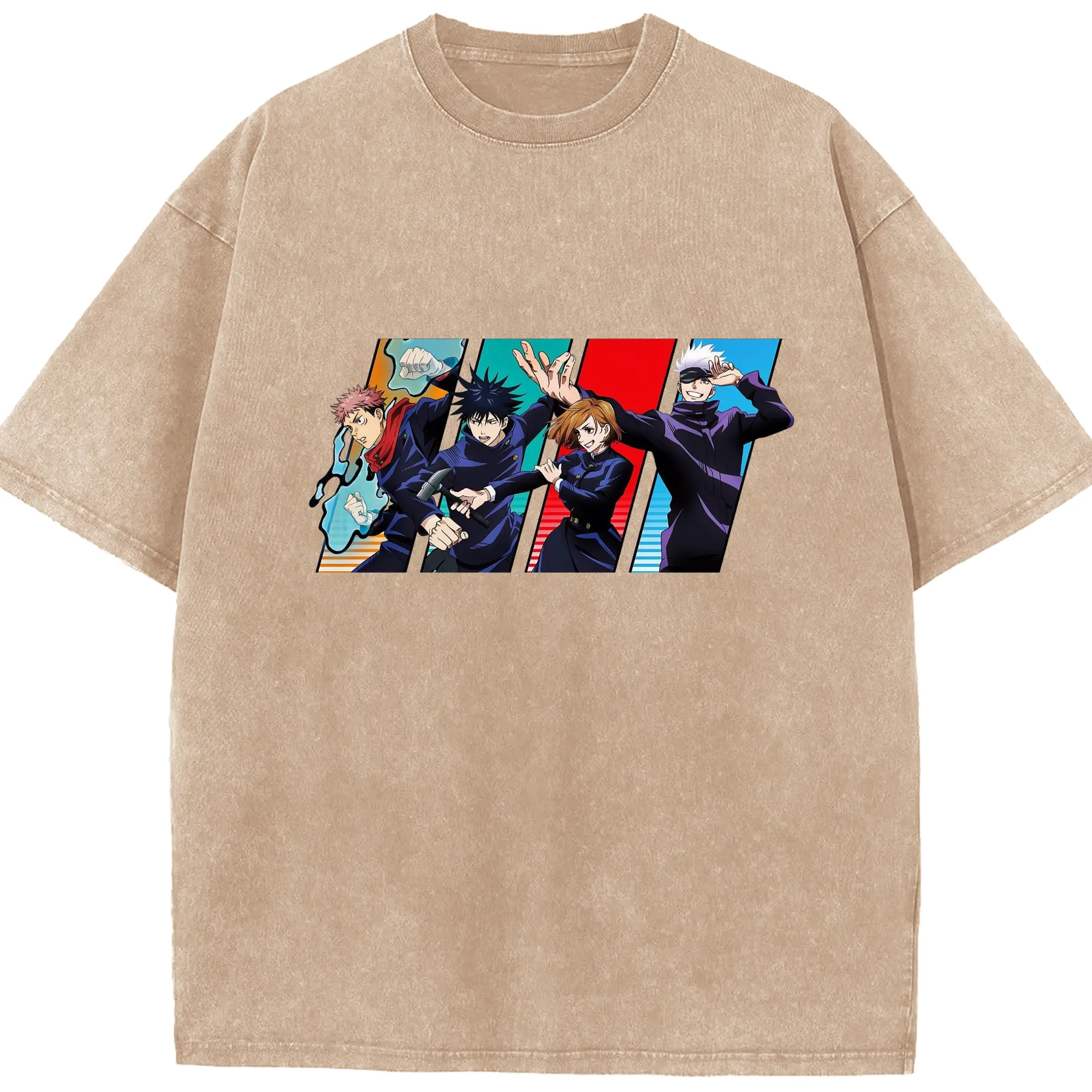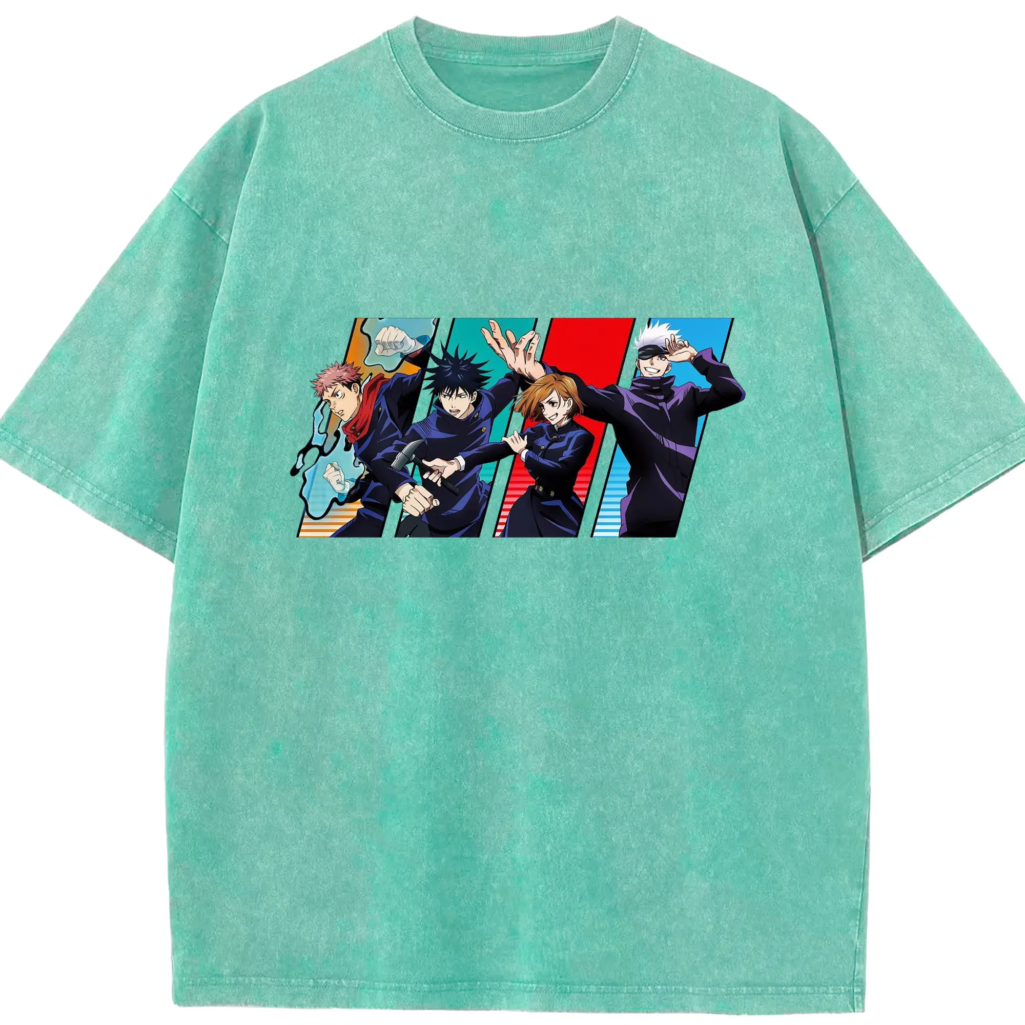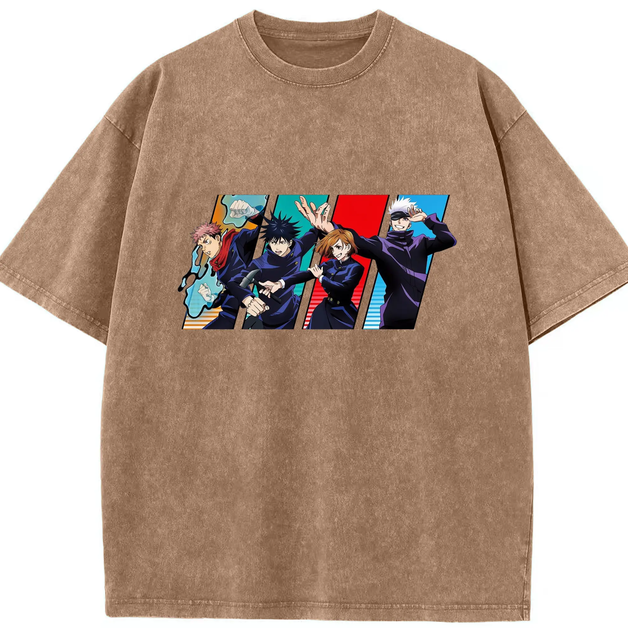Jujutsu Kaisen-Inspired Anime Group Trendy DIY - Washed Vintage Look 230g Cotton Oversized T-Shirt With Front Heat Transfer Print – Soft, Lightweight, Stylish Fit – Comfortable Casual Wear For Sports & Everyday Use