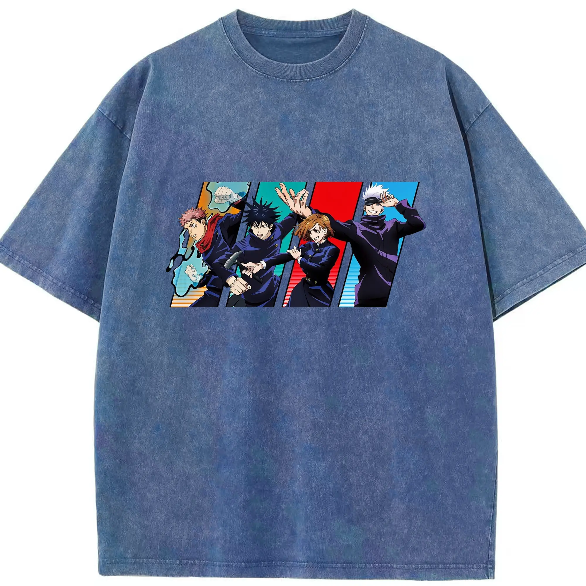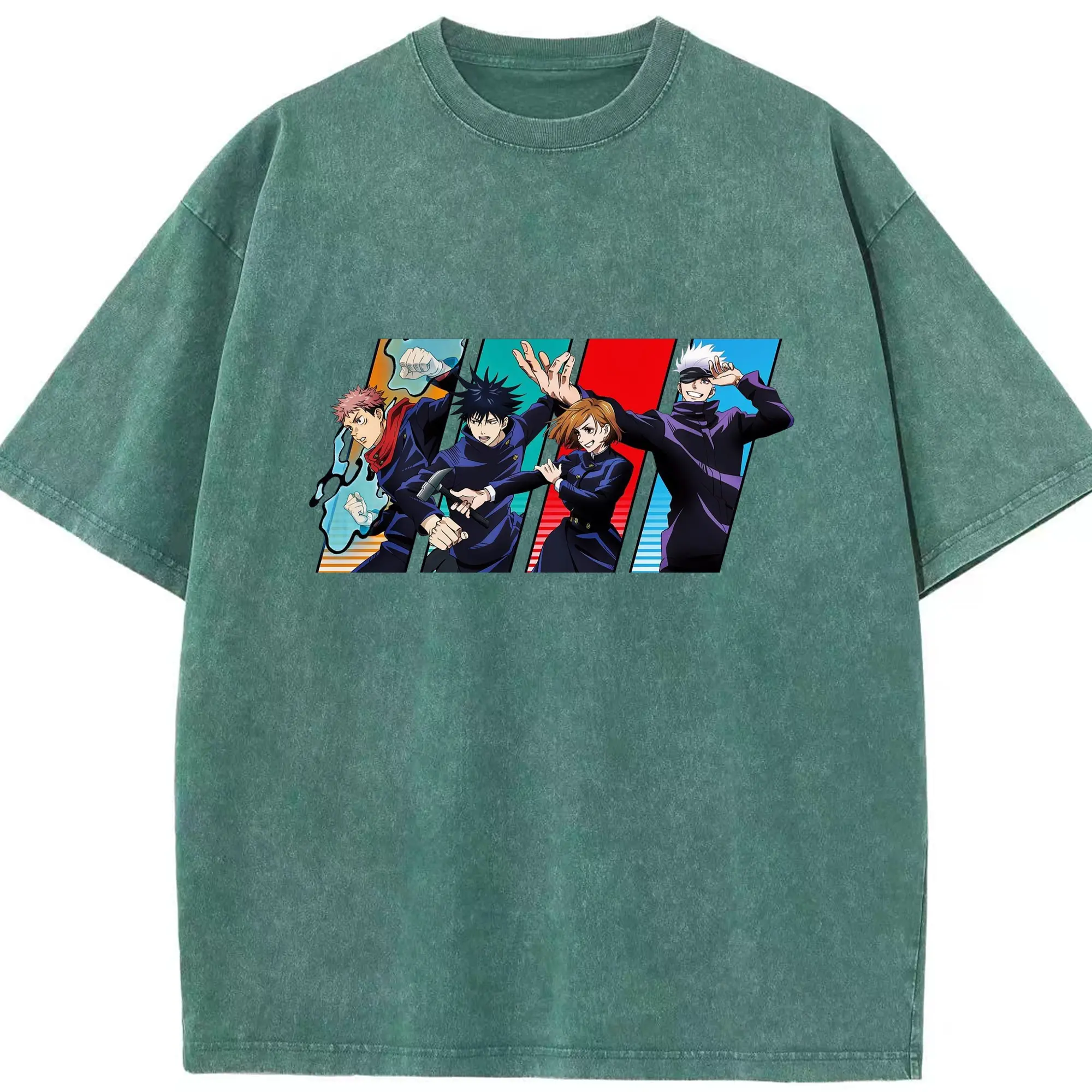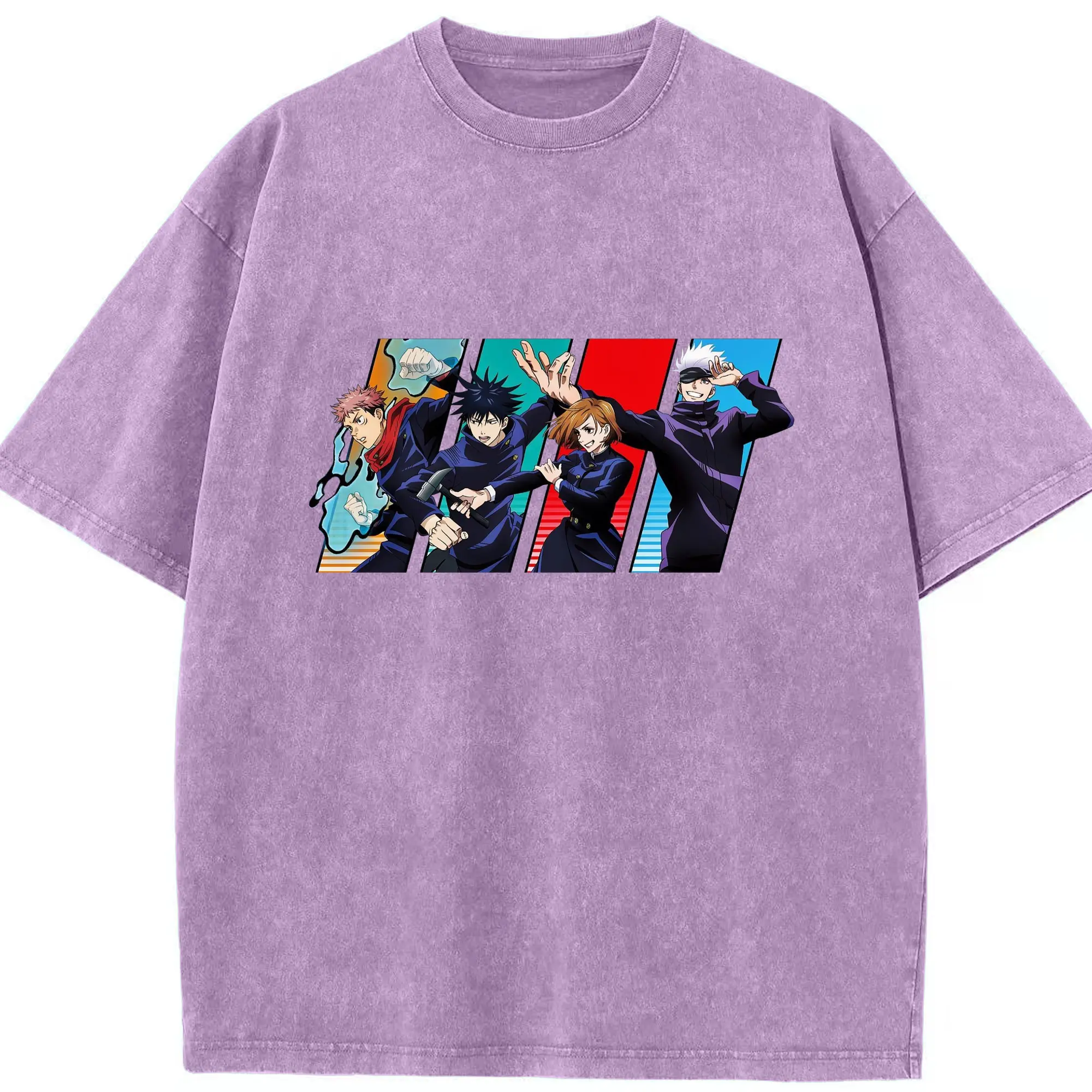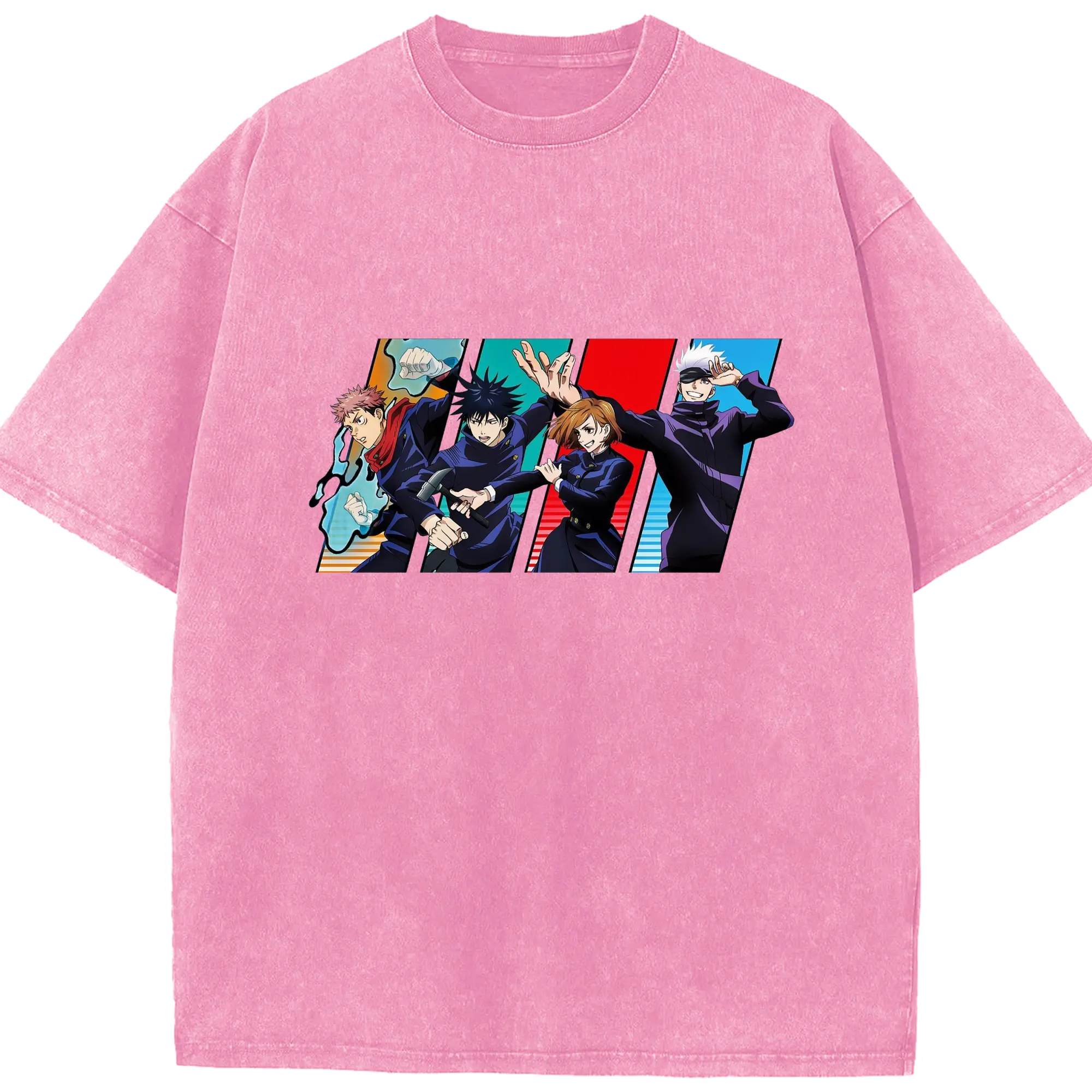 Jujutsu Kaisen-Inspired Anime Group Trendy DIY - Washed Vintage Look 230g Cotton Oversized T-Shirt With Front Heat Transfer Print – Soft, Lightweight, Stylish Fit – Comfortable Casual Wear For Sports & Everyday Use