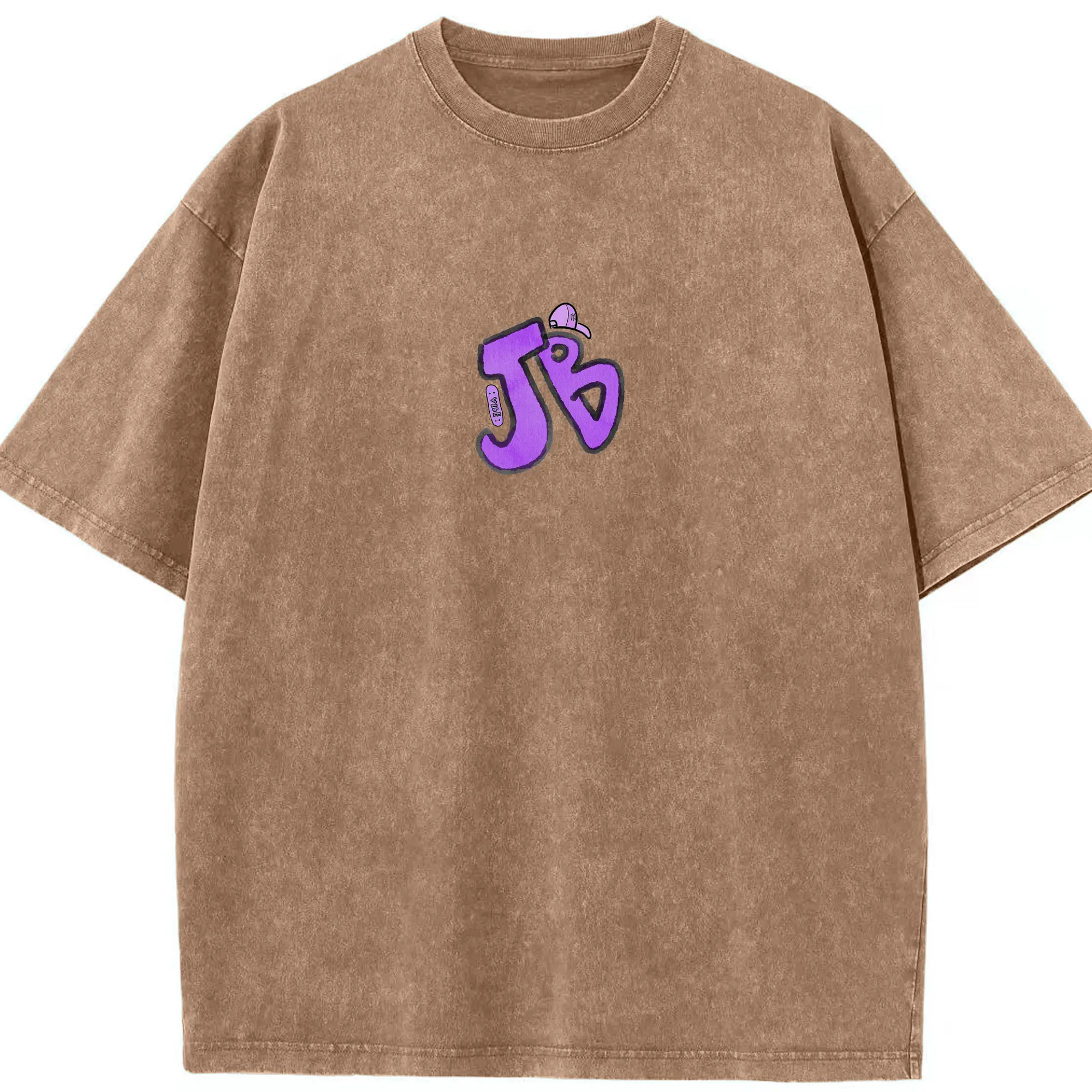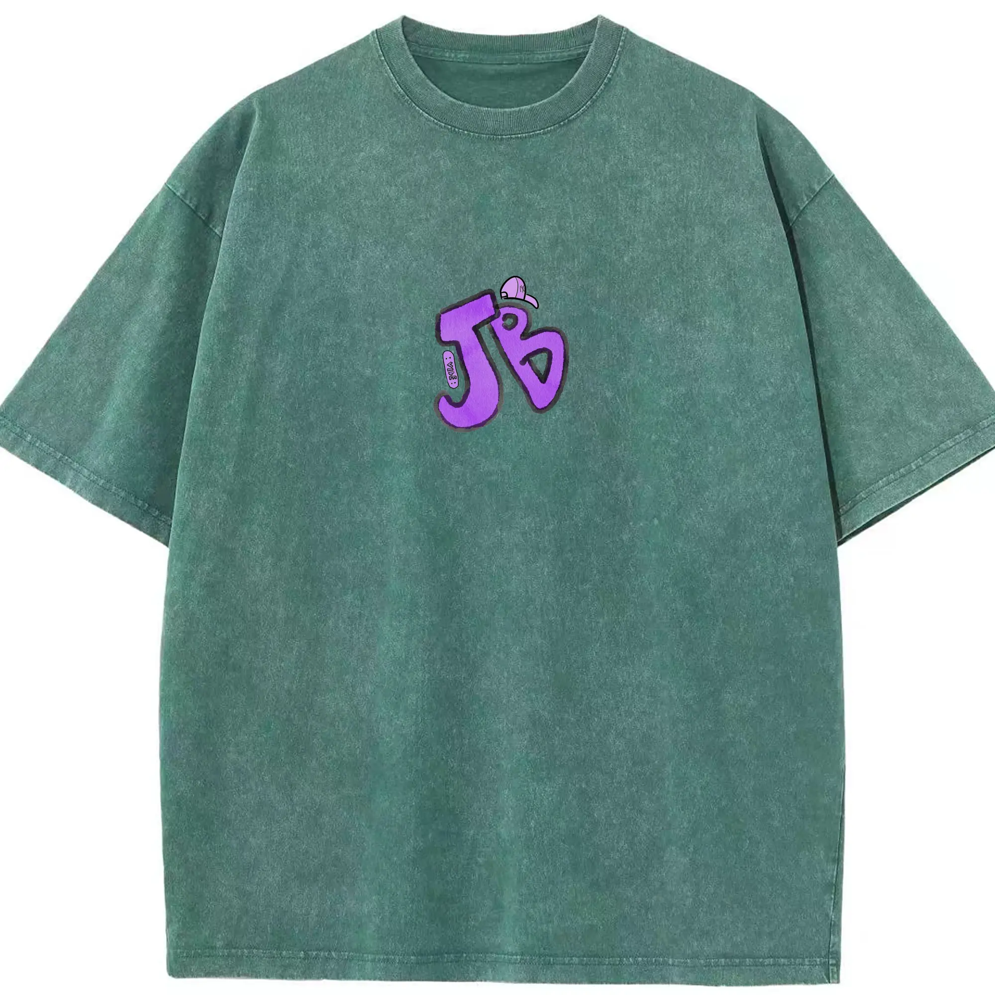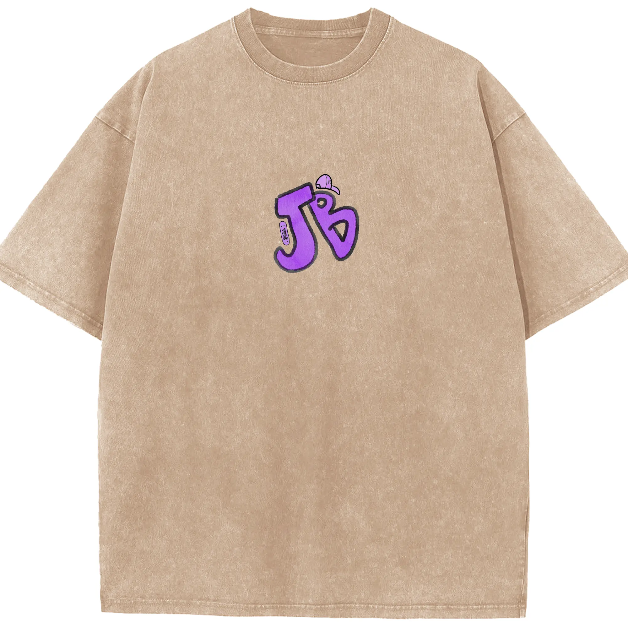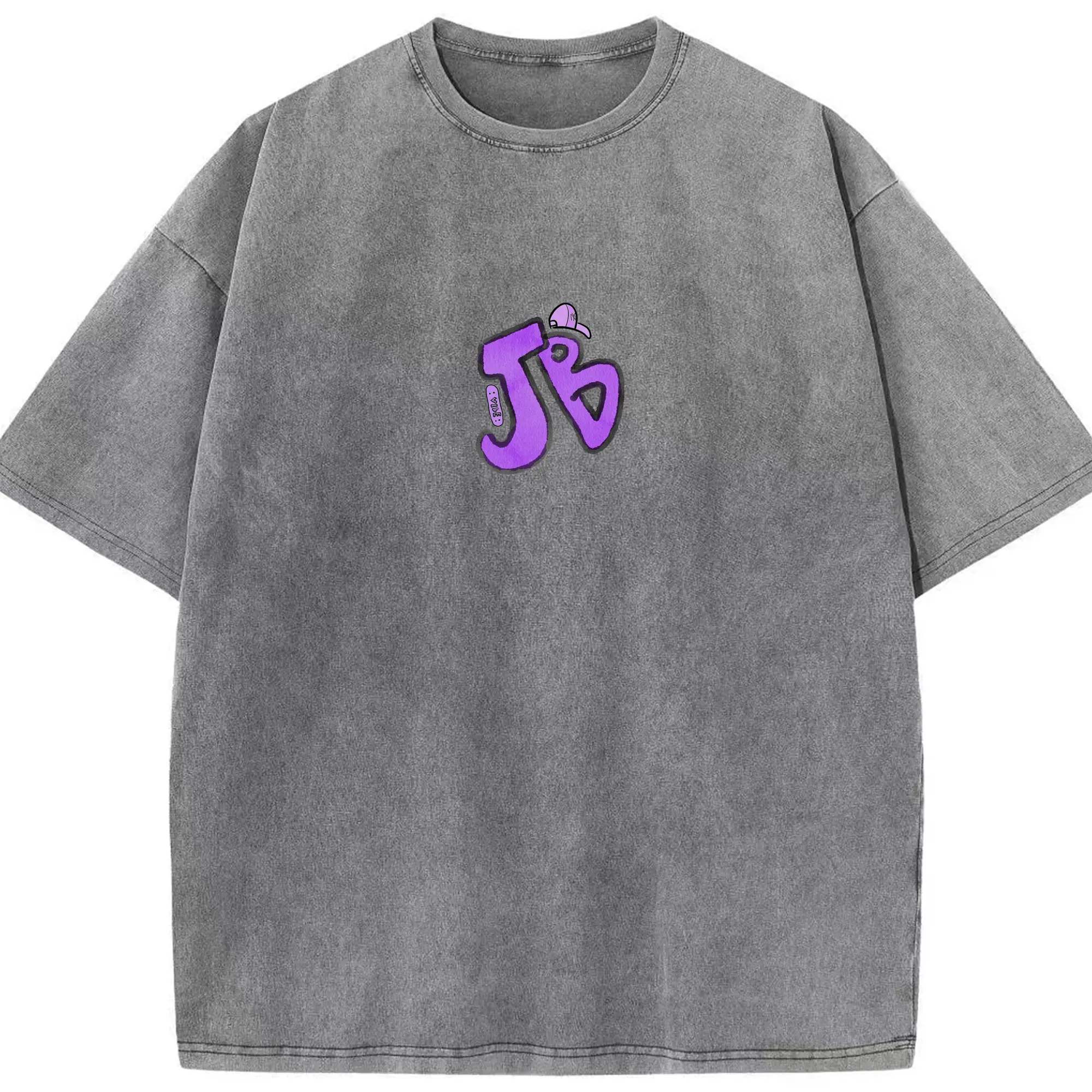 Justin Bieber JB Hand-Drawn Hip-Hop DIY - Washed Vintage Look 230g Cotton Oversized T-Shirt With Front Heat Transfer Print – Soft, Lightweight, Stylish Fit – Comfortable Casual Wear For Sports & Everyday Use