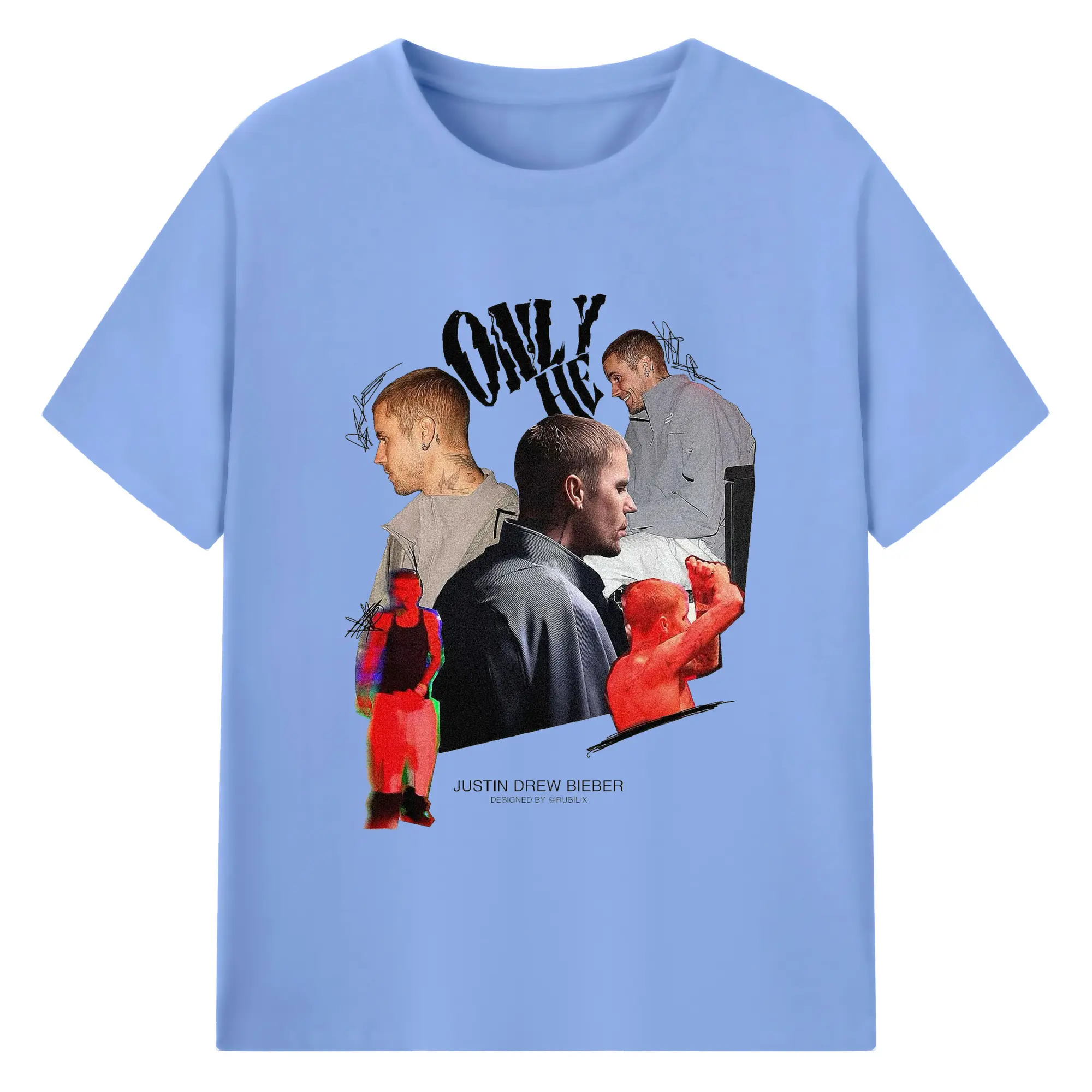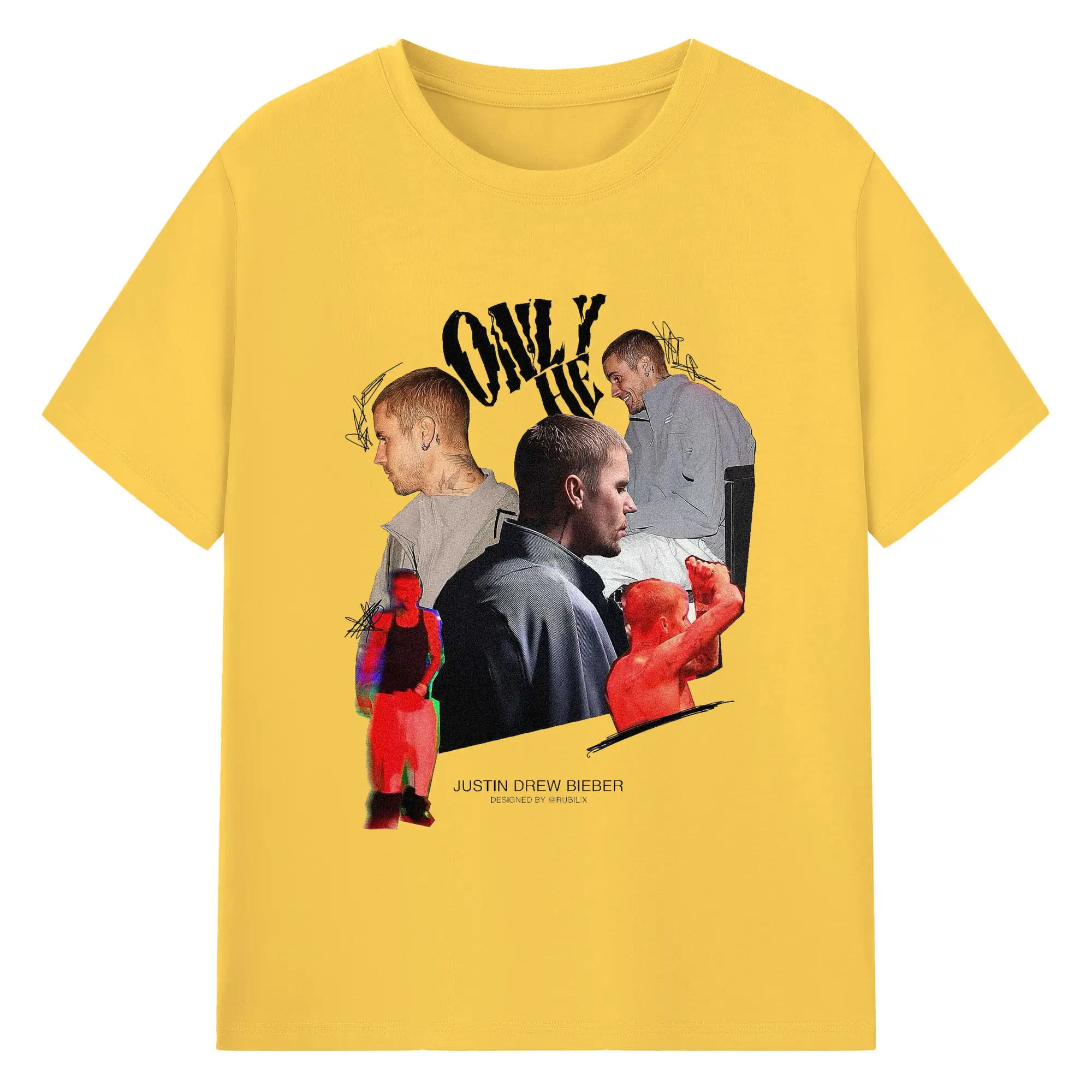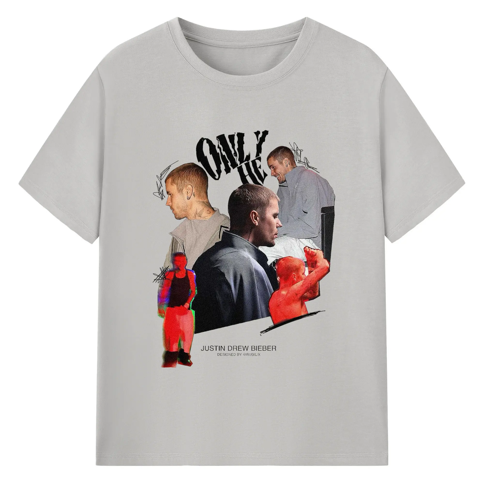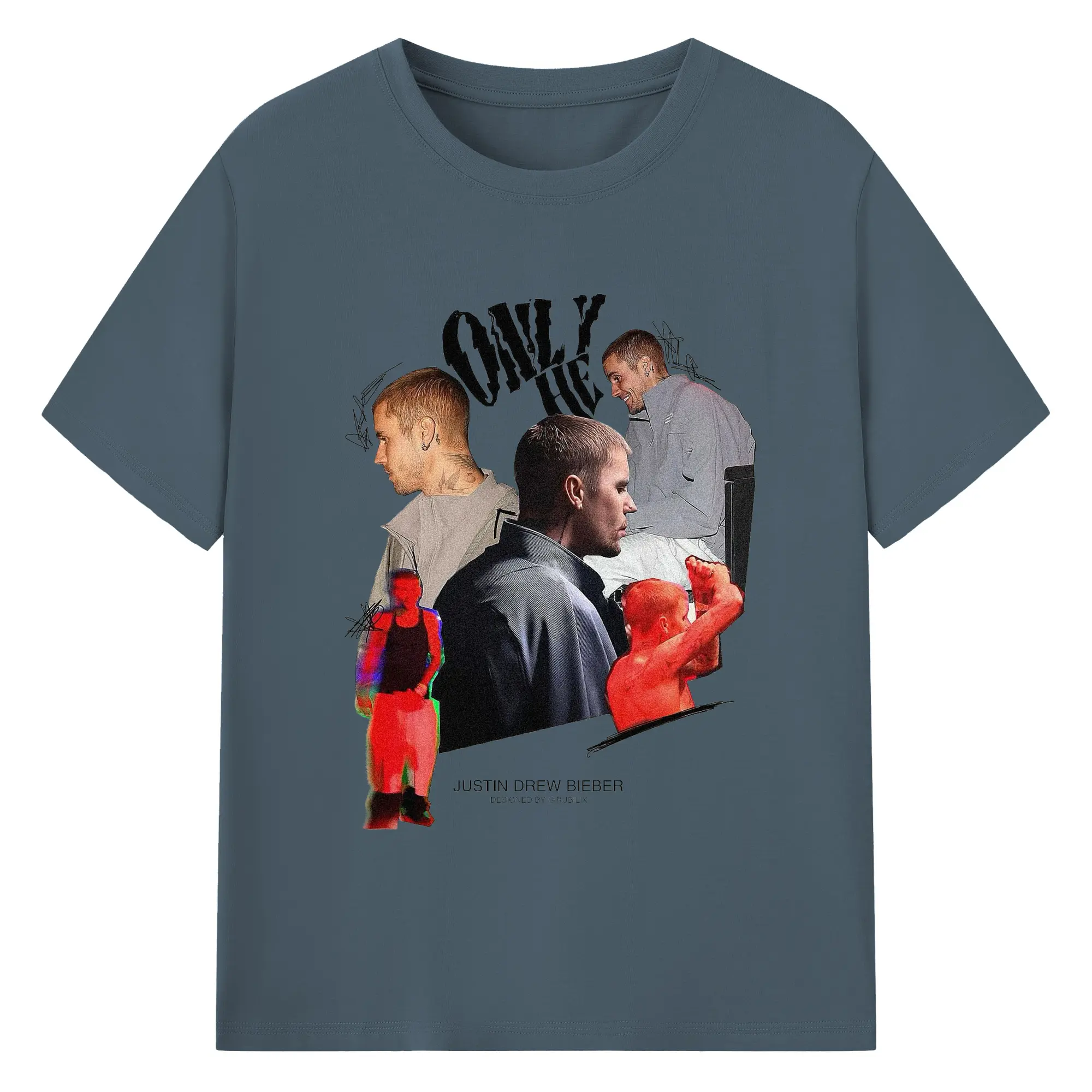 Justin Bieber ONLU HE Retro Collage DIY - 180g Cotton T-Shirt With Front Heat Transfer Print – Soft, Lightweight, Fitted Design – Comfortable Casual Wear For Sports & Everyday Use