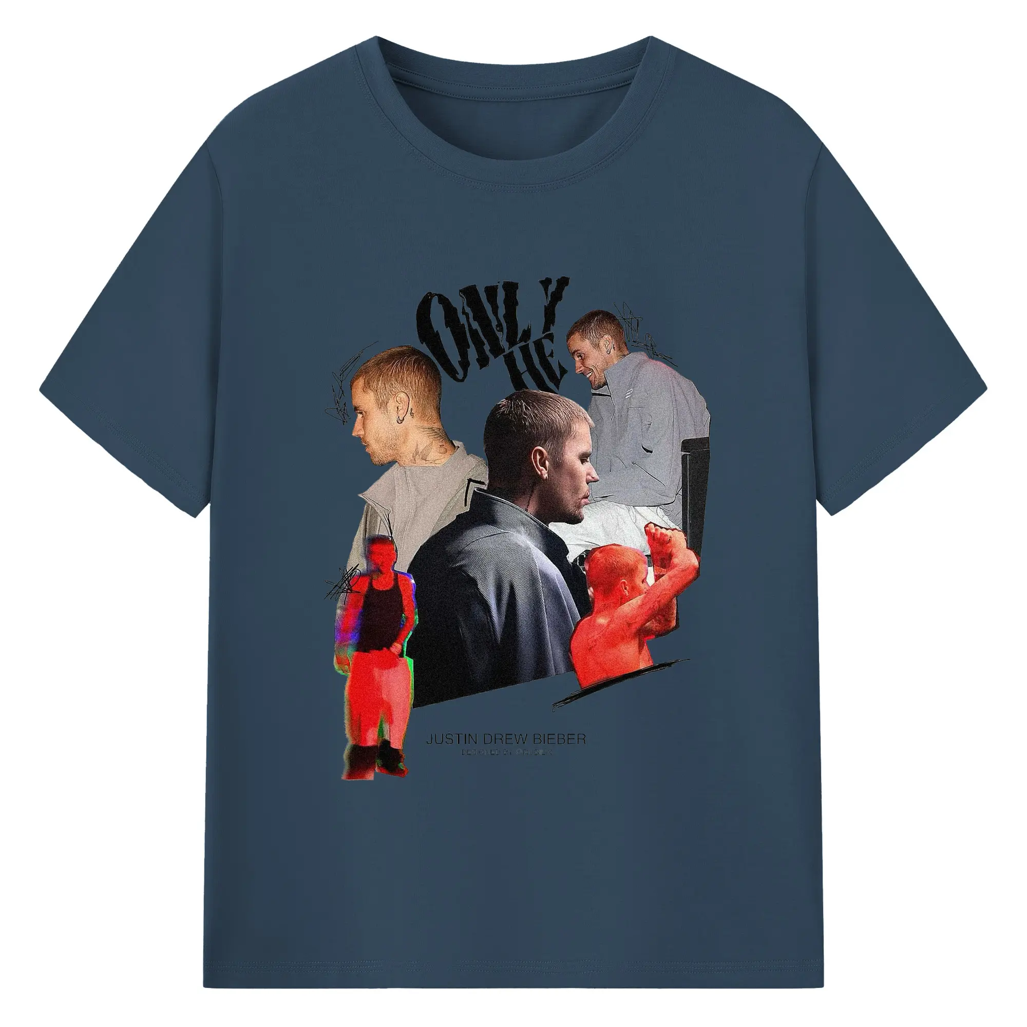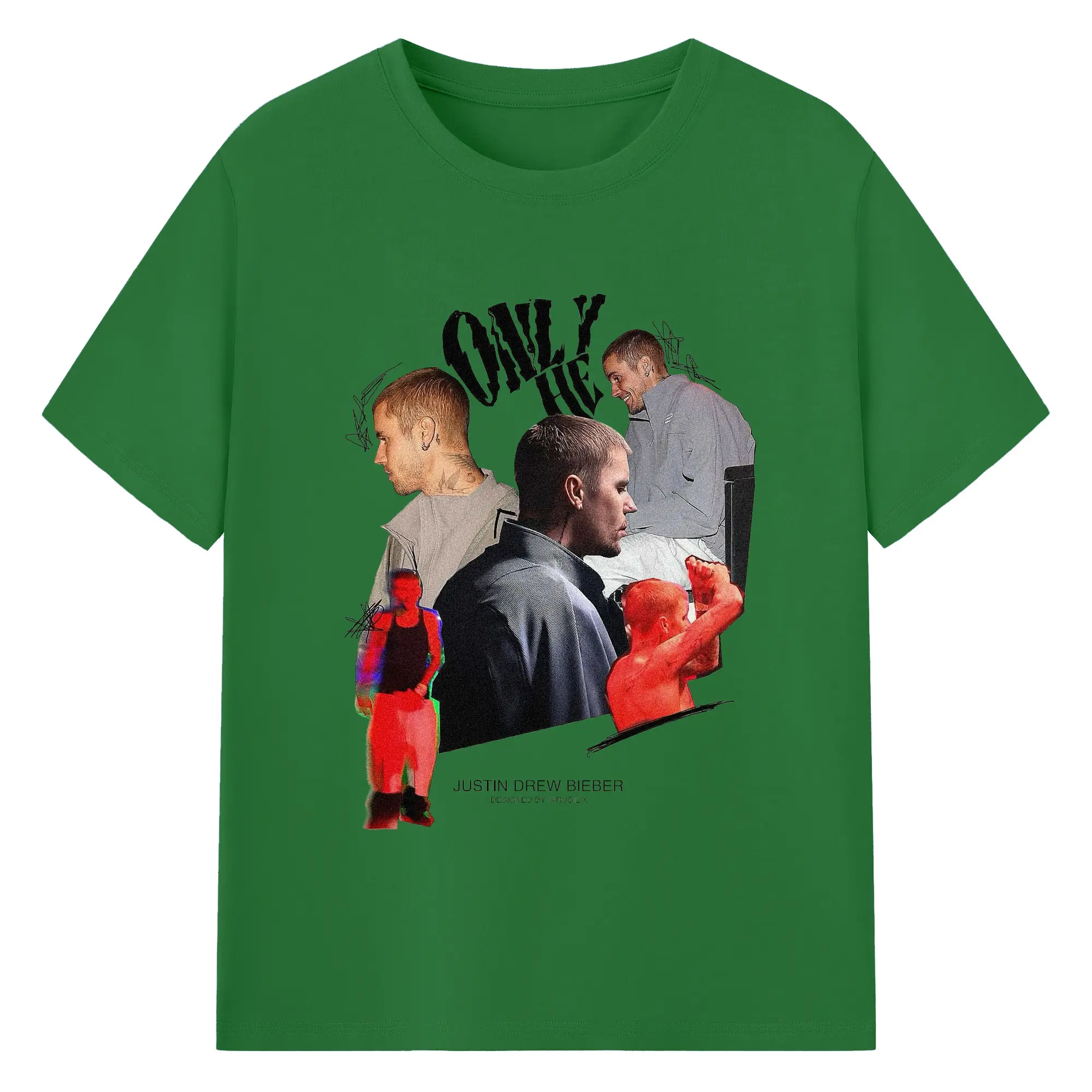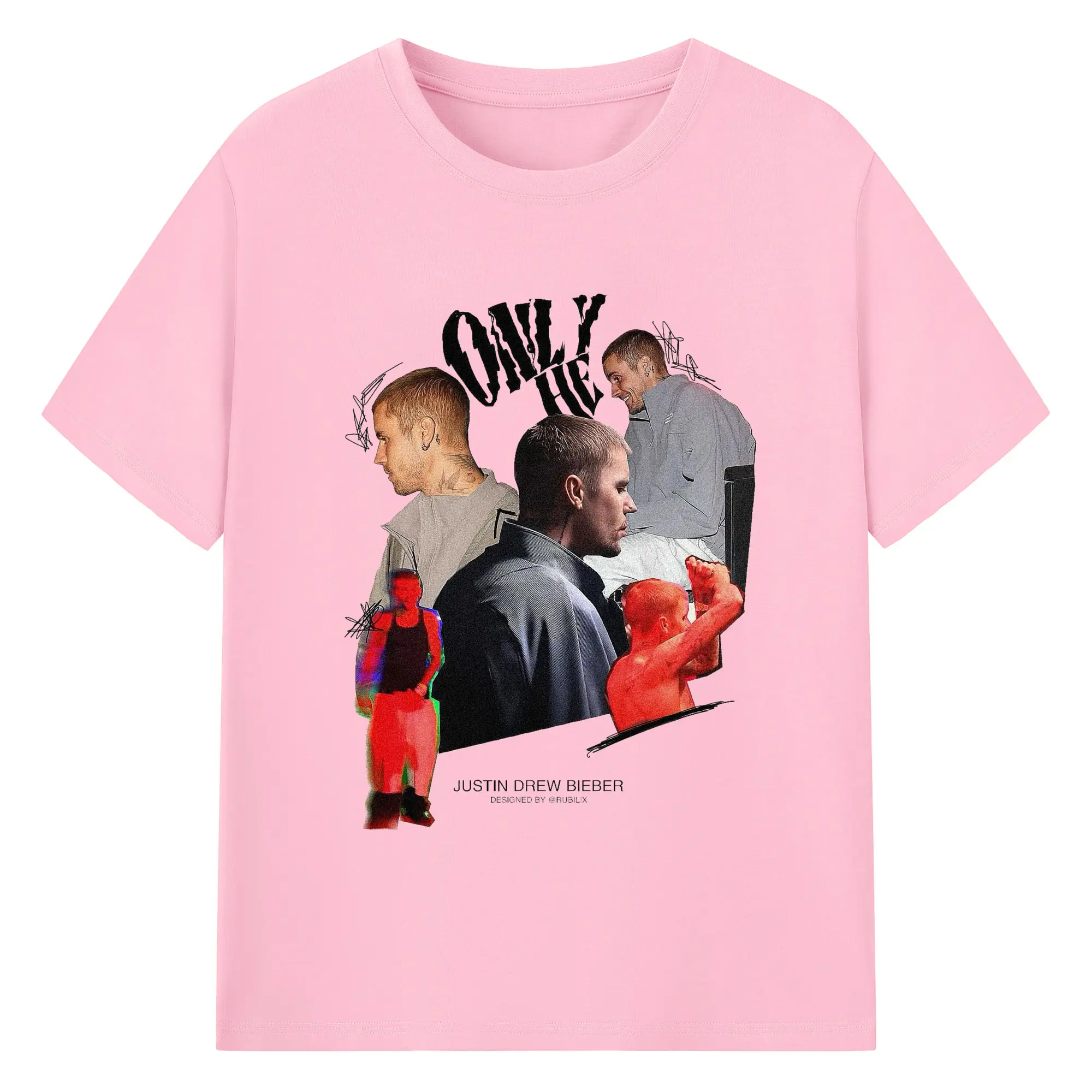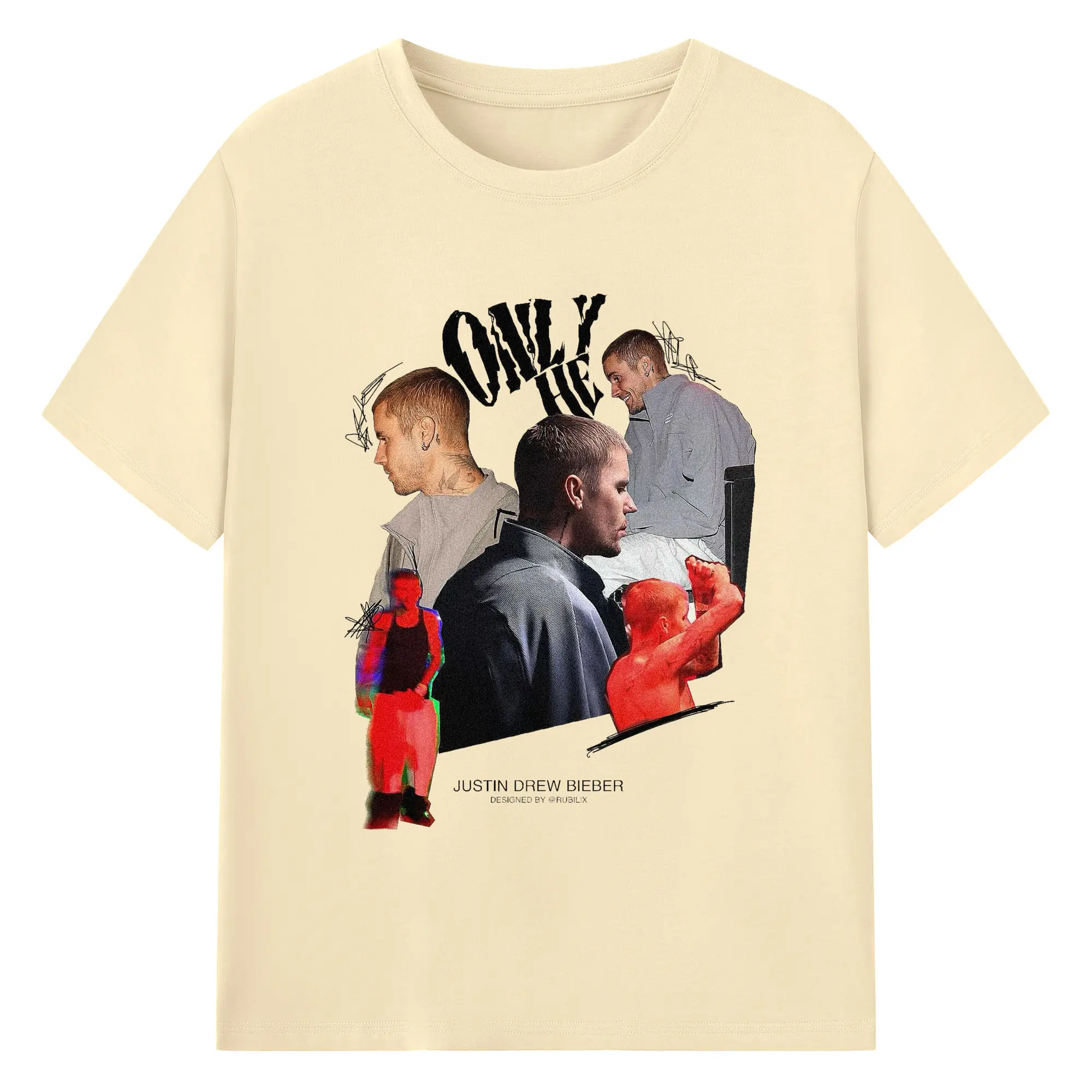 Justin Bieber ONLU HE Retro Collage DIY - 180g Cotton T-Shirt With Front Heat Transfer Print – Soft, Lightweight, Fitted Design – Comfortable Casual Wear For Sports & Everyday Use