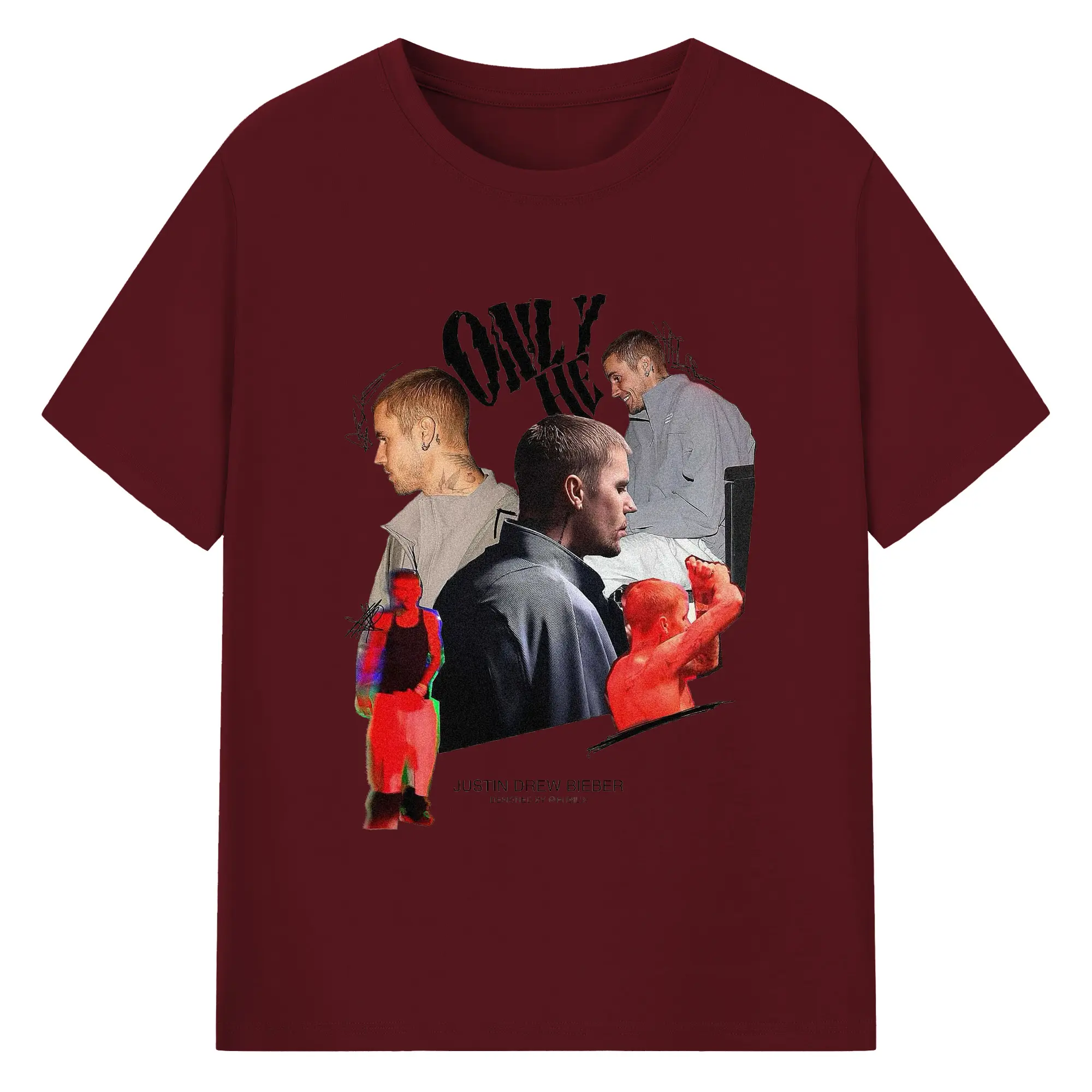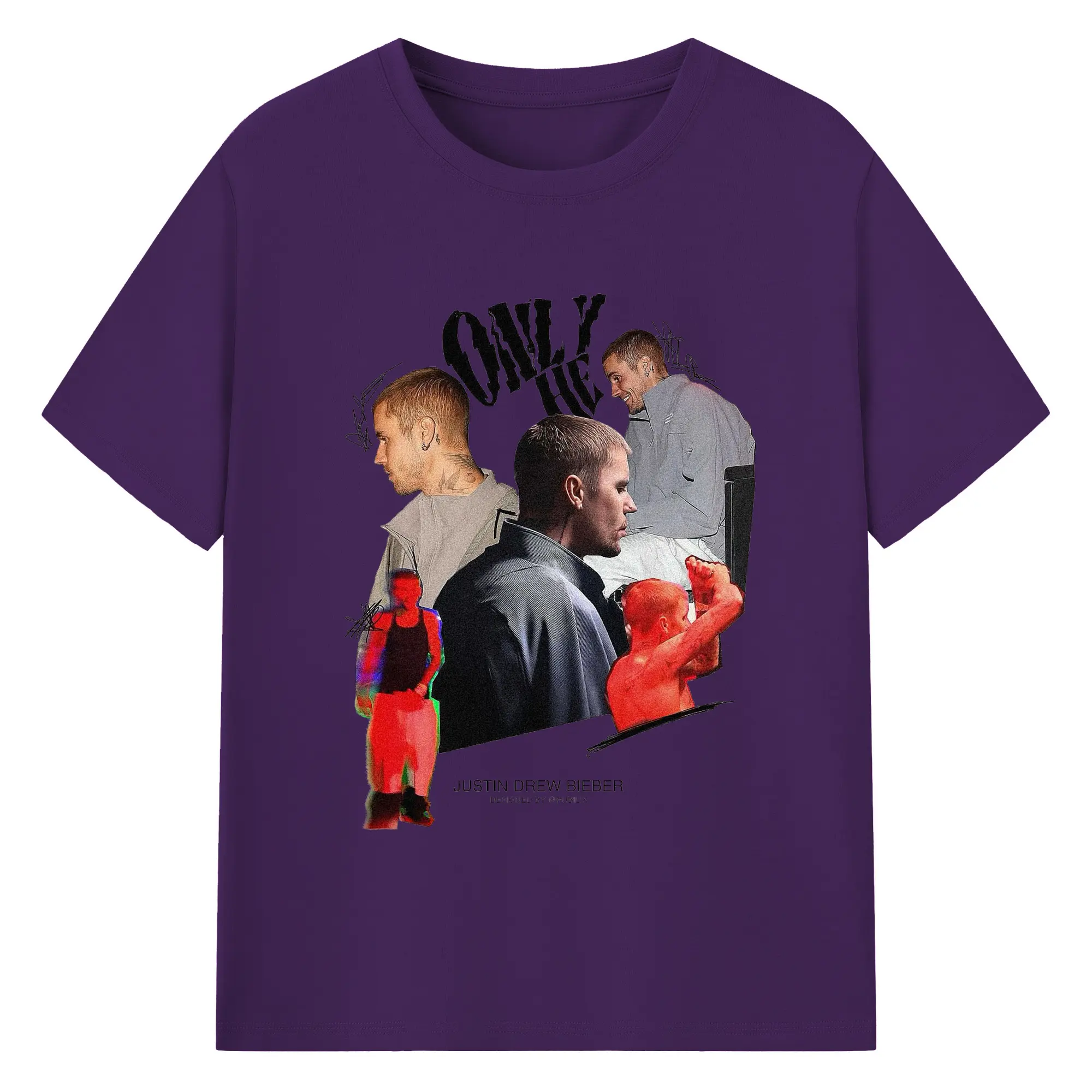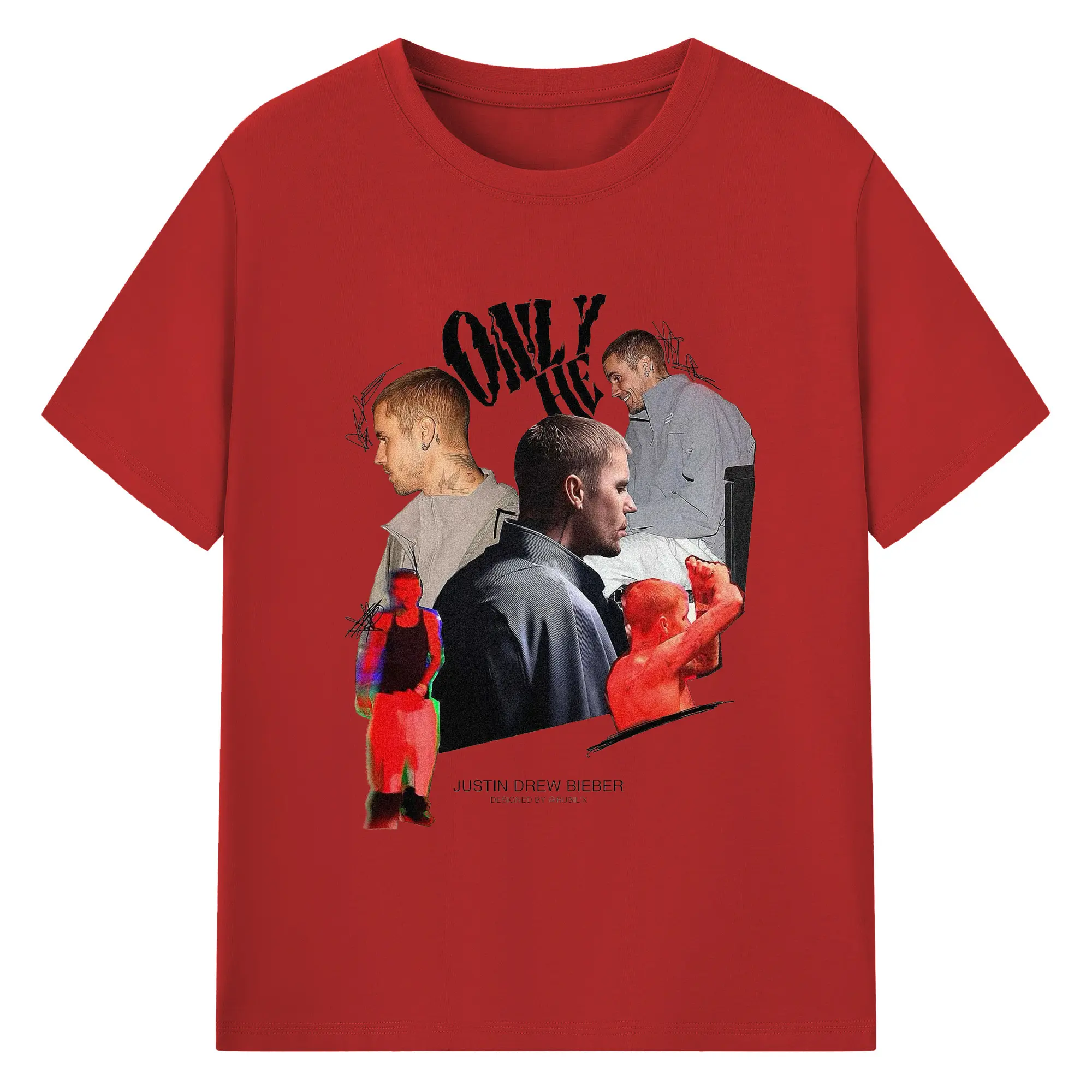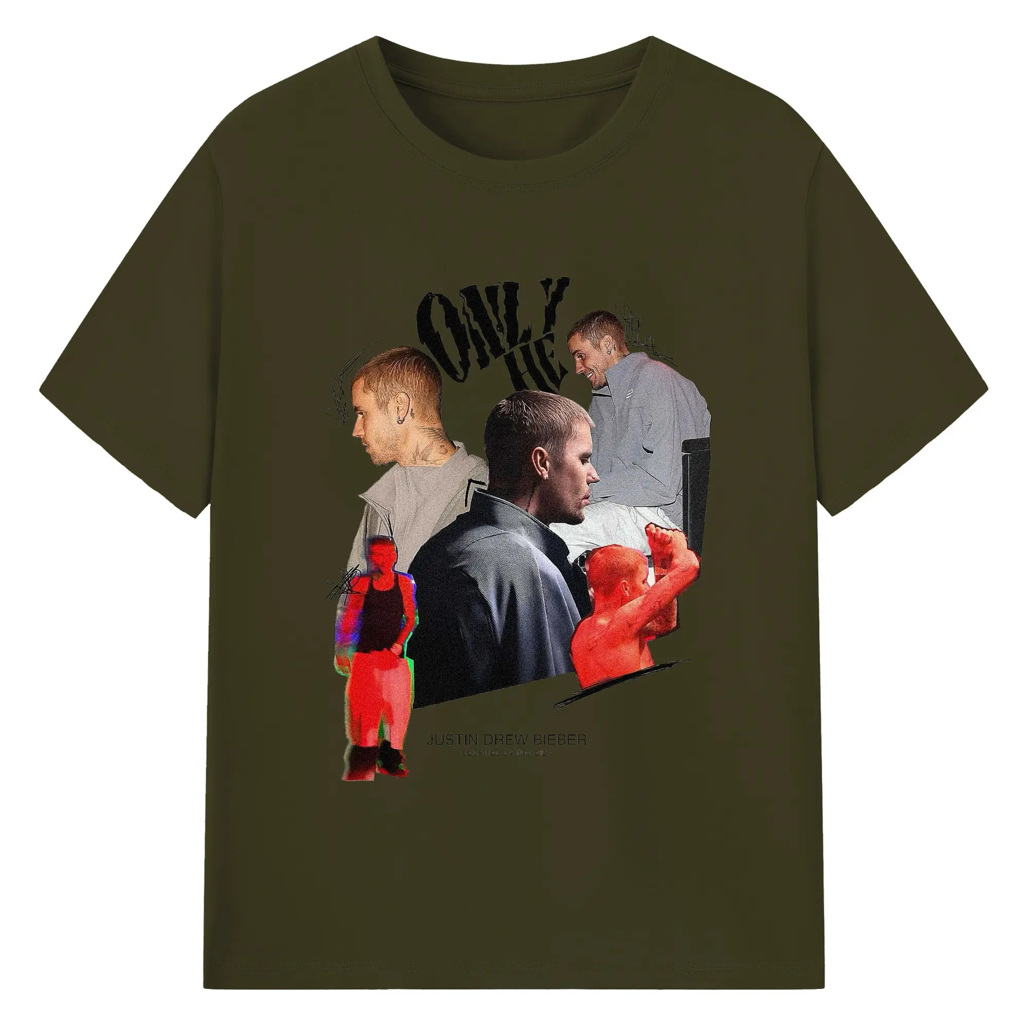 Justin Bieber ONLU HE Retro Collage DIY - 180g Cotton T-Shirt With Front Heat Transfer Print – Soft, Lightweight, Fitted Design – Comfortable Casual Wear For Sports & Everyday Use