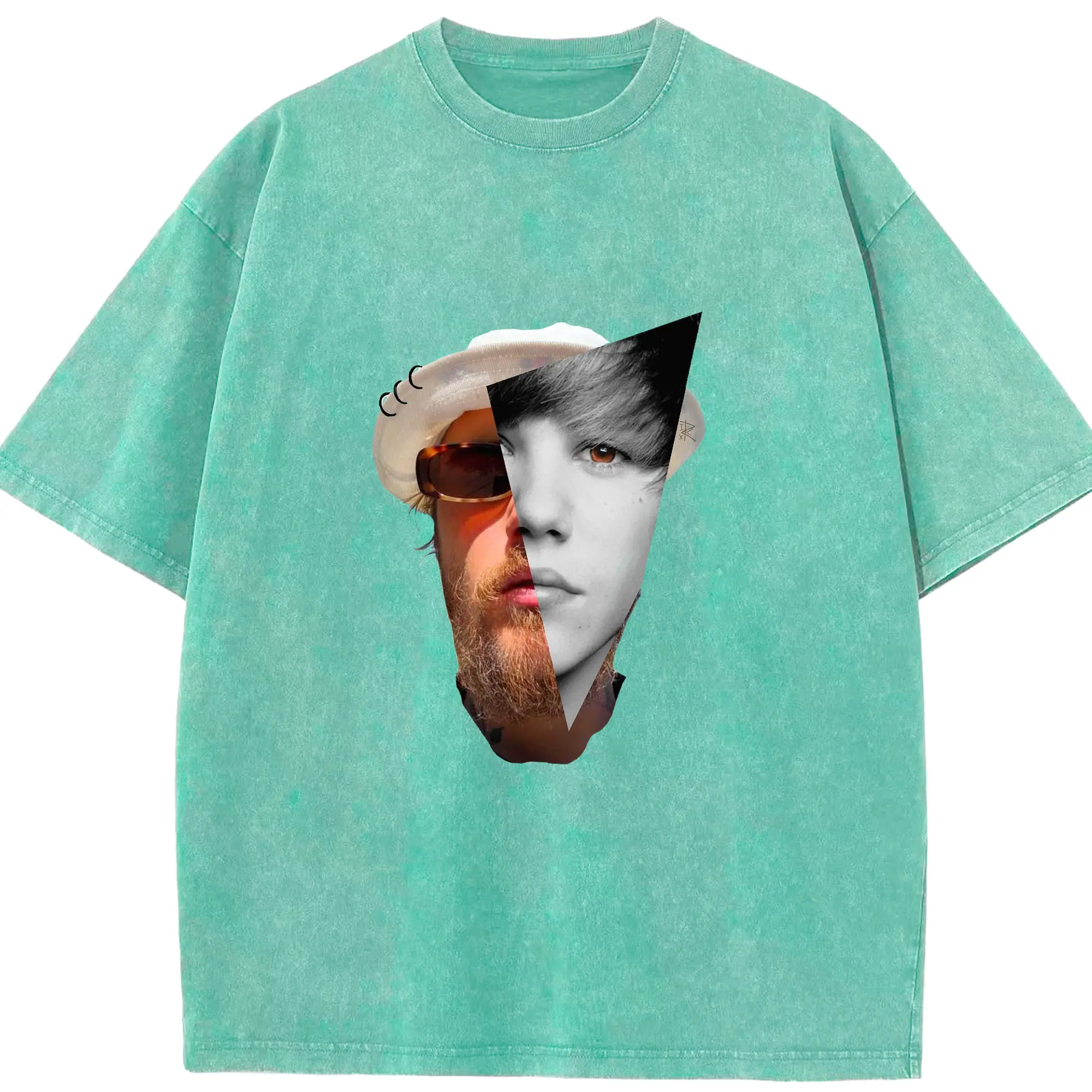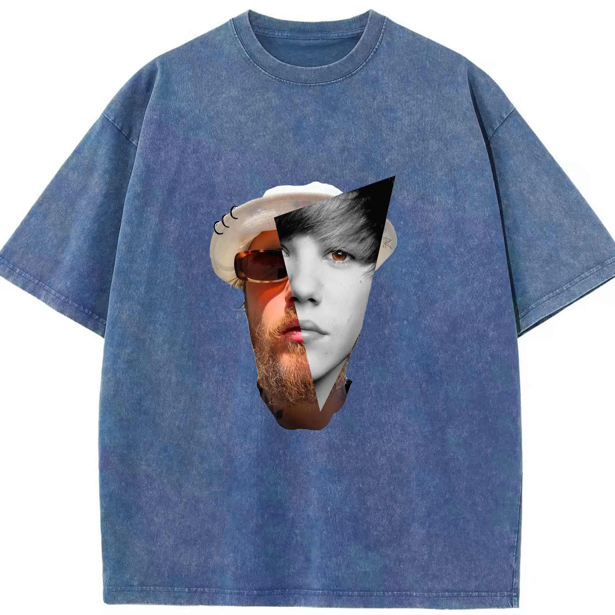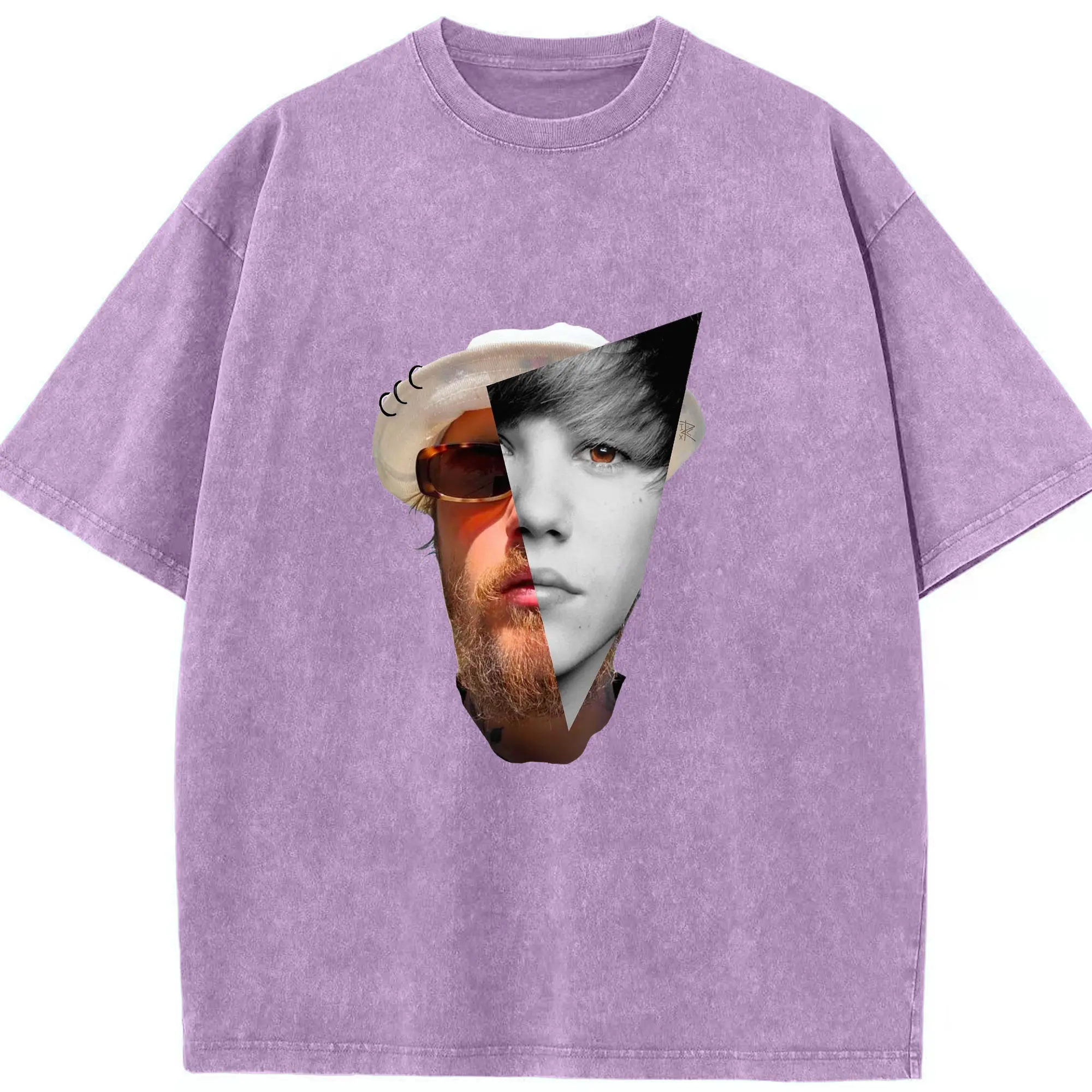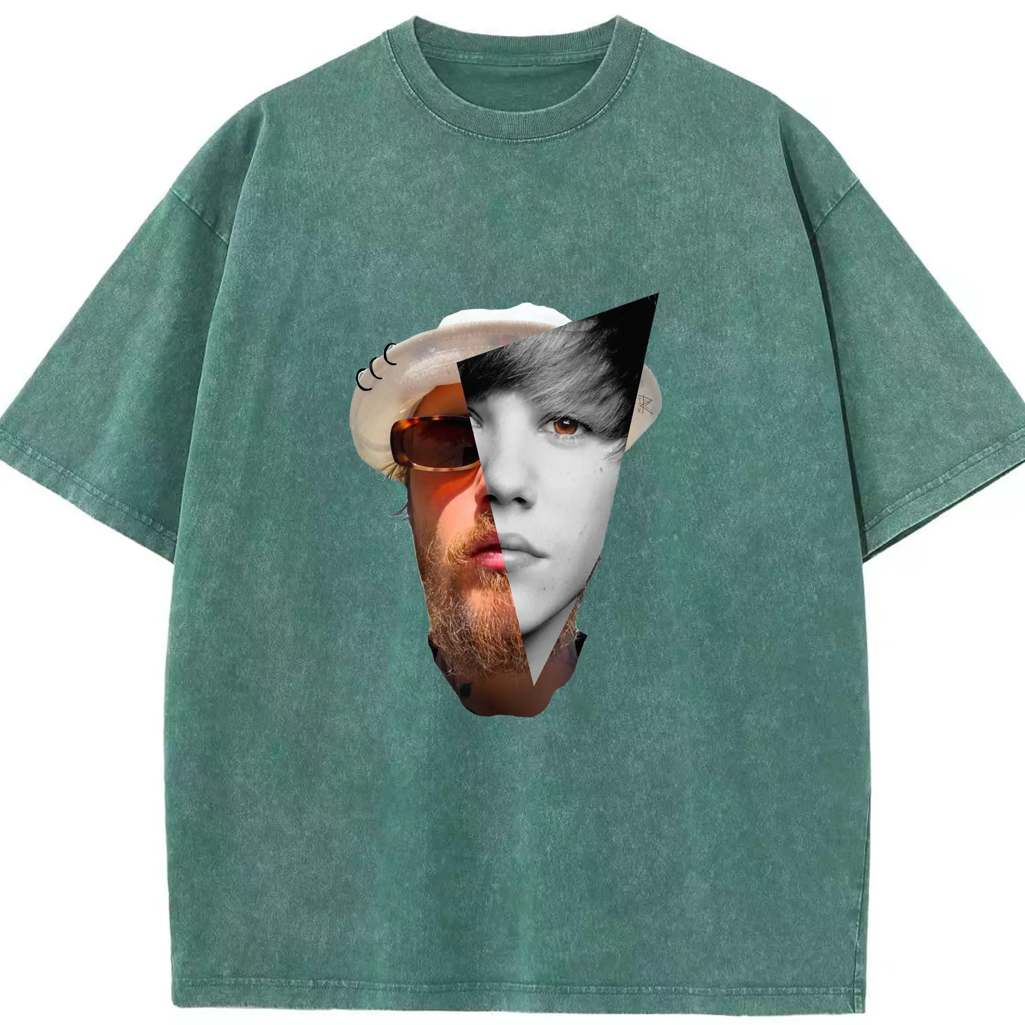 Justin Bieber Surreal Collage Avant-Garde DIY - Washed Vintage Look 230g Cotton Oversized T-Shirt With Front Heat Transfer Print – Soft, Lightweight, Stylish Fit – Comfortable Casual Wear For Sports & Everyday Use