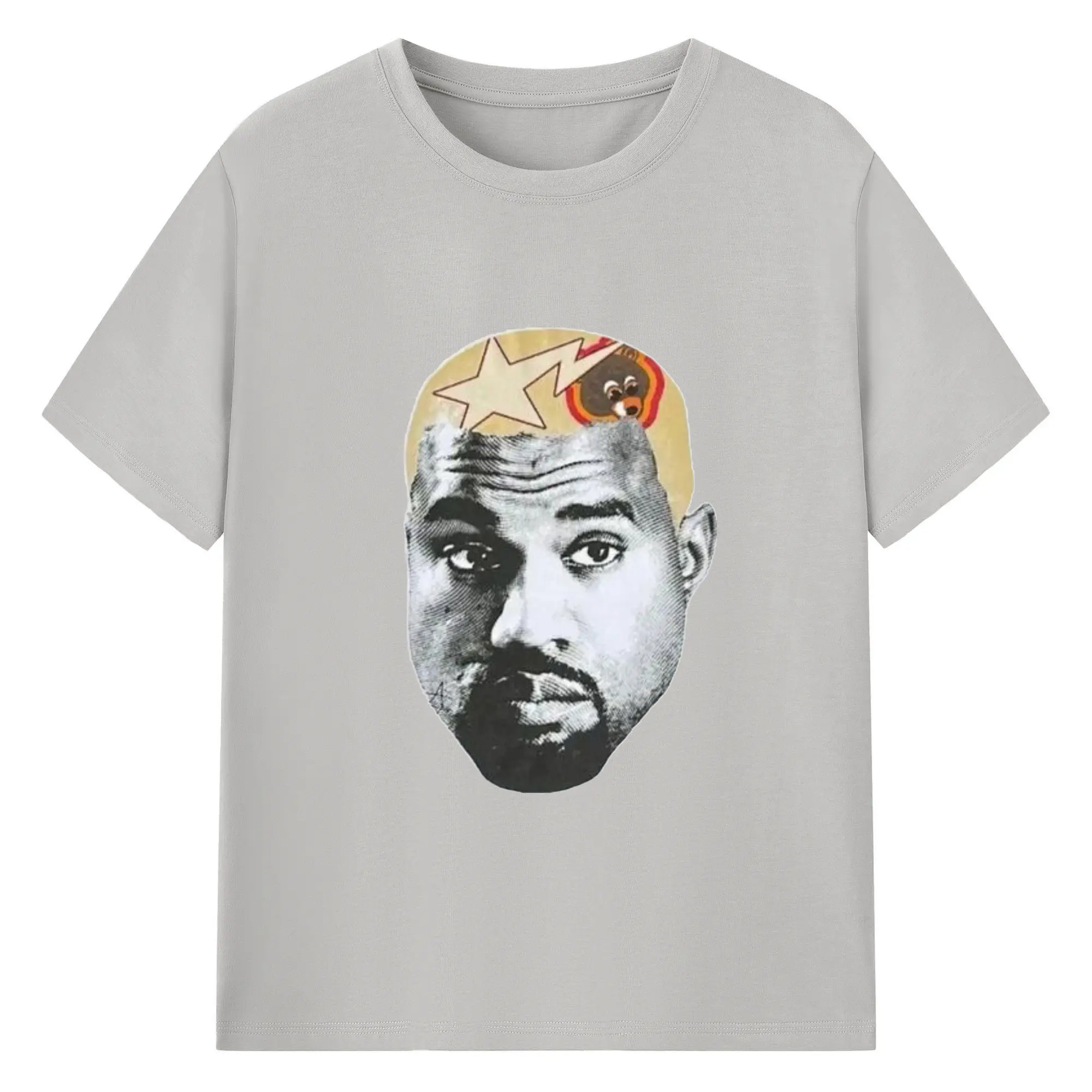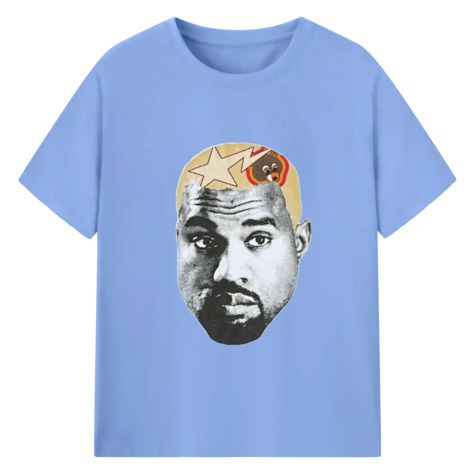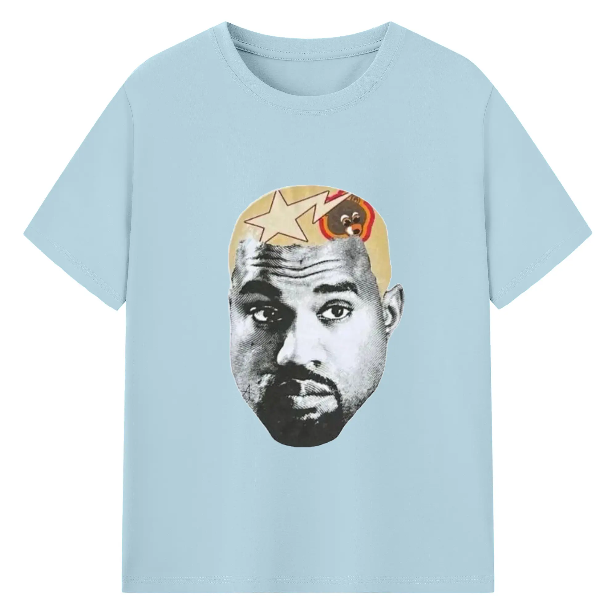 Kanye West Art Collage Cartoon DIY - 180g Cotton T-Shirt With Front Heat Transfer Print – Soft, Lightweight, Fitted Design – Comfortable Casual Wear For Sports & Everyday Use
