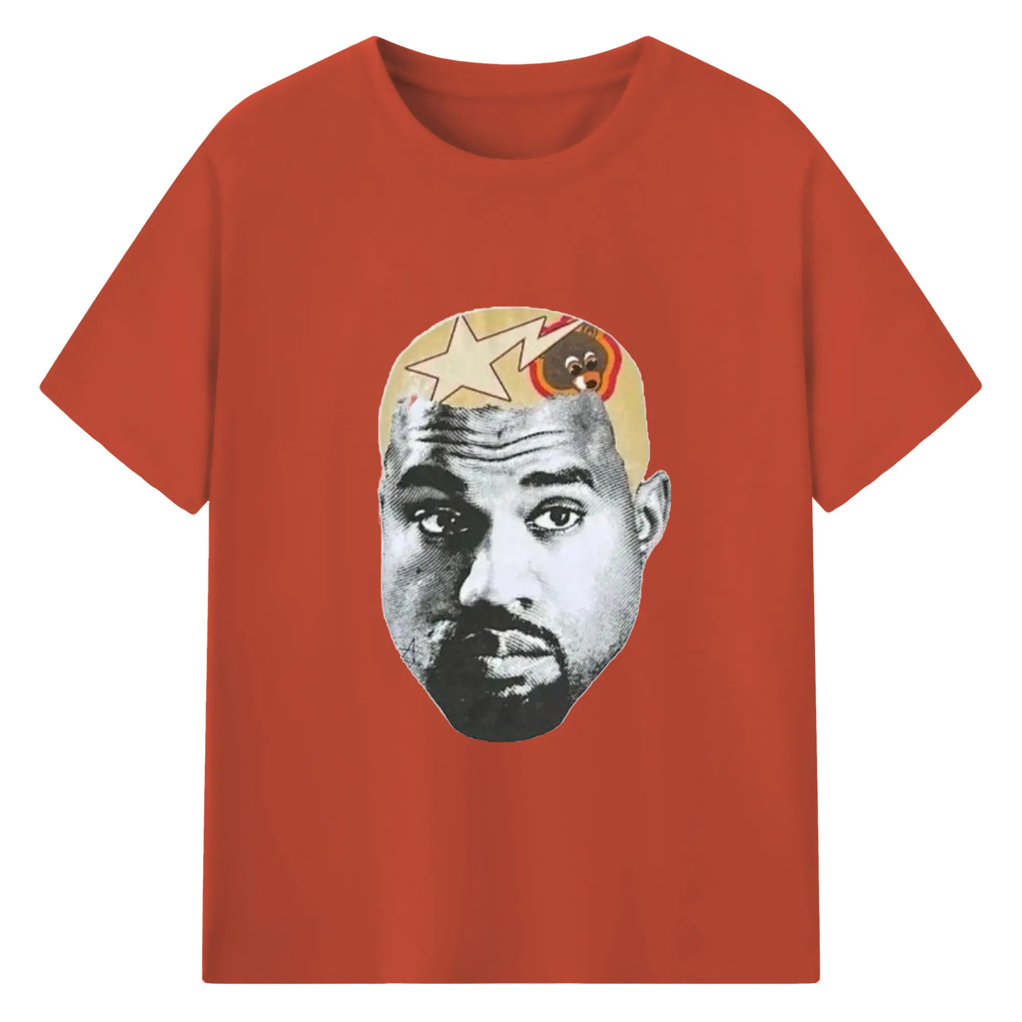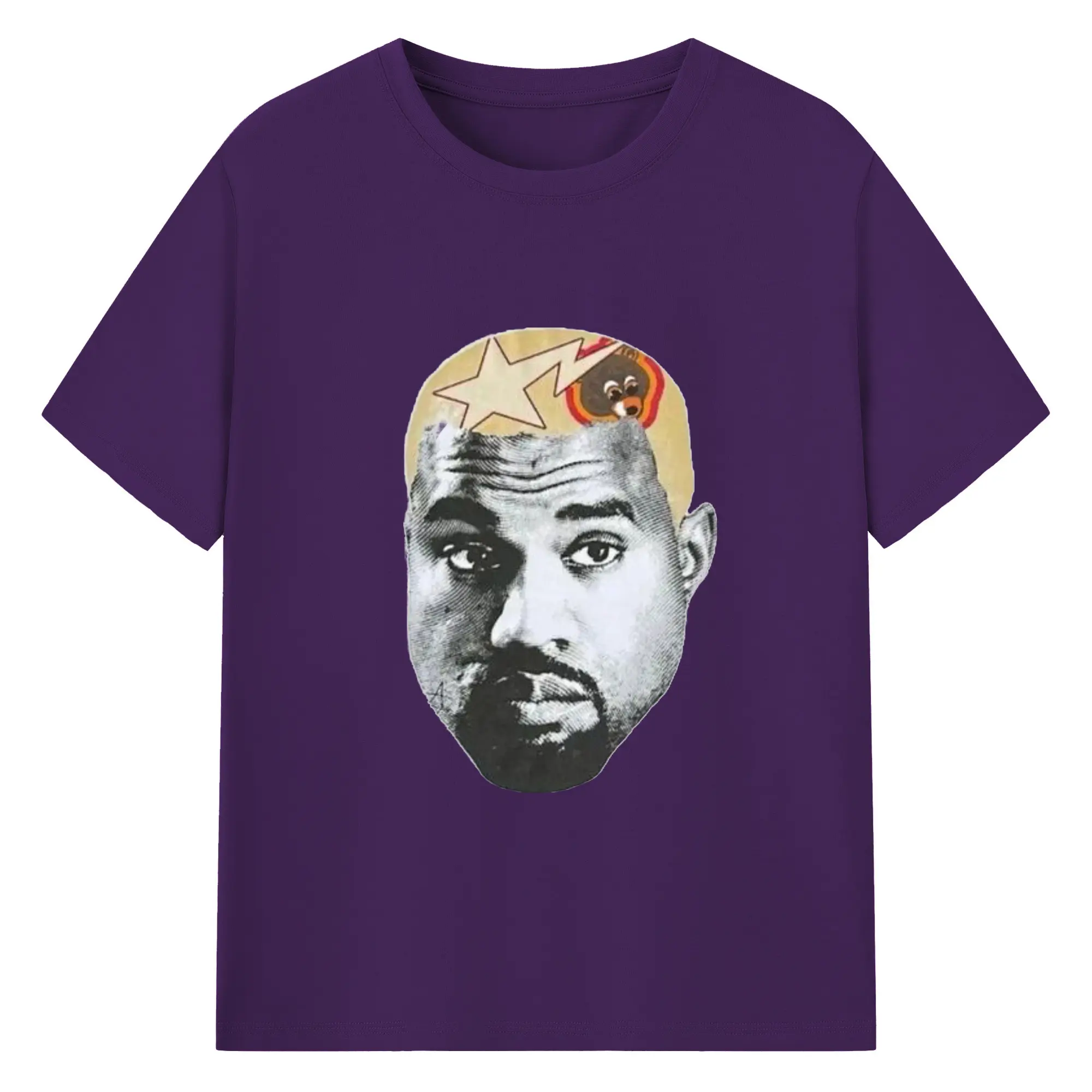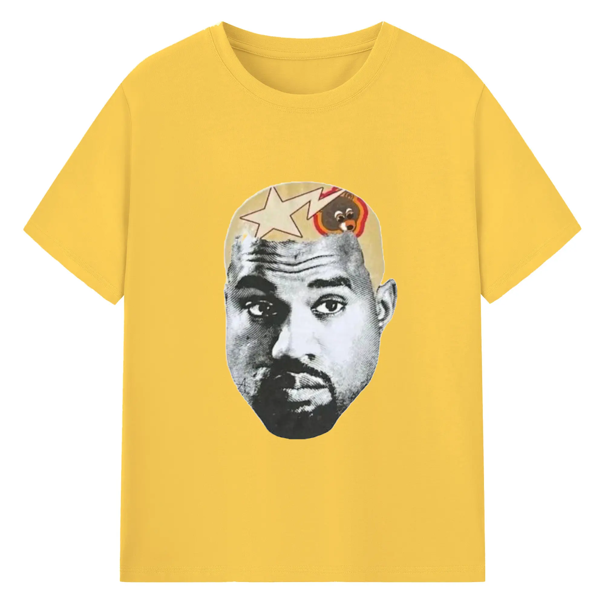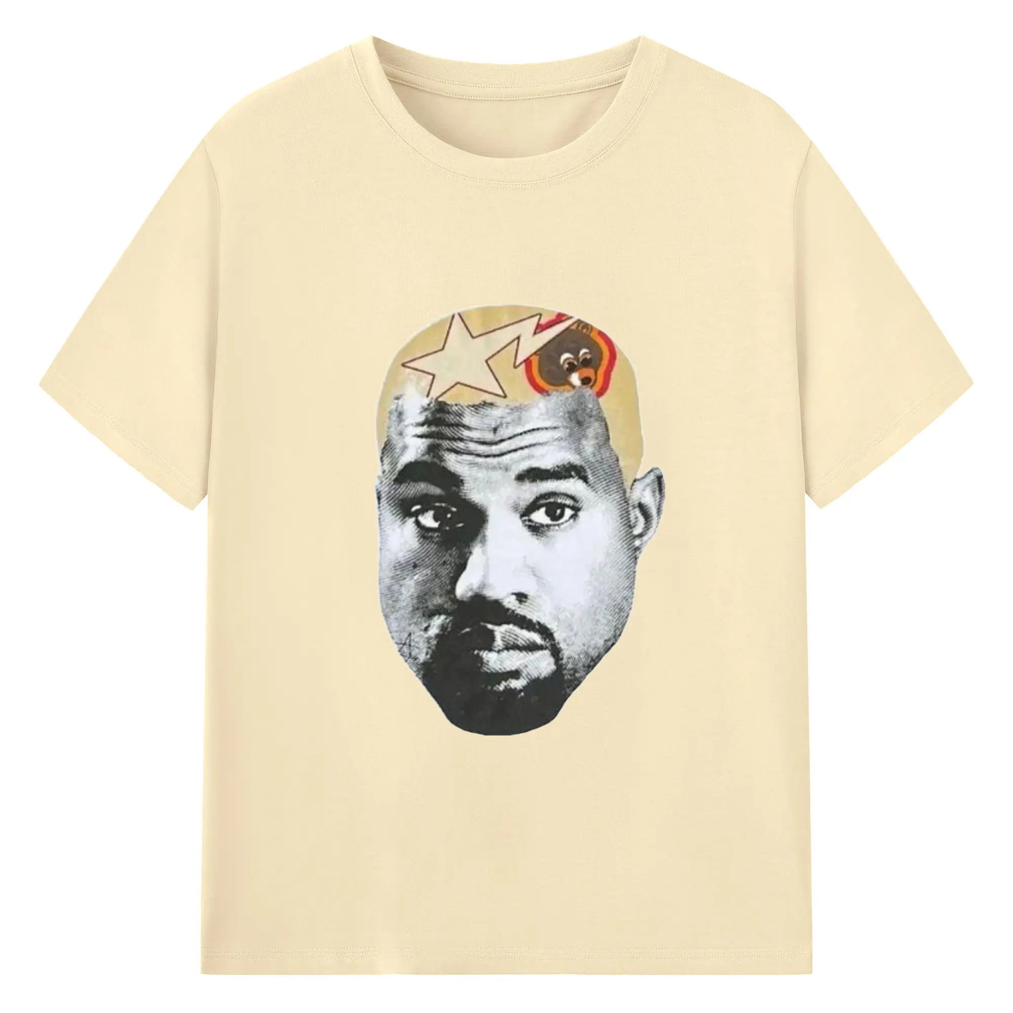 Kanye West Art Collage Cartoon DIY - 180g Cotton T-Shirt With Front Heat Transfer Print – Soft, Lightweight, Fitted Design – Comfortable Casual Wear For Sports & Everyday Use