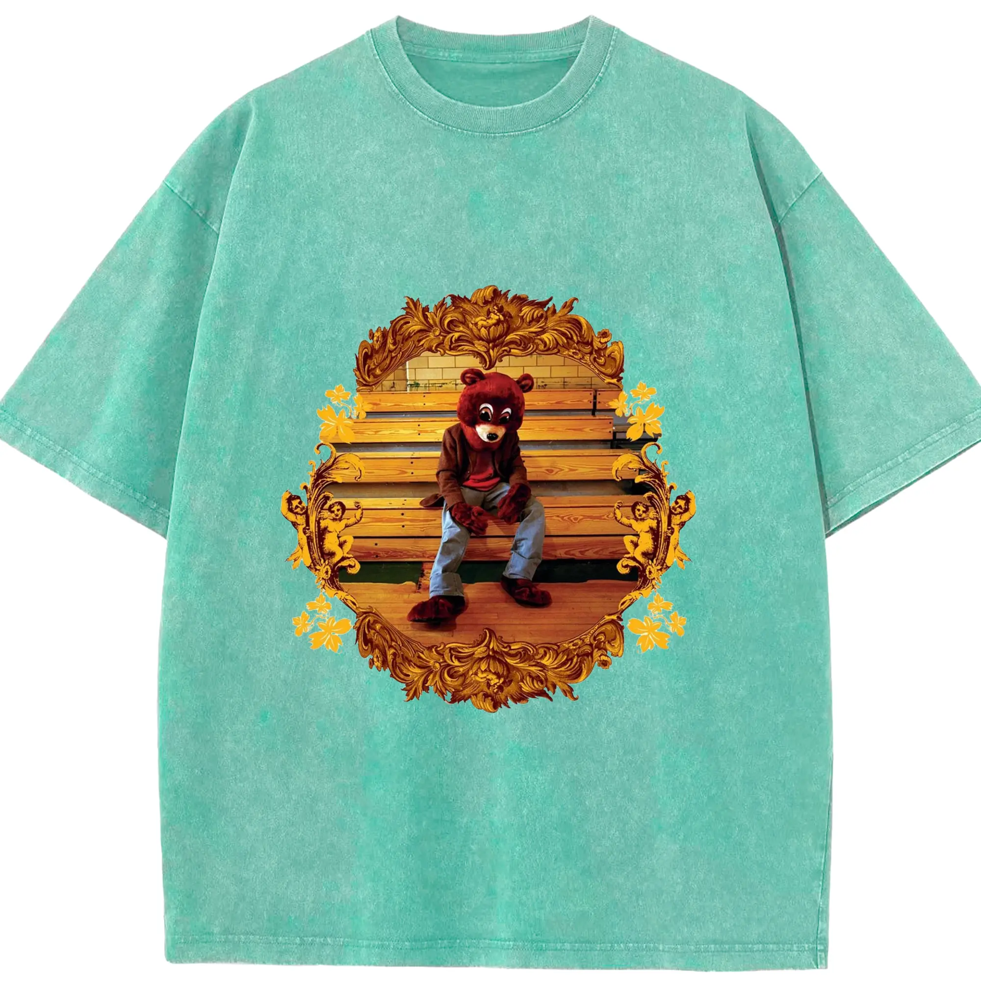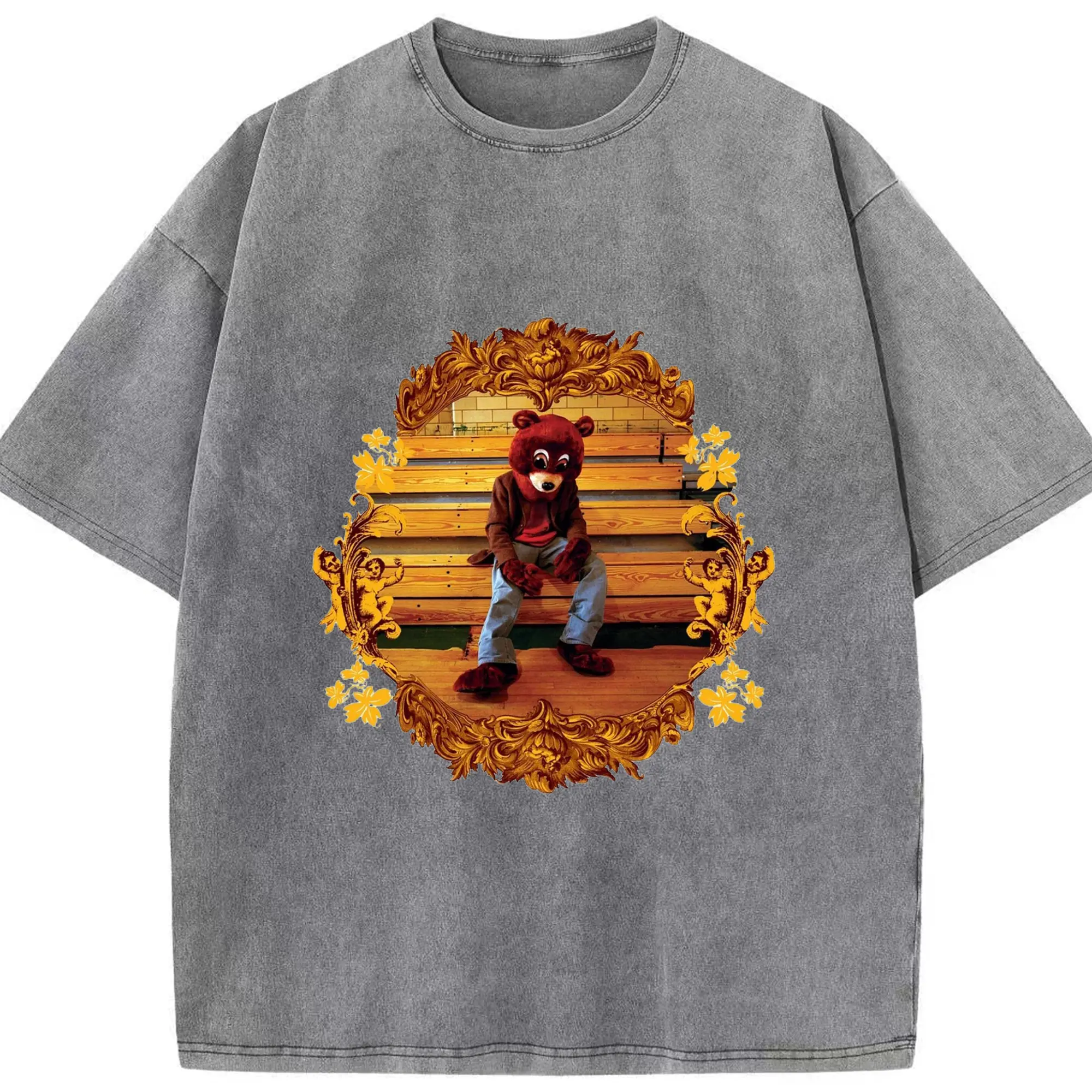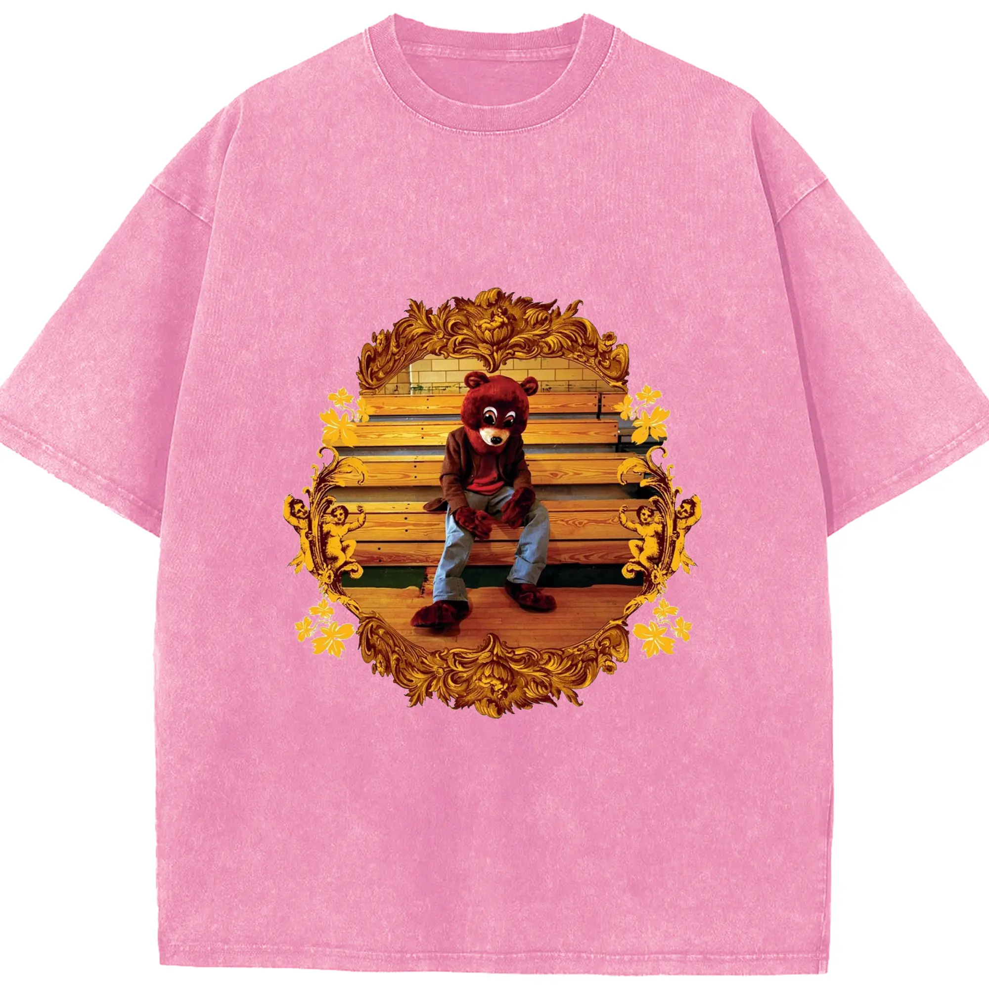 Kanye West College Dropout Bear Retro Baroque DIY - Washed Vintage Look 230g Cotton Oversized T-Shirt With Front Heat Transfer Print – Soft, Lightweight, Stylish Fit – Comfortable Casual Wear For Sports & Everyday Use