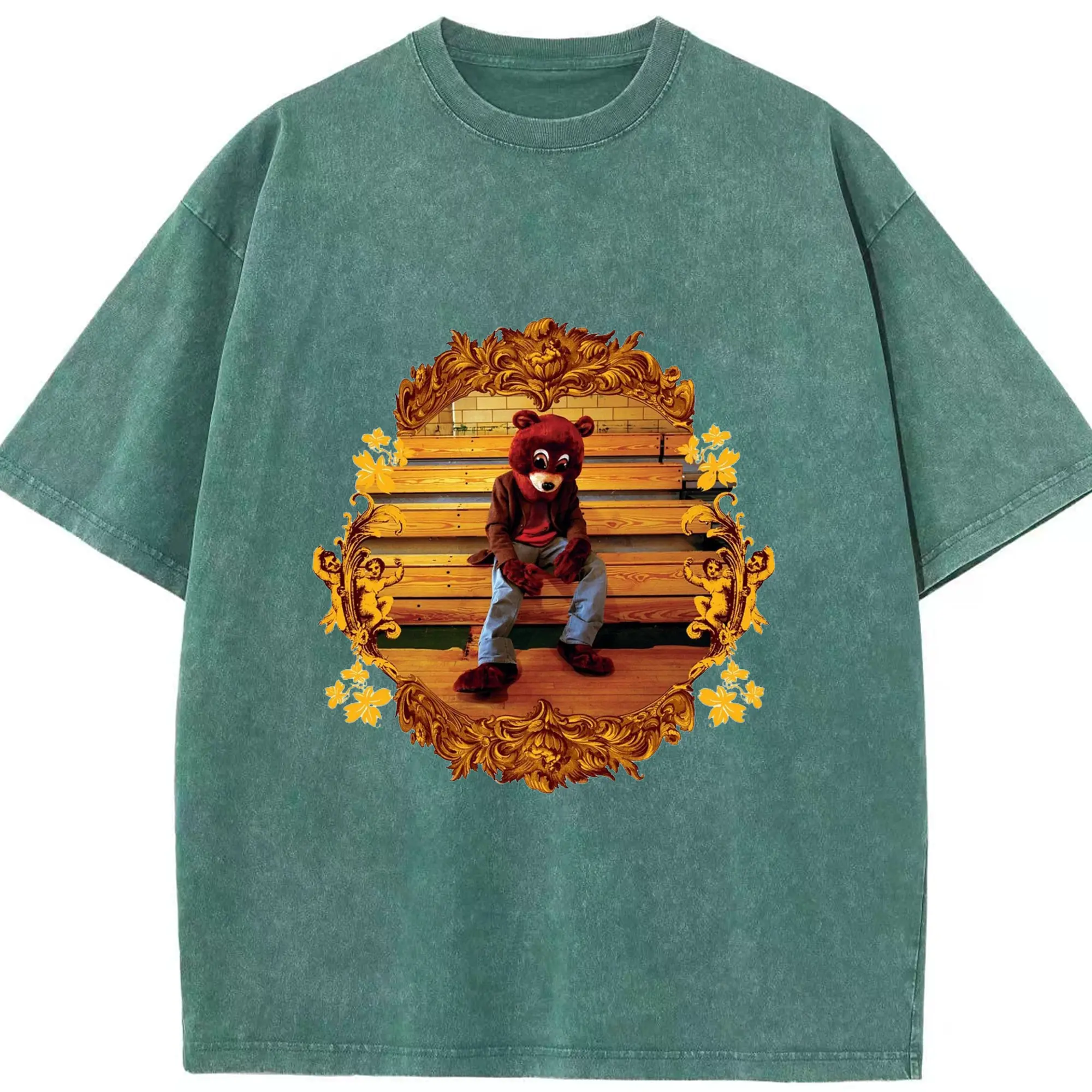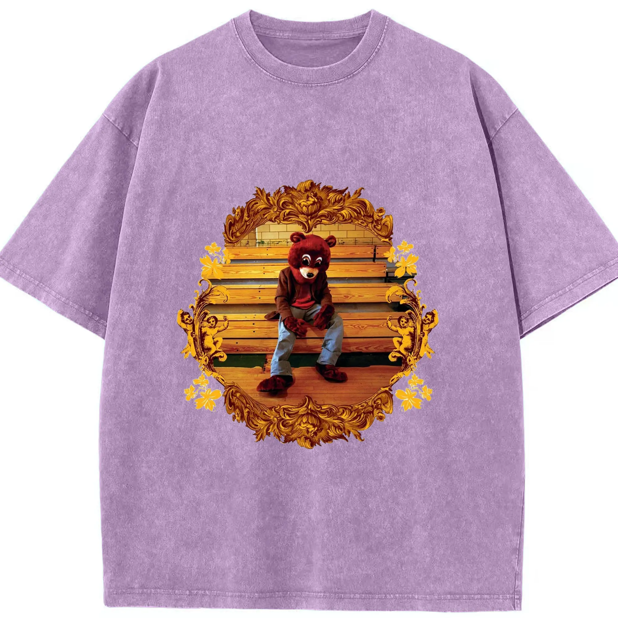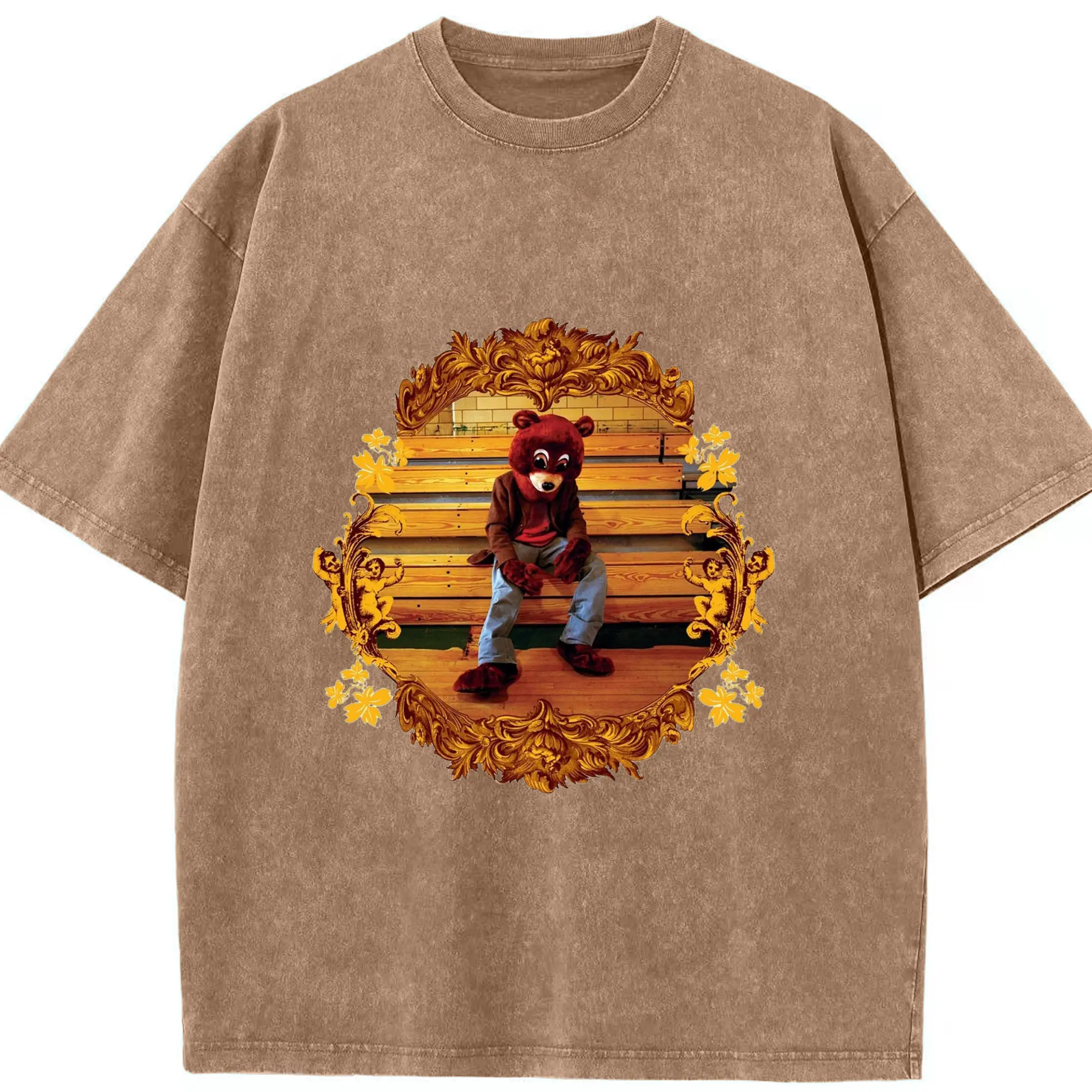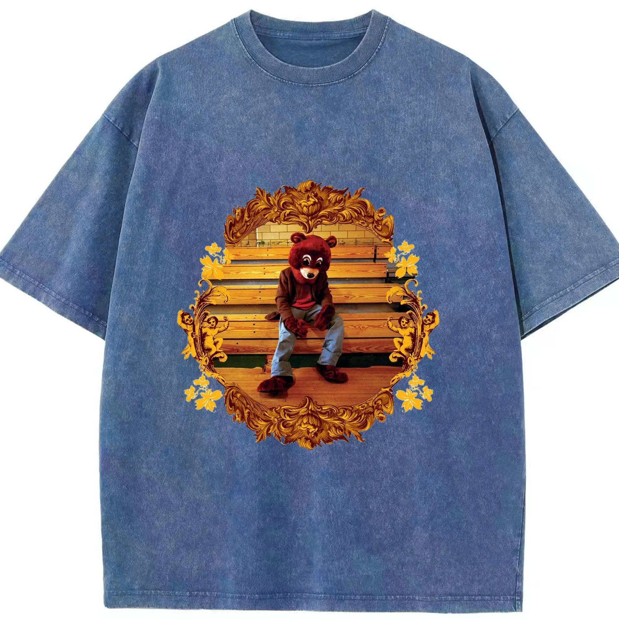 Kanye West College Dropout Bear Retro Baroque DIY - Washed Vintage Look 230g Cotton Oversized T-Shirt With Front Heat Transfer Print – Soft, Lightweight, Stylish Fit – Comfortable Casual Wear For Sports & Everyday Use