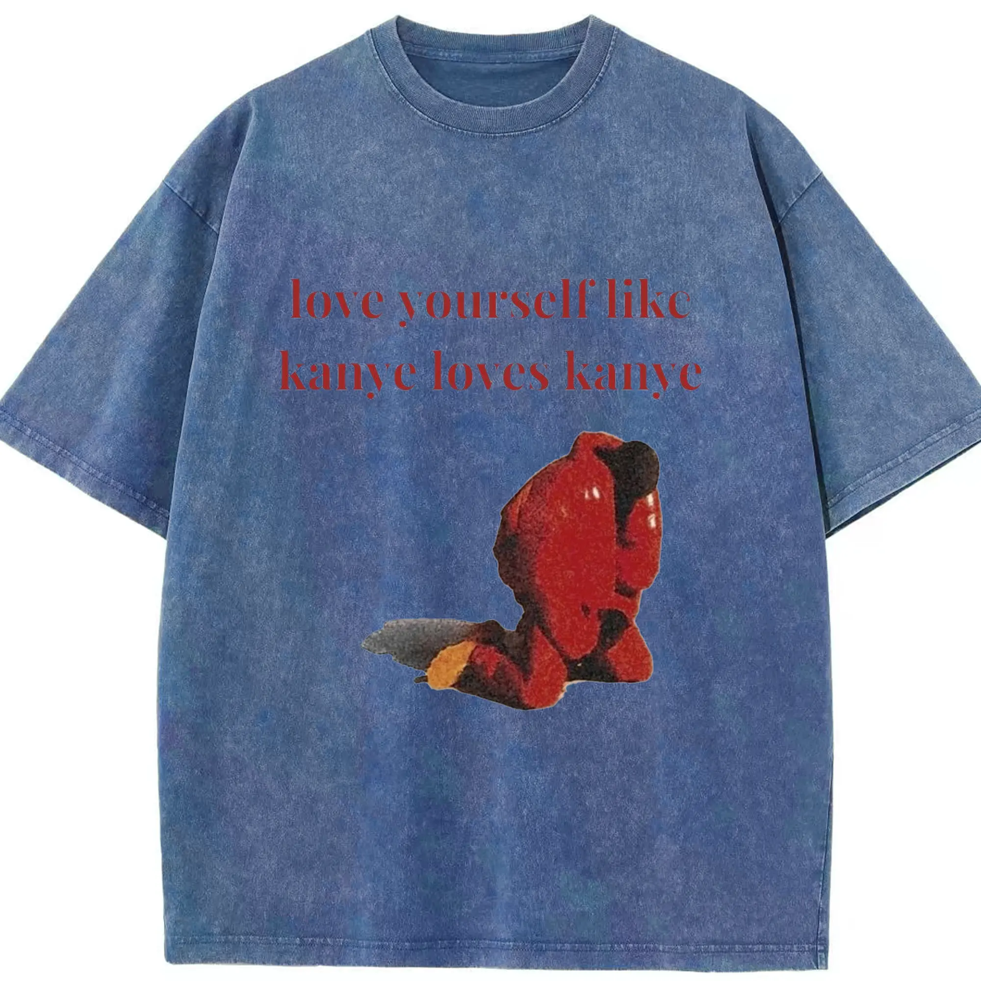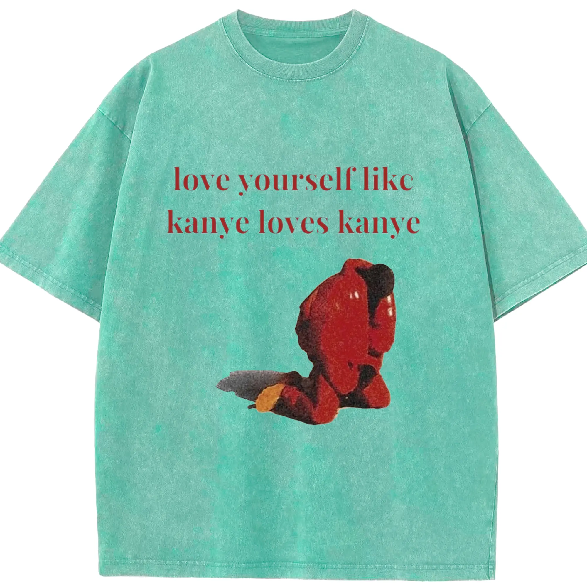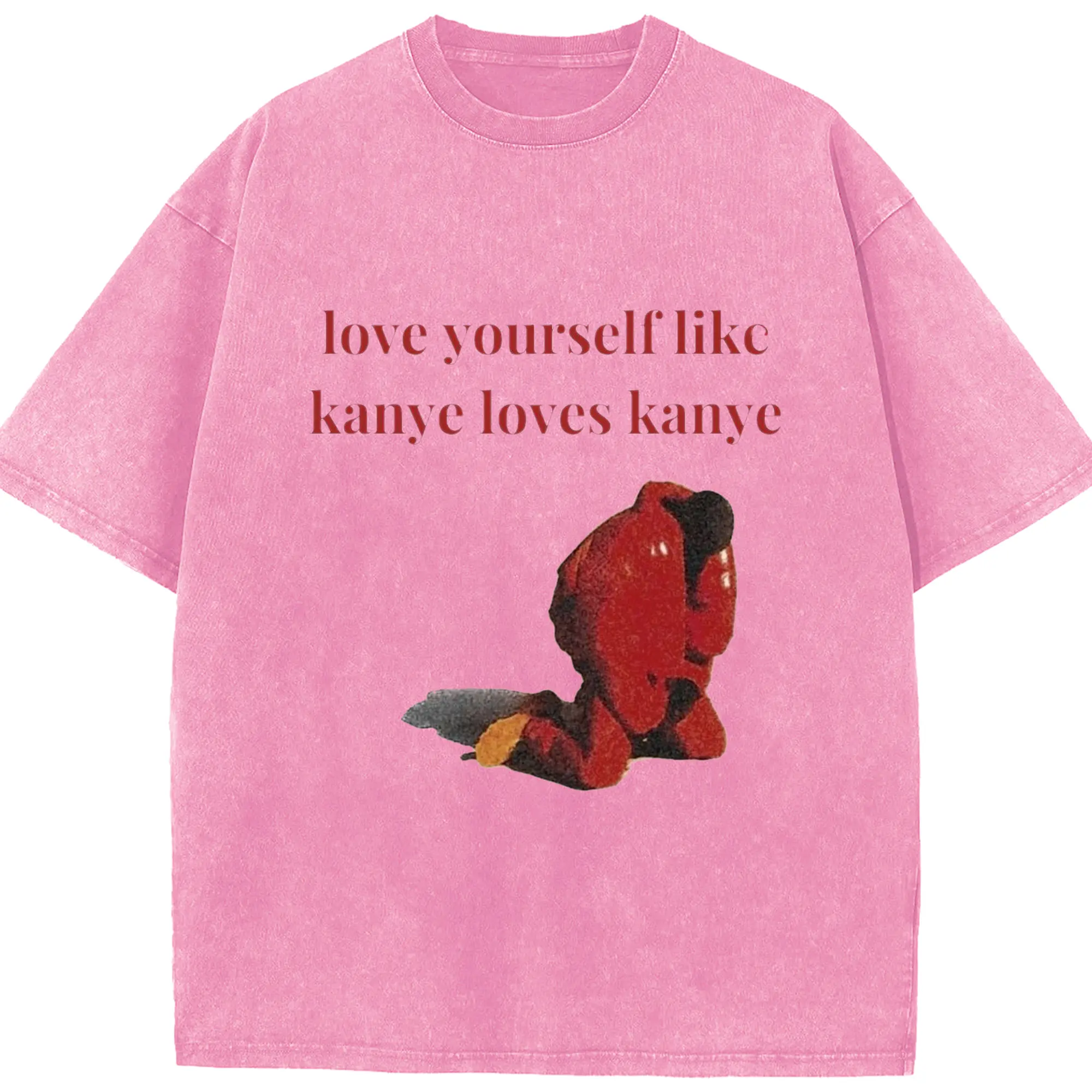 Kanye West Love Yourself Like Kanye Loves Kanye DIY - Washed Vintage Look 230g Cotton Oversized T-Shirt With Front Heat Transfer Print – Soft, Lightweight, Stylish Fit – Comfortable Casual Wear For Sports & Everyday Use