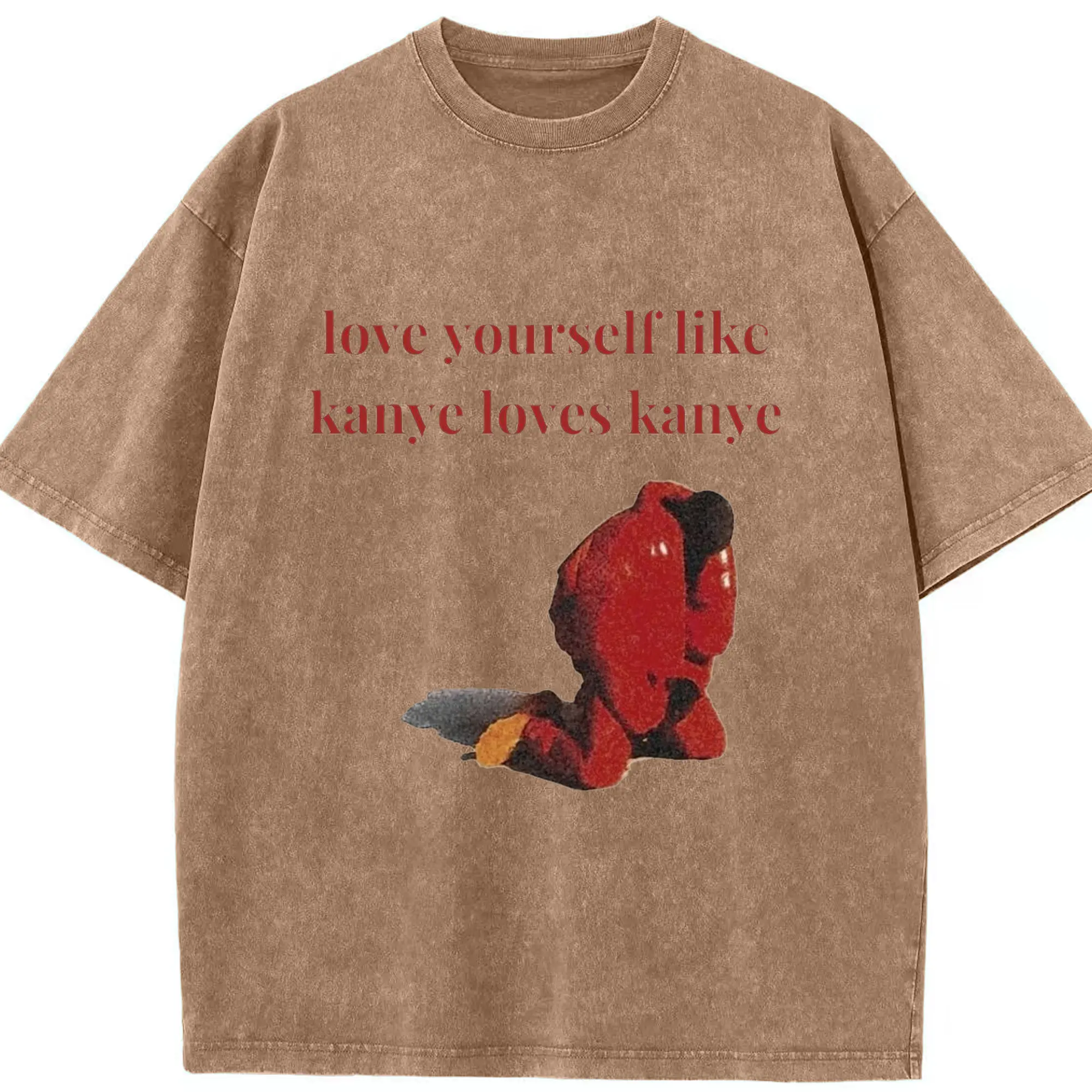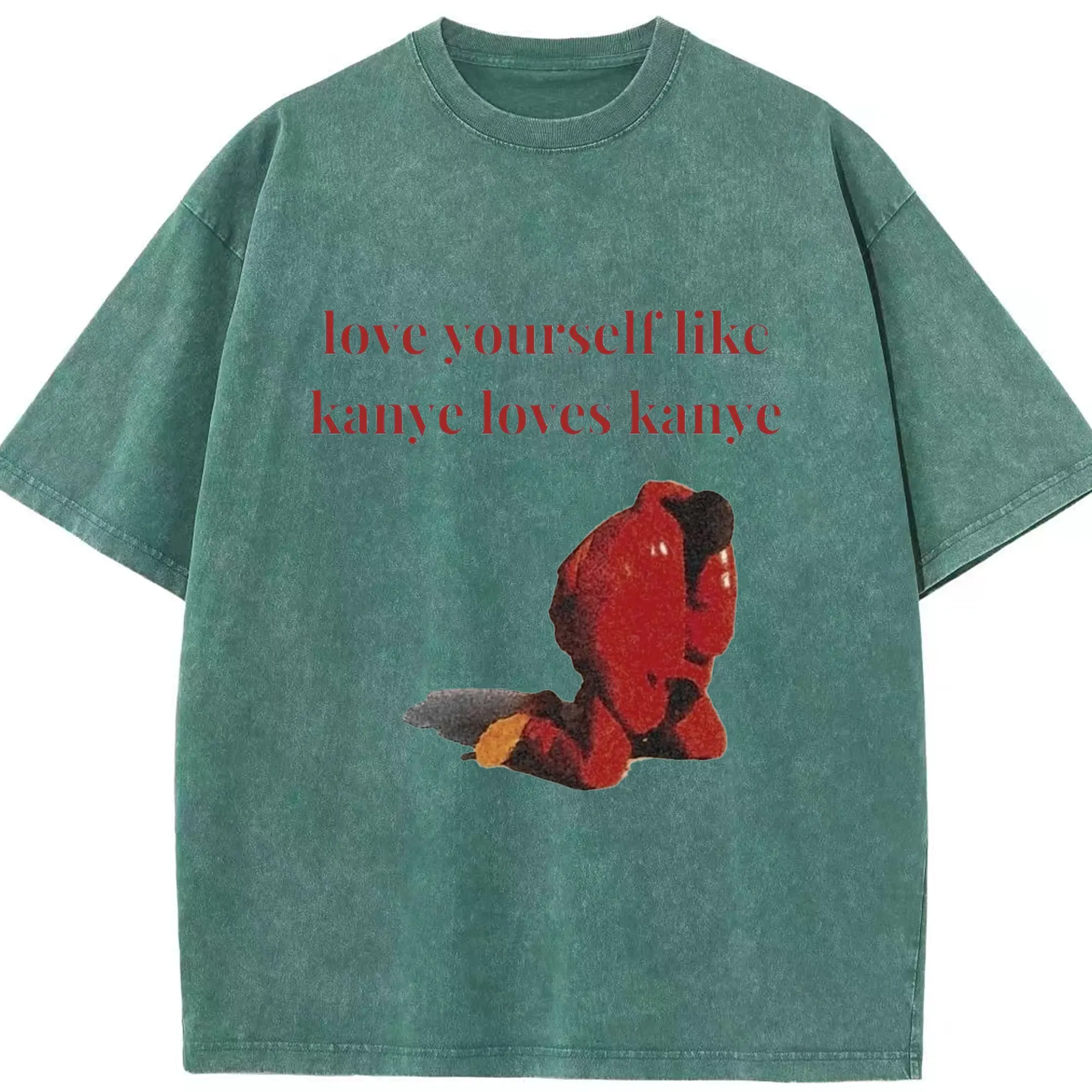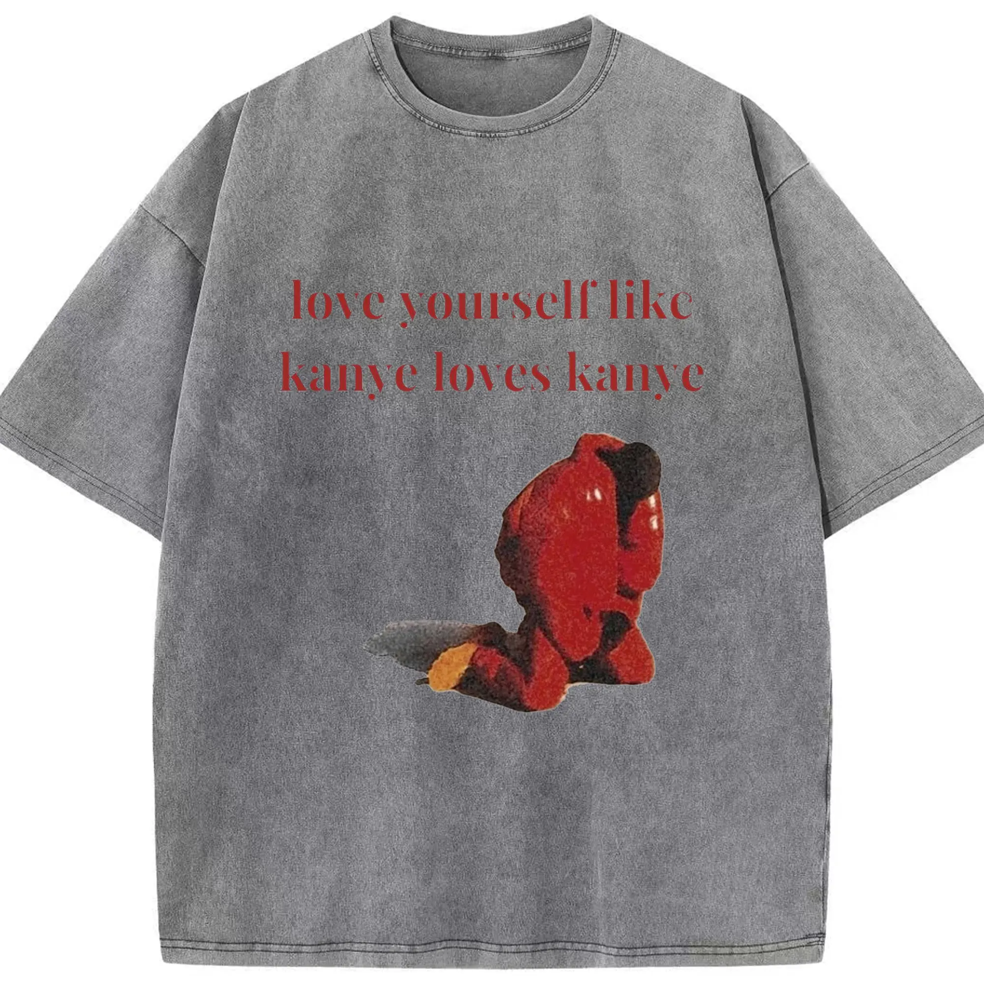 Kanye West Love Yourself Like Kanye Loves Kanye DIY - Washed Vintage Look 230g Cotton Oversized T-Shirt With Front Heat Transfer Print – Soft, Lightweight, Stylish Fit – Comfortable Casual Wear For Sports & Everyday Use