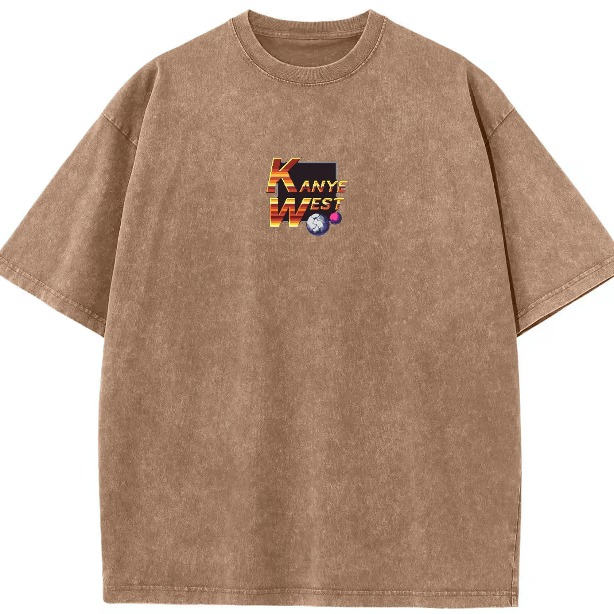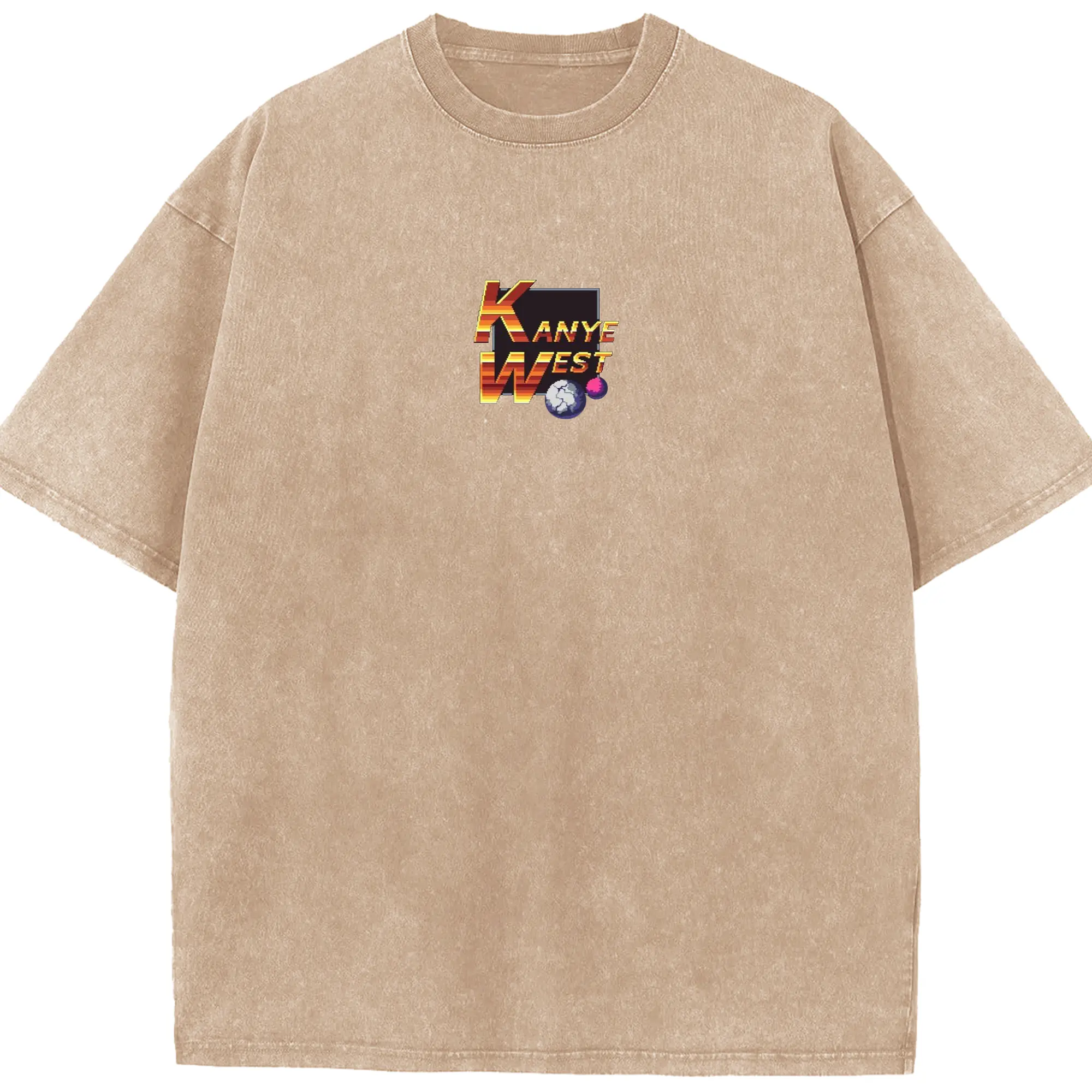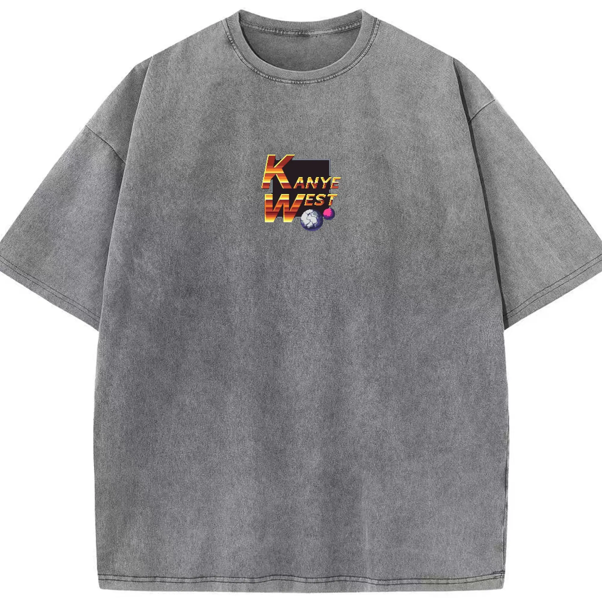 Kanye West Pixel Art Retro Gaming DIY - Washed Vintage Look 230g Cotton Oversized T-Shirt With Front Heat Transfer Print – Soft, Lightweight, Stylish Fit – Comfortable Casual Wear For Sports & Everyday Use