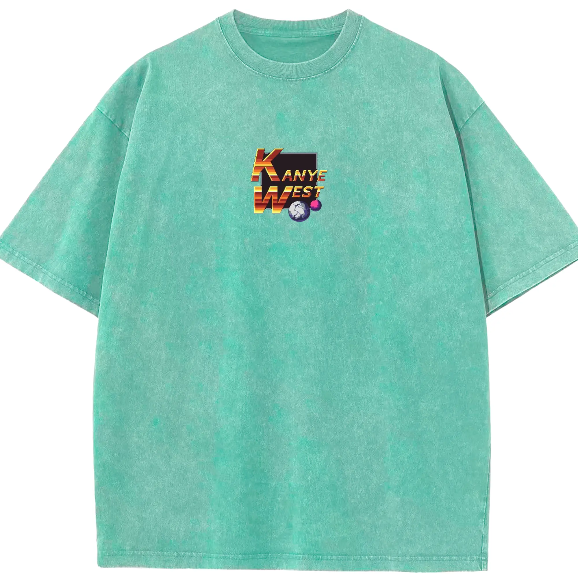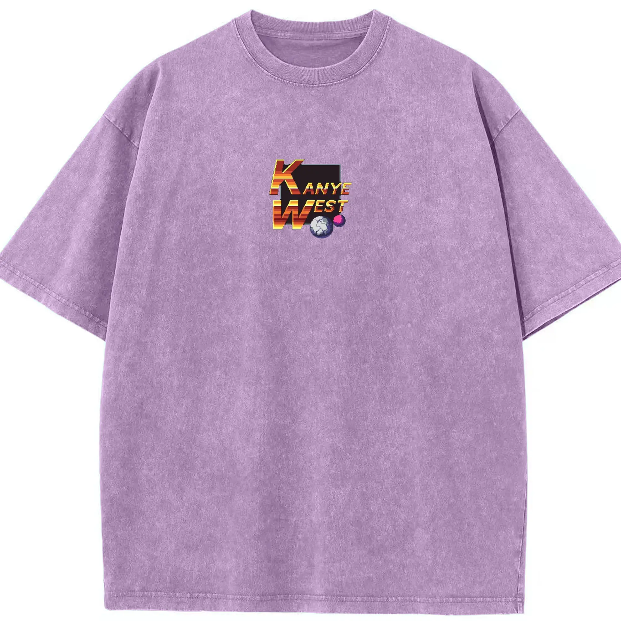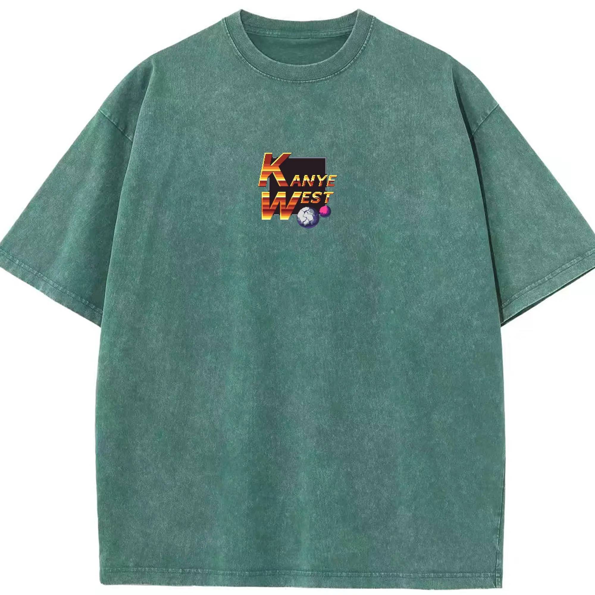 Kanye West Pixel Art Retro Gaming DIY - Washed Vintage Look 230g Cotton Oversized T-Shirt With Front Heat Transfer Print – Soft, Lightweight, Stylish Fit – Comfortable Casual Wear For Sports & Everyday Use