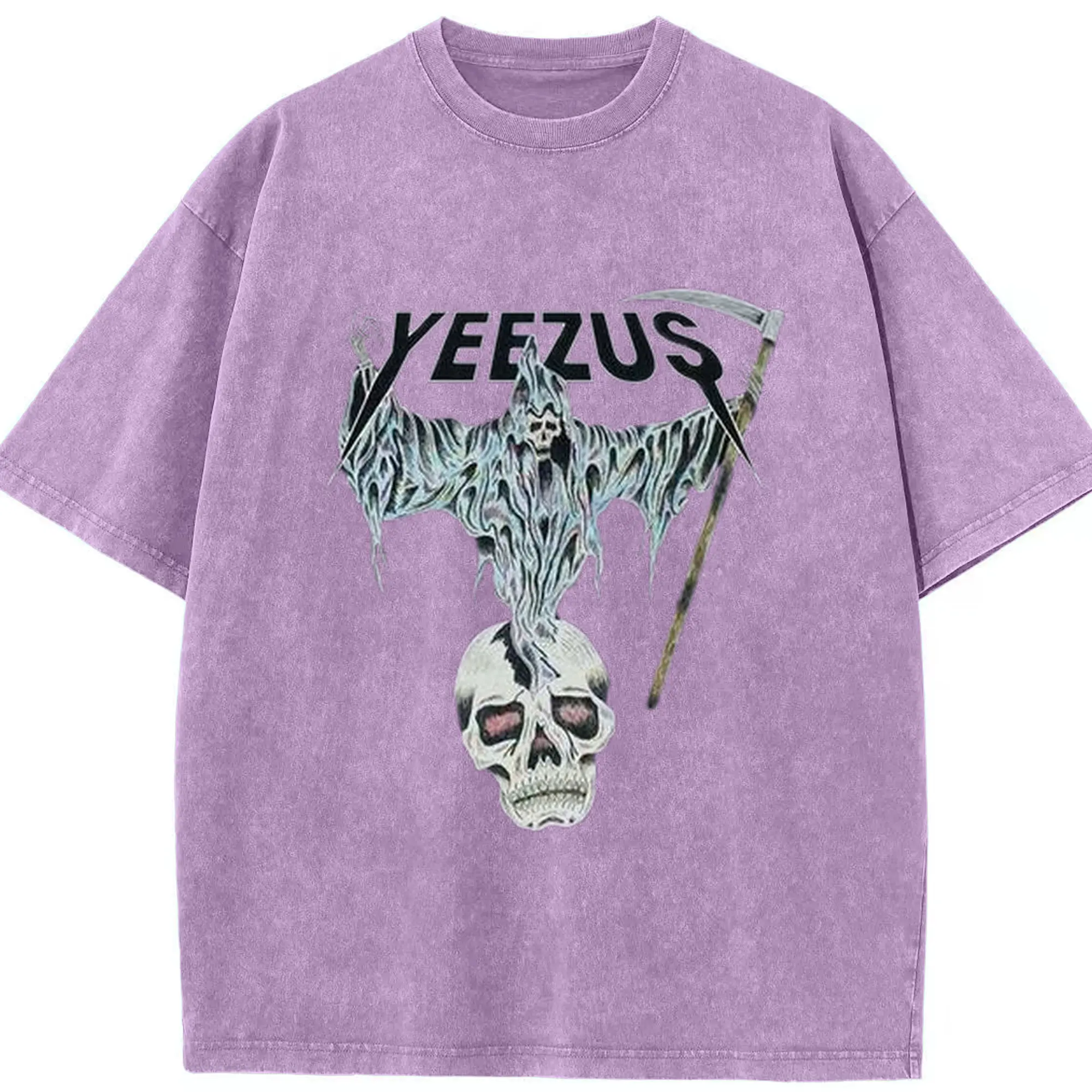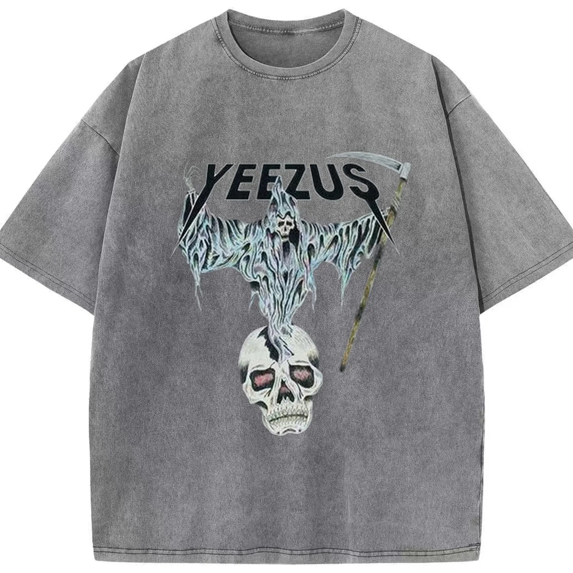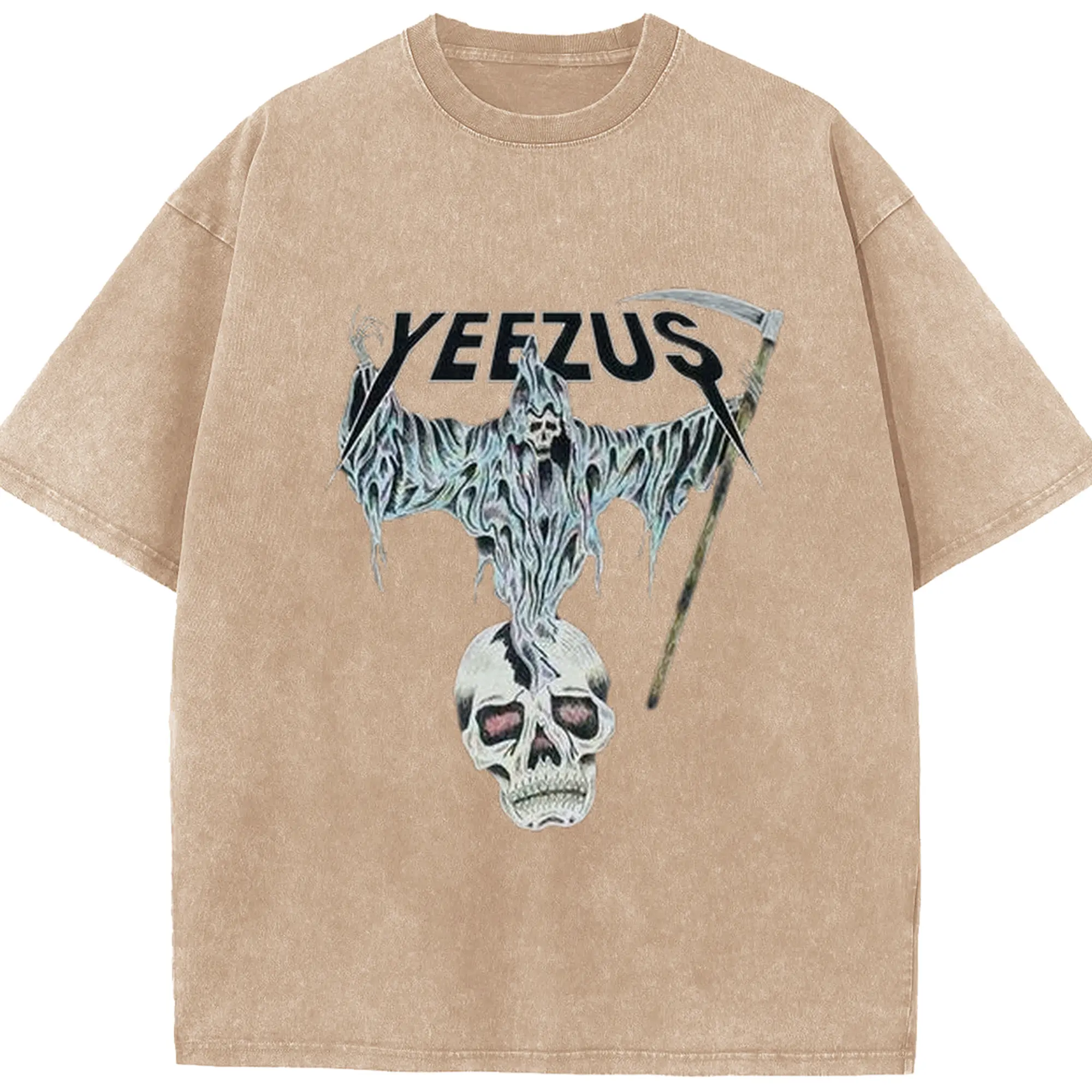 Kanye West YEEZUS Dark Metal DIY - Washed Vintage Look 230g Cotton Oversized T-Shirt With Front Heat Transfer Print – Soft, Lightweight, Stylish Fit – Comfortable Casual Wear For Sports & Everyday Use
