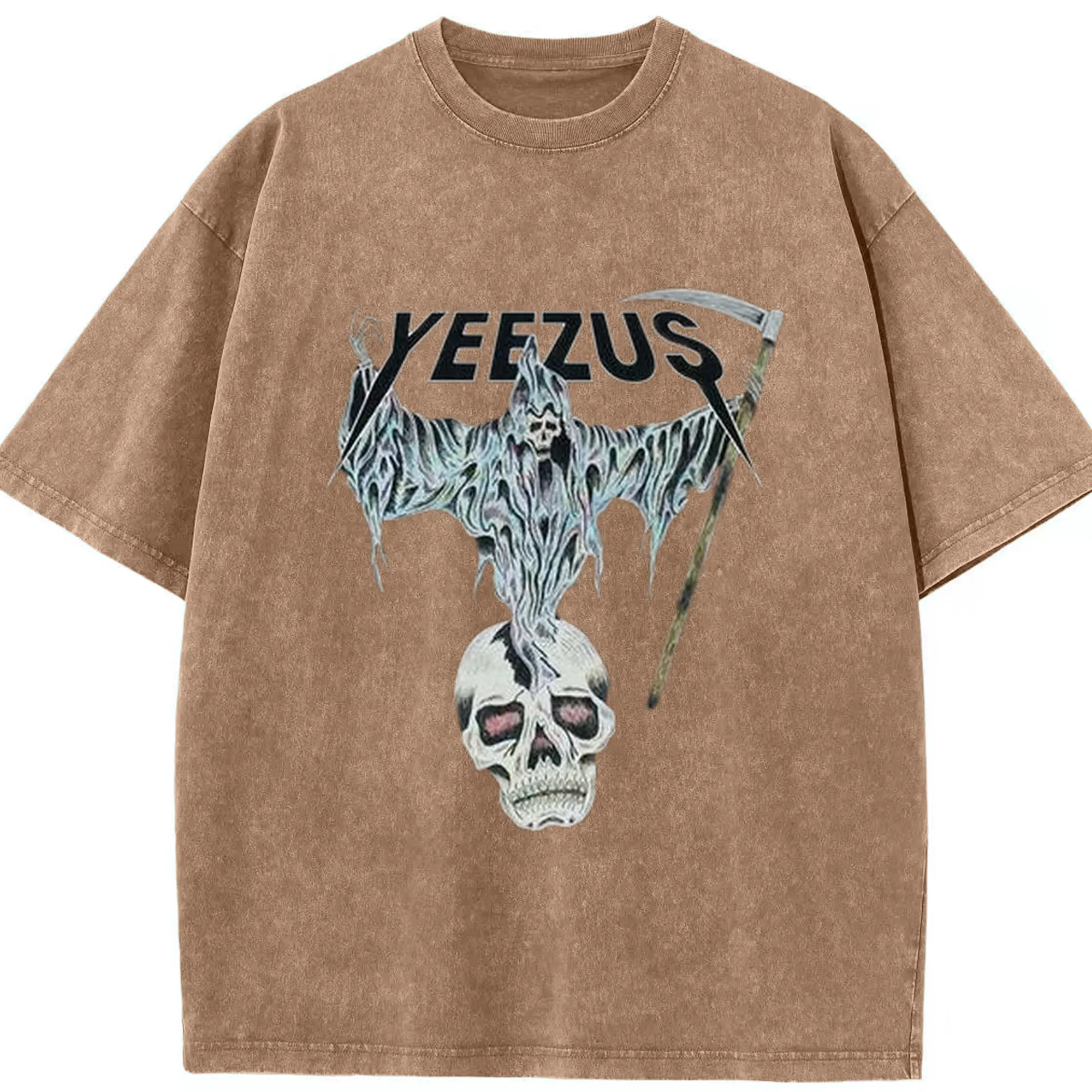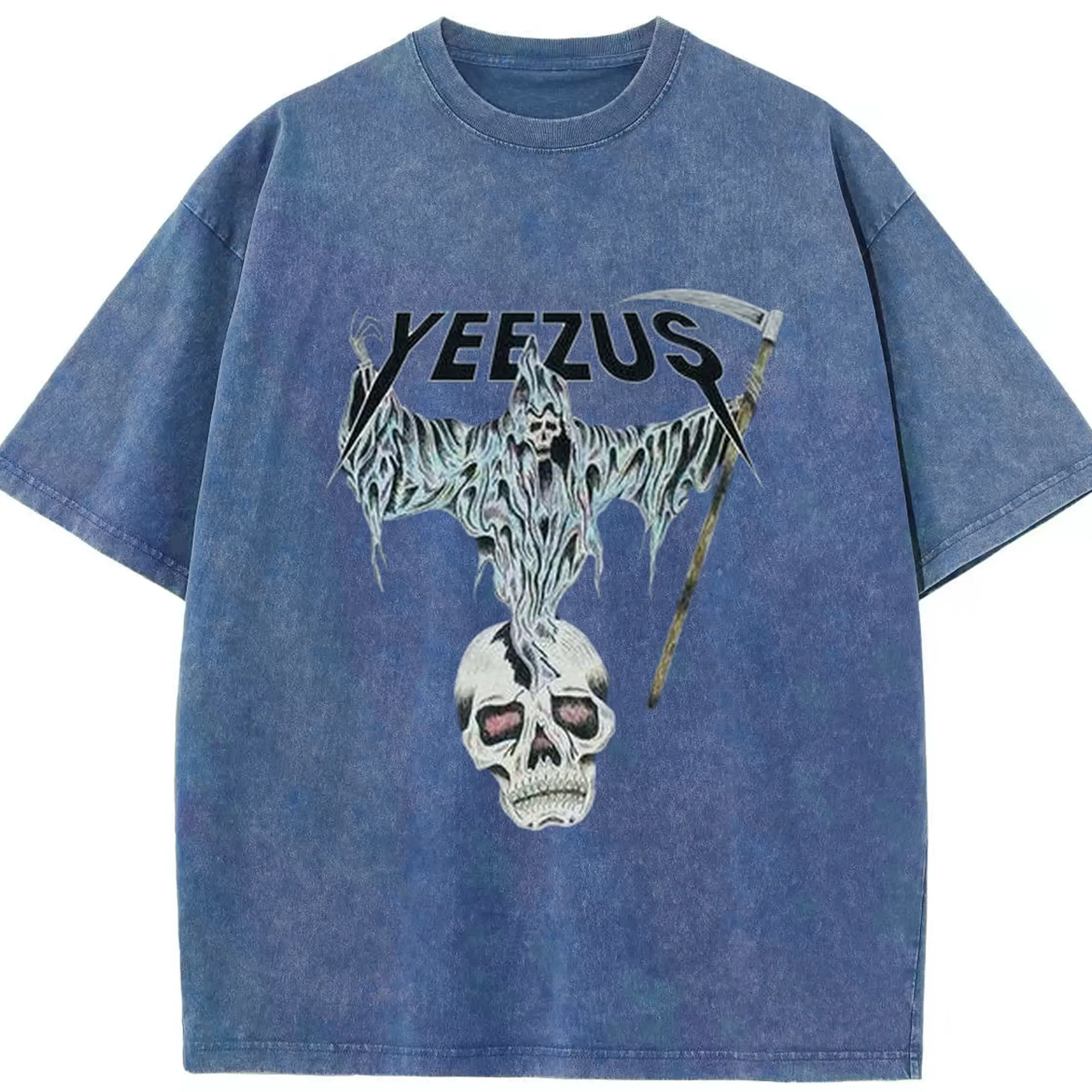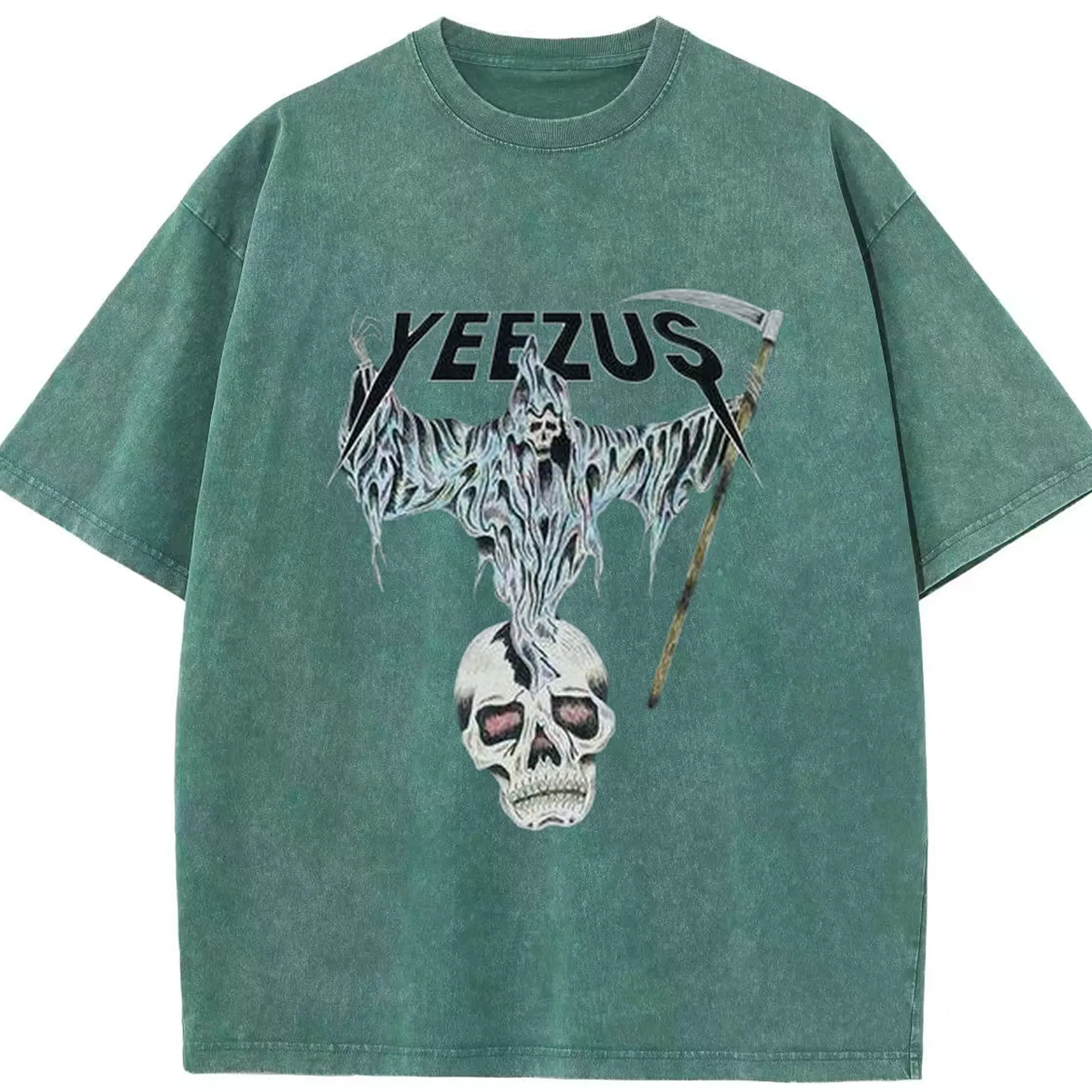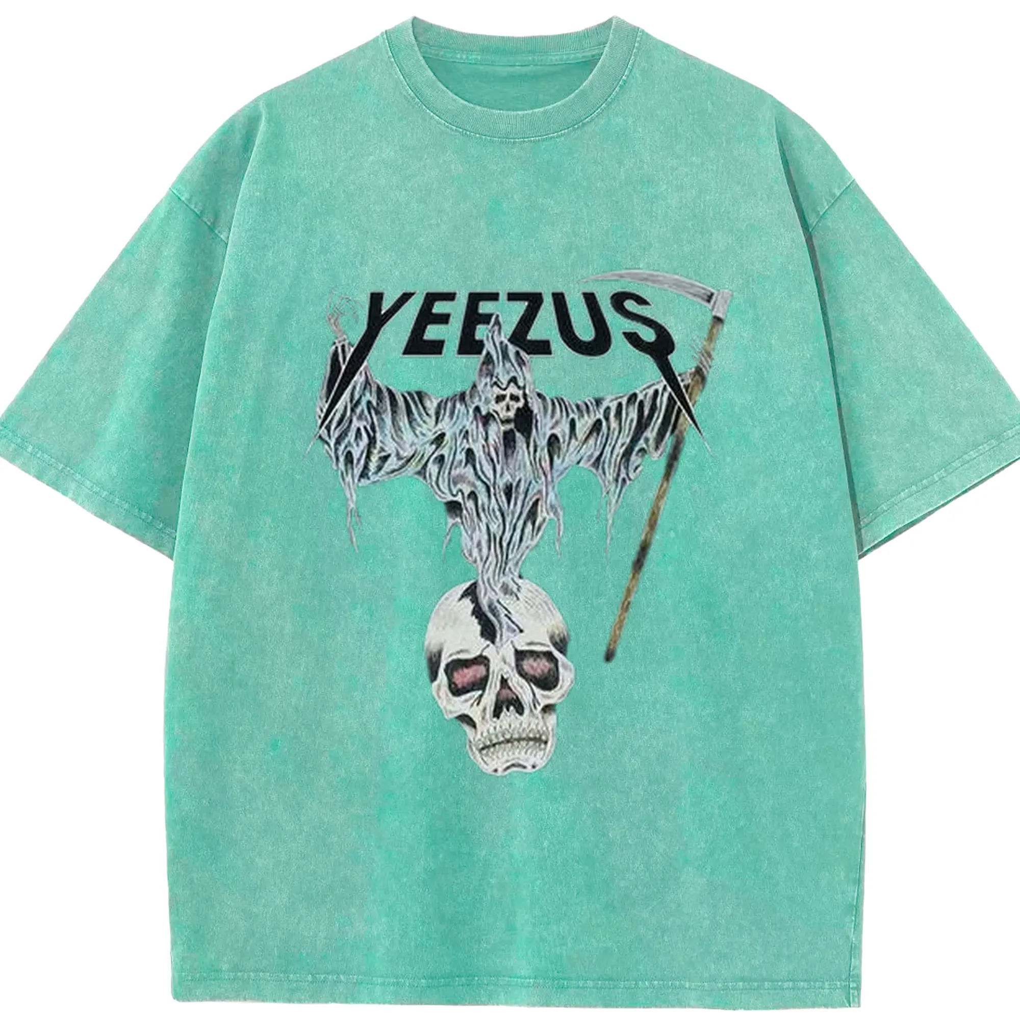 Kanye West YEEZUS Dark Metal DIY - Washed Vintage Look 230g Cotton Oversized T-Shirt With Front Heat Transfer Print – Soft, Lightweight, Stylish Fit – Comfortable Casual Wear For Sports & Everyday Use