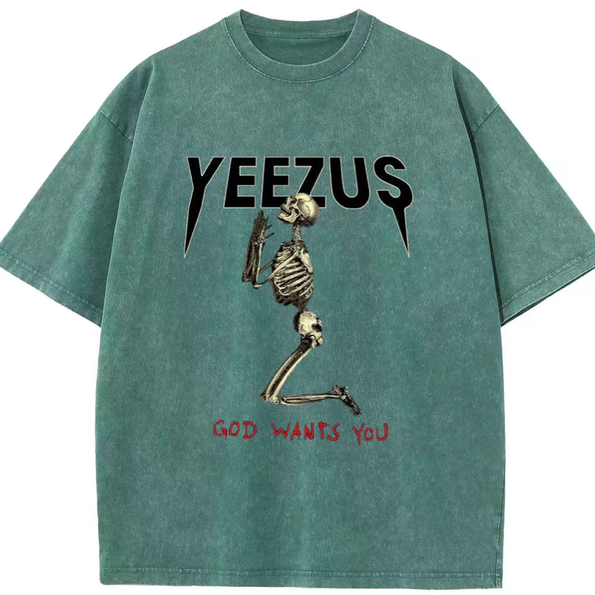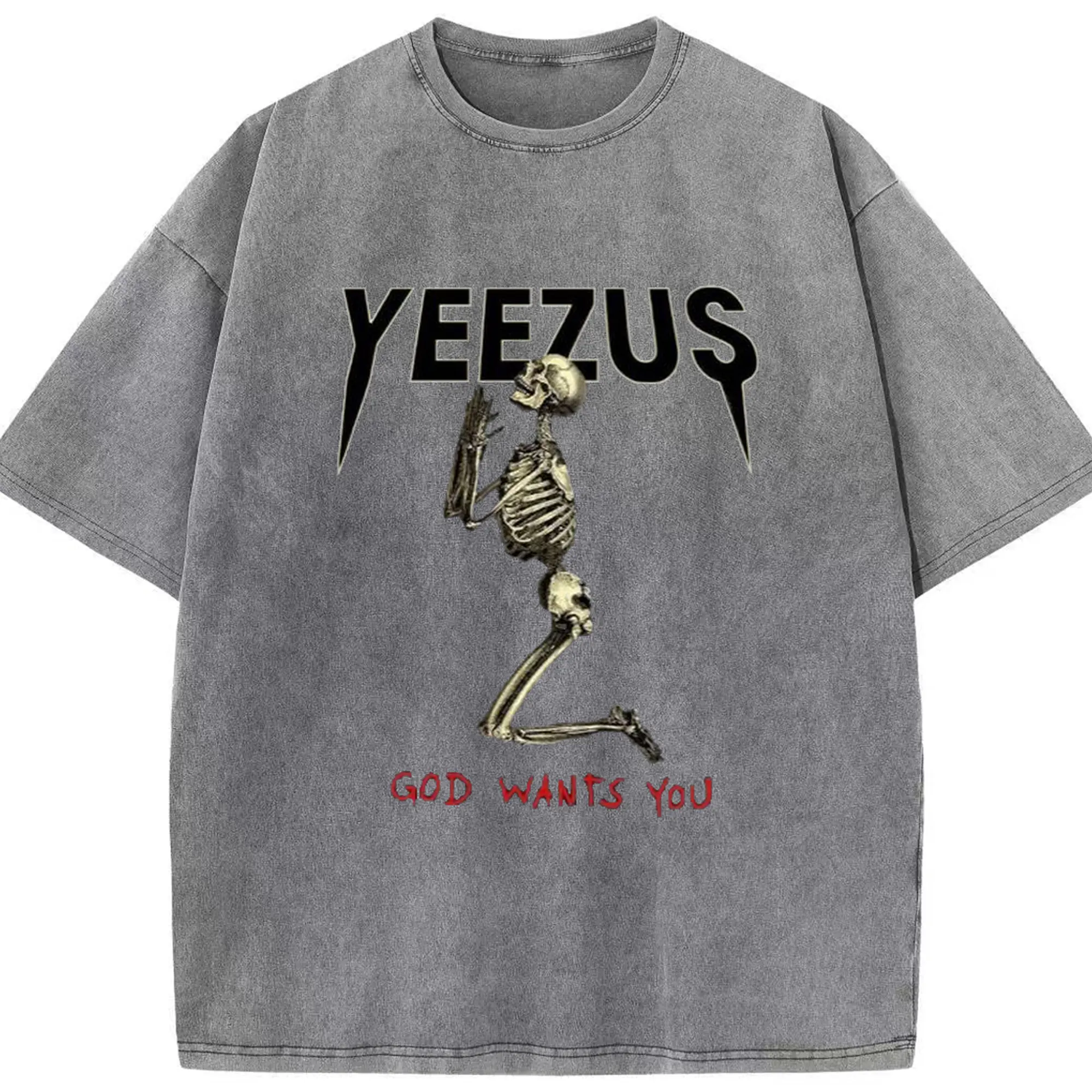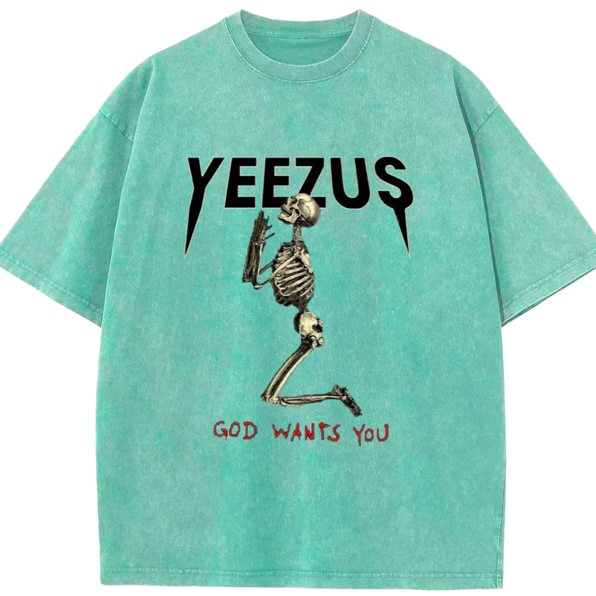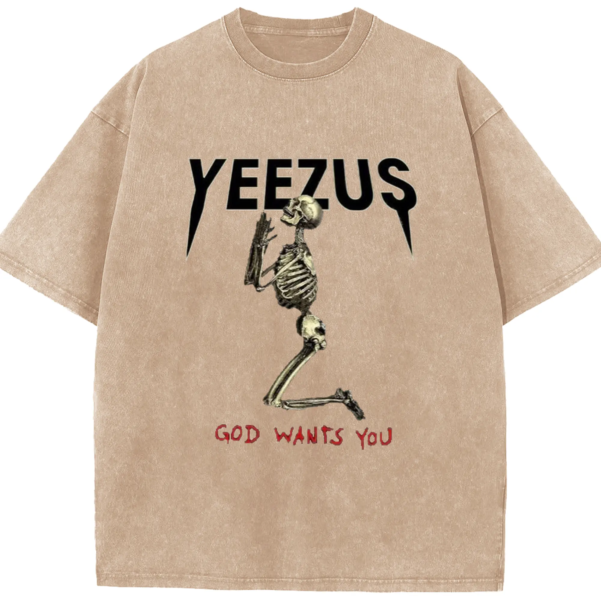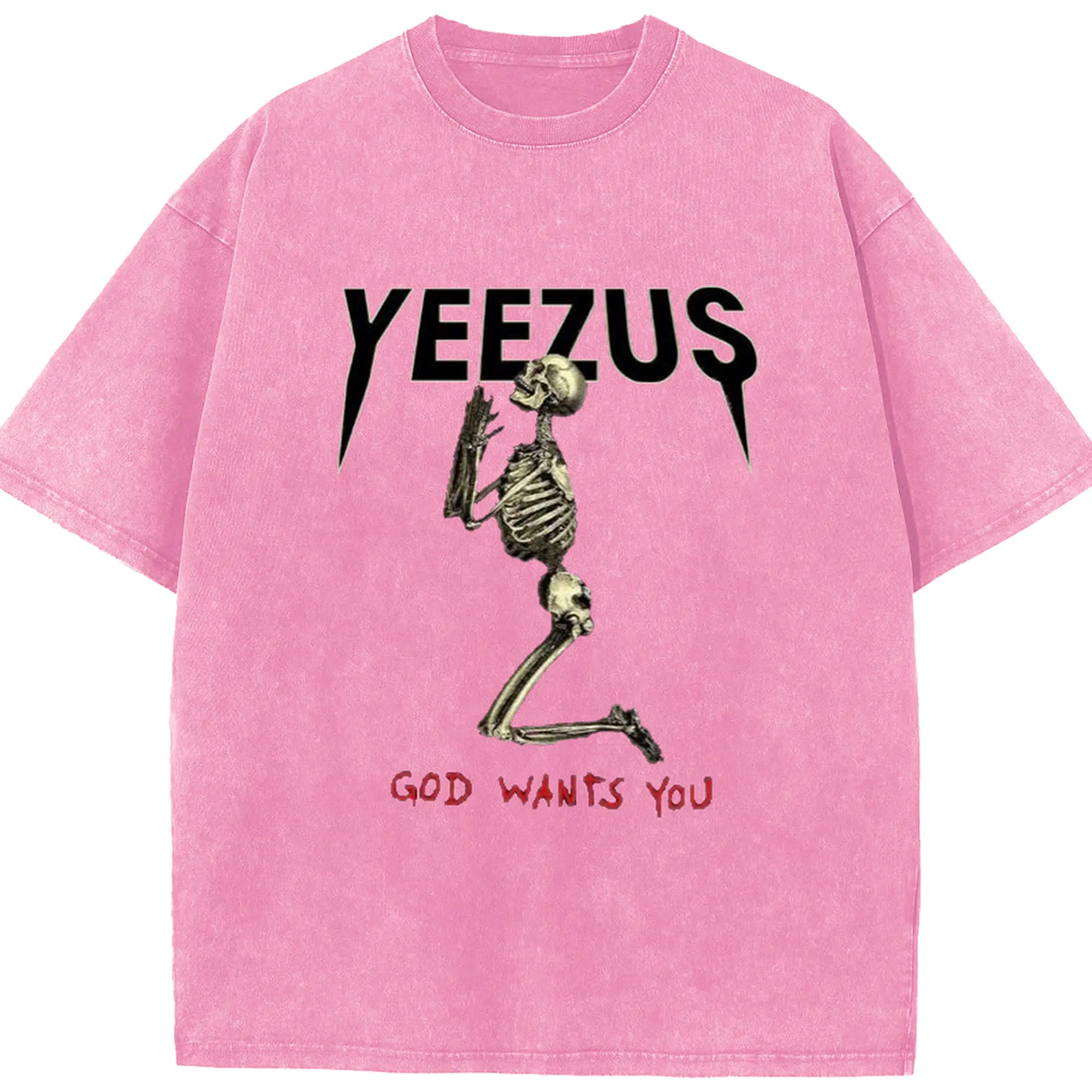 Kanye West YEEZUS Dark Religious DIY - Washed Vintage Look 230g Cotton Oversized T-Shirt With Front Heat Transfer Print – Soft, Lightweight, Stylish Fit – Comfortable Casual Wear For Sports & Everyday Use