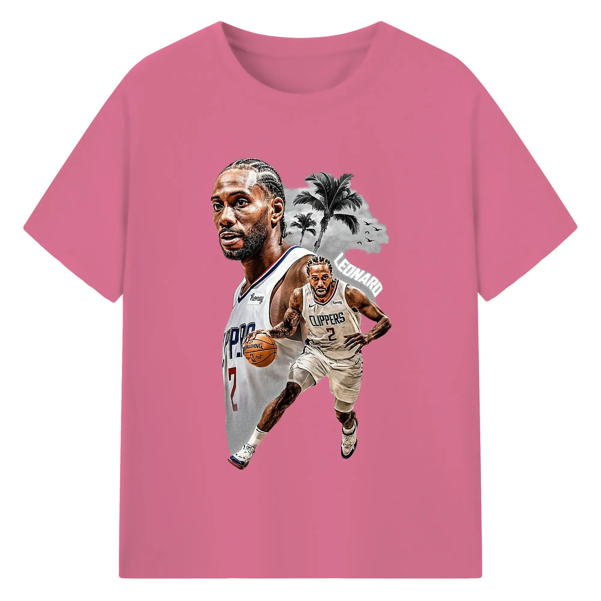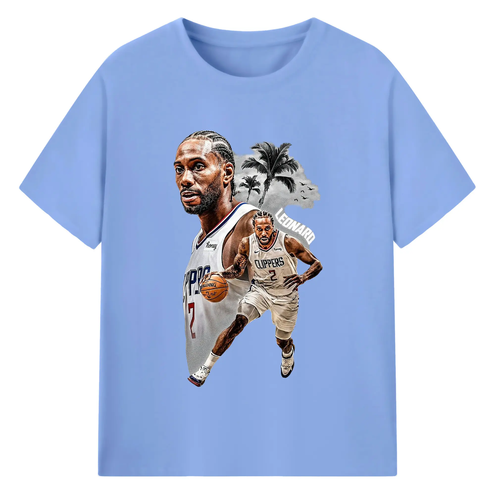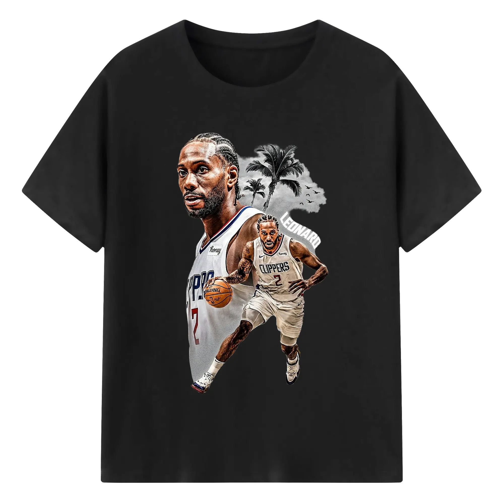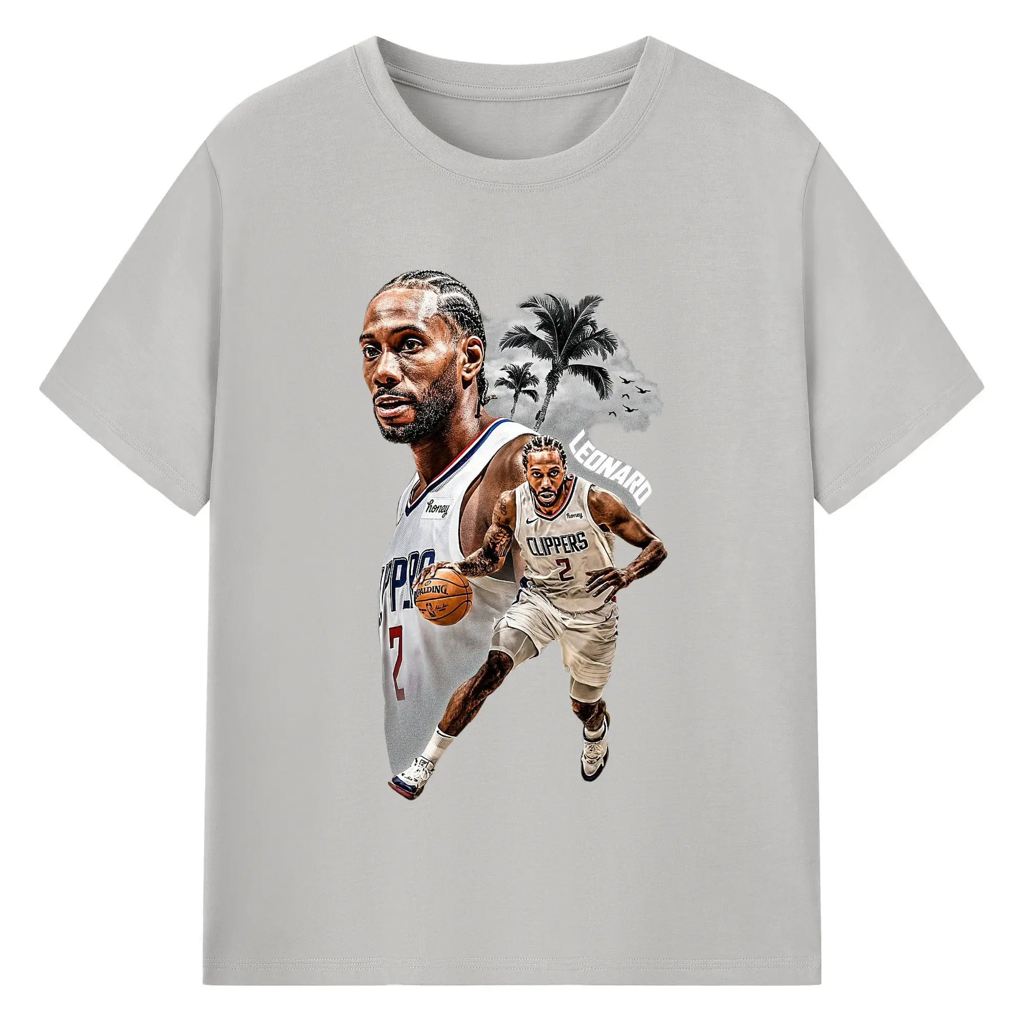 Kawhi Leonard LA Clippers On - Court Palm Tree Style Shirt - 180g Cotton T-Shirt With Front Heat Transfer Print – Soft, Lightweight, Fitted Design – Comfortable Casual Wear For Sports & Everyday Use