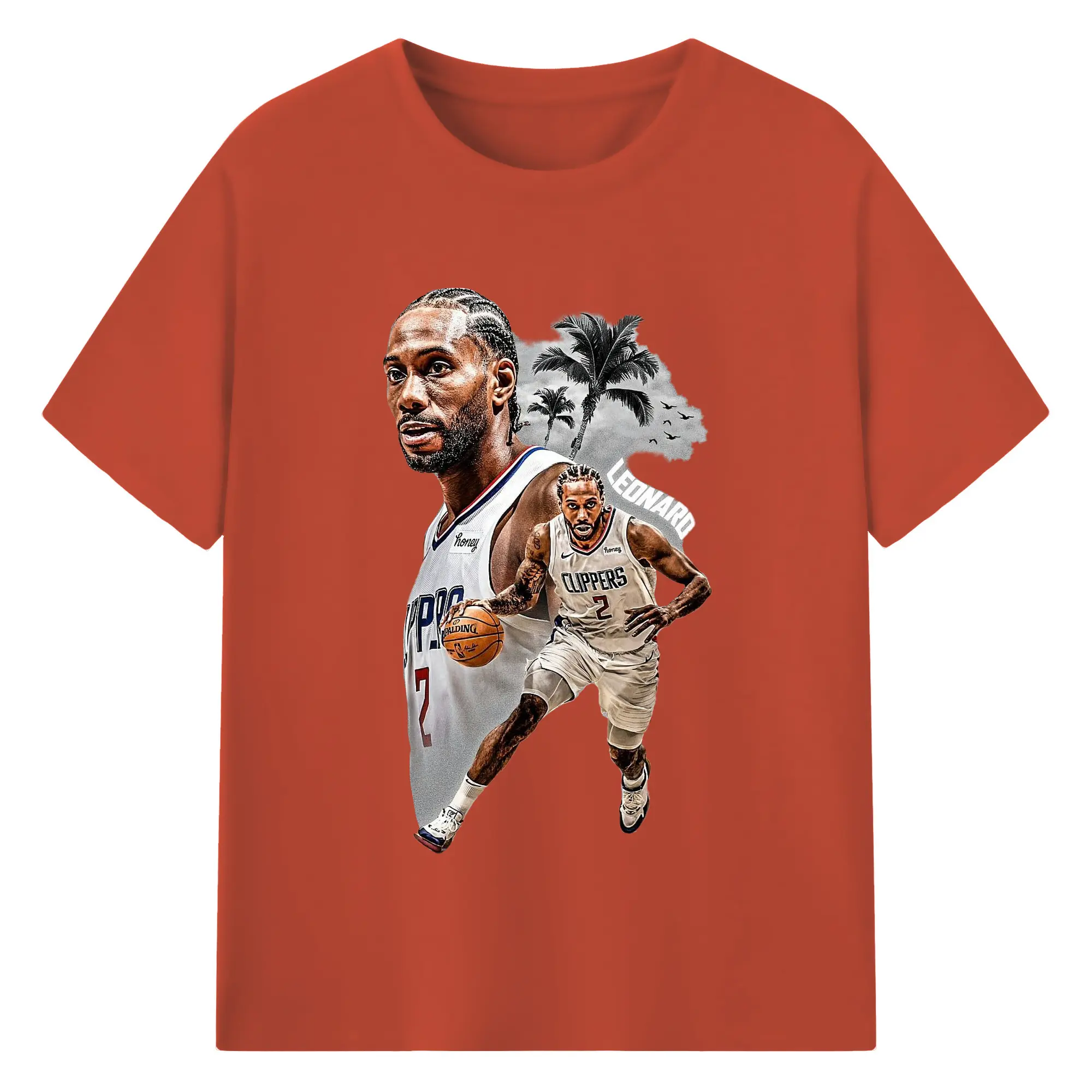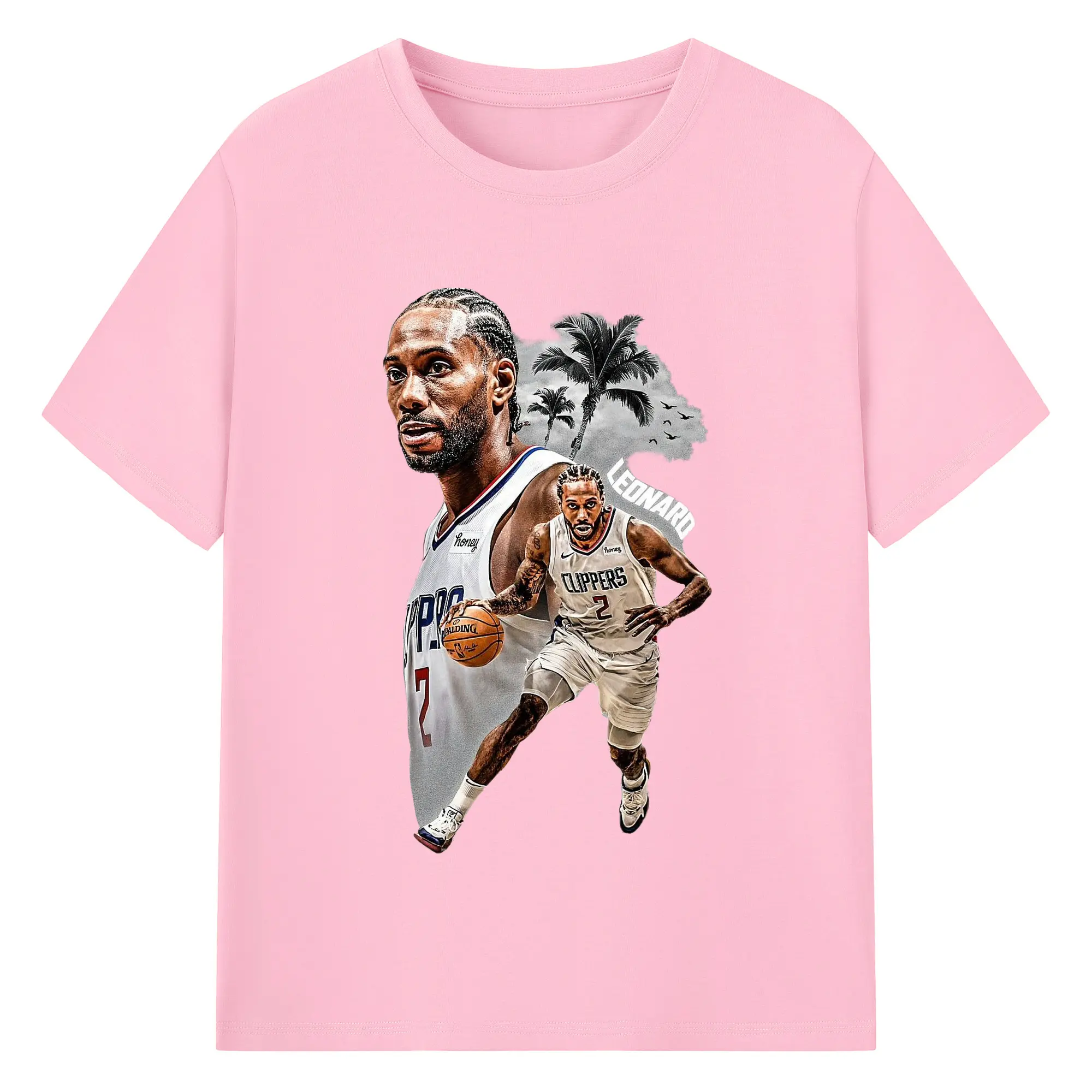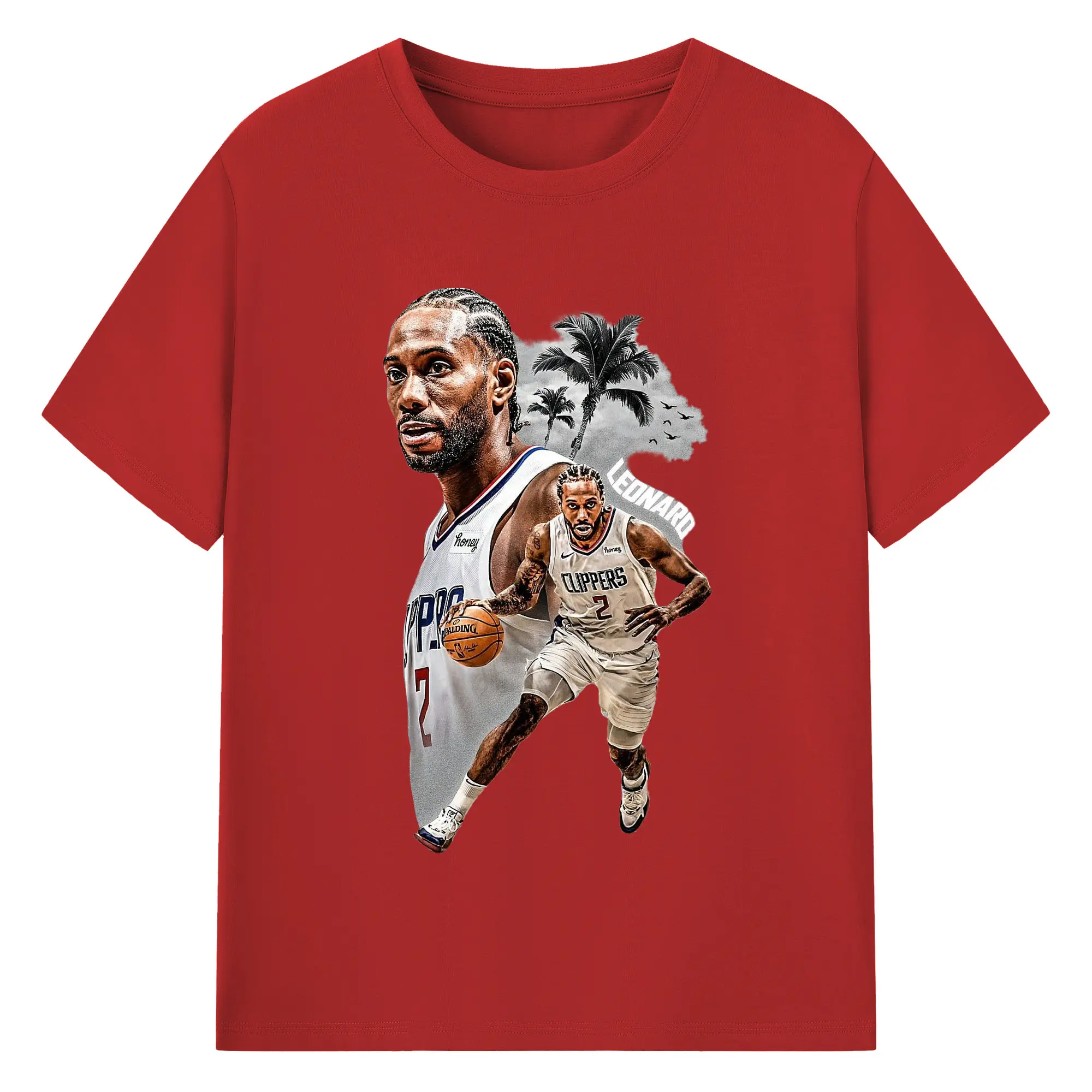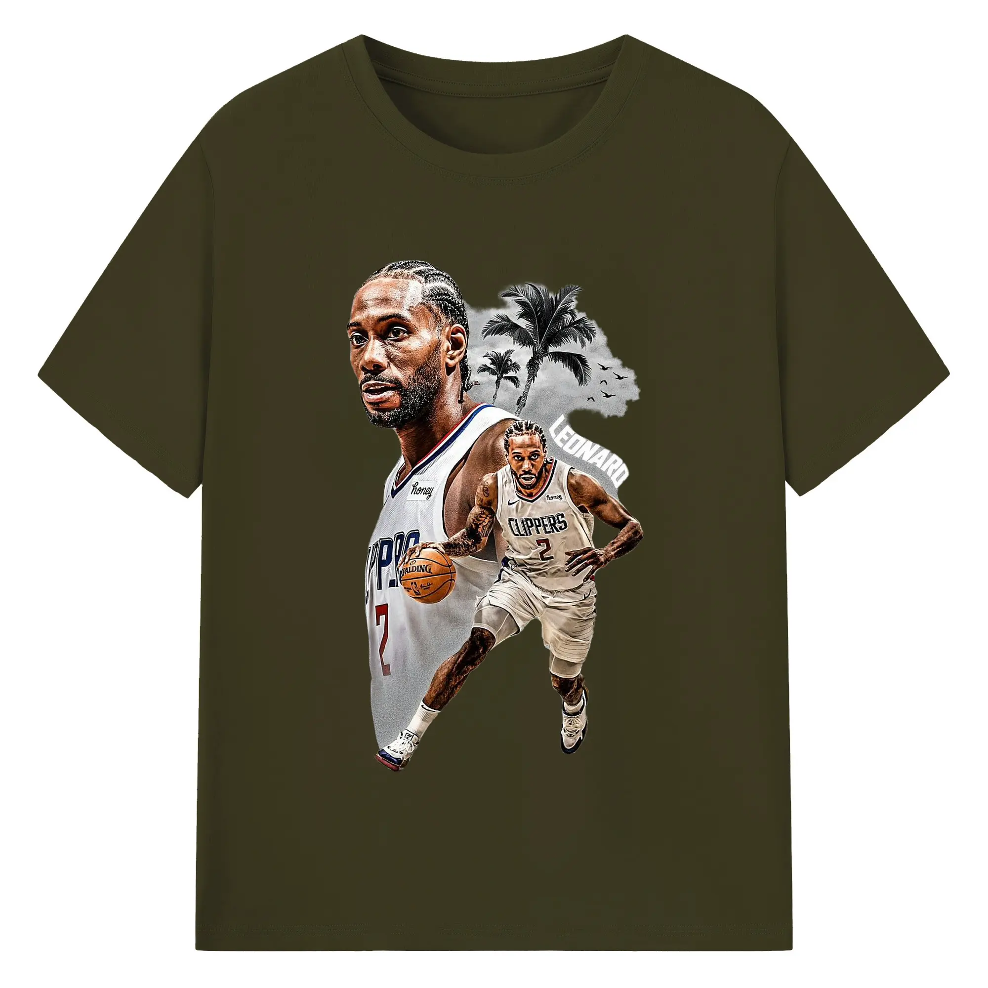 Kawhi Leonard LA Clippers On - Court Palm Tree Style Shirt - 180g Cotton T-Shirt With Front Heat Transfer Print – Soft, Lightweight, Fitted Design – Comfortable Casual Wear For Sports & Everyday Use