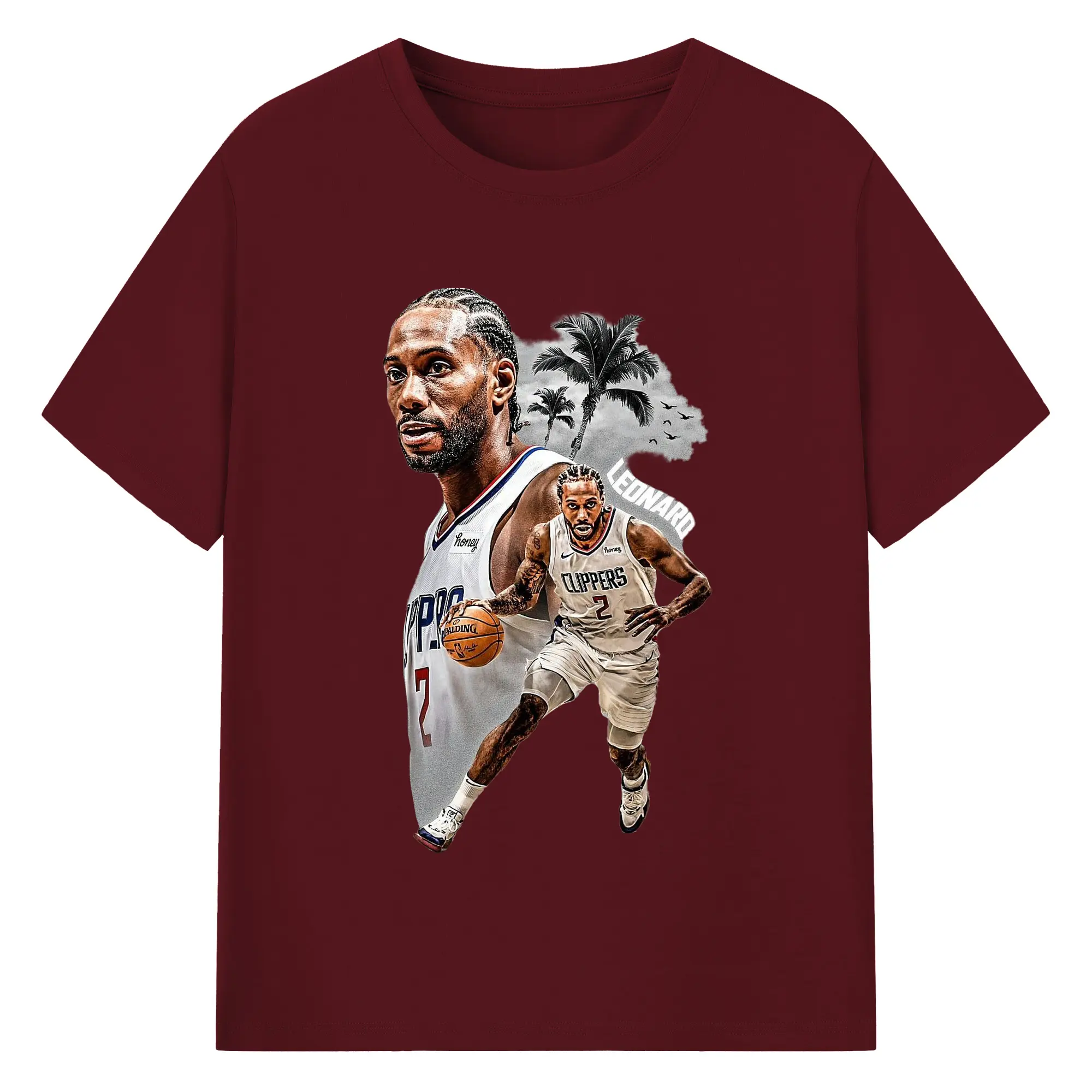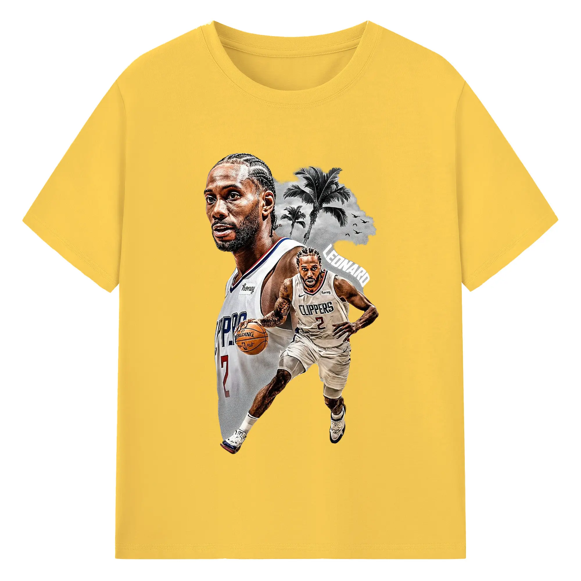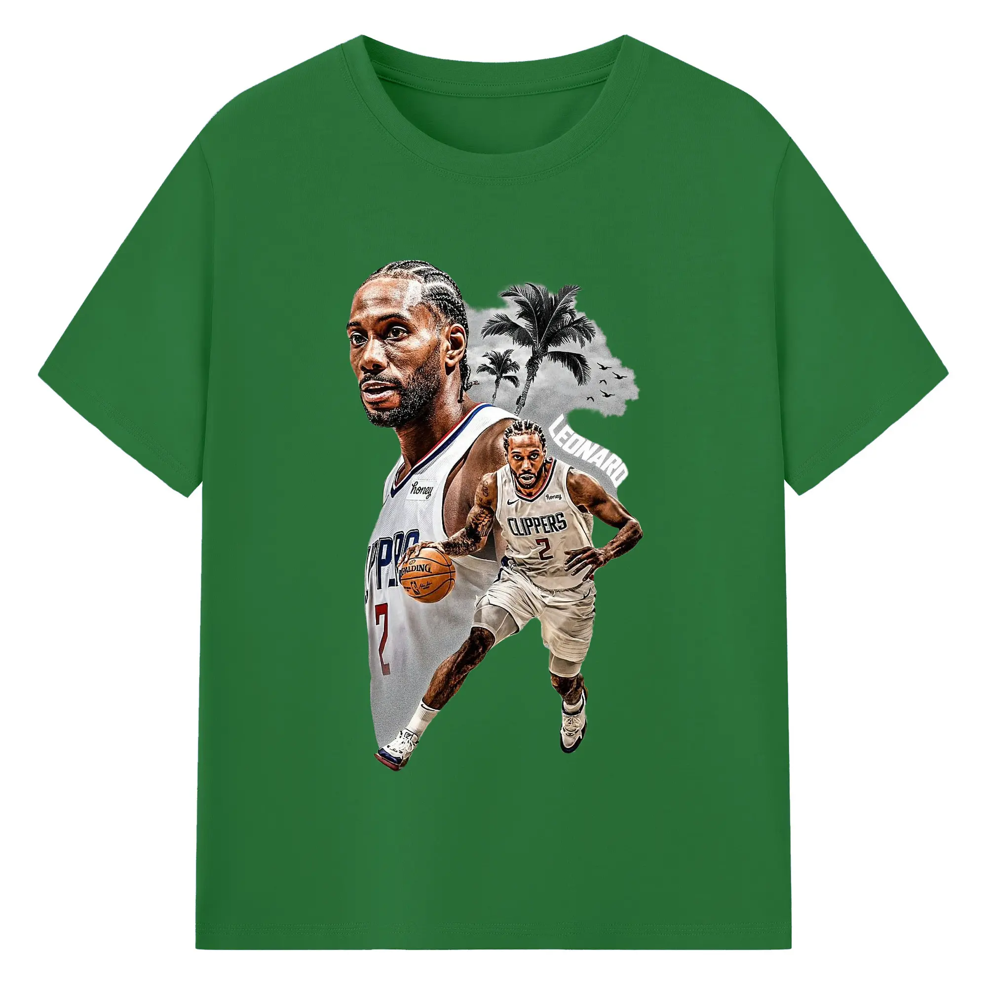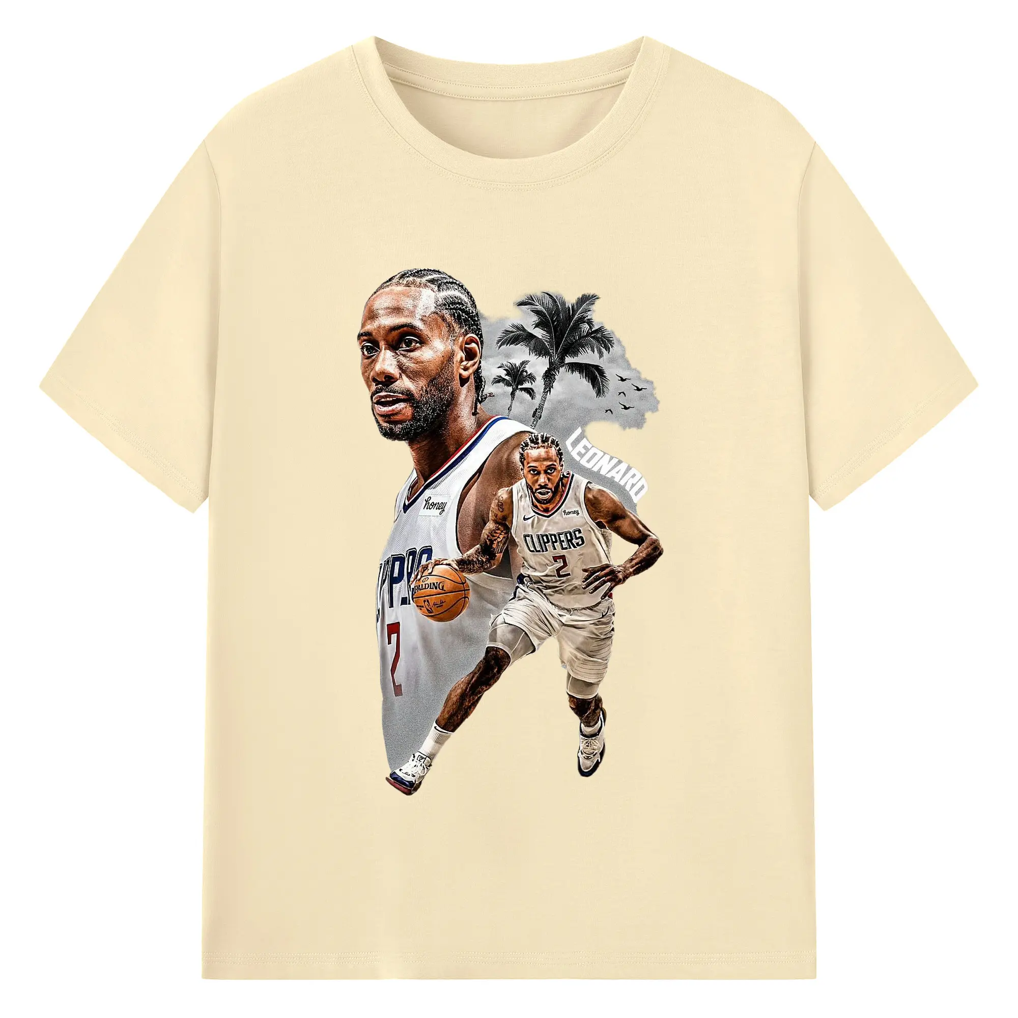 Kawhi Leonard LA Clippers On - Court Palm Tree Style Shirt - 180g Cotton T-Shirt With Front Heat Transfer Print – Soft, Lightweight, Fitted Design – Comfortable Casual Wear For Sports & Everyday Use