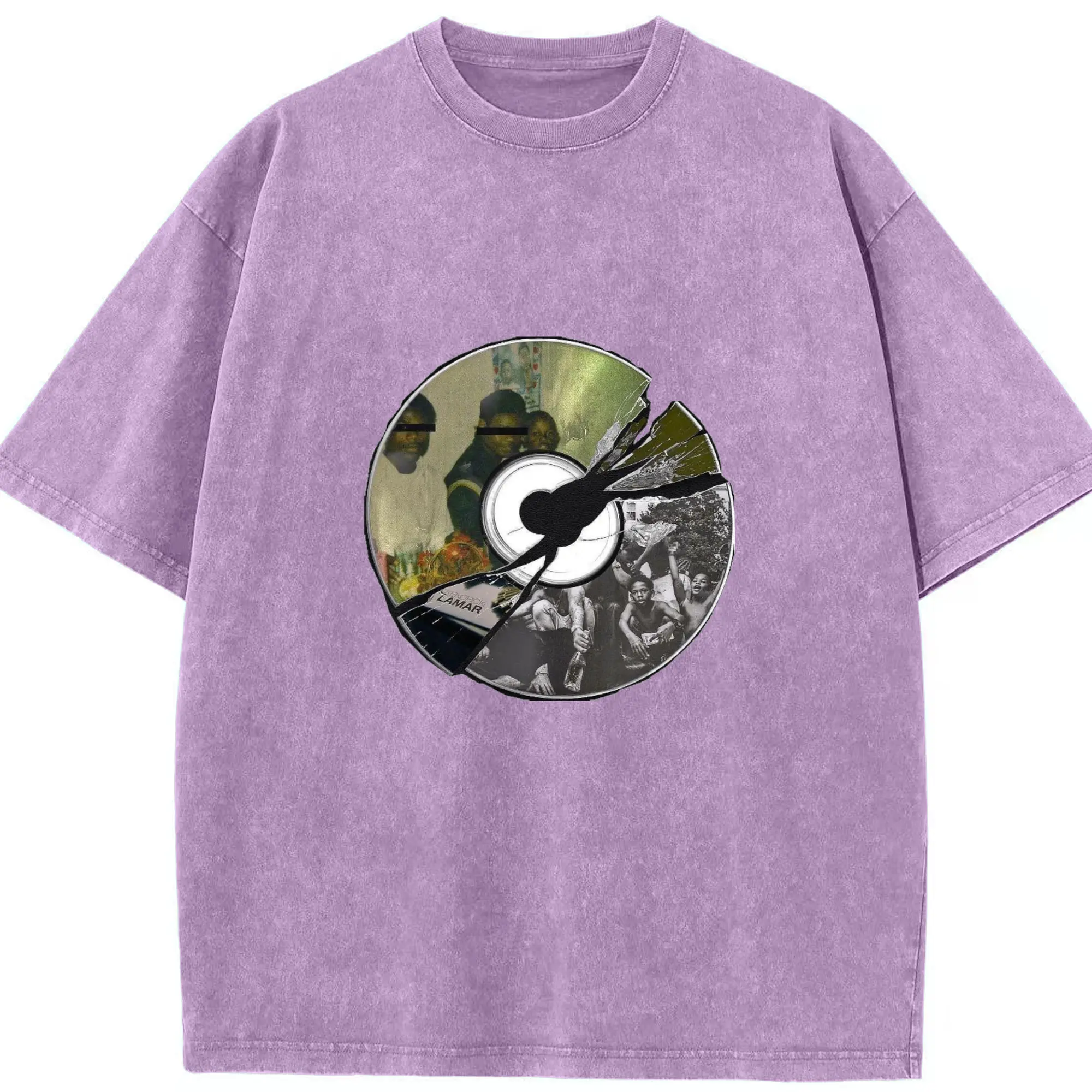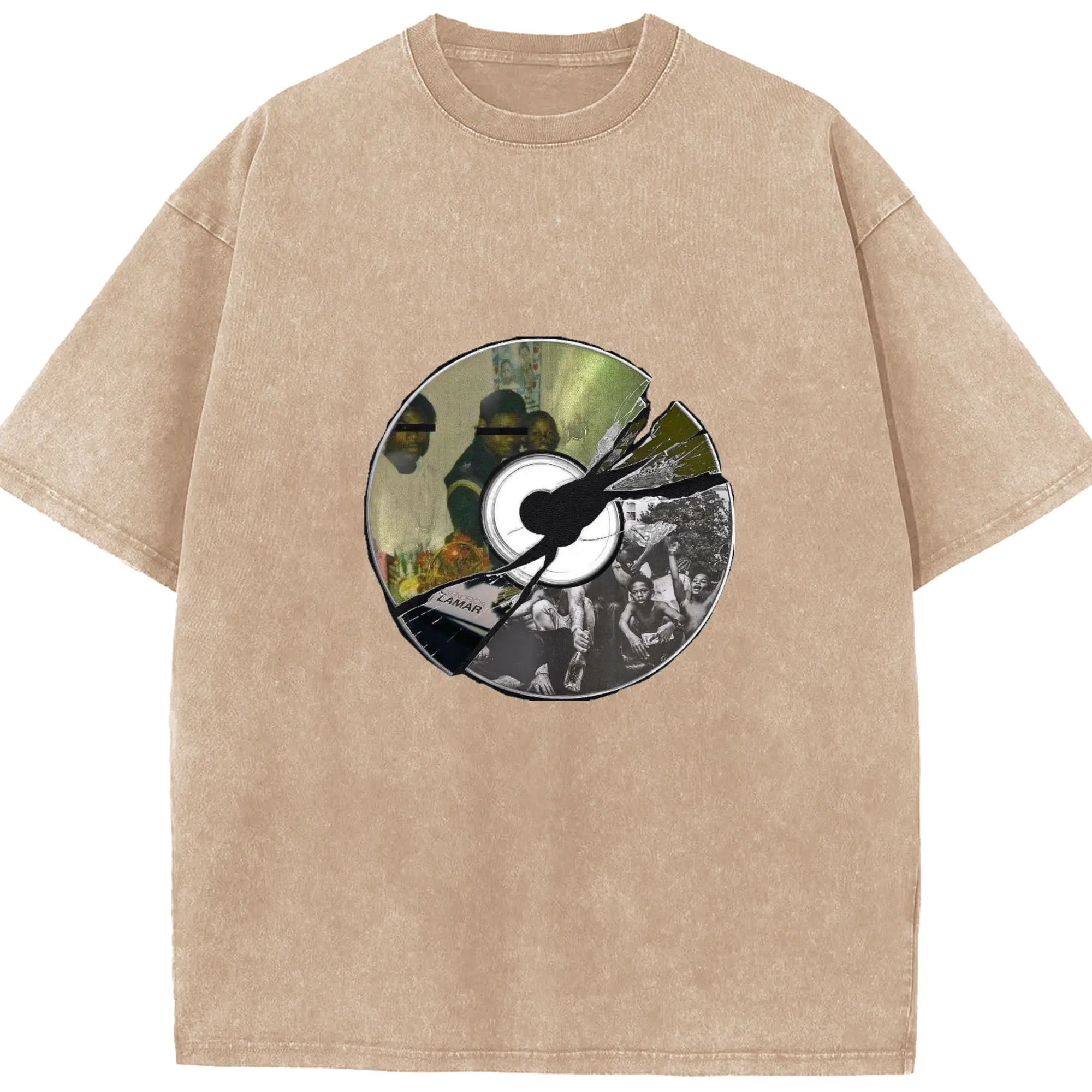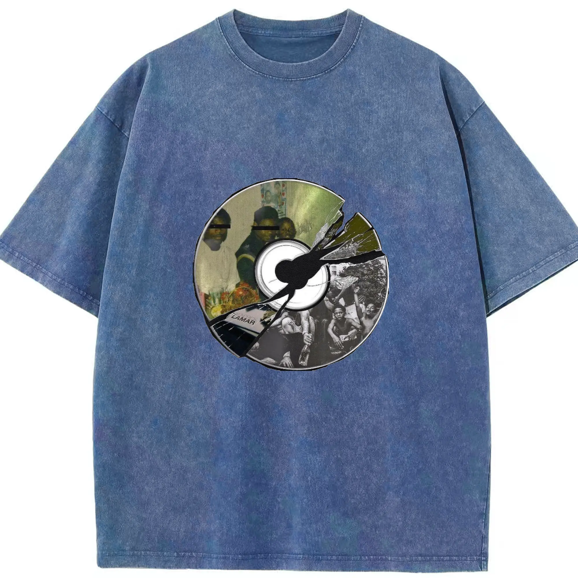 Kendrick Lamar Retro CD Collage DIY - Washed Vintage Look 230g Cotton Oversized T-Shirt With Front Heat Transfer Print – Soft, Lightweight, Stylish Fit – Comfortable Casual Wear For Sports & Everyday Use