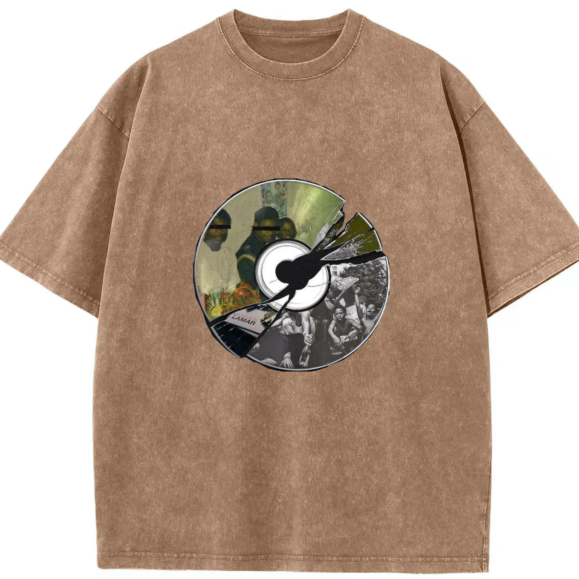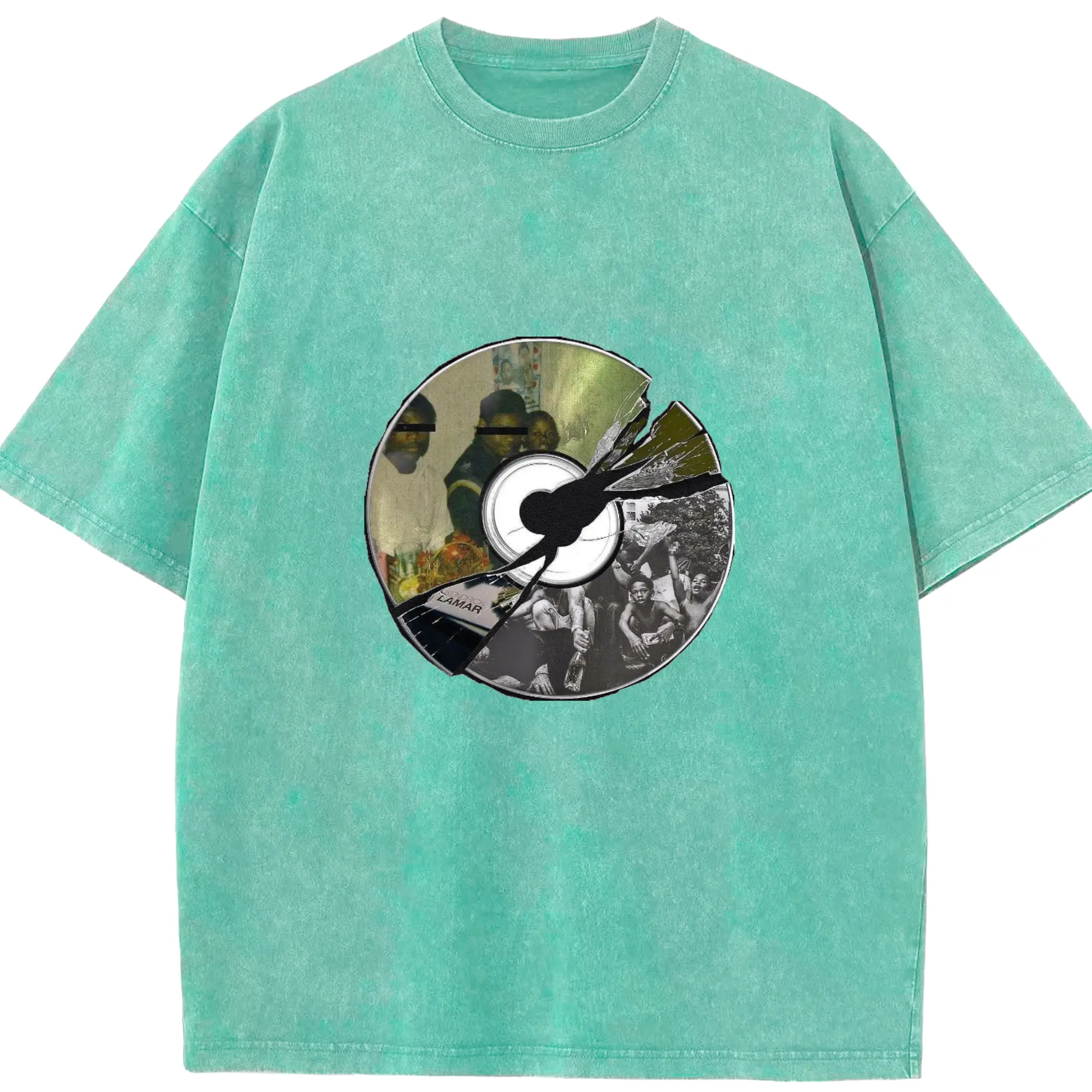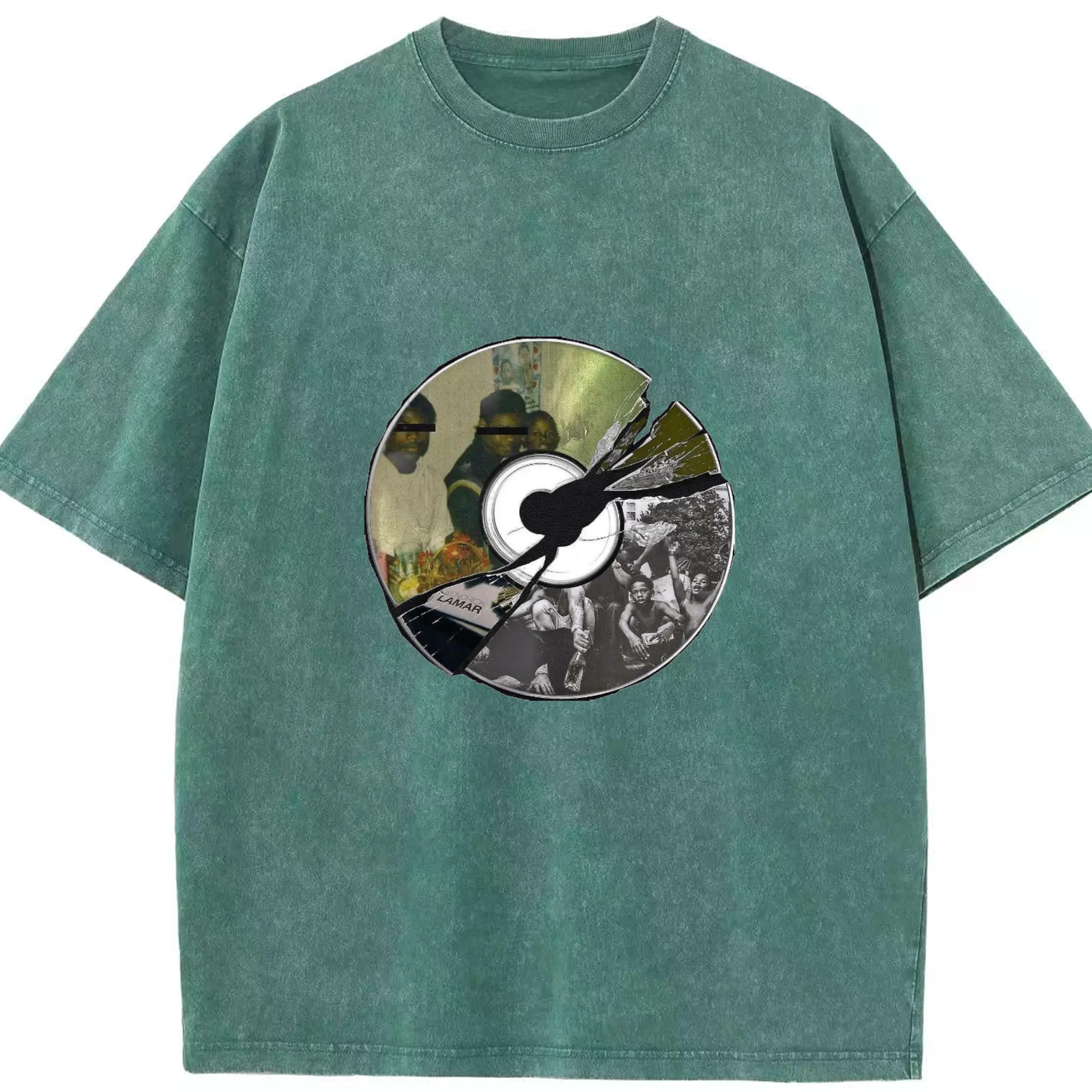 Kendrick Lamar Retro CD Collage DIY - Washed Vintage Look 230g Cotton Oversized T-Shirt With Front Heat Transfer Print – Soft, Lightweight, Stylish Fit – Comfortable Casual Wear For Sports & Everyday Use